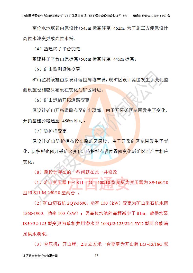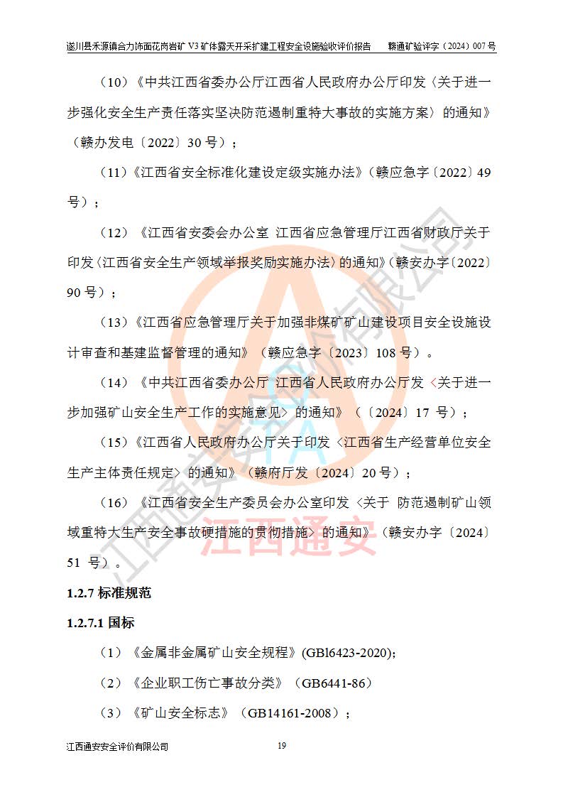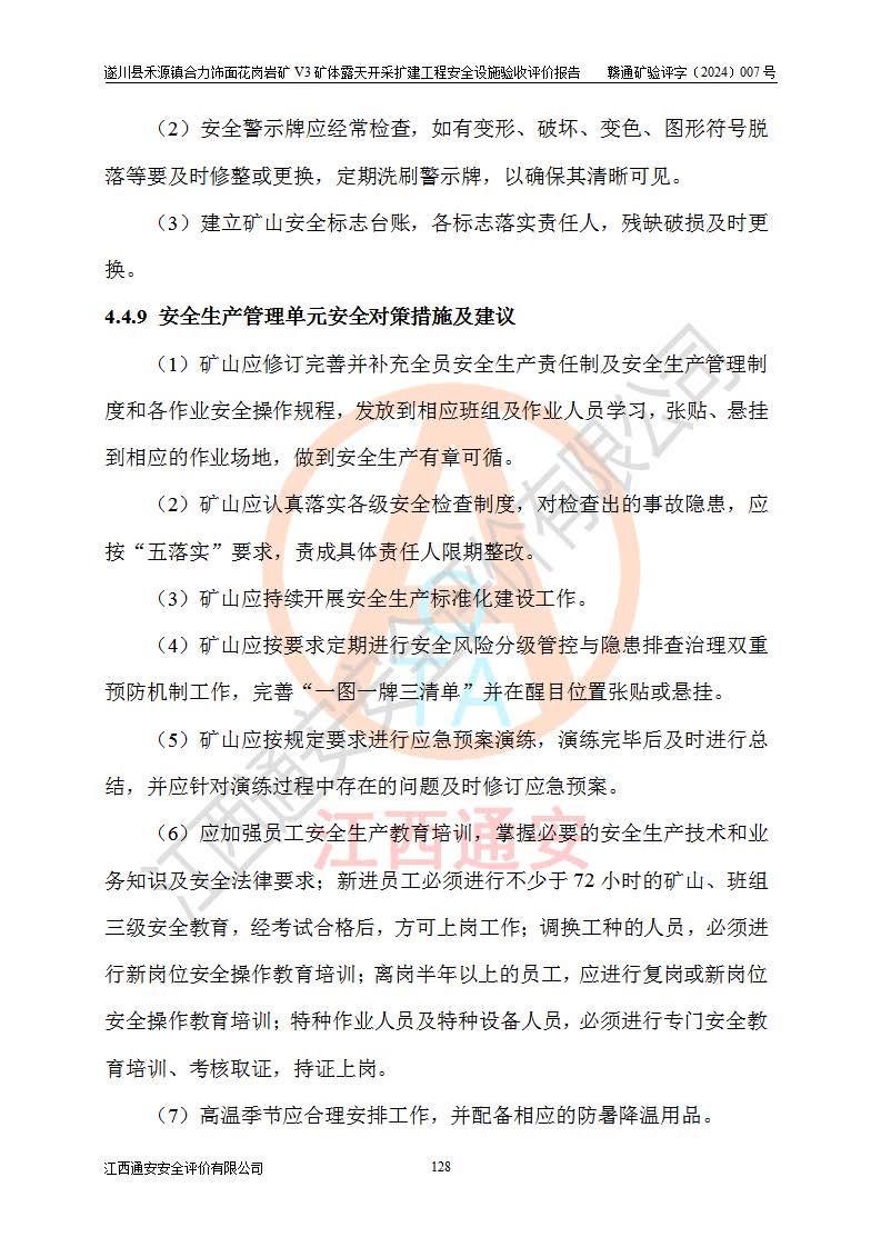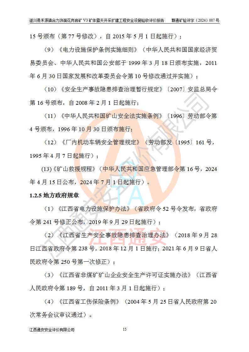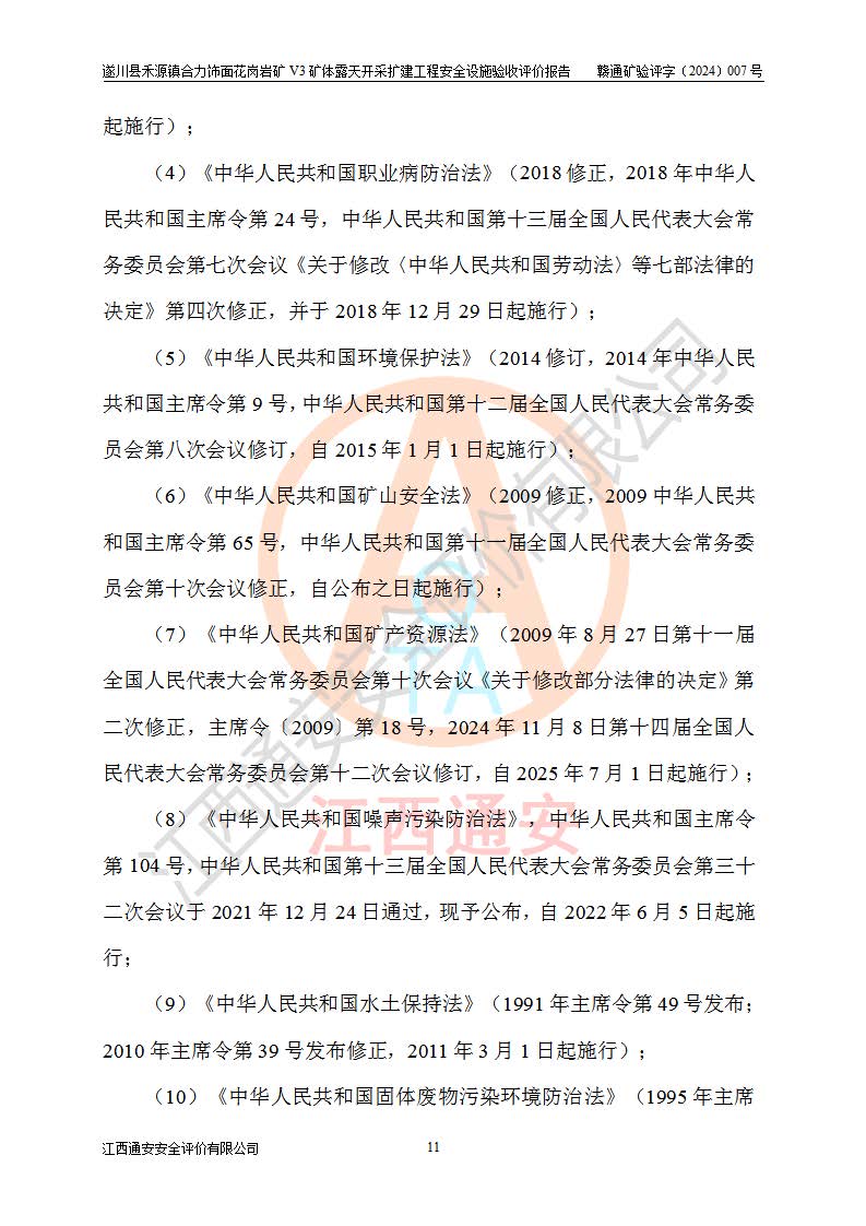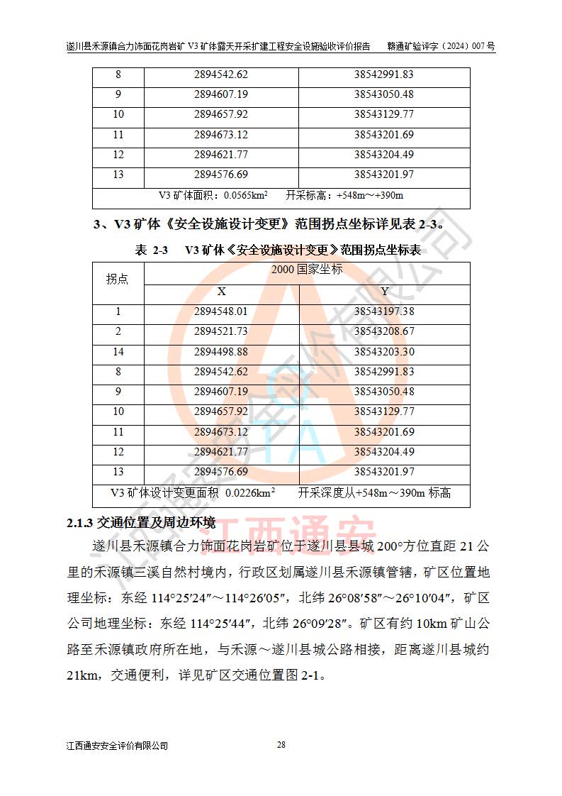 项目名称 | 遂川县禾源镇合力饰面花岗岩矿V3矿体露天开采扩建工程安全设施验收评价报告 | ||||