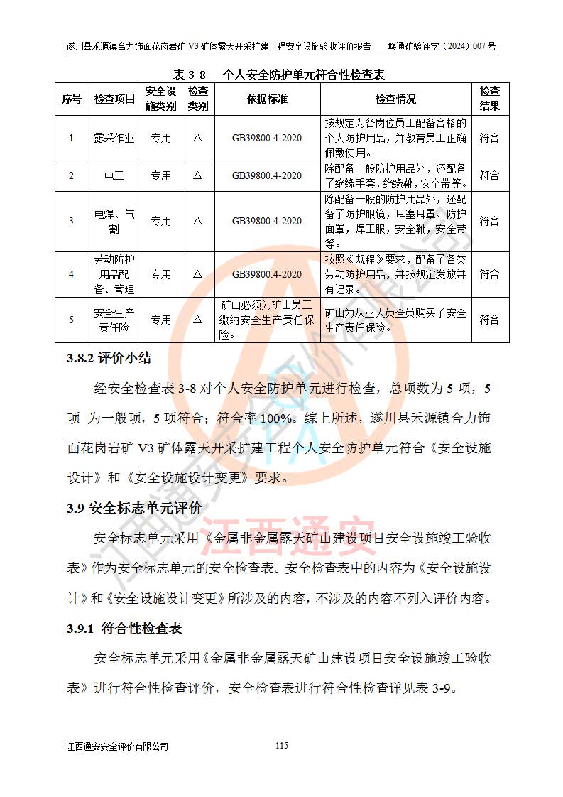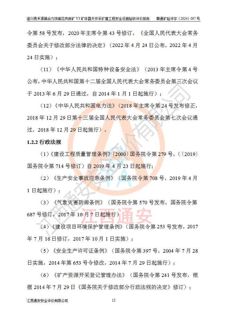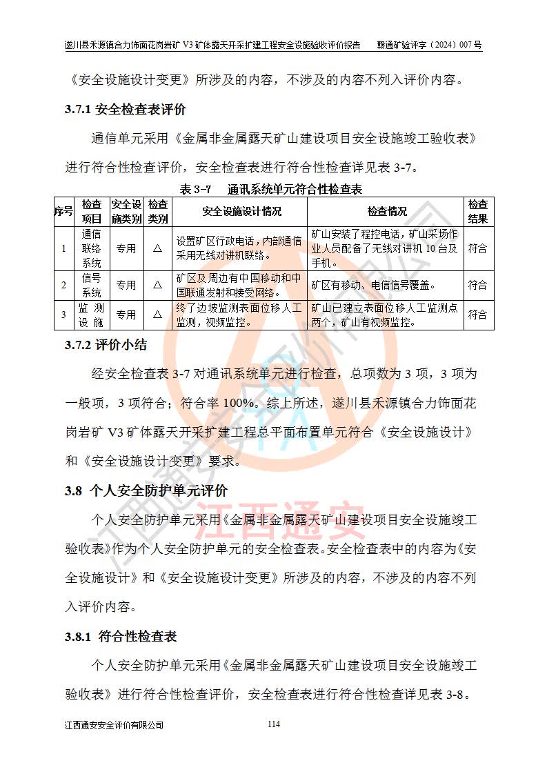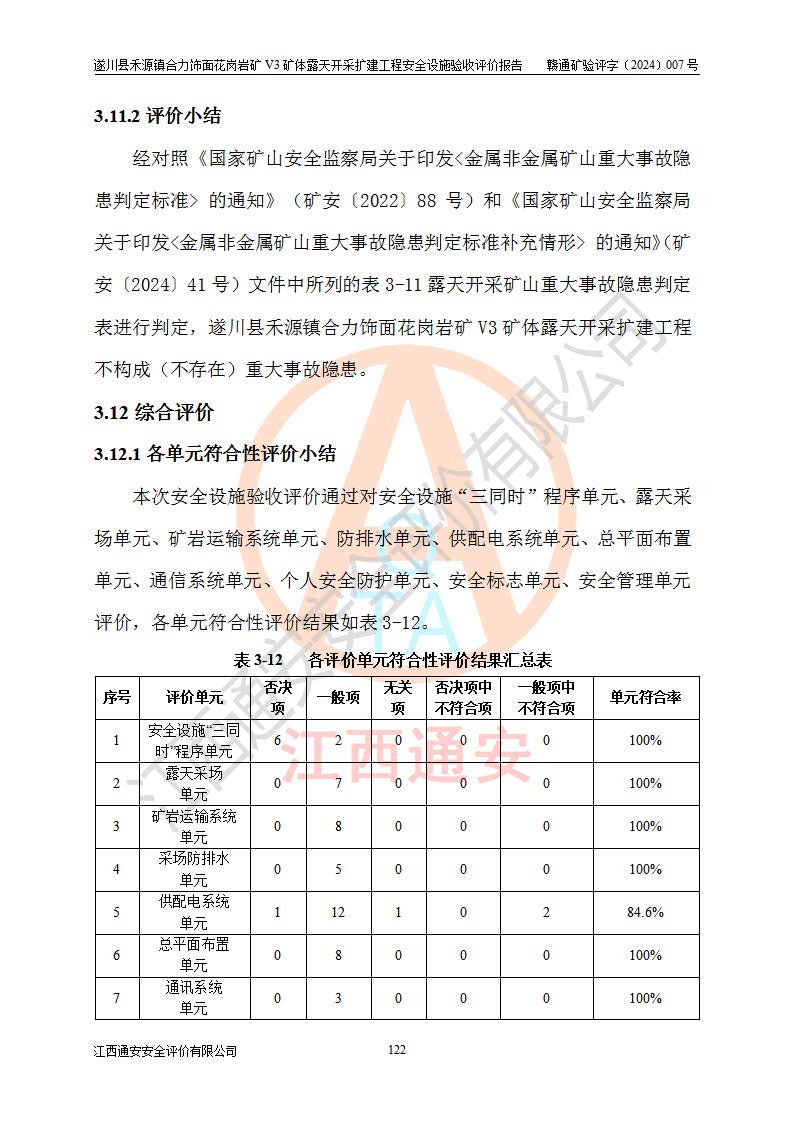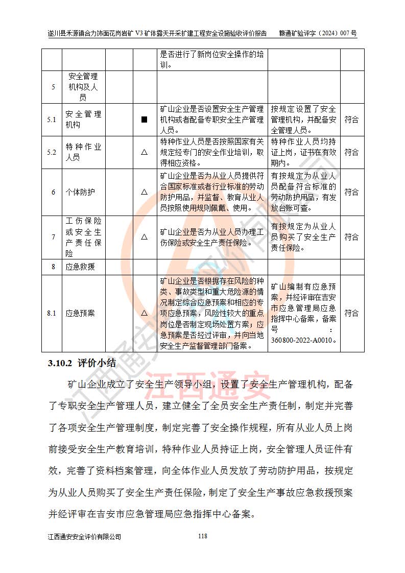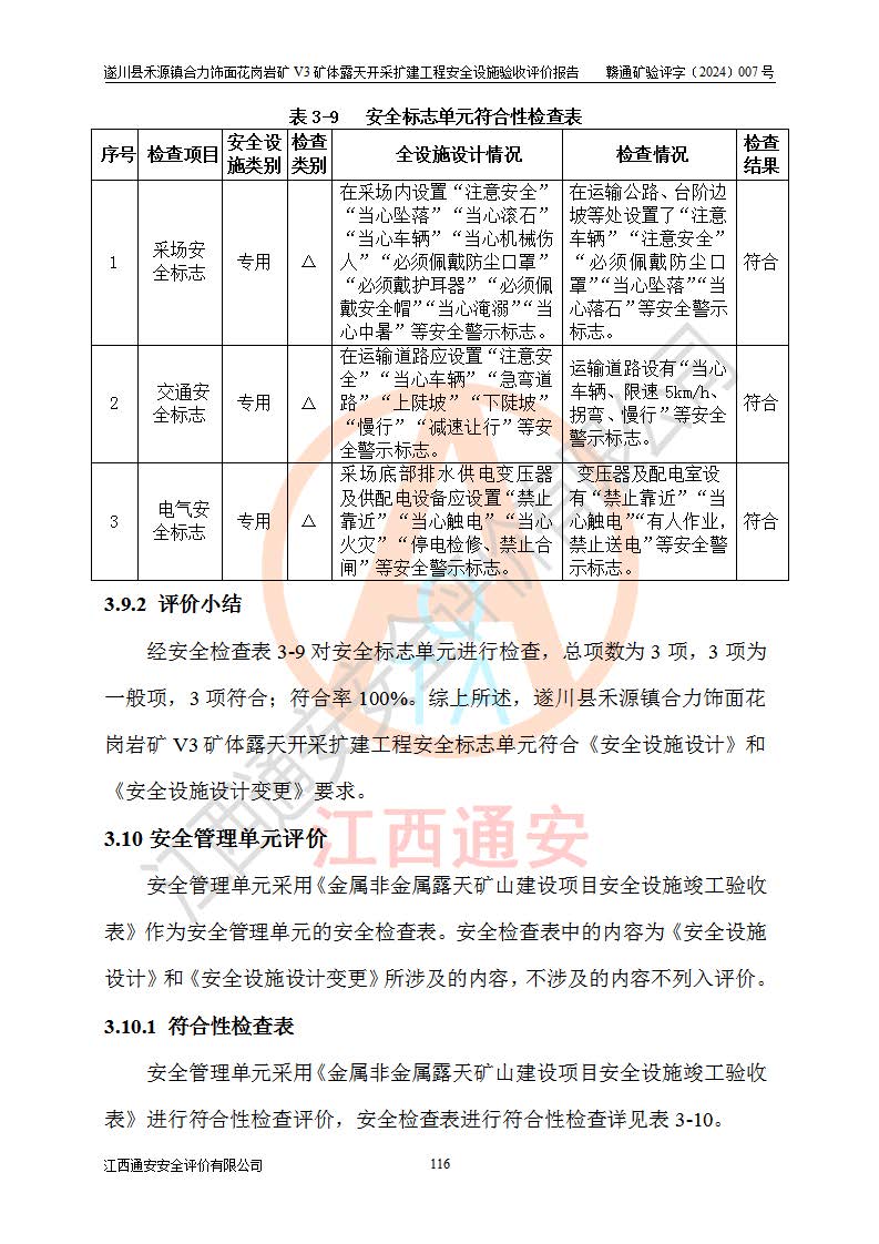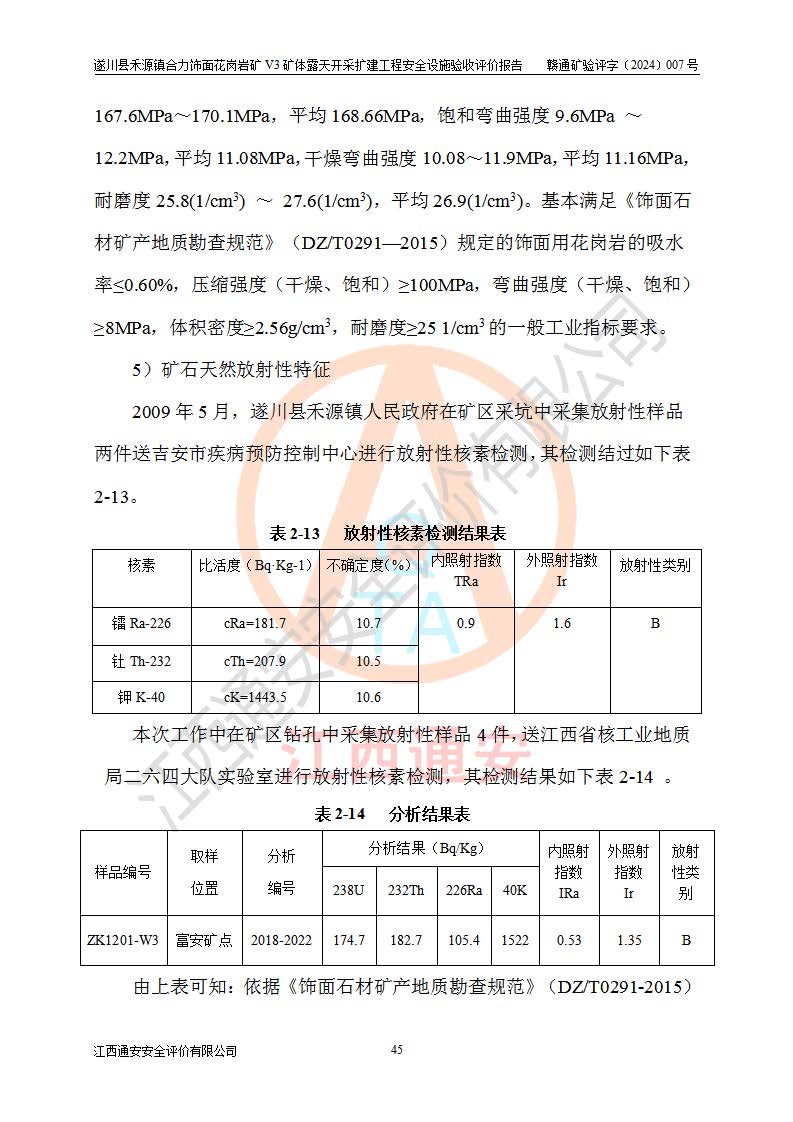 项目名称 | 遂川县禾源镇合力饰面花岗岩矿V3矿体露天开采扩建工程安全设施验收评价报告 | ||||