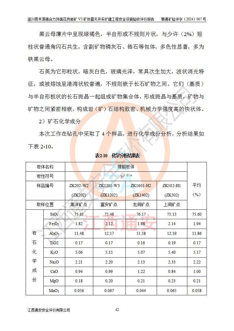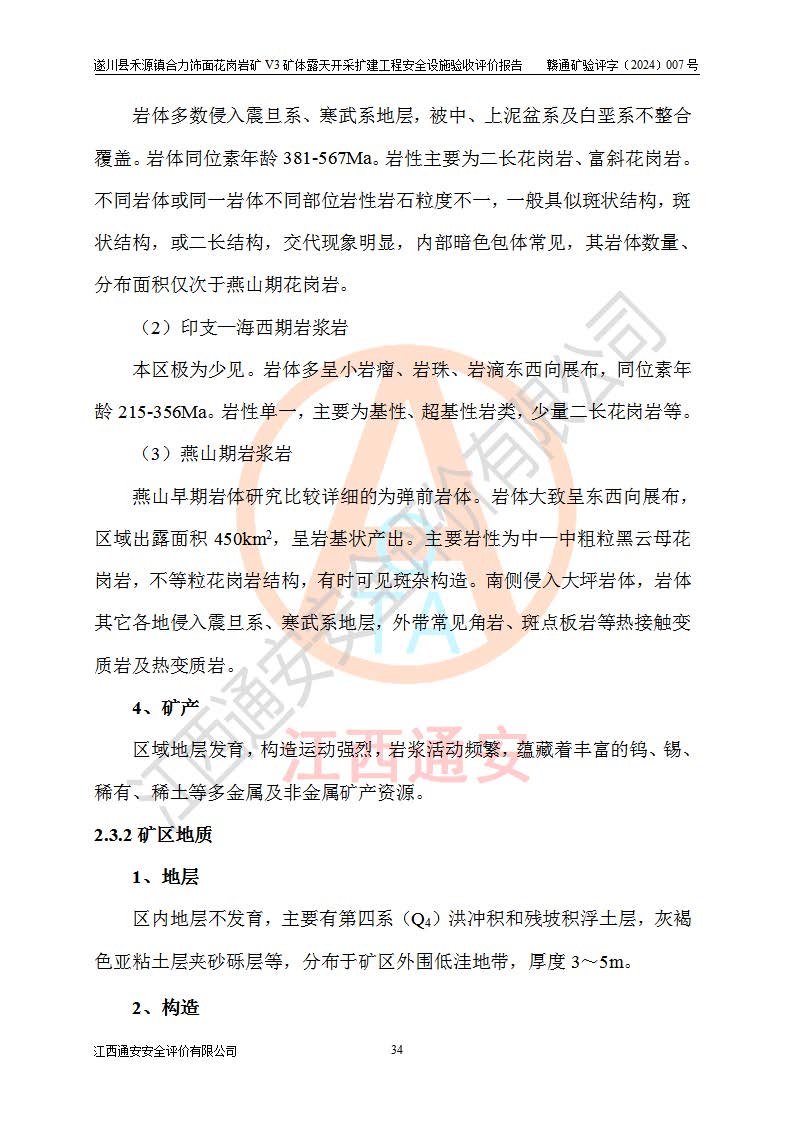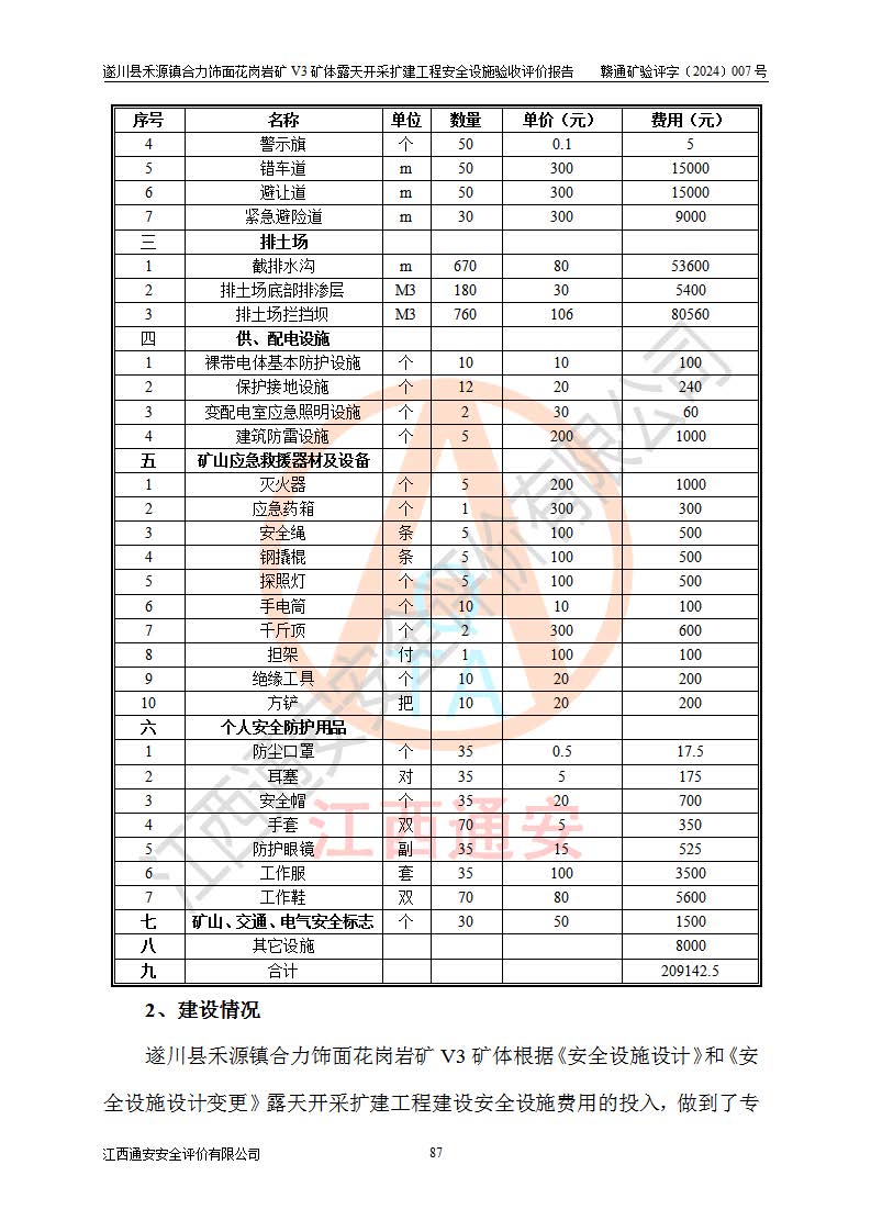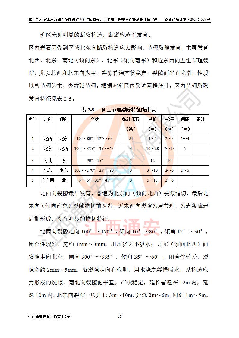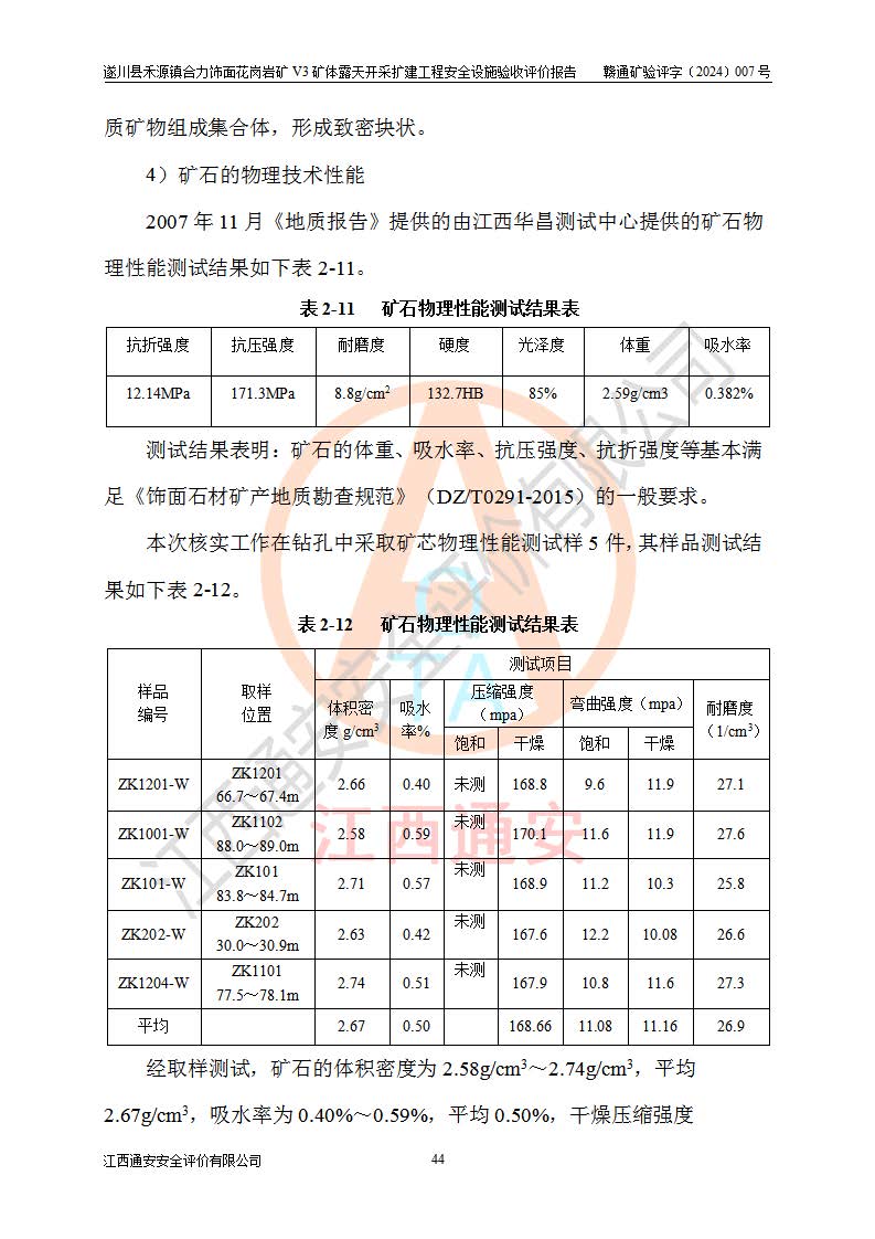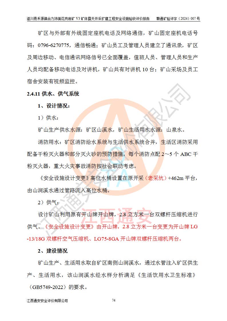 项目名称 | 遂川县禾源镇合力饰面花岗岩矿V3矿体露天开采扩建工程安全设施验收评价报告 | ||||