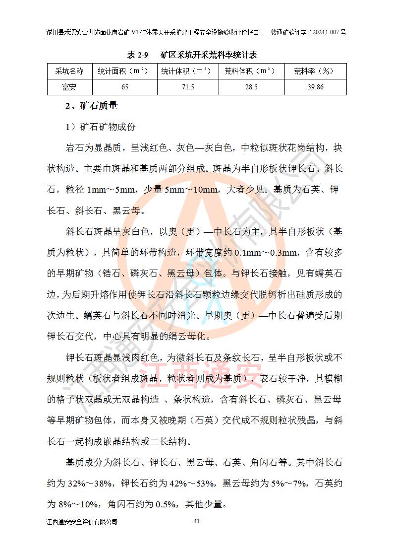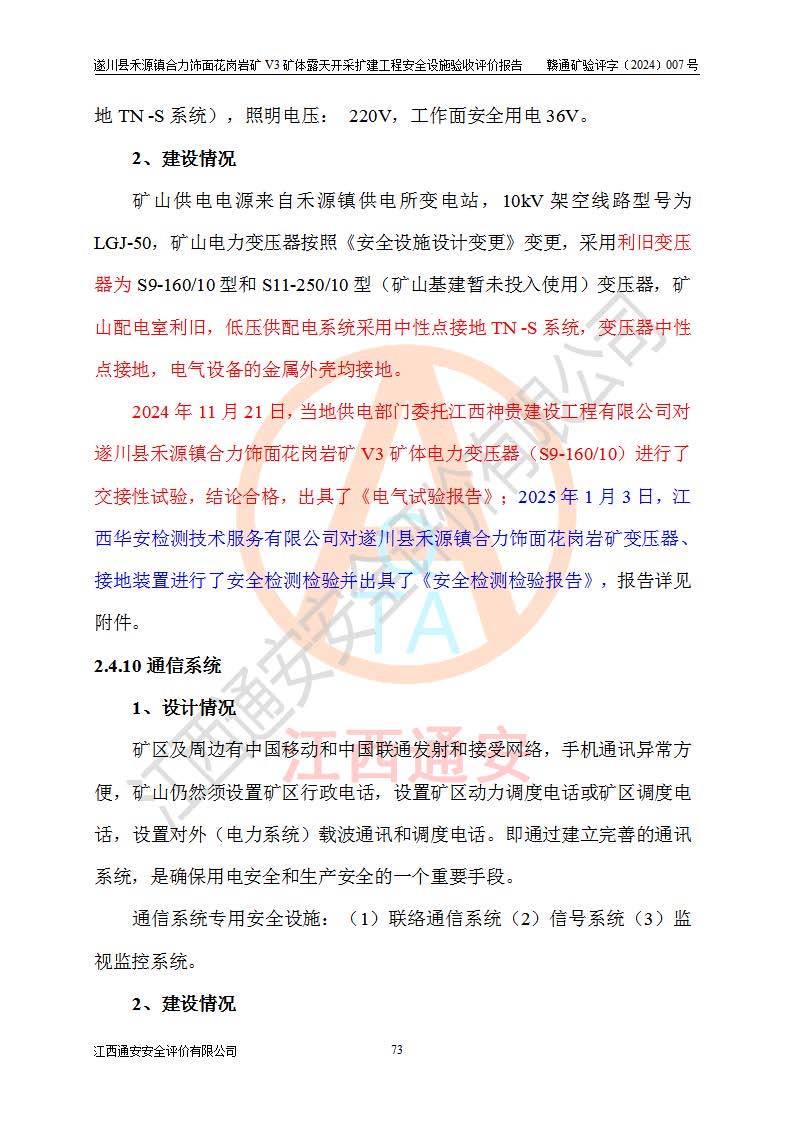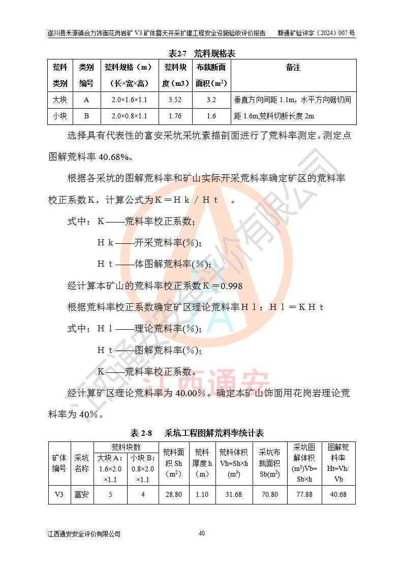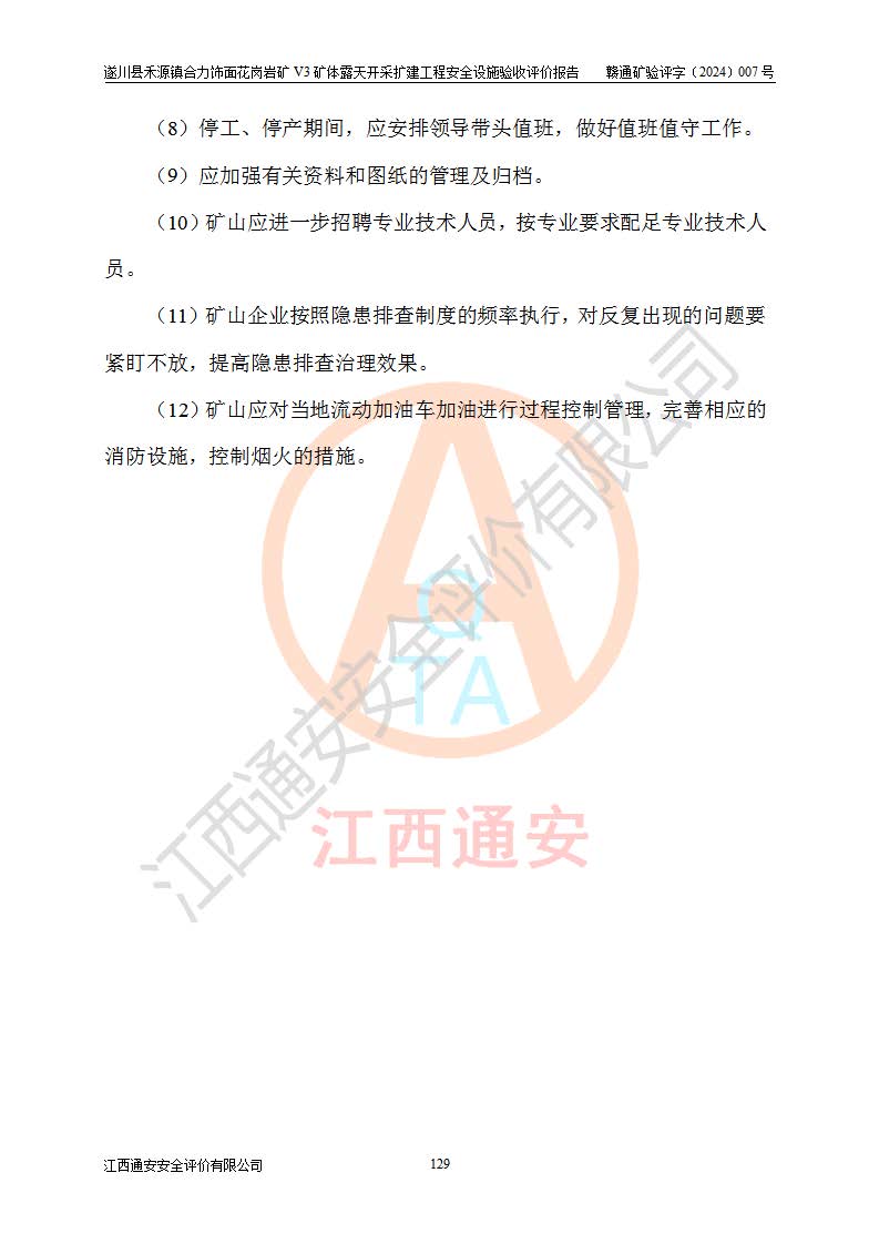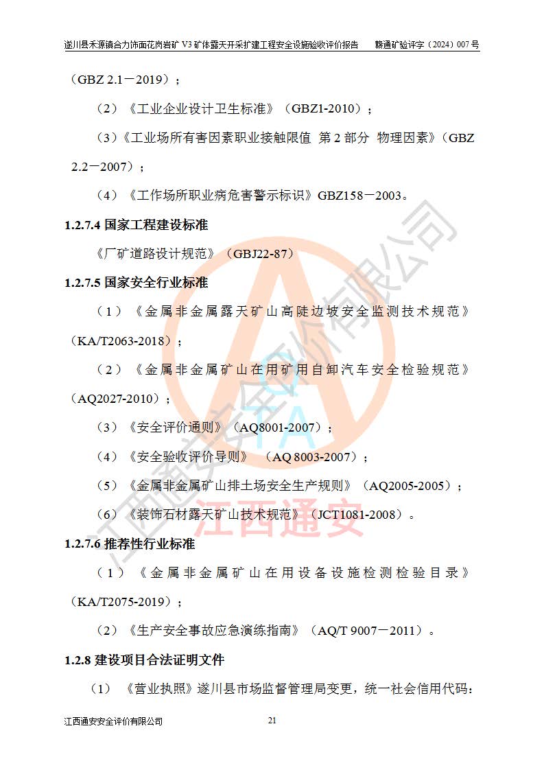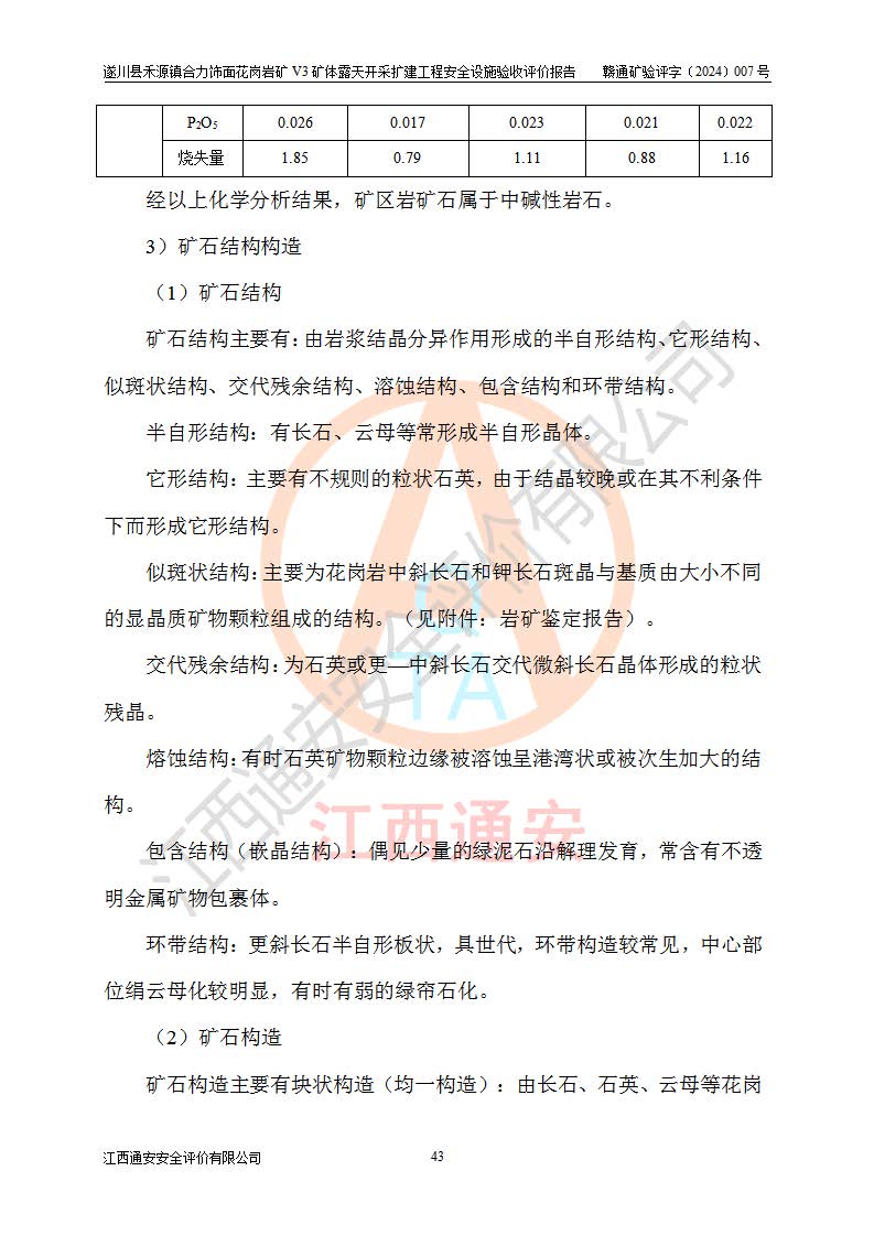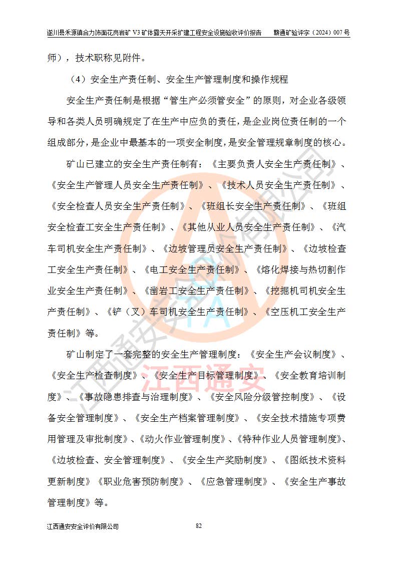 项目名称 | 遂川县禾源镇合力饰面花岗岩矿V3矿体露天开采扩建工程安全设施验收评价报告 | ||||