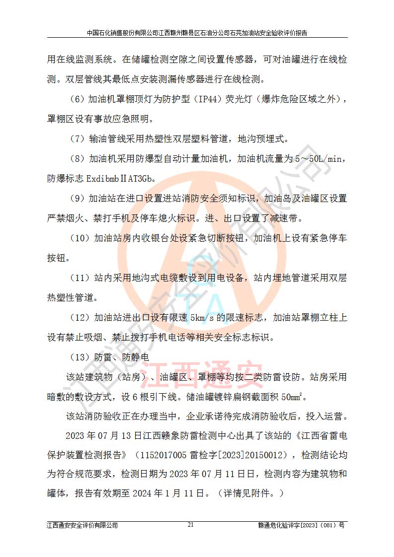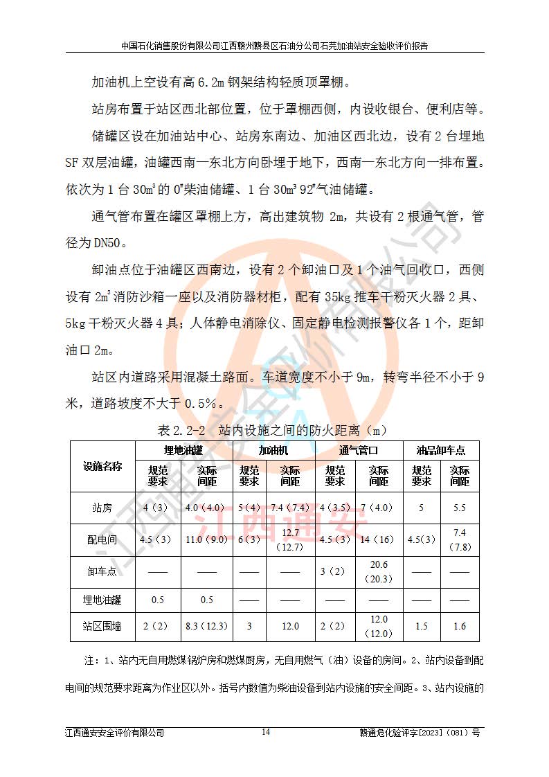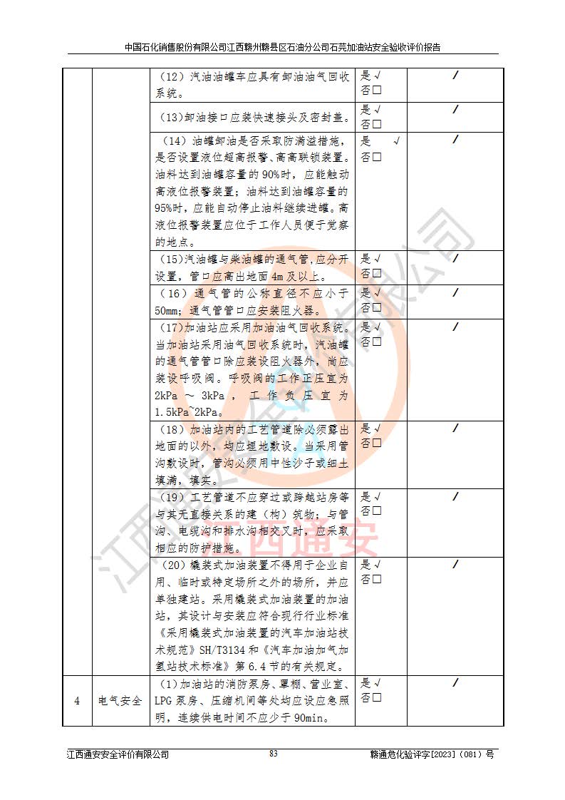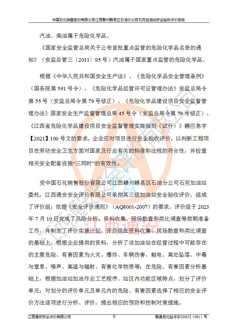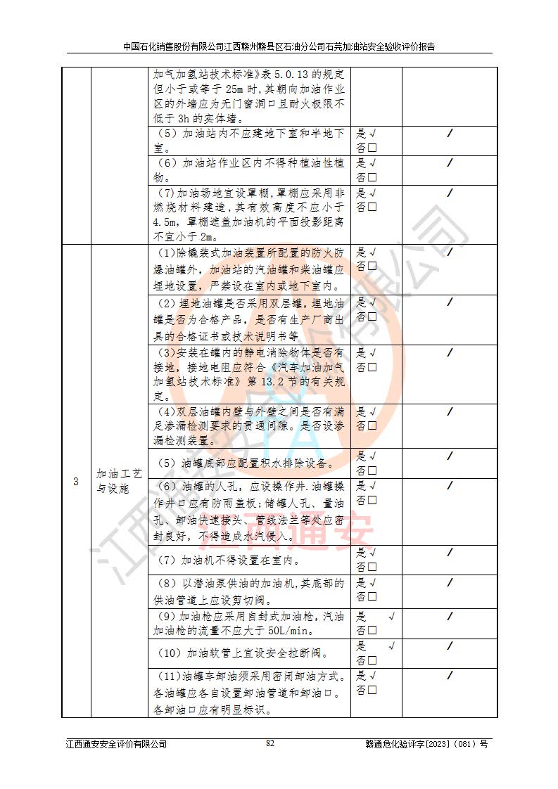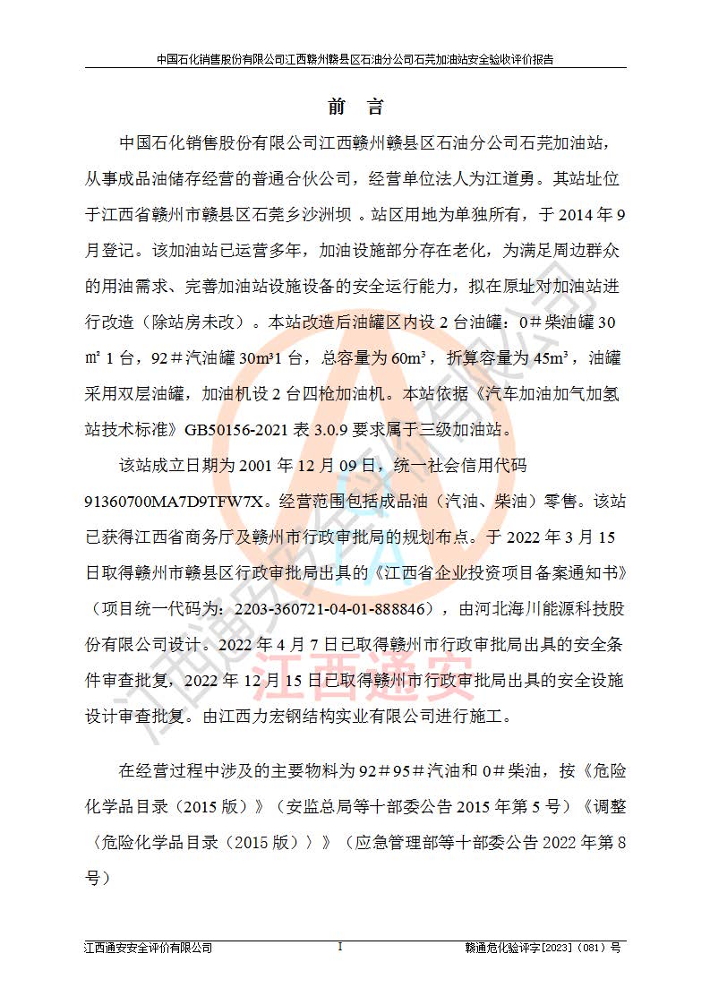 项目名称 | 中国石化销售股份有限公司江西赣州赣县区石油分公司石芫加油站安全验收评价报告 | ||||
