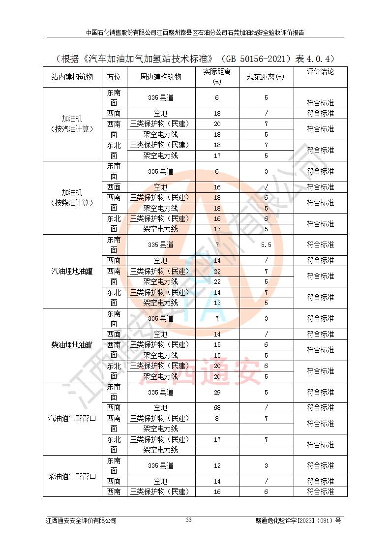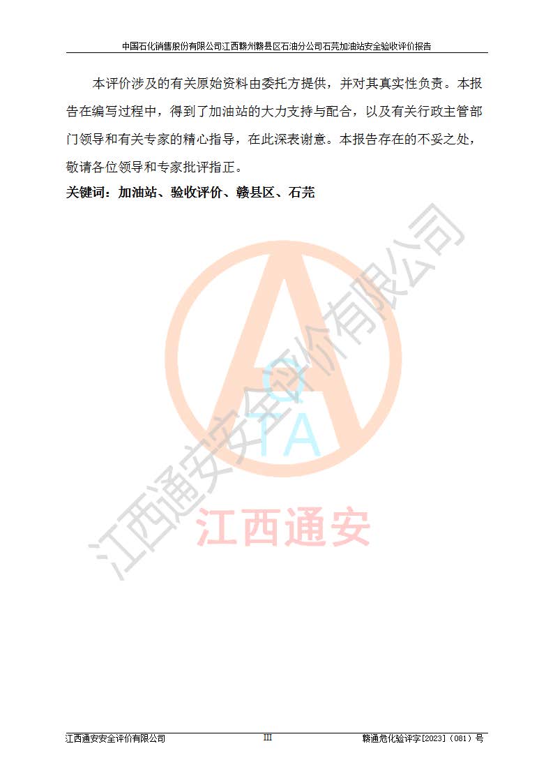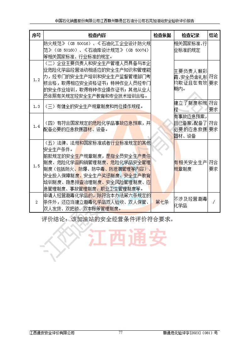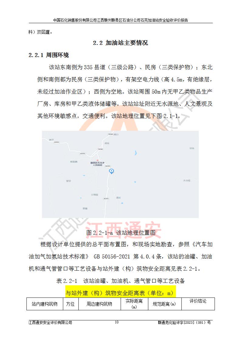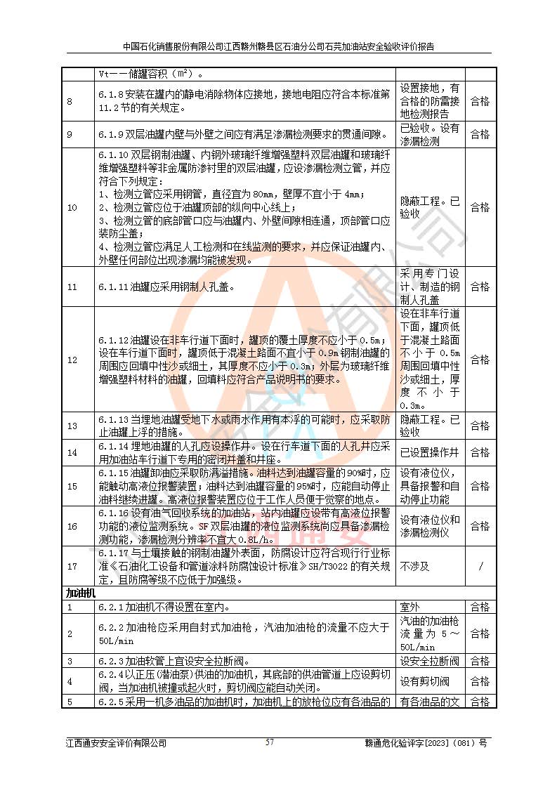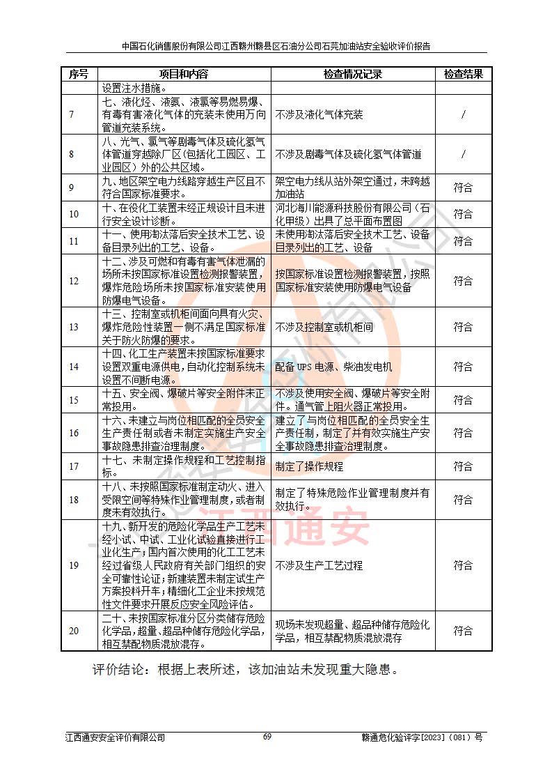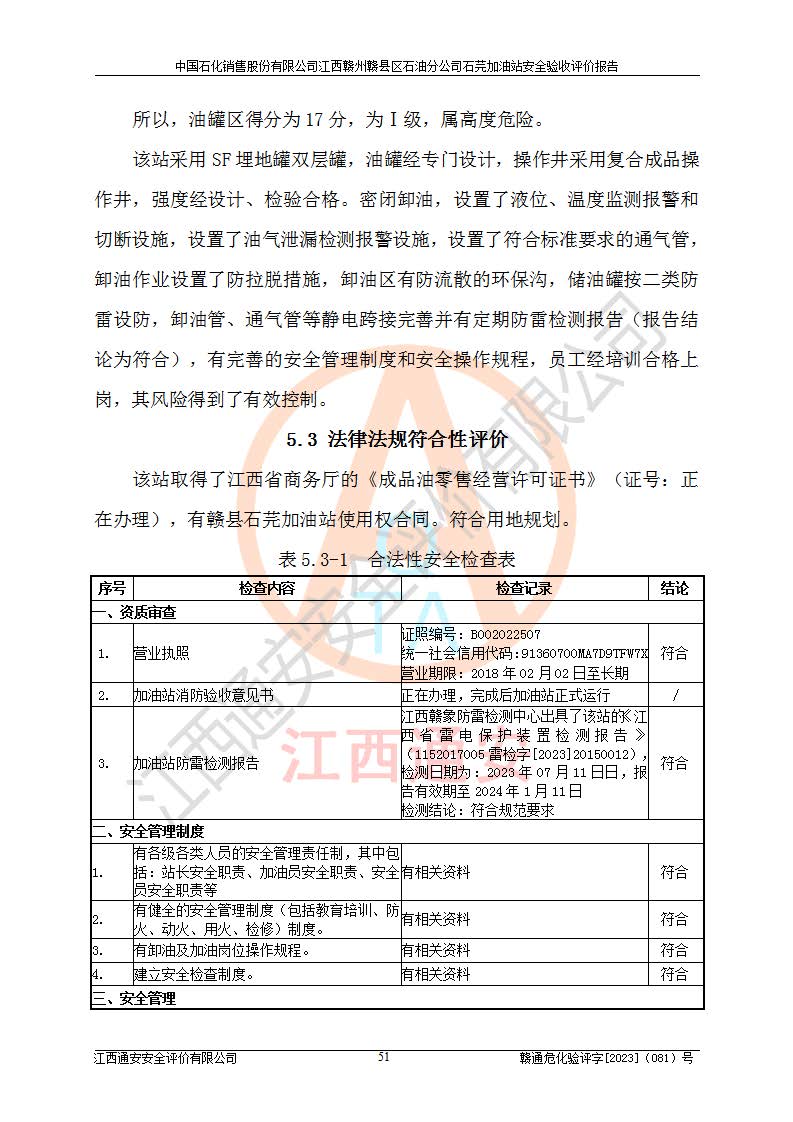 项目名称 | 中国石化销售股份有限公司江西赣州赣县区石油分公司石芫加油站安全验收评价报告 | ||||