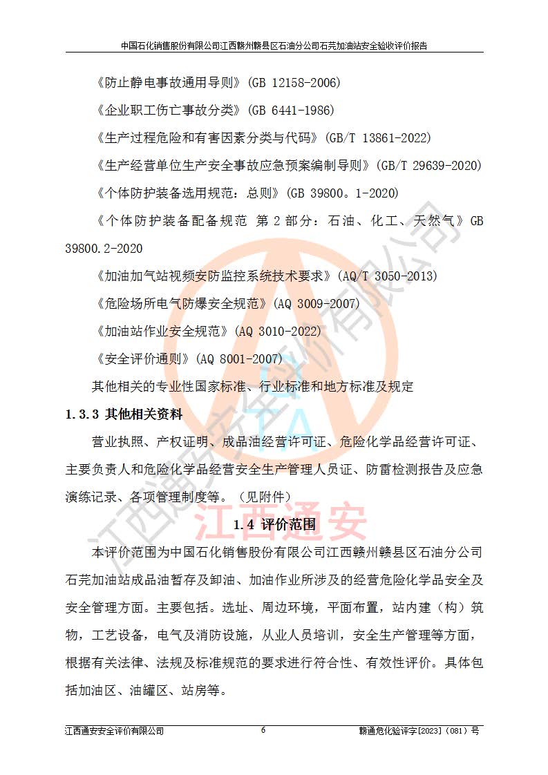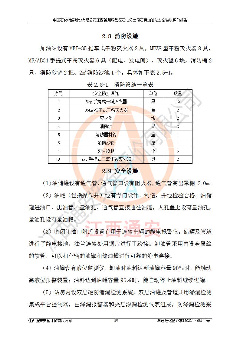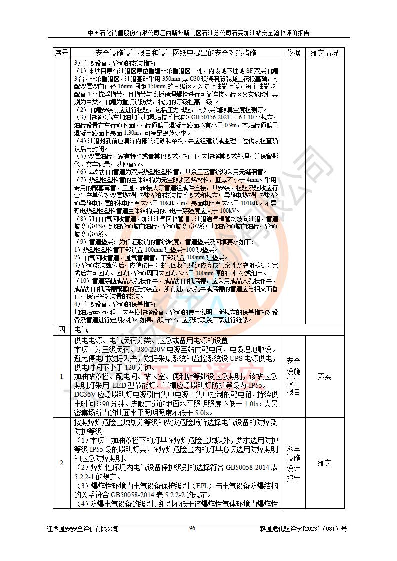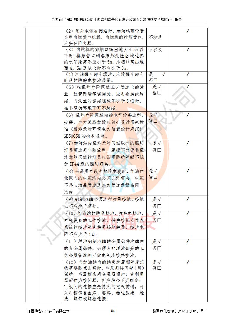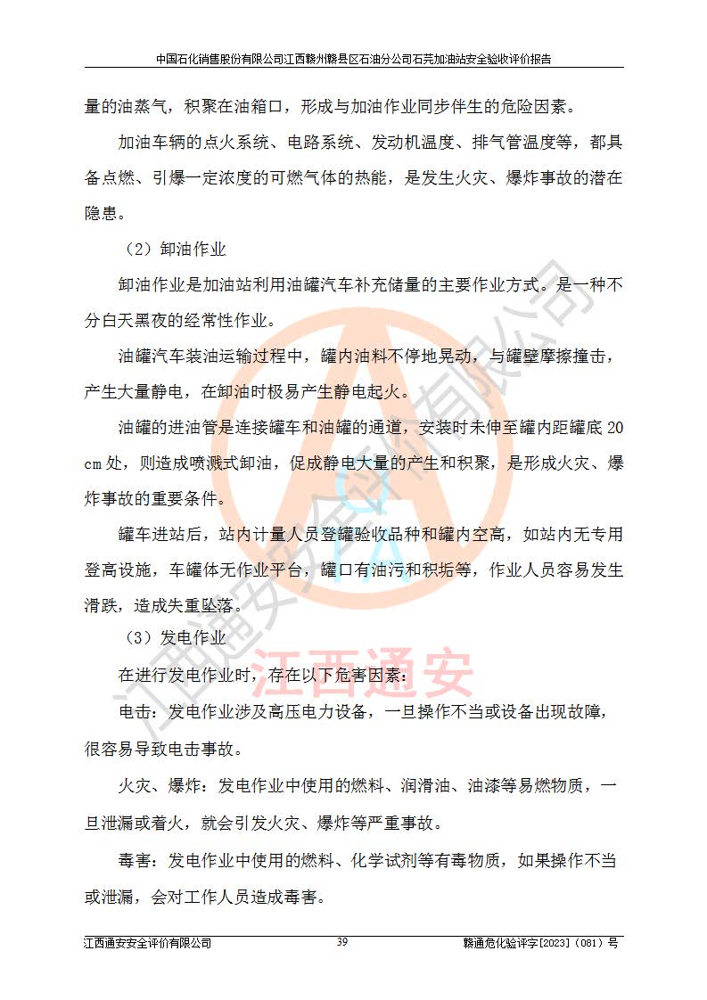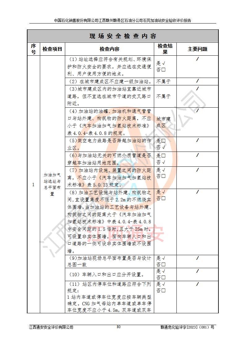项目名称 | 中国石化销售股份有限公司江西赣州赣县区石油分公司石芫加油站安全验收评价报告 | ||||