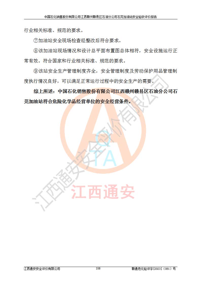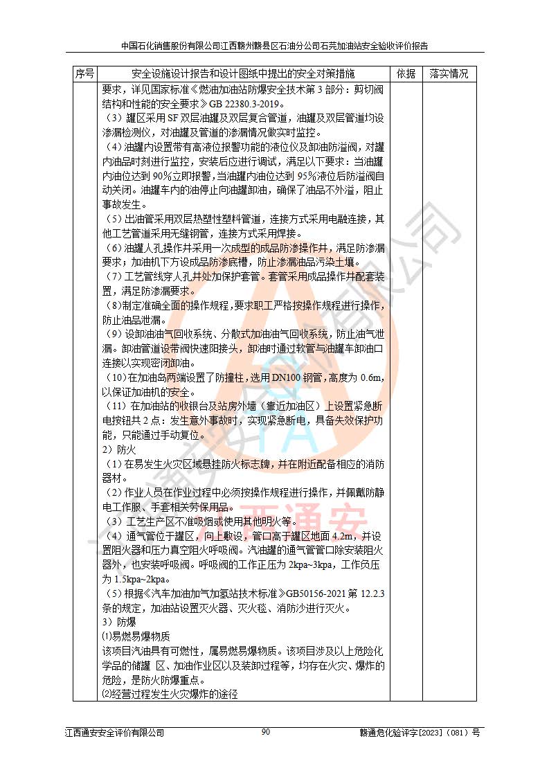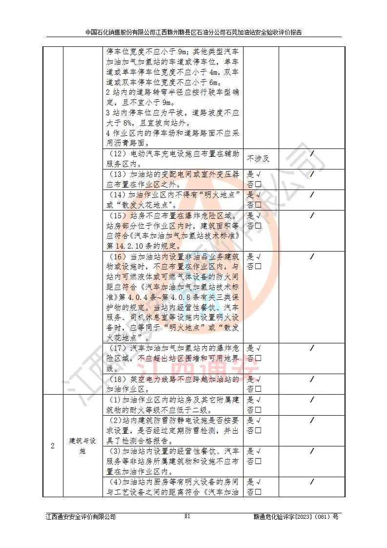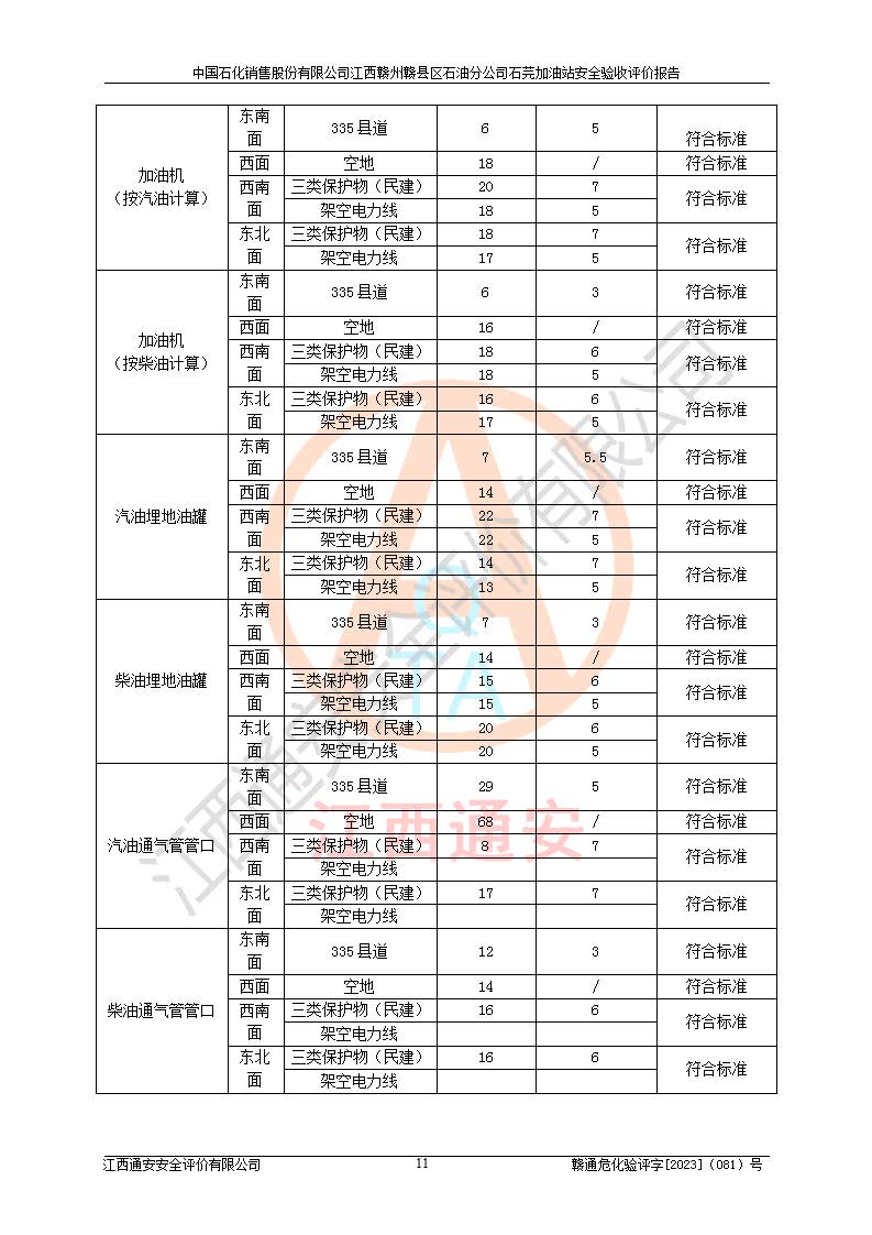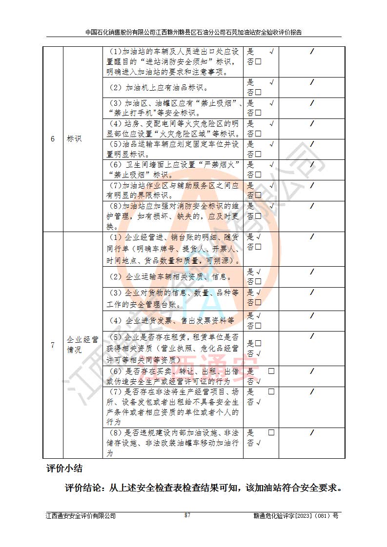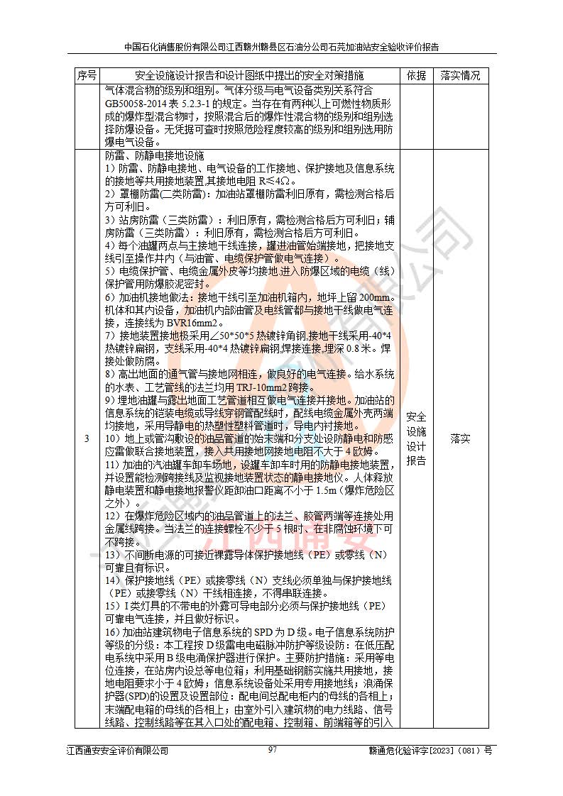 项目名称 | 中国石化销售股份有限公司江西赣州赣县区石油分公司石芫加油站安全验收评价报告 | ||||