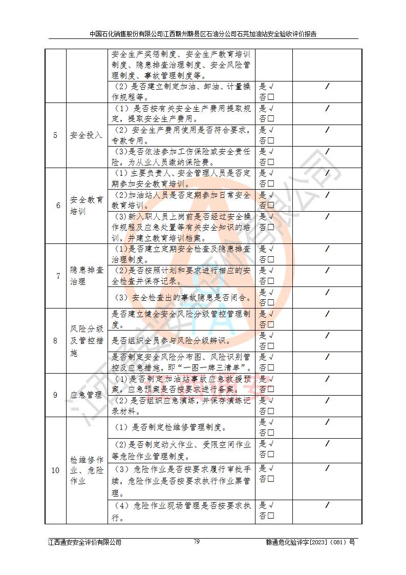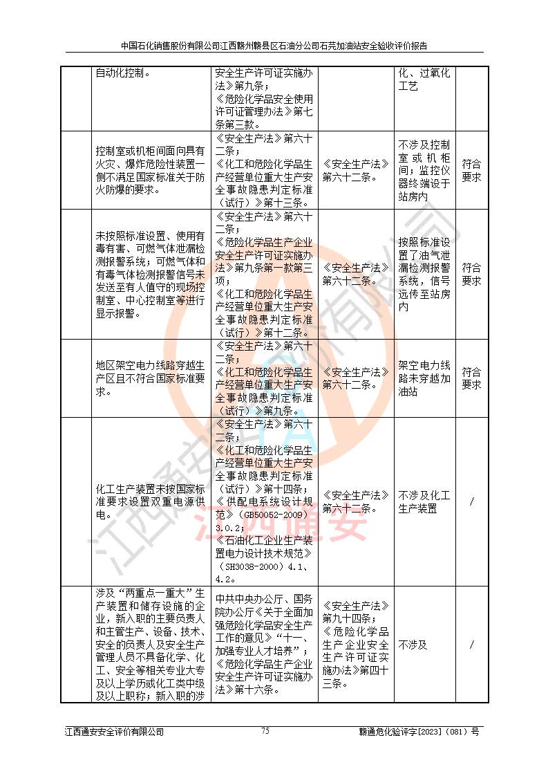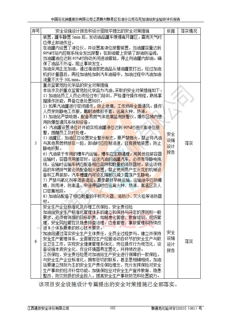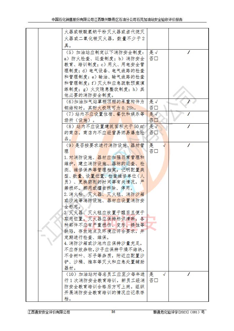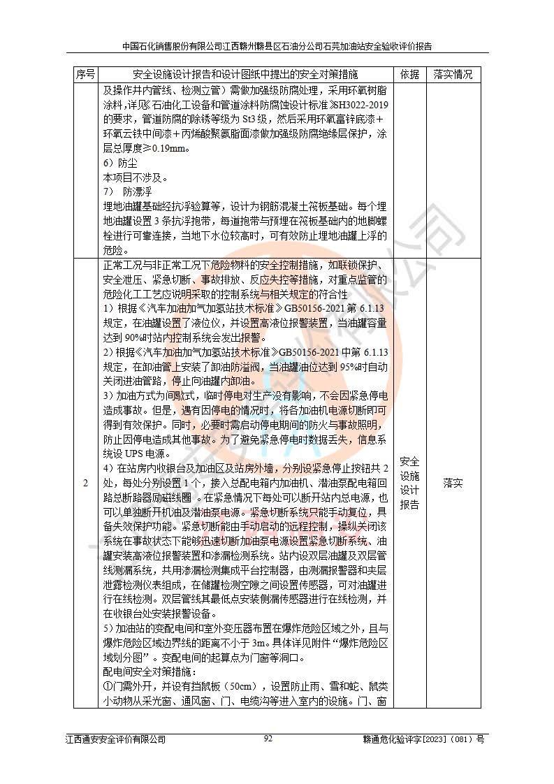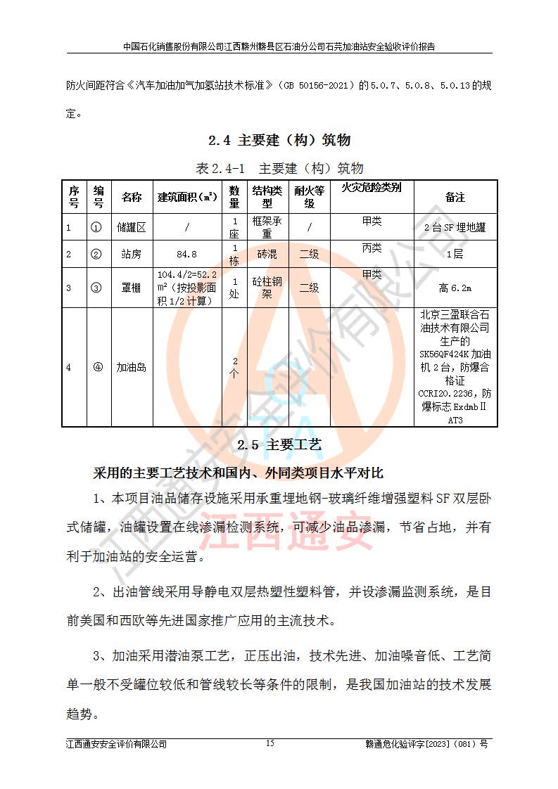 项目名称 | 中国石化销售股份有限公司江西赣州赣县区石油分公司石芫加油站安全验收评价报告 | ||||