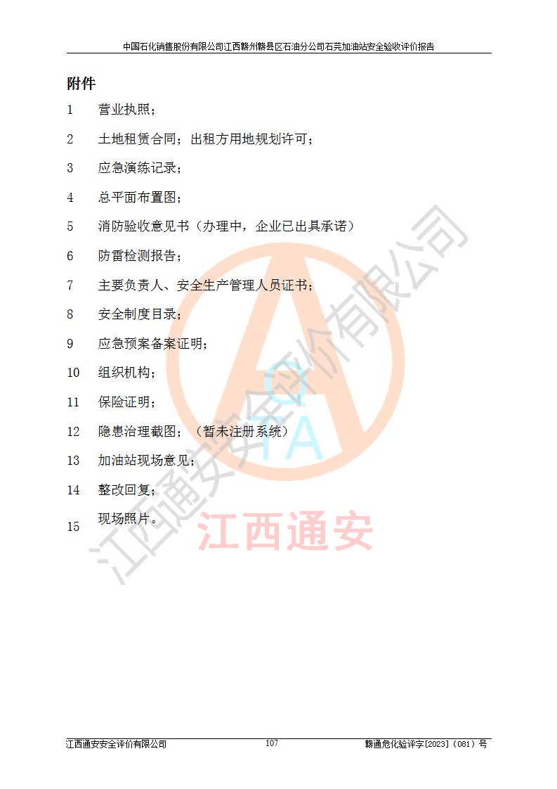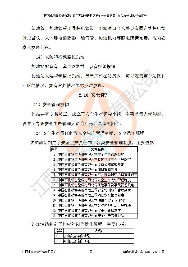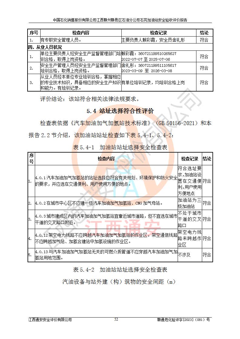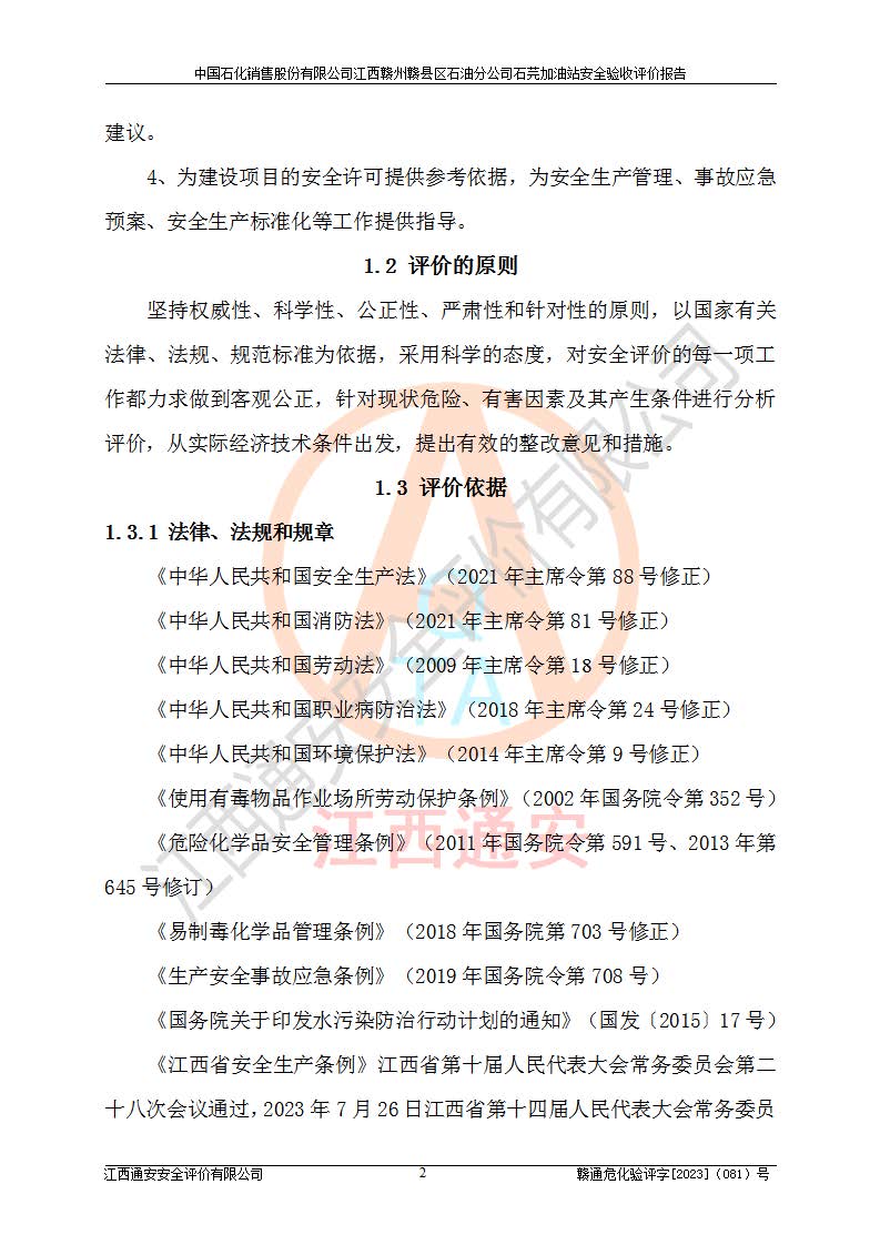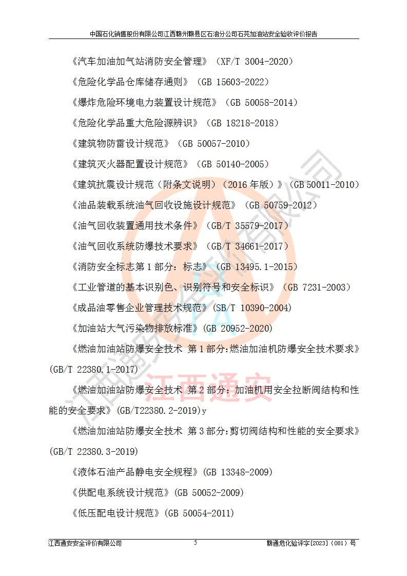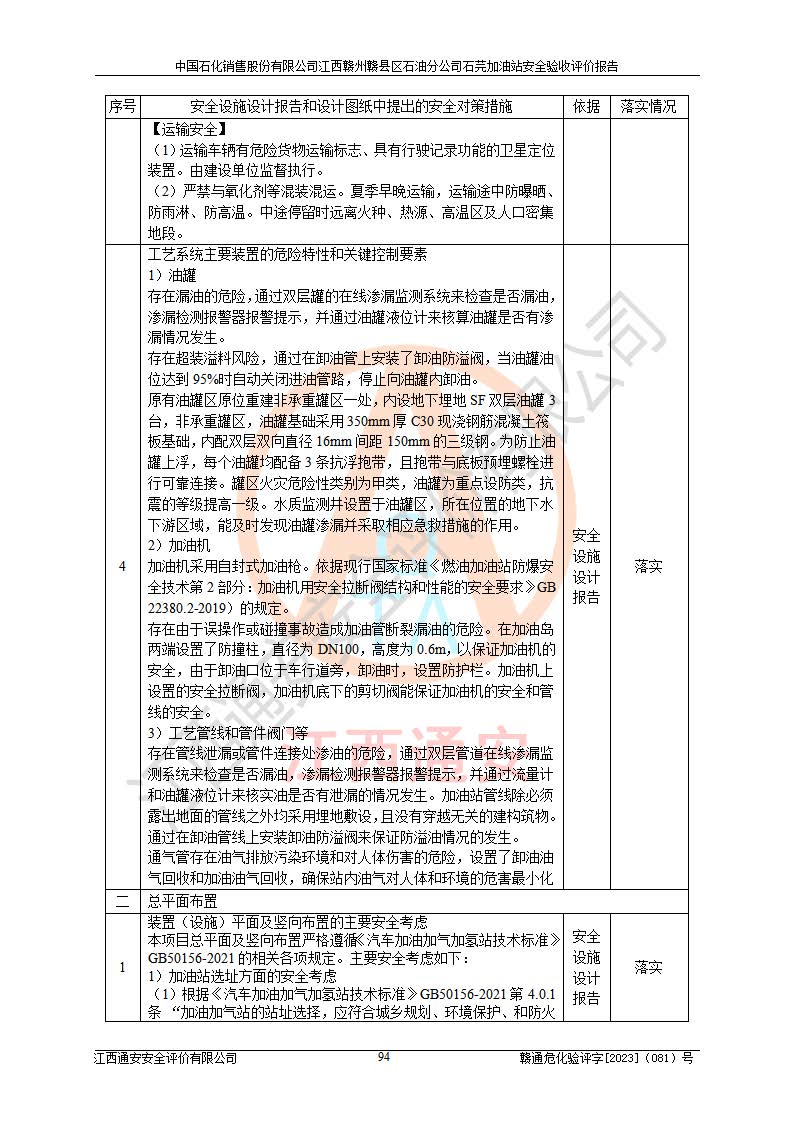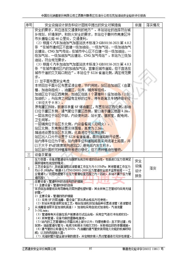 项目名称 | 中国石化销售股份有限公司江西赣州赣县区石油分公司石芫加油站安全验收评价报告 | ||||