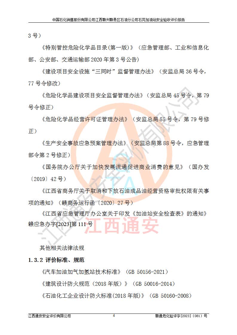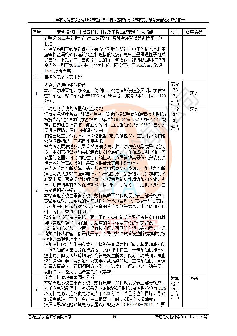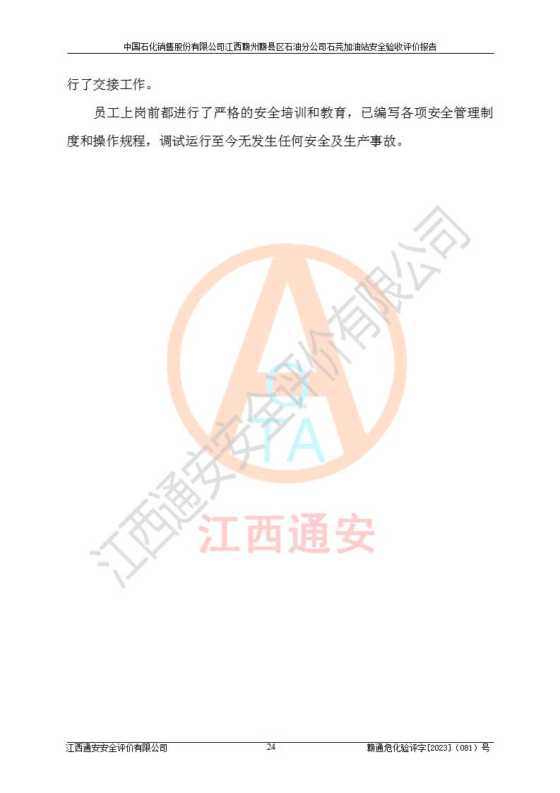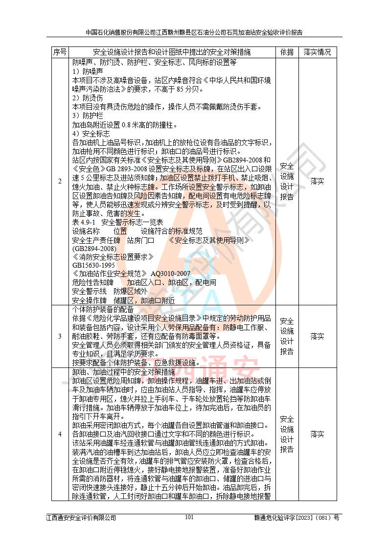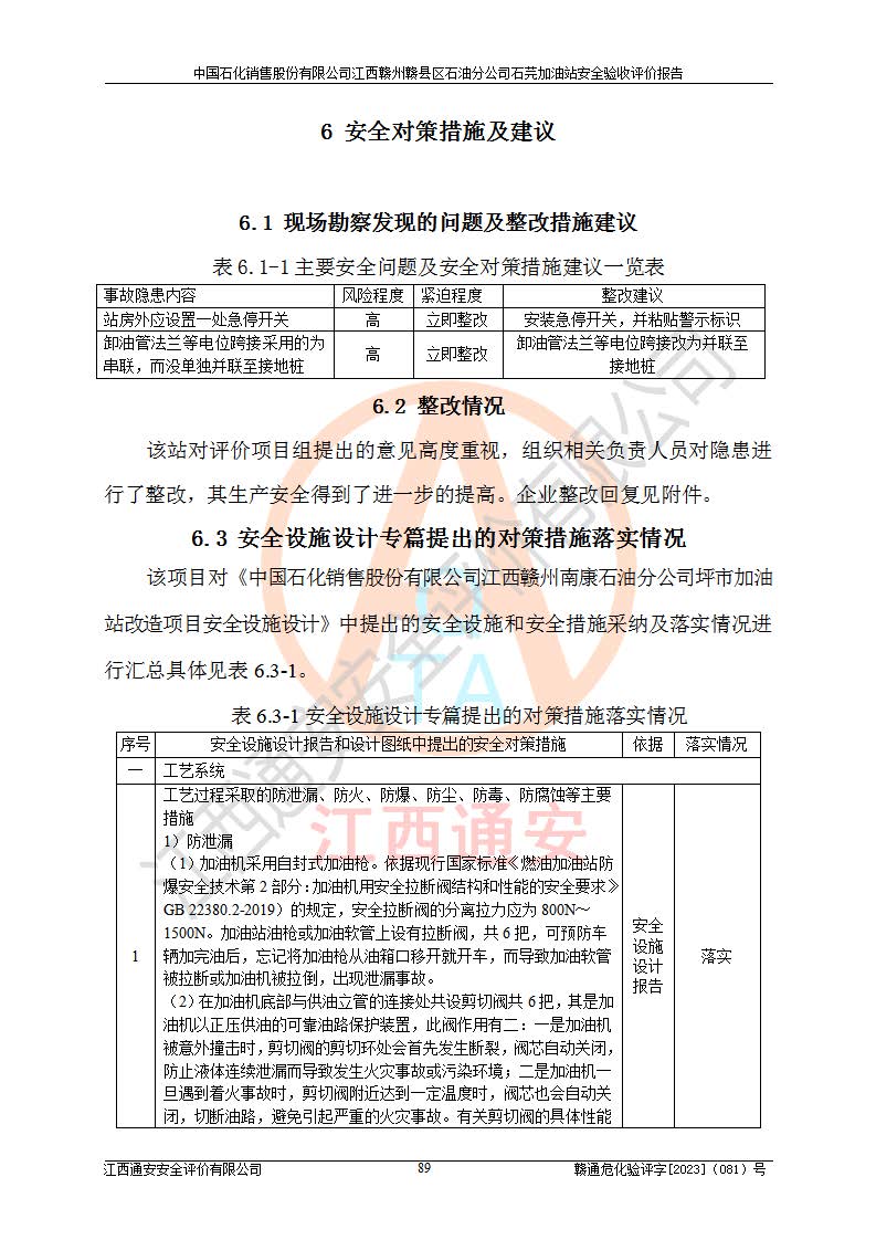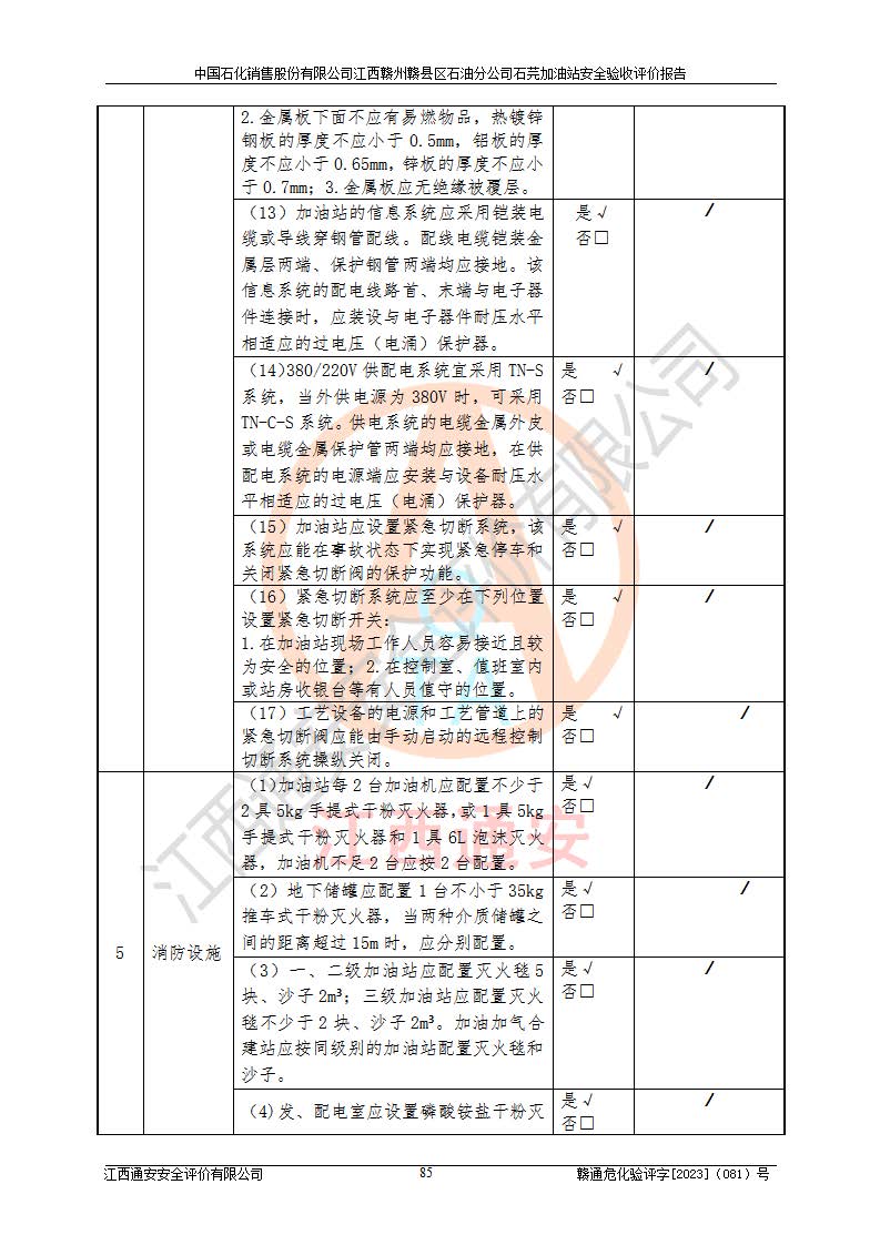 项目名称 | 中国石化销售股份有限公司江西赣州赣县区石油分公司石芫加油站安全验收评价报告 | ||||