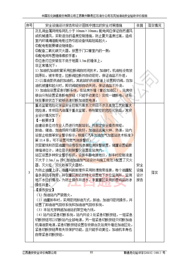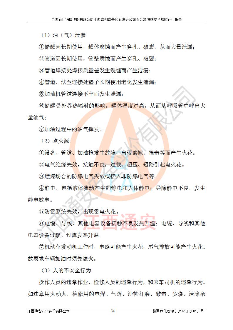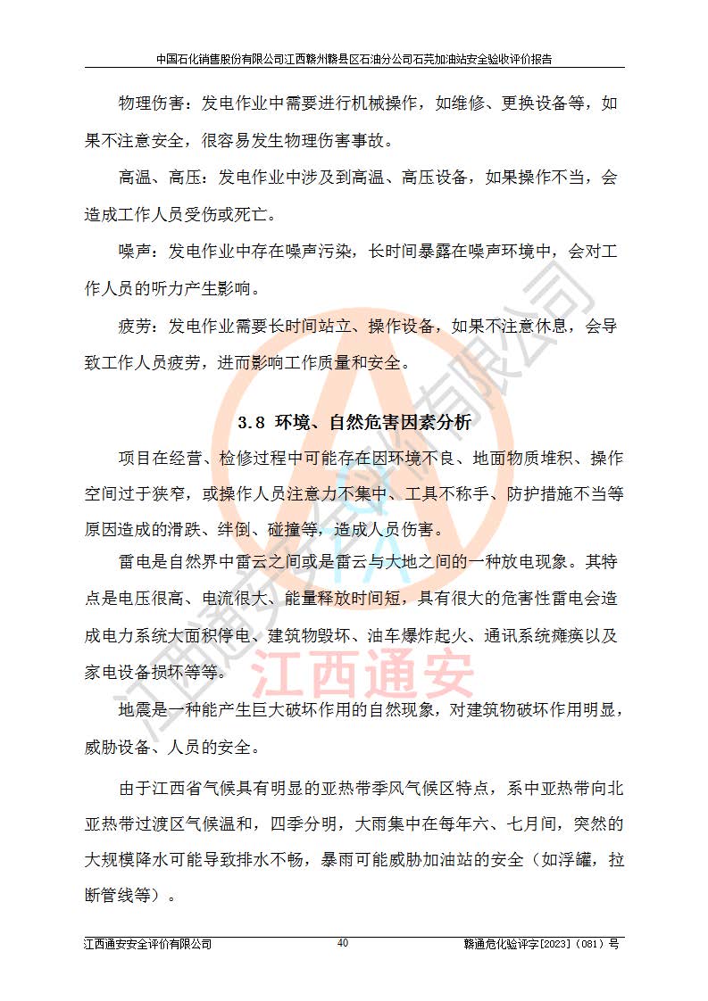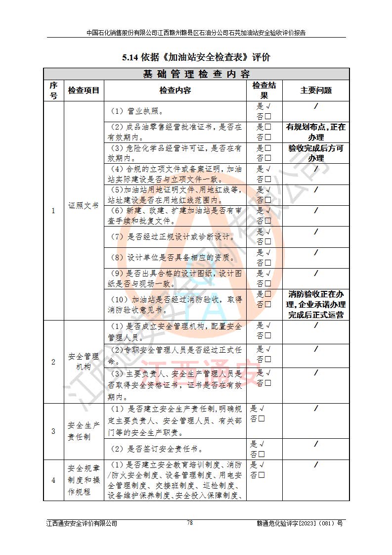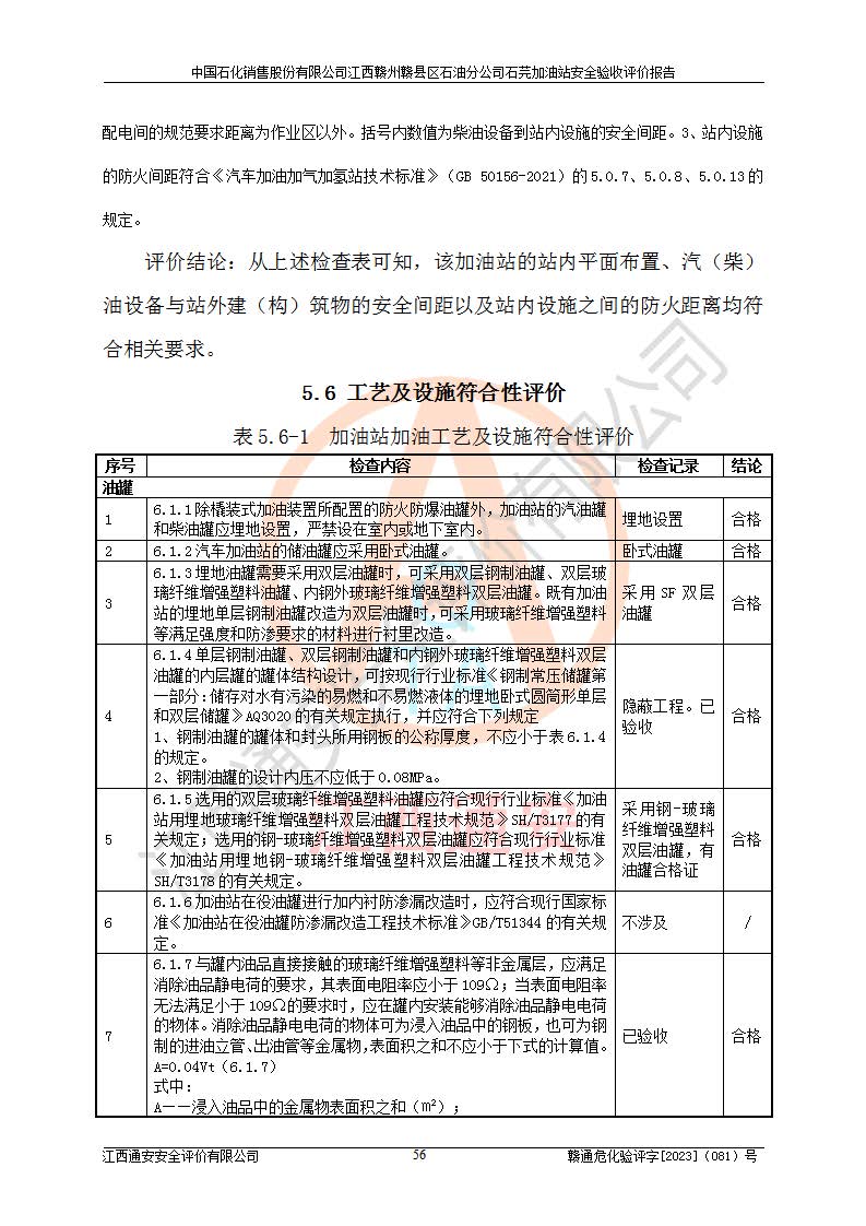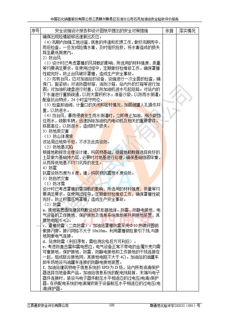 项目名称 | 中国石化销售股份有限公司江西赣州赣县区石油分公司石芫加油站安全验收评价报告 | ||||