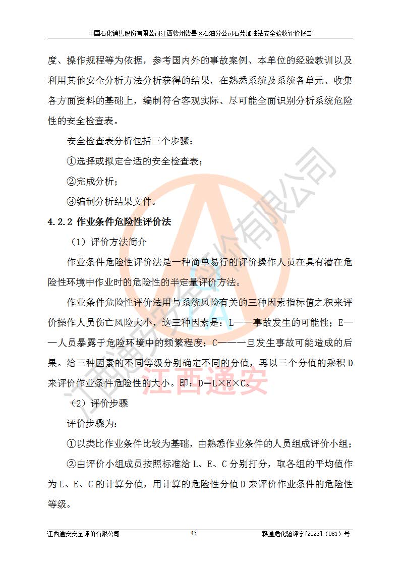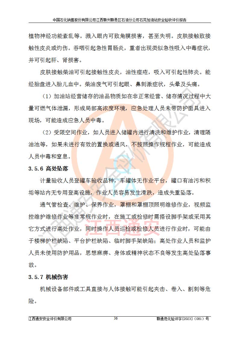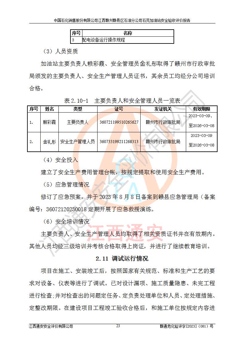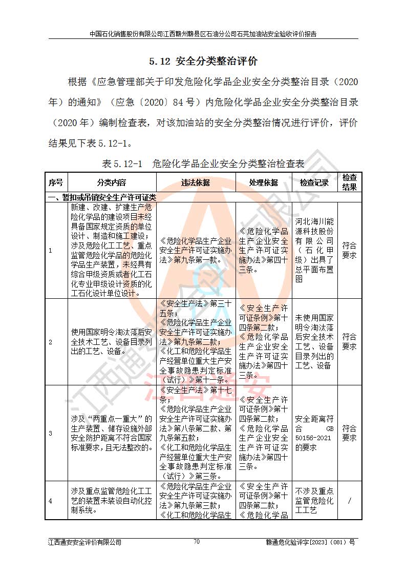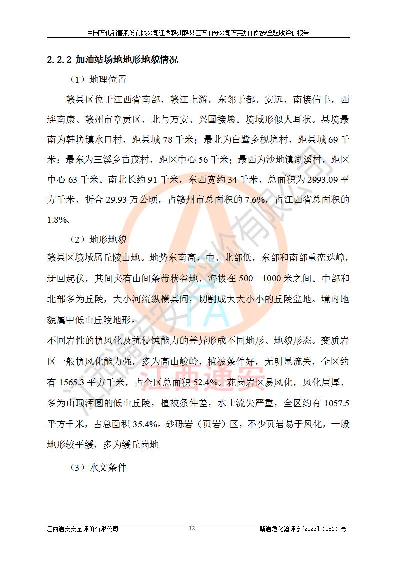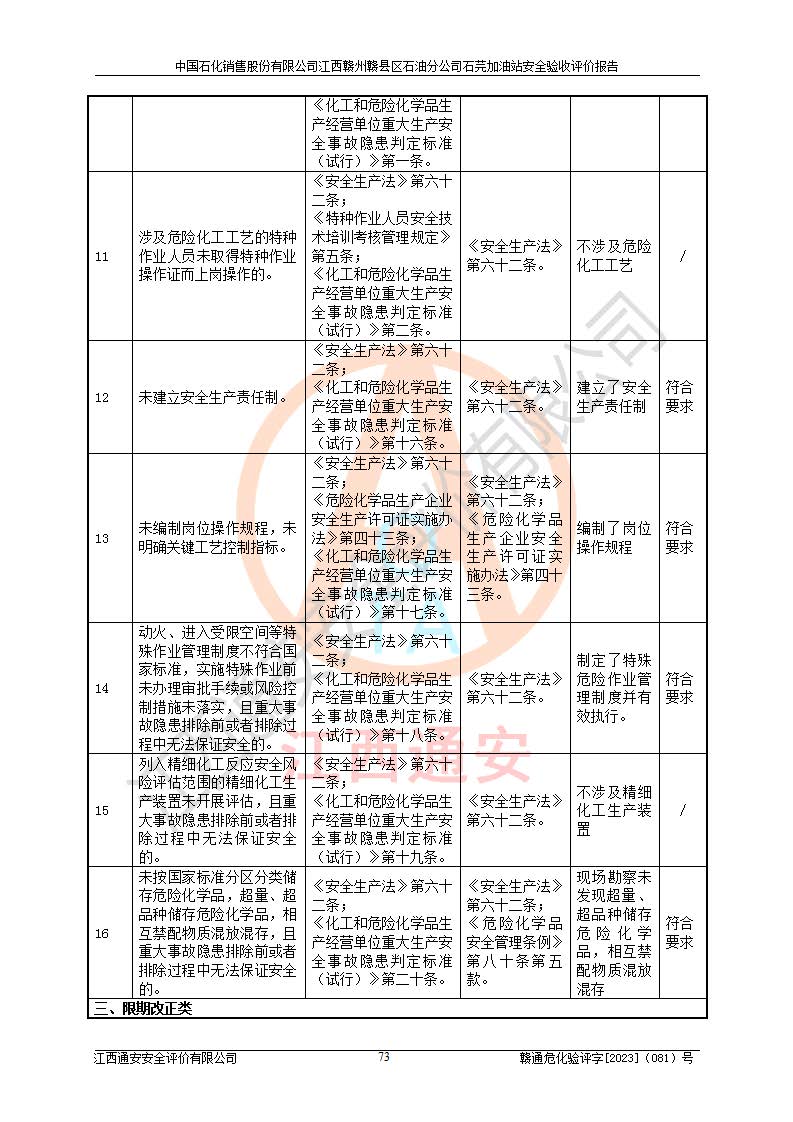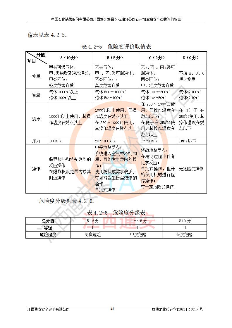 项目名称 | 中国石化销售股份有限公司江西赣州赣县区石油分公司石芫加油站安全验收评价报告 | ||||