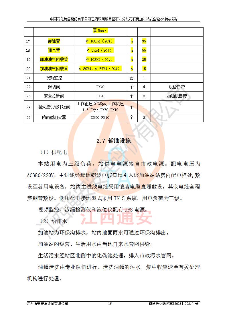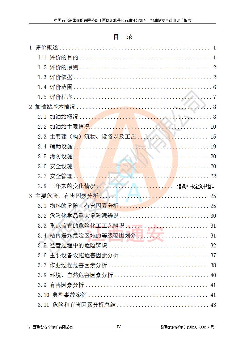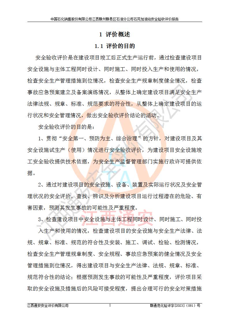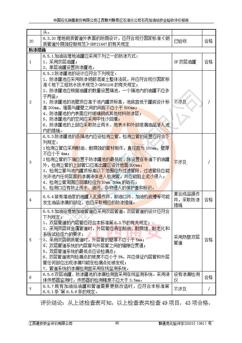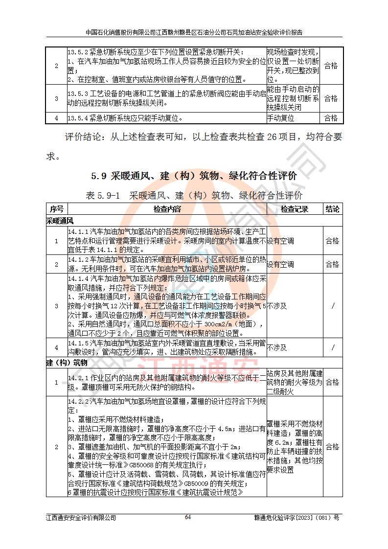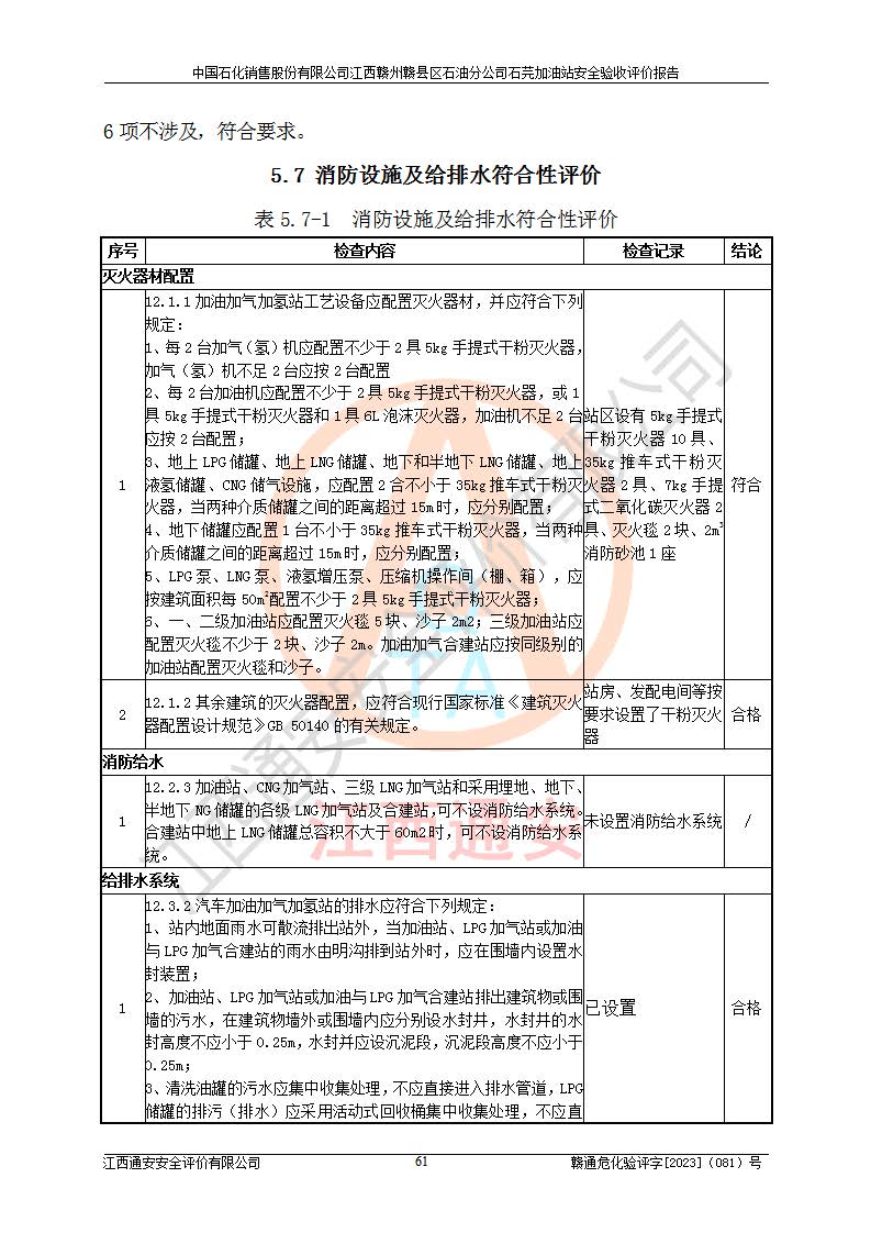 项目名称 | 中国石化销售股份有限公司江西赣州赣县区石油分公司石芫加油站安全验收评价报告 | ||||