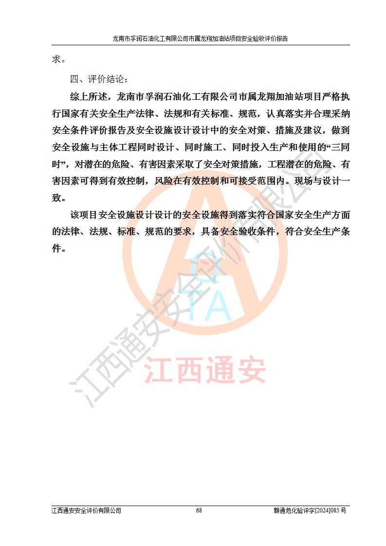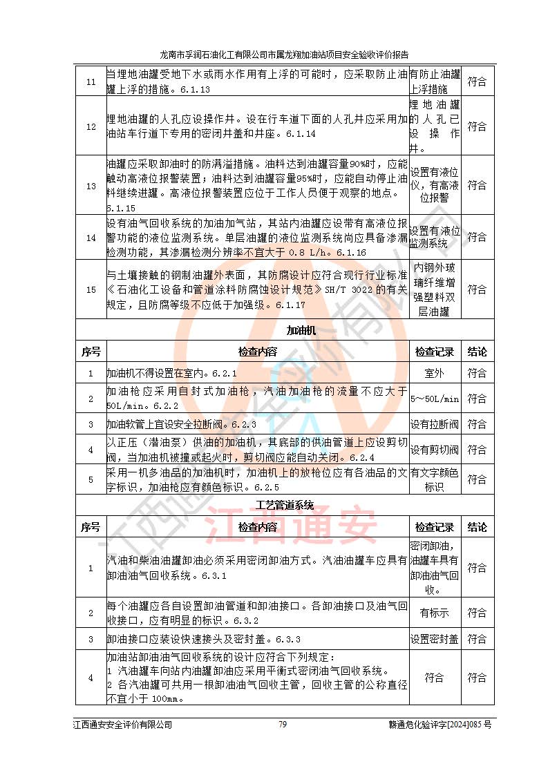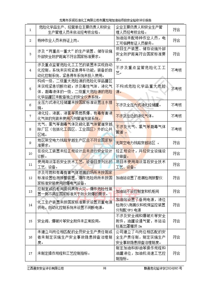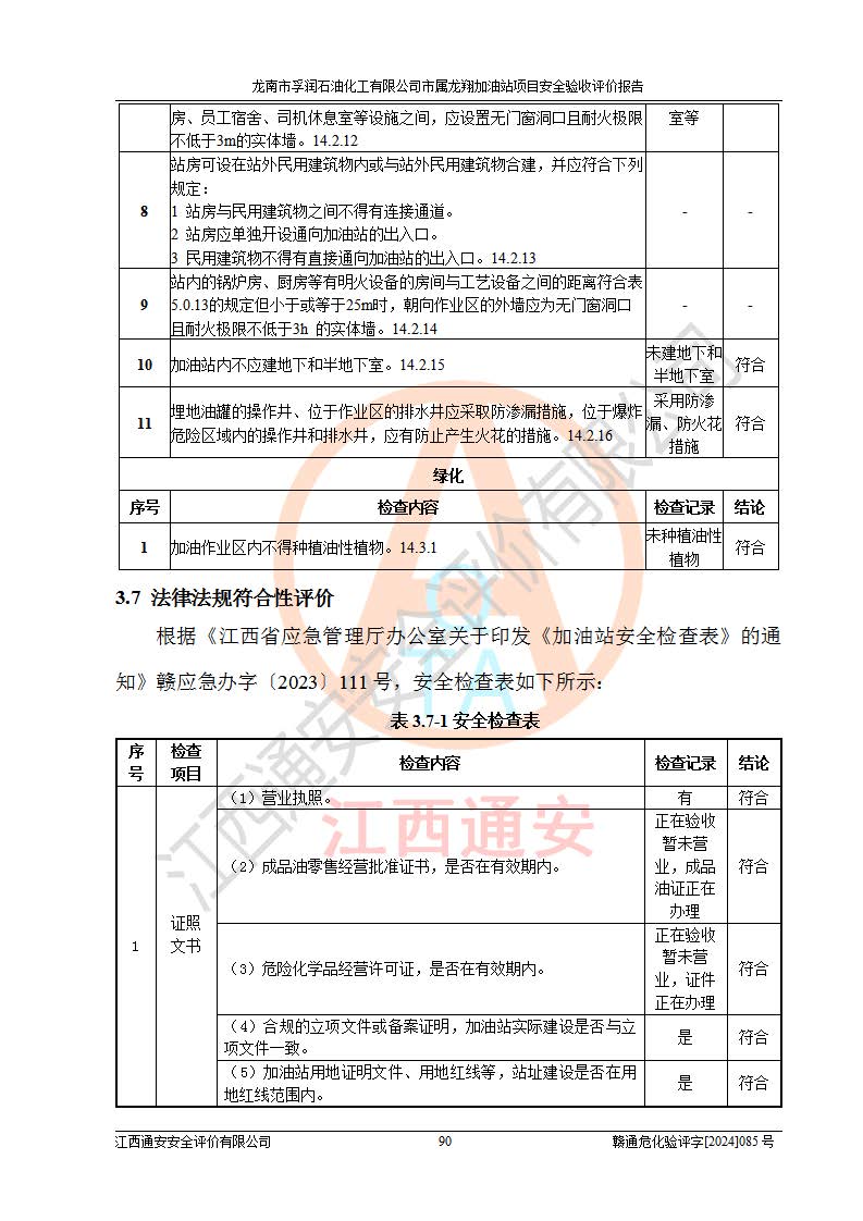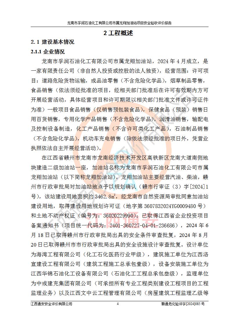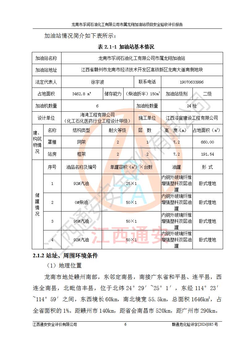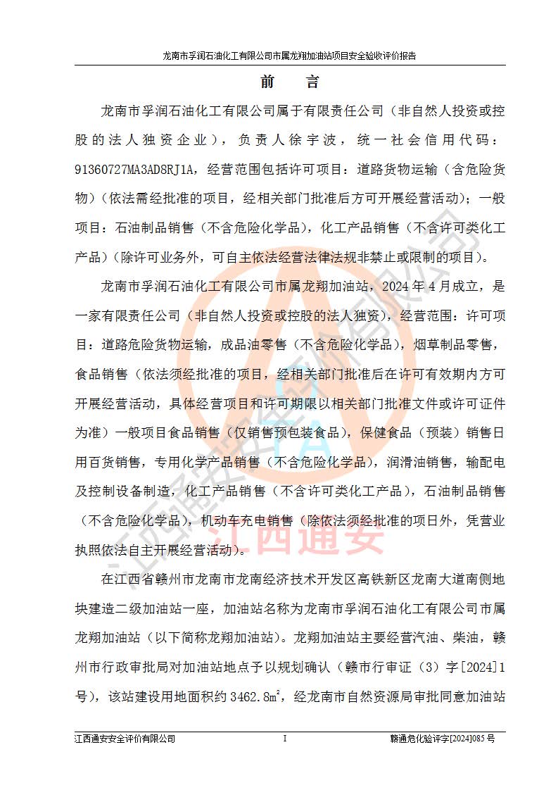 项目名称 | 龙南市孚润石油化工有限公司市属龙翔加油站项目安全验收评价报告 | ||||