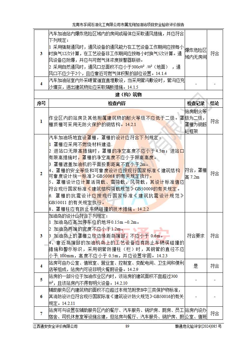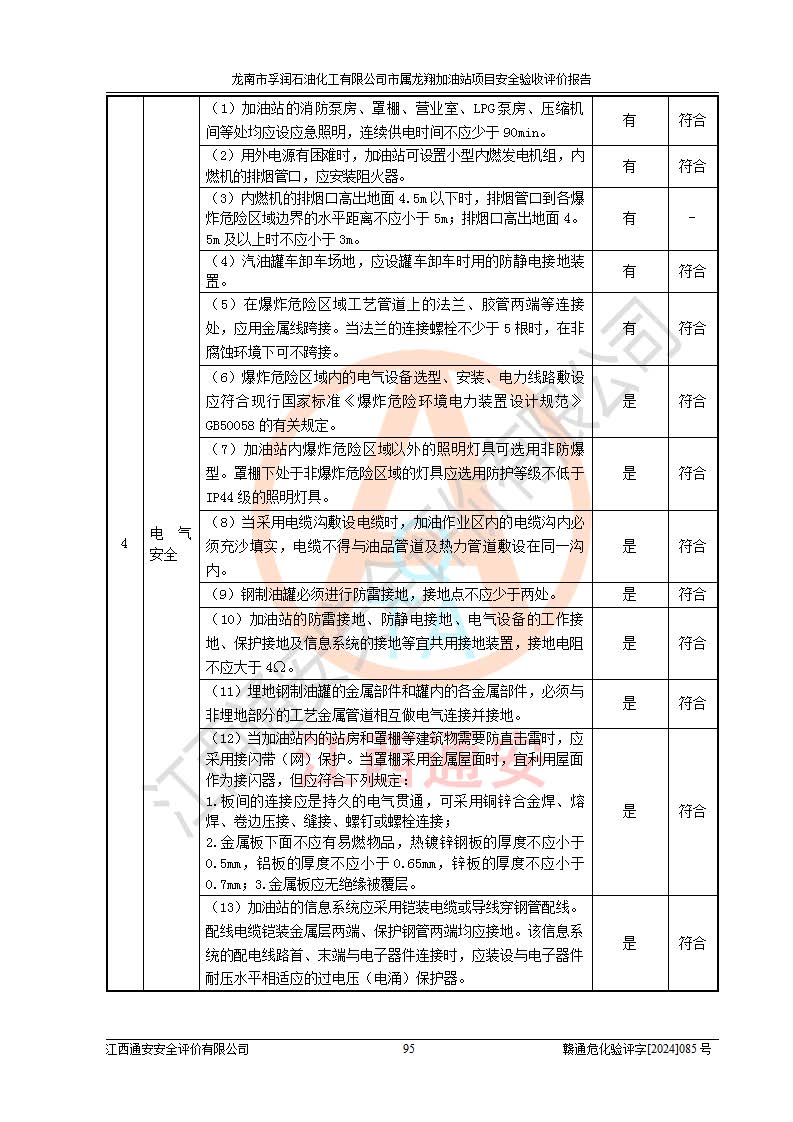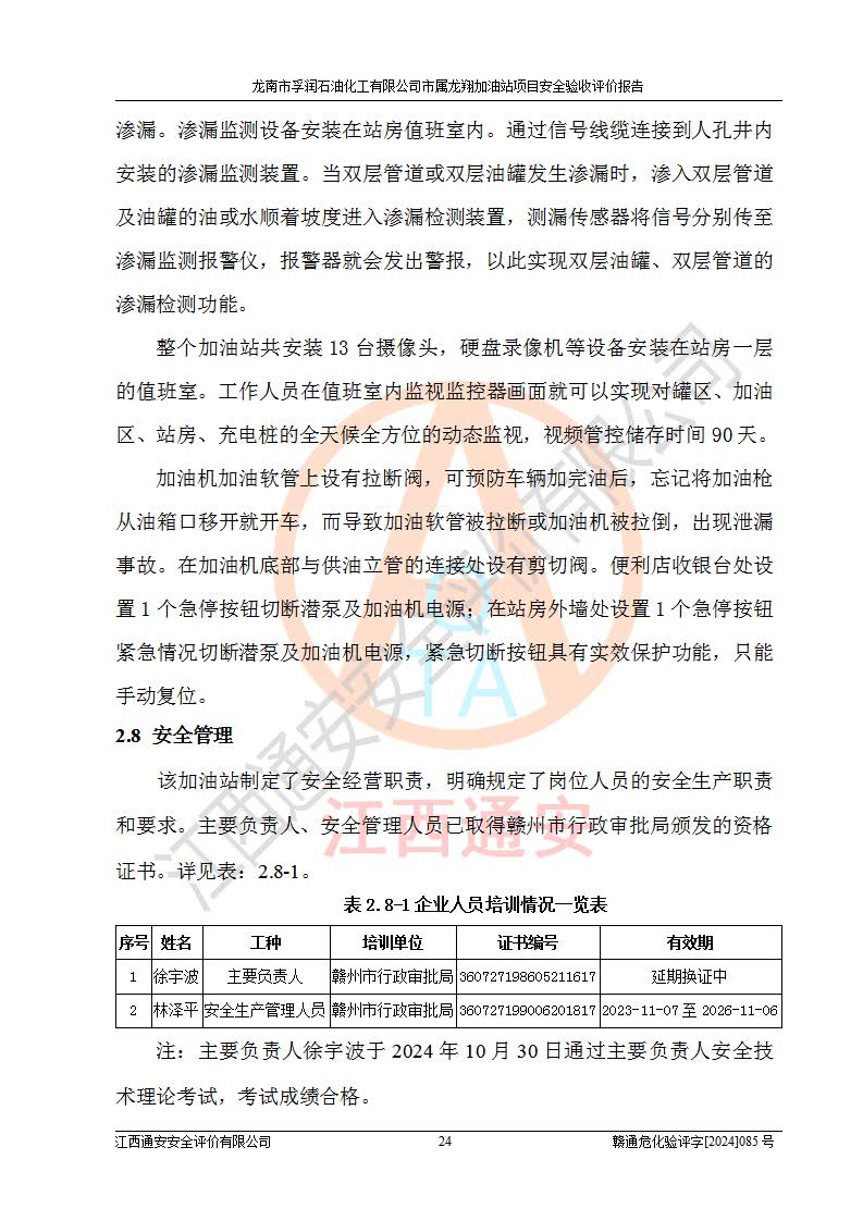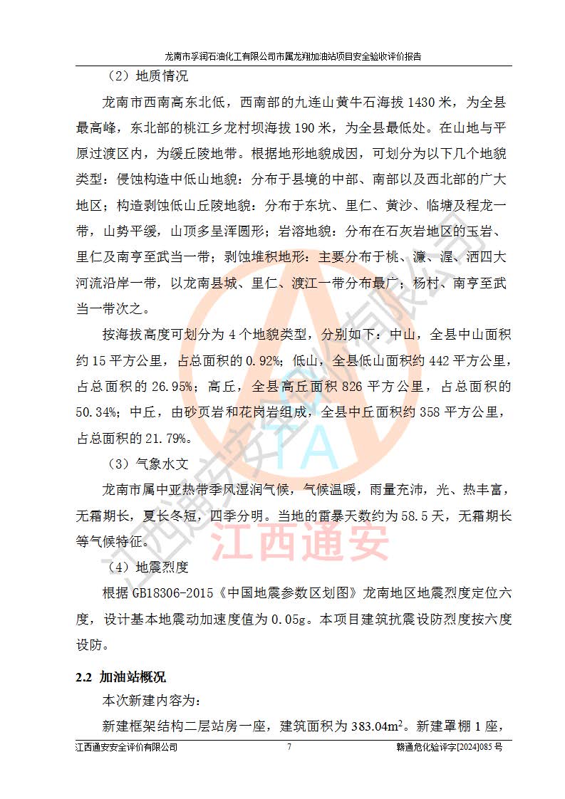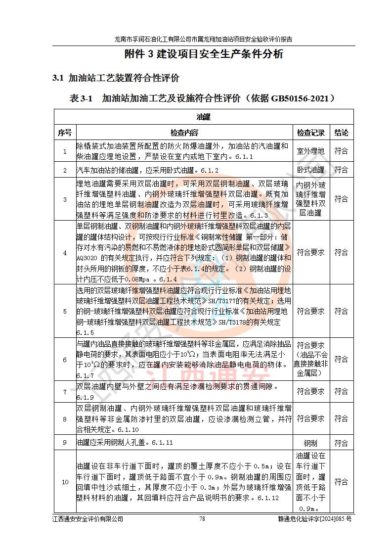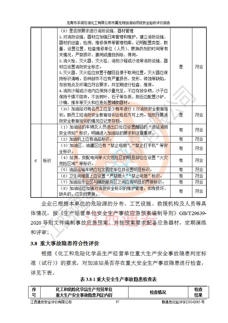 项目名称 | 龙南市孚润石油化工有限公司市属龙翔加油站项目安全验收评价报告 | ||||