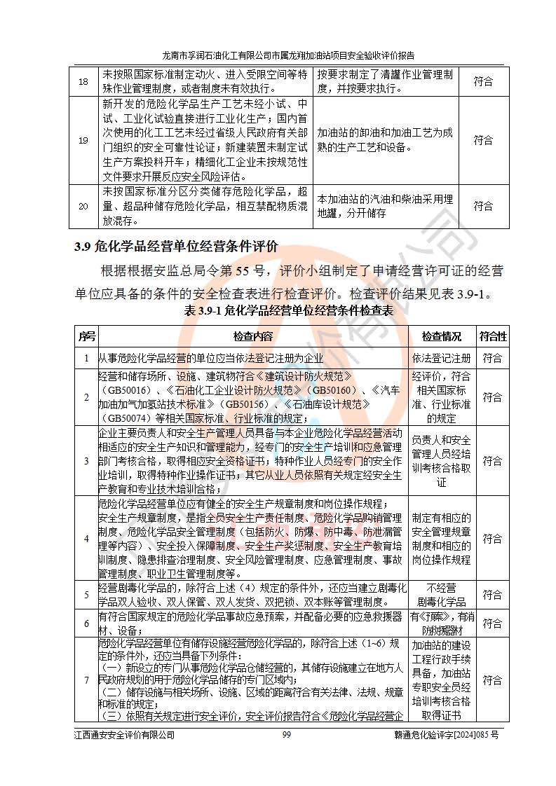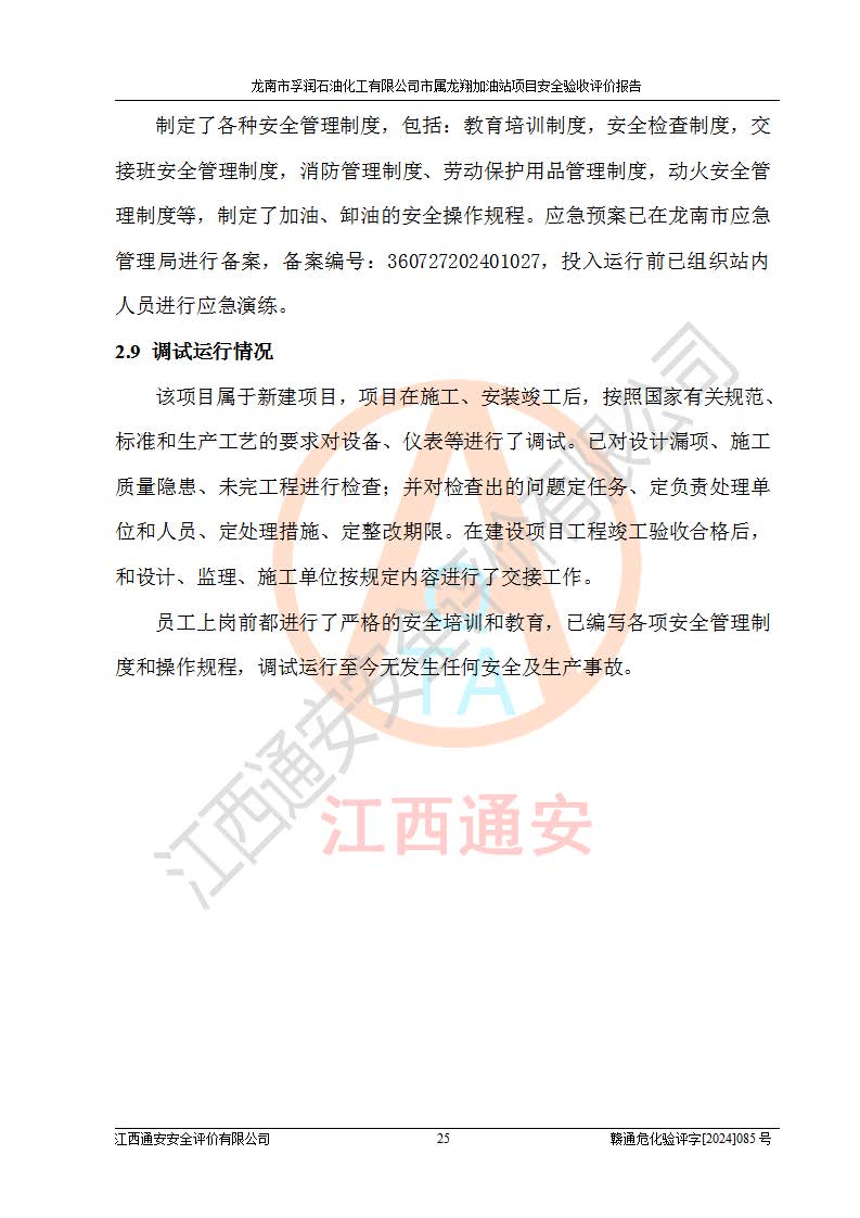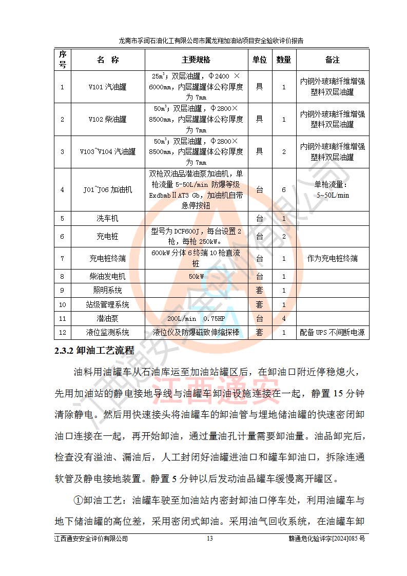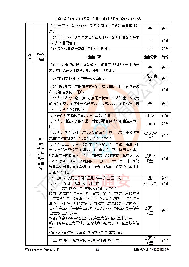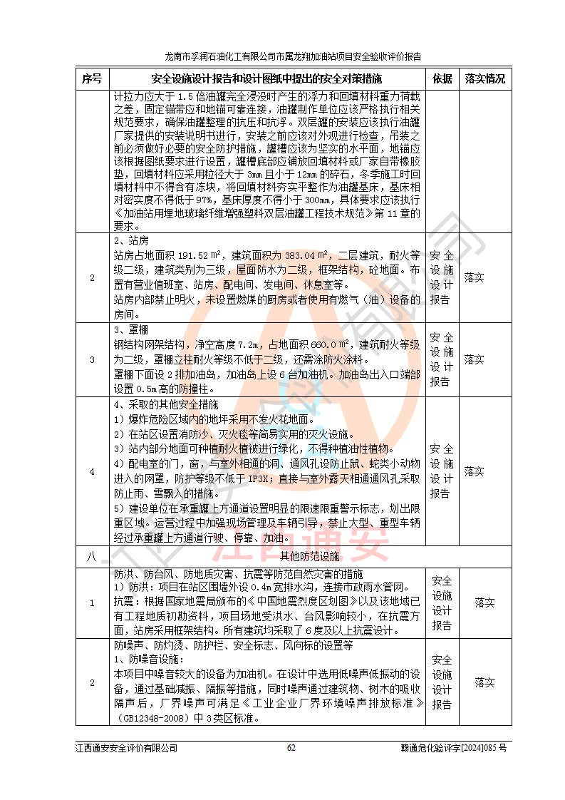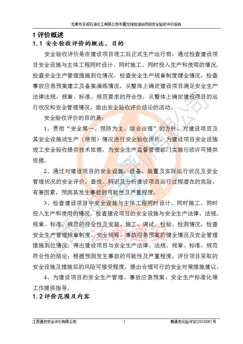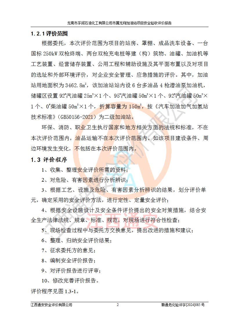 项目名称 | 龙南市孚润石油化工有限公司市属龙翔加油站项目安全验收评价报告 | ||||