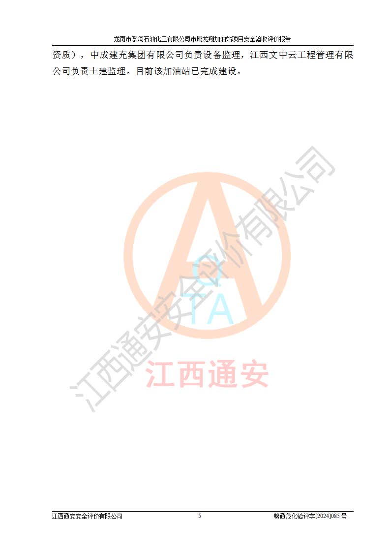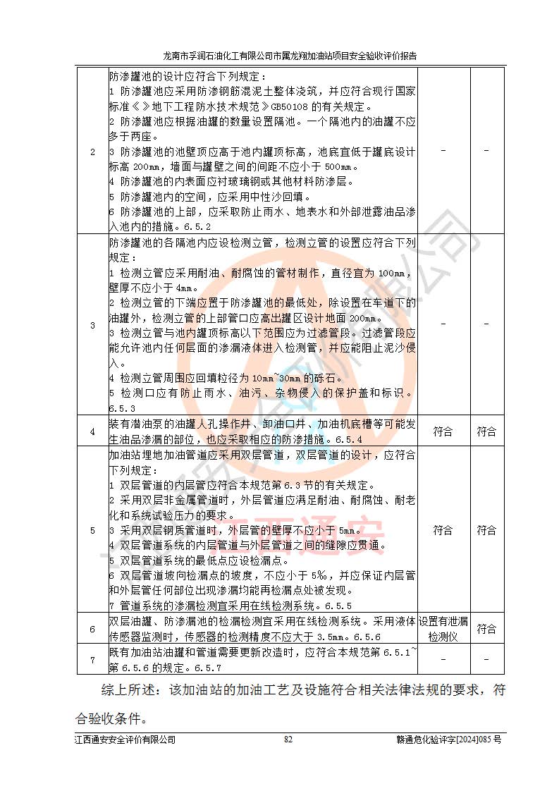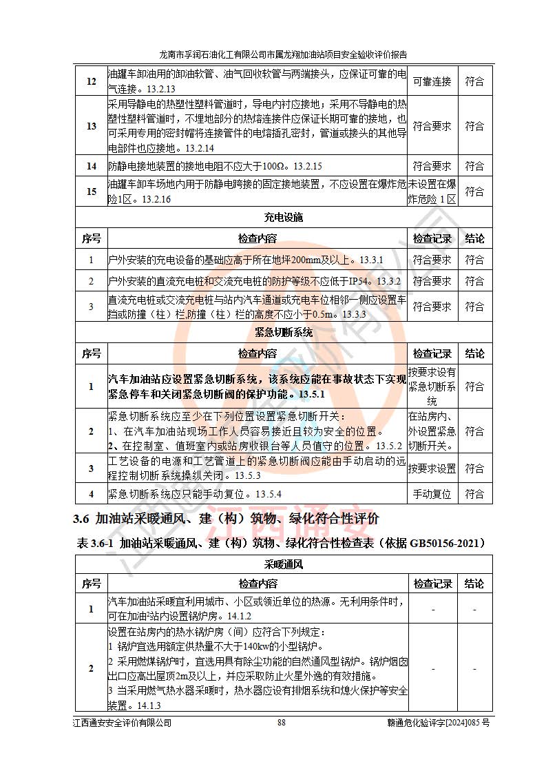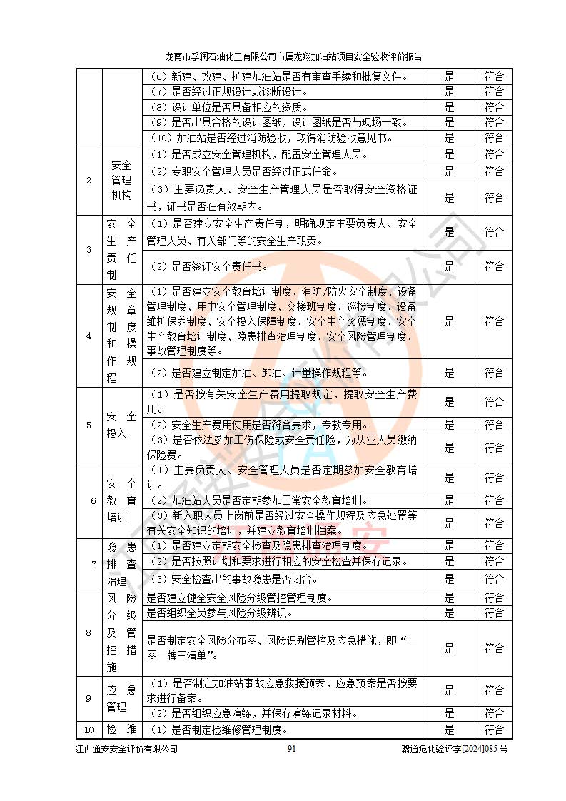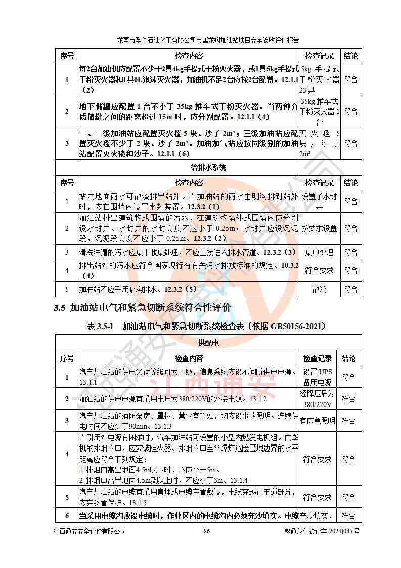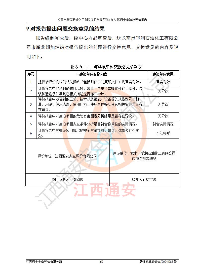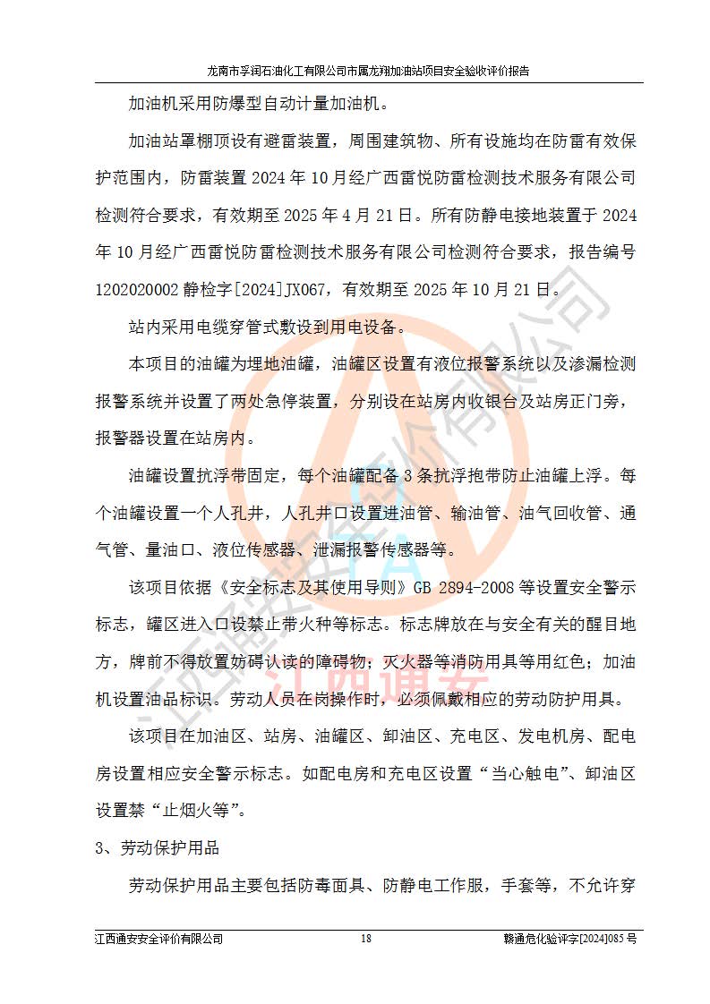 项目名称 | 龙南市孚润石油化工有限公司市属龙翔加油站项目安全验收评价报告 | ||||