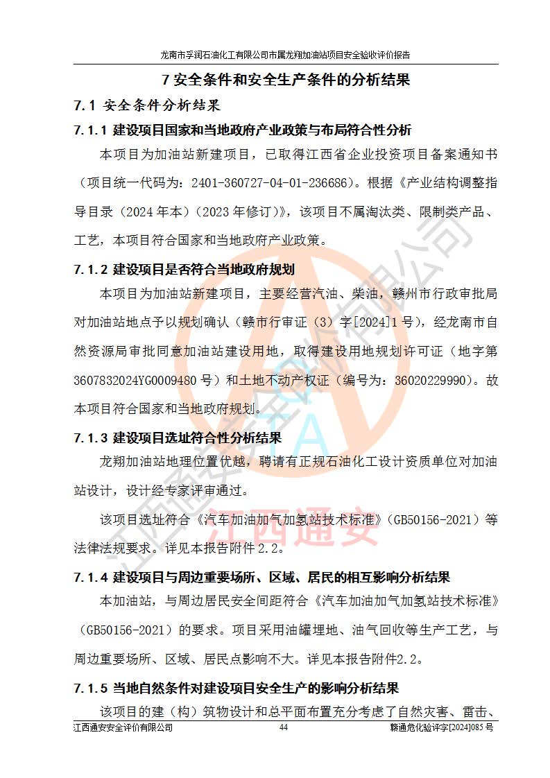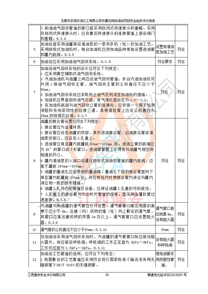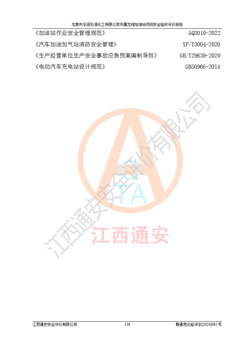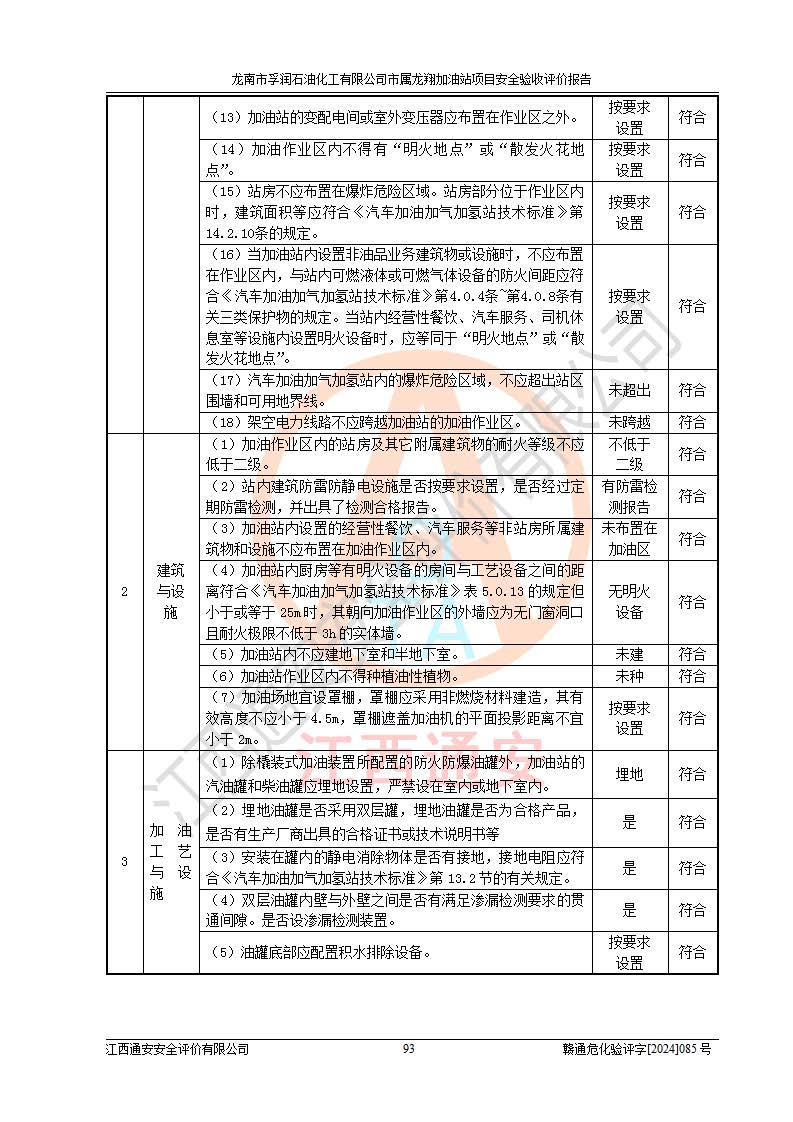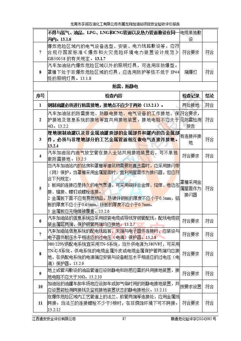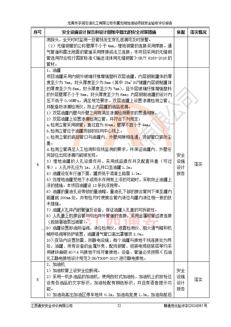 项目名称 | 龙南市孚润石油化工有限公司市属龙翔加油站项目安全验收评价报告 | ||||