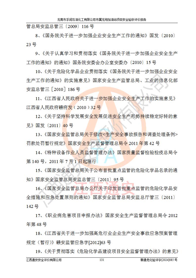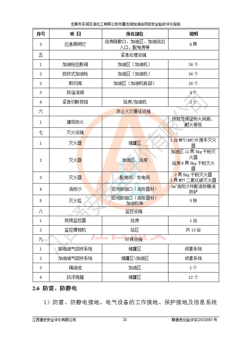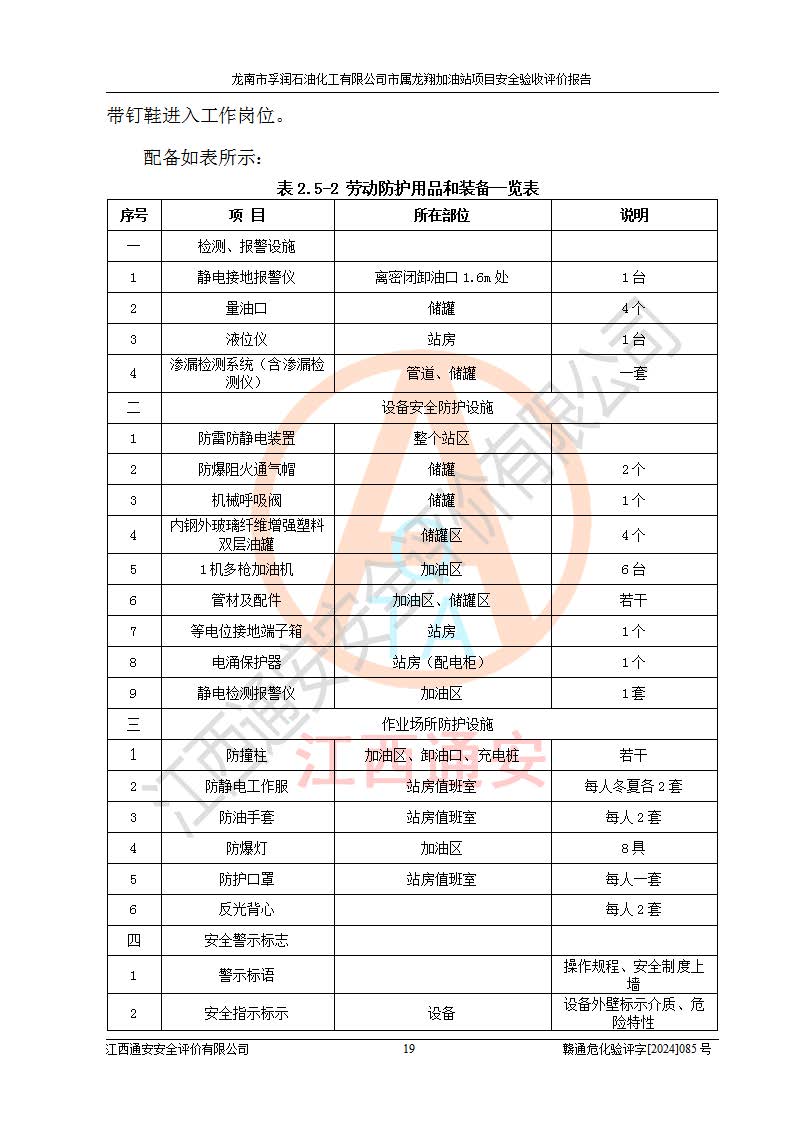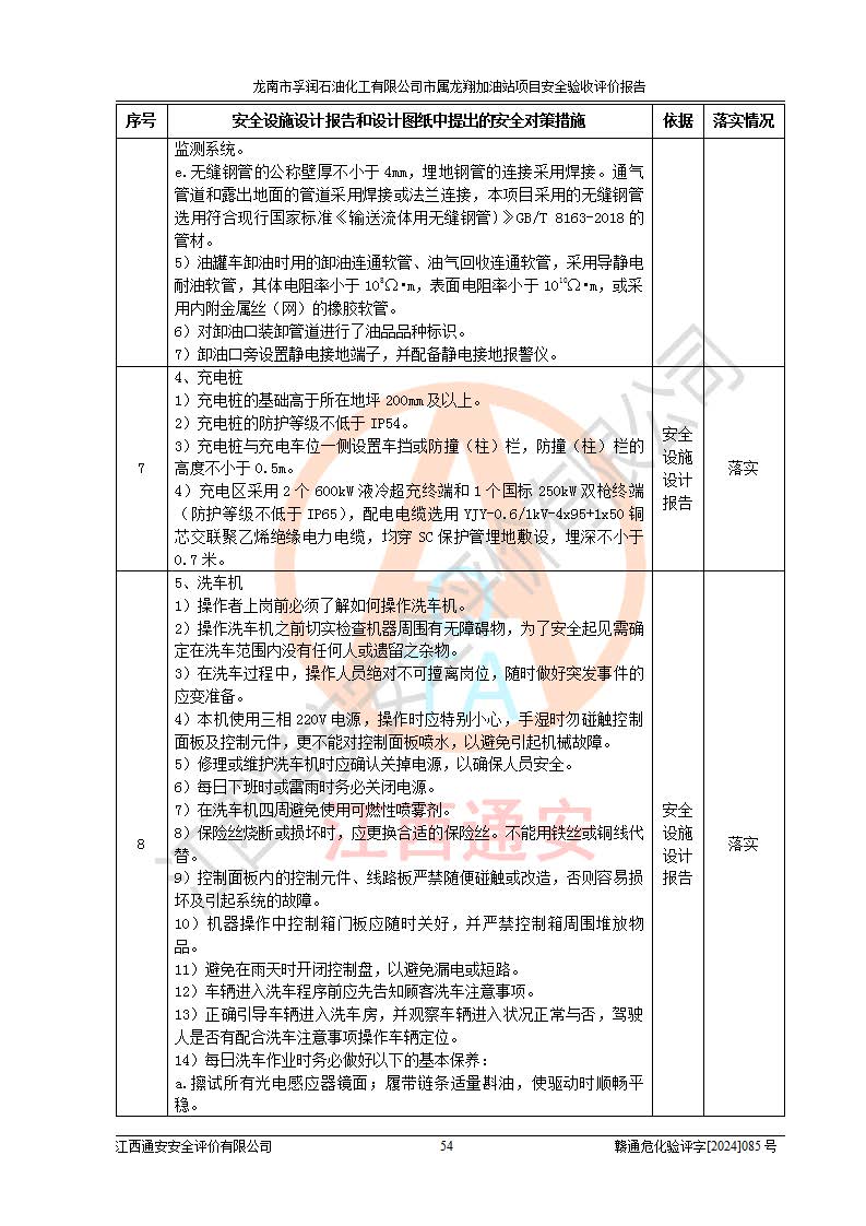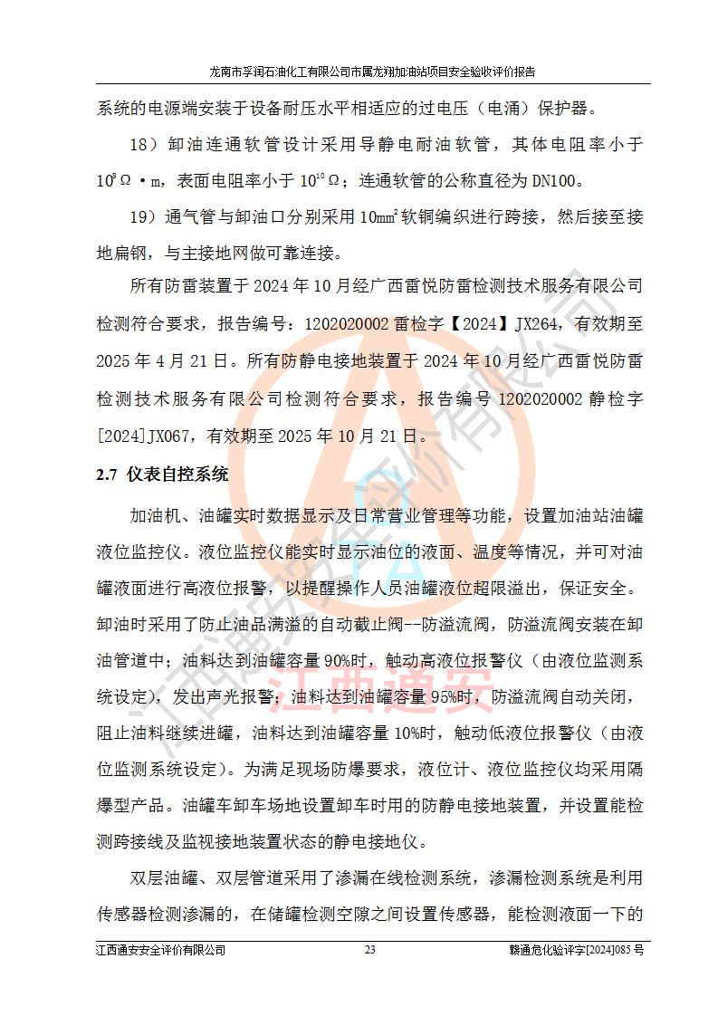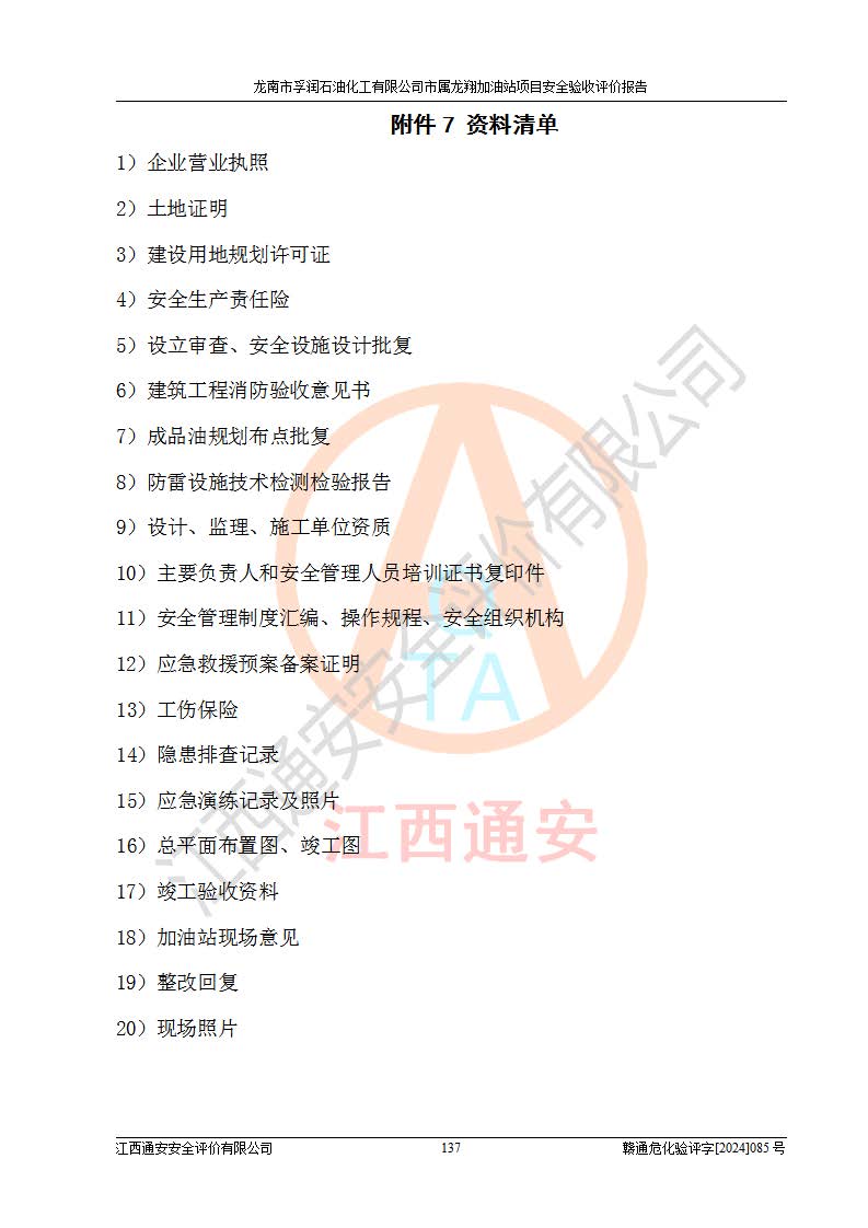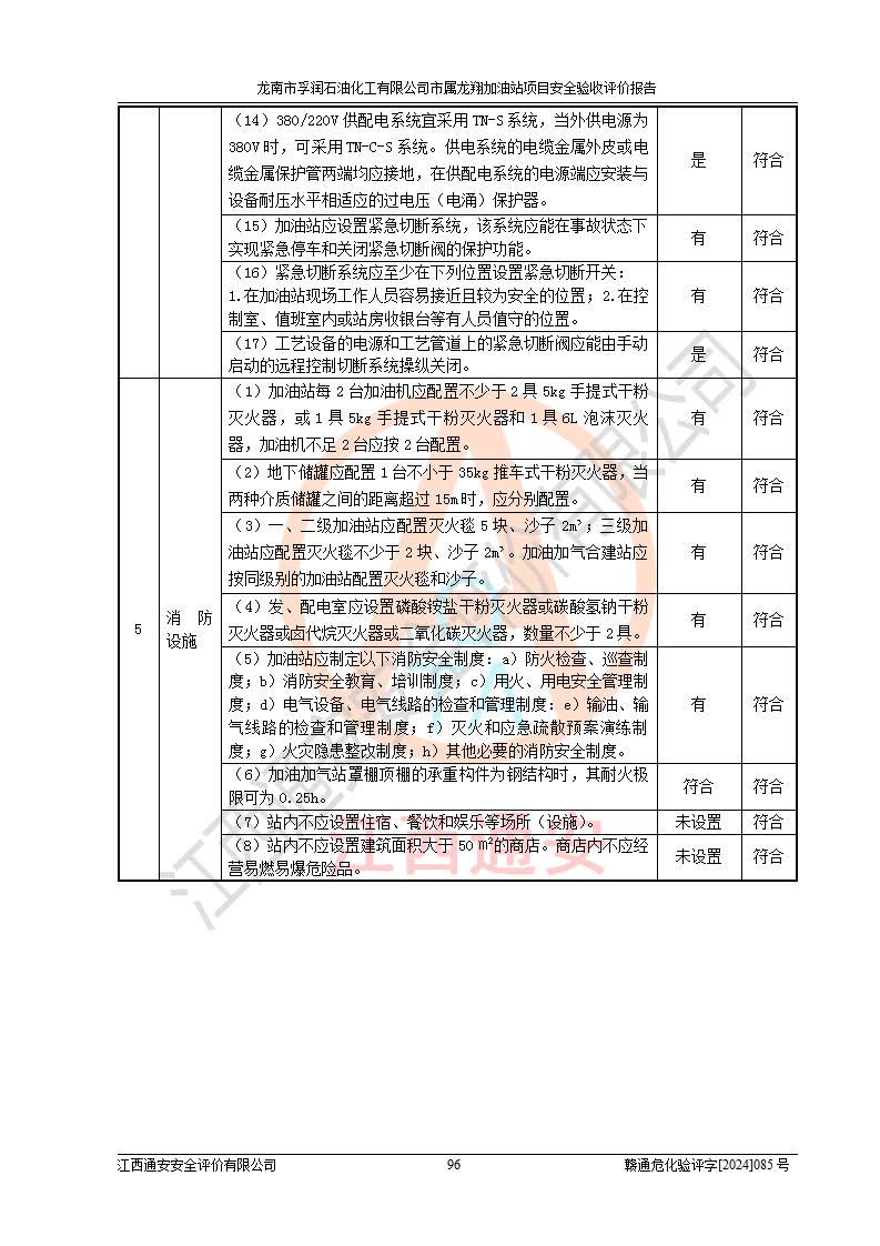 项目名称 | 龙南市孚润石油化工有限公司市属龙翔加油站项目安全验收评价报告 | ||||