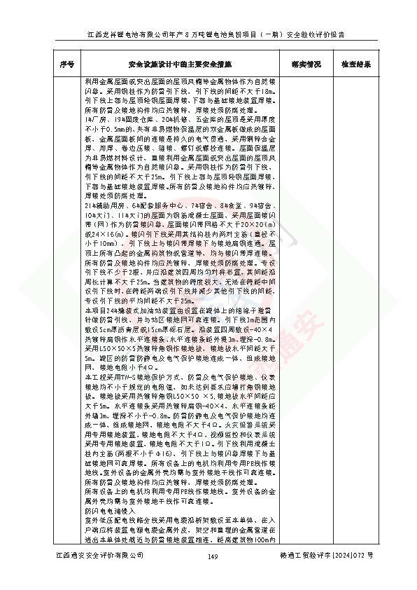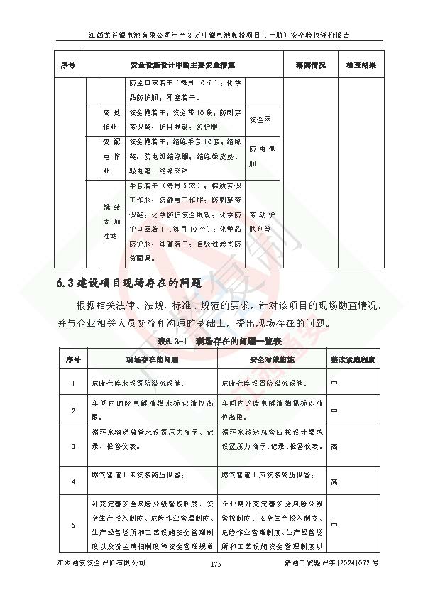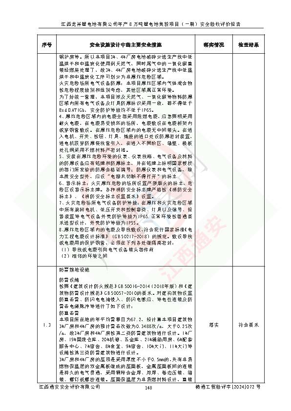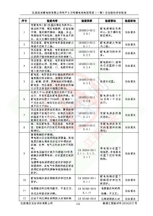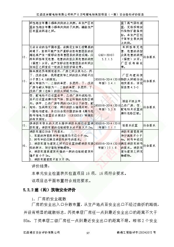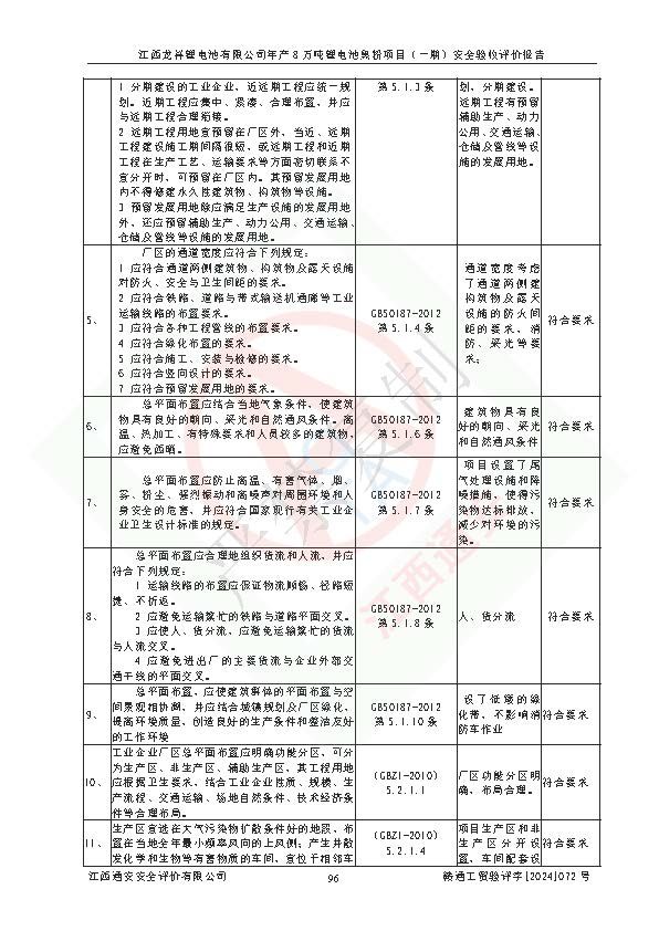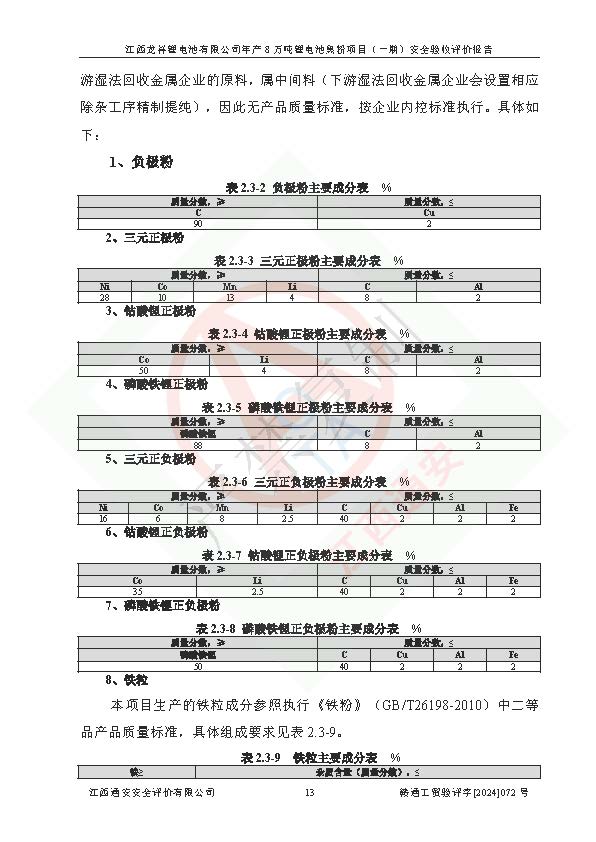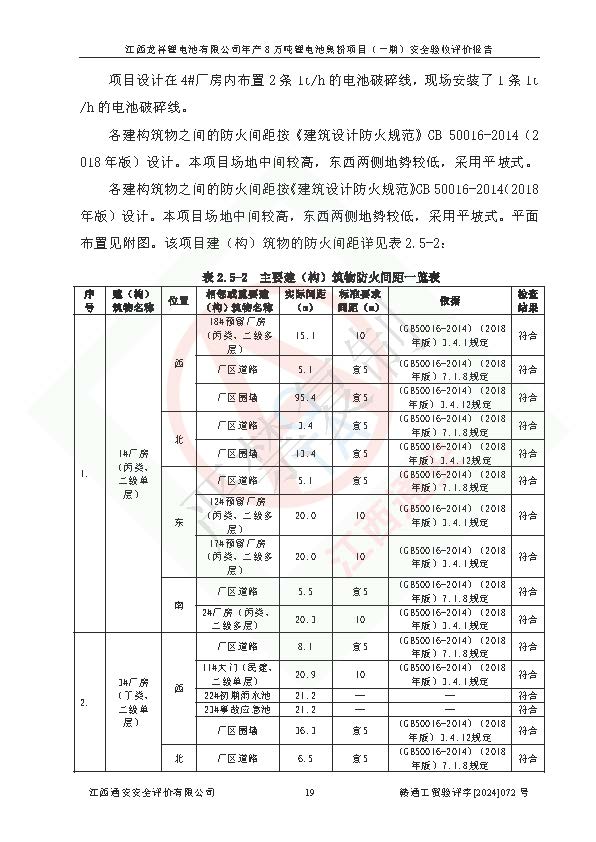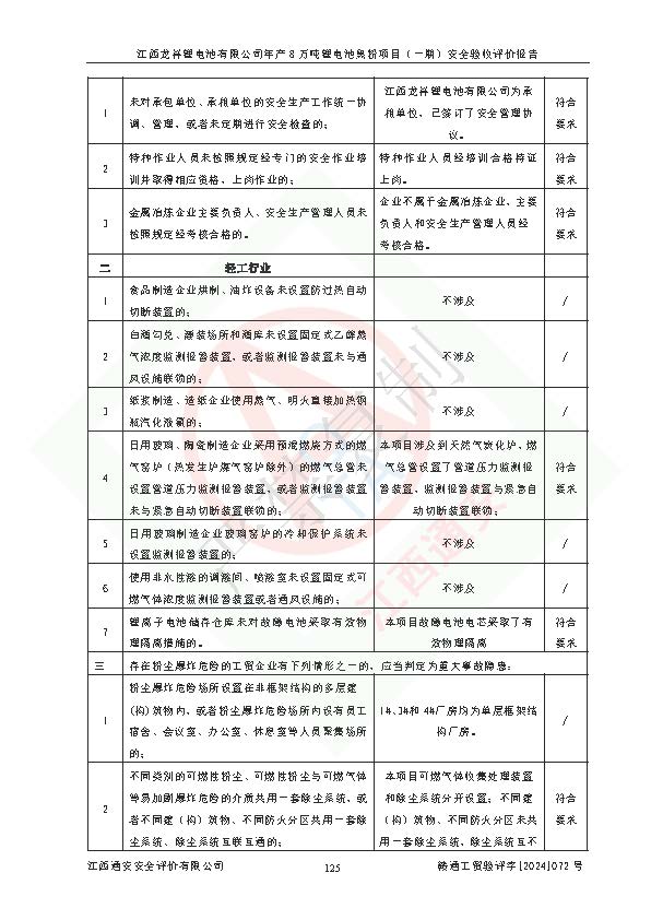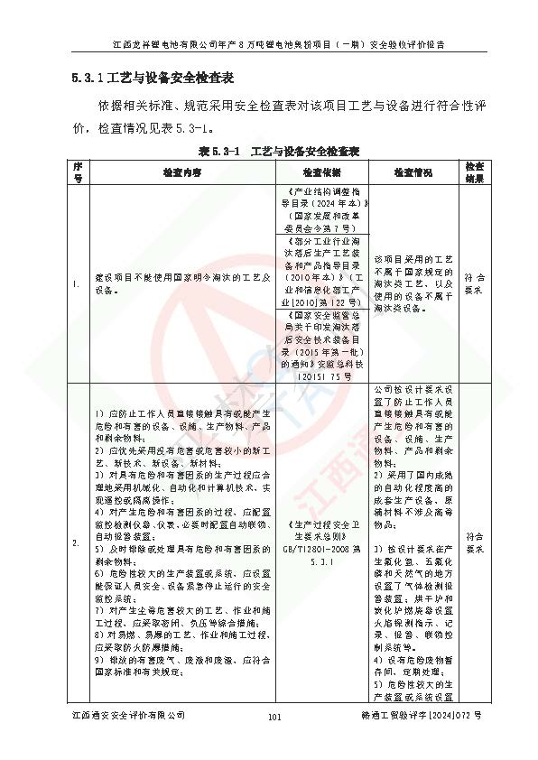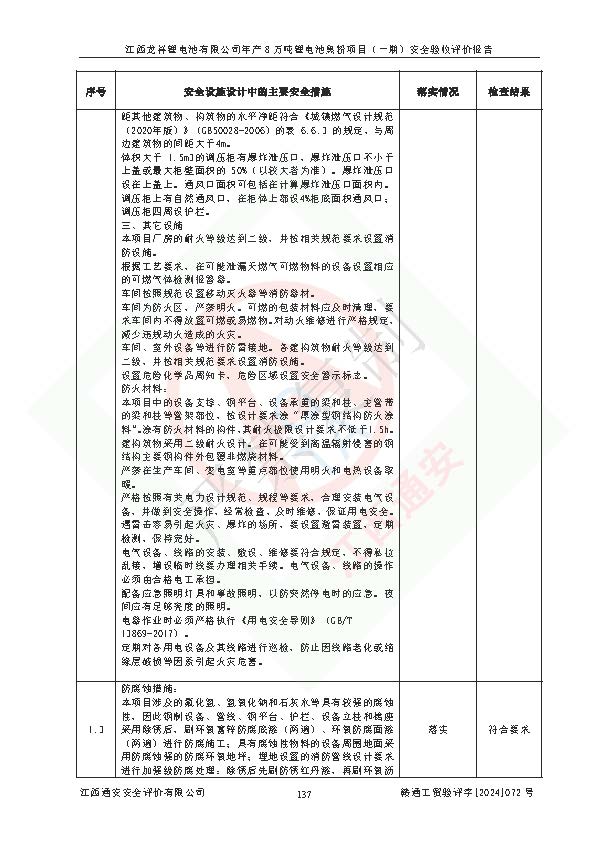 项目名称 | 江西龙祥锂电池有限公司年产8万吨锂电池黑粉项目(一期)安全验收评价报告 | ||||