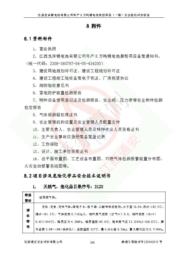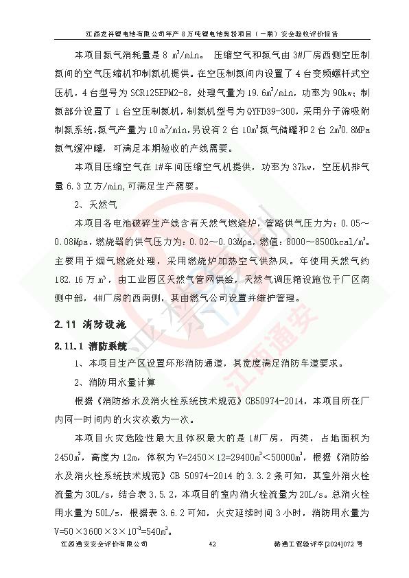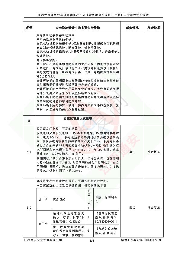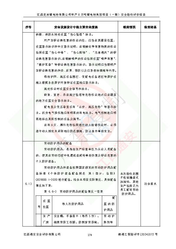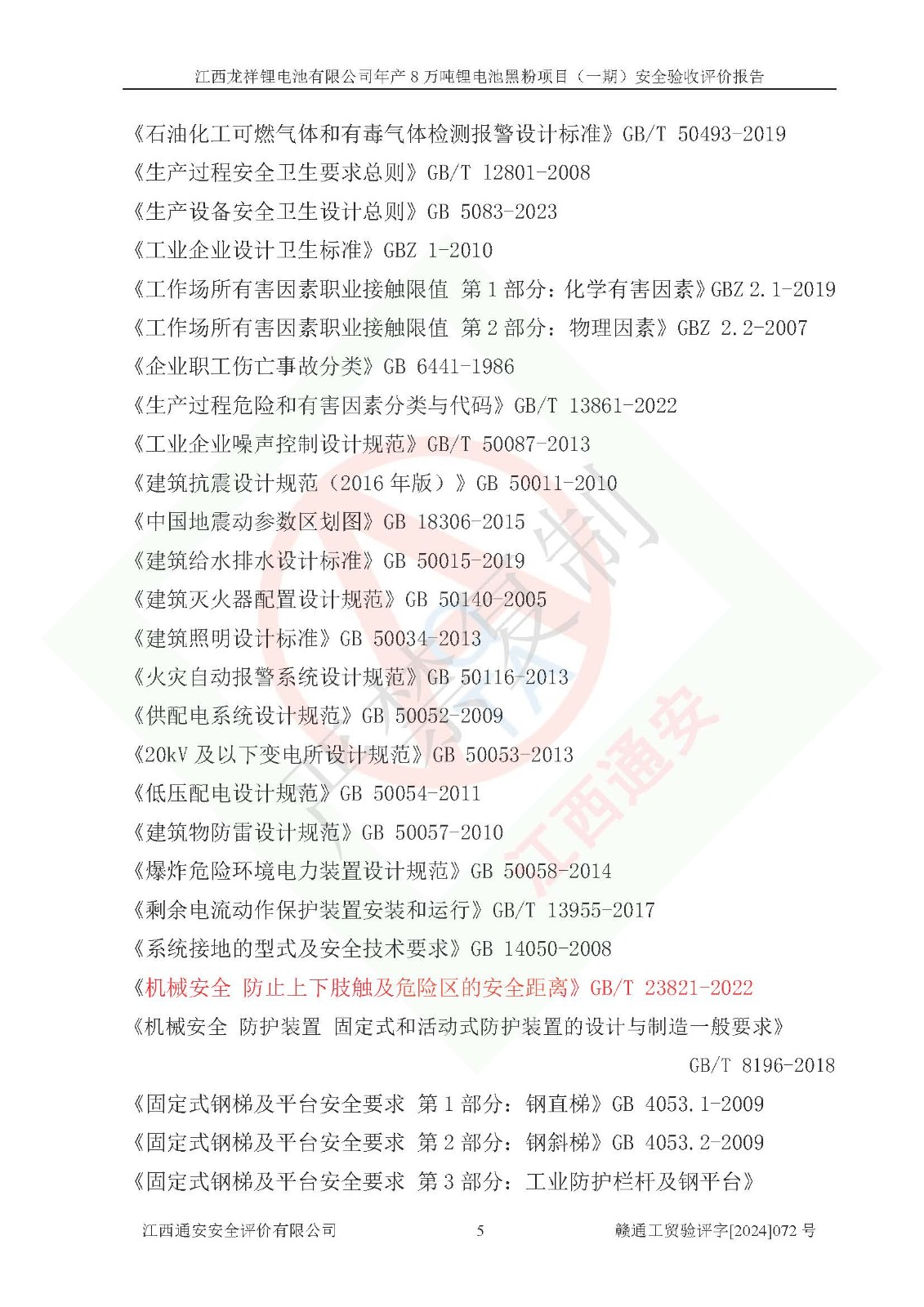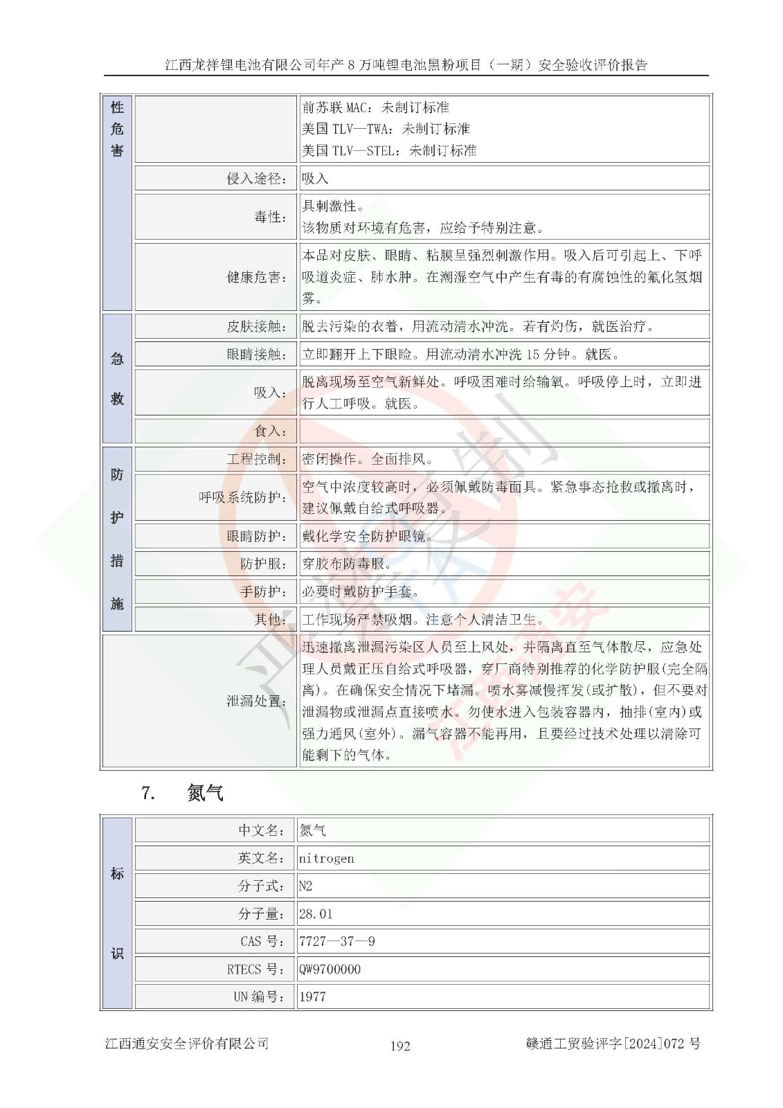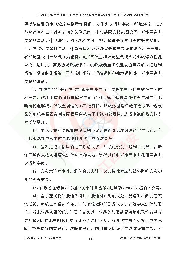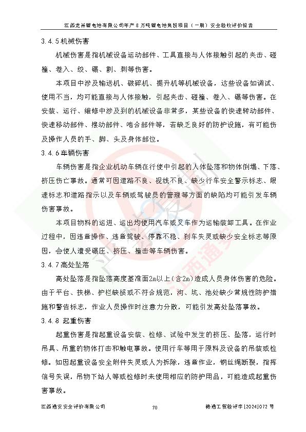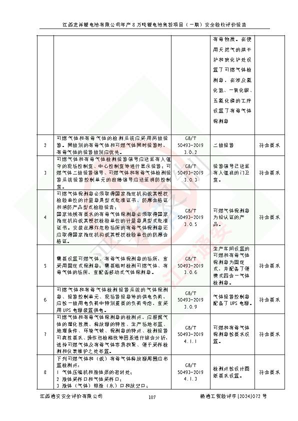 项目名称 | 江西龙祥锂电池有限公司年产8万吨锂电池黑粉项目(一期)安全验收评价报告 | ||||