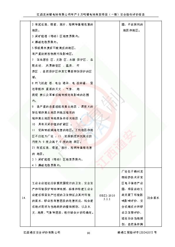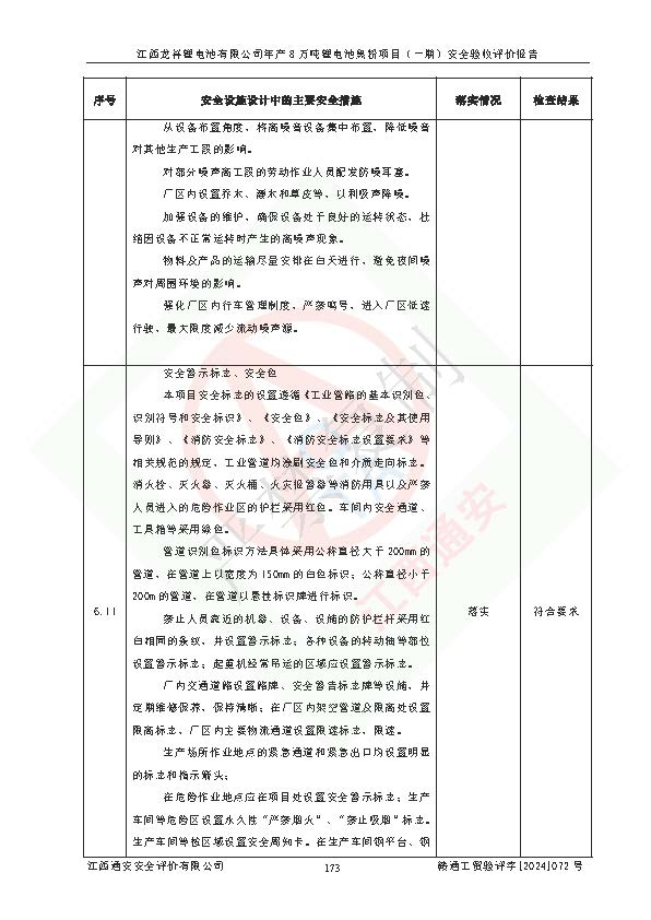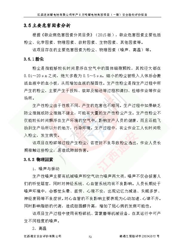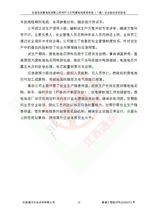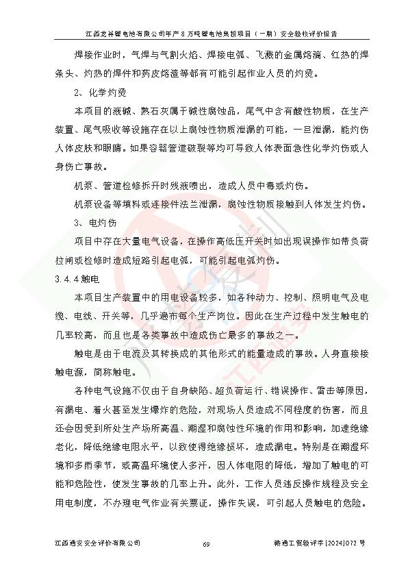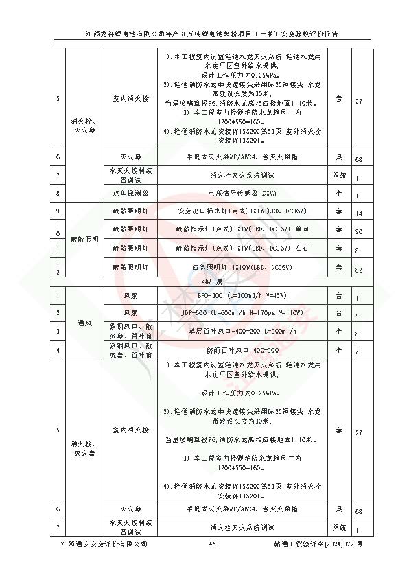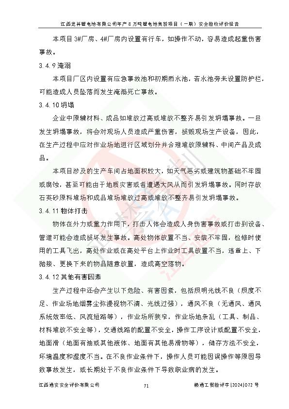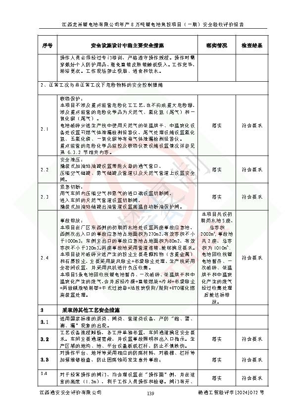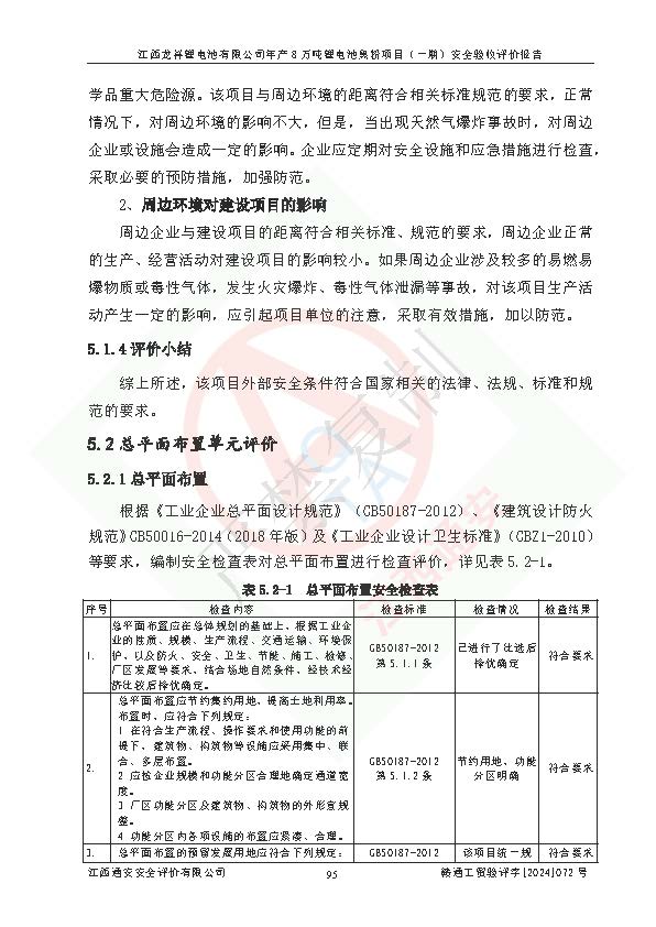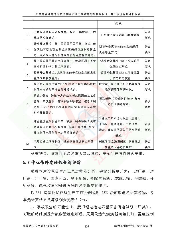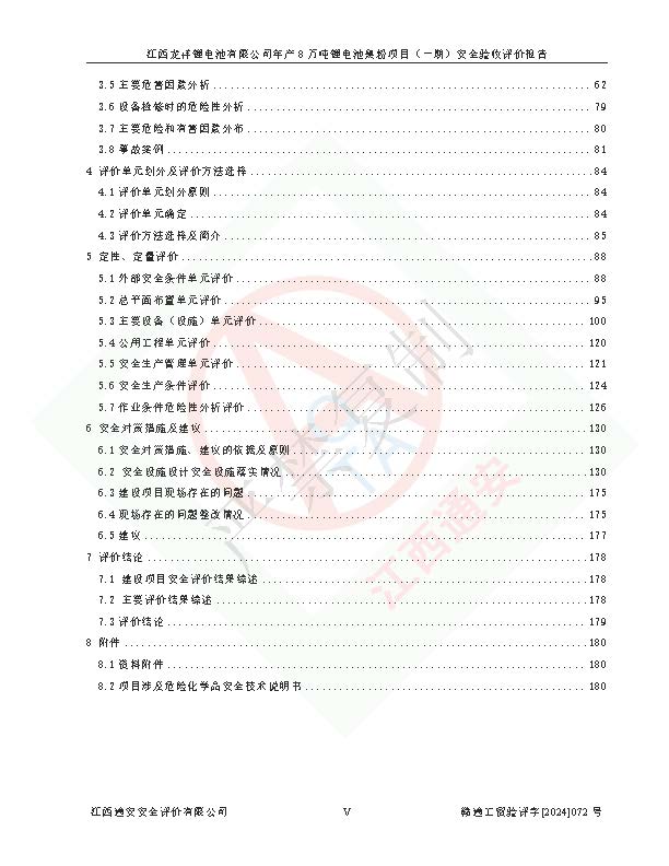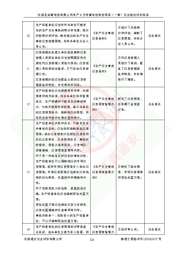 项目名称 | 江西龙祥锂电池有限公司年产8万吨锂电池黑粉项目(一期)安全验收评价报告 | ||||