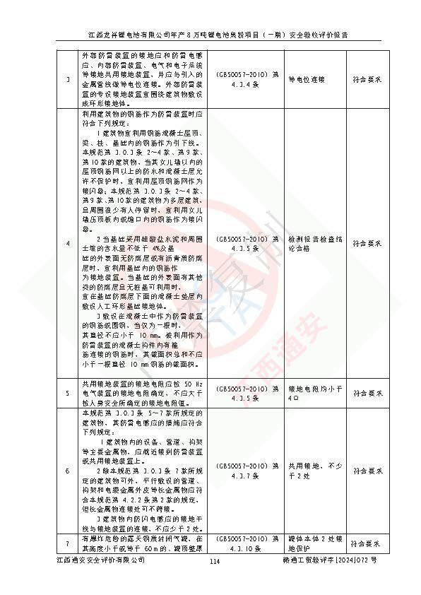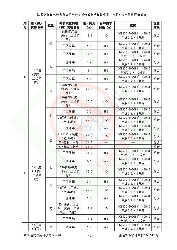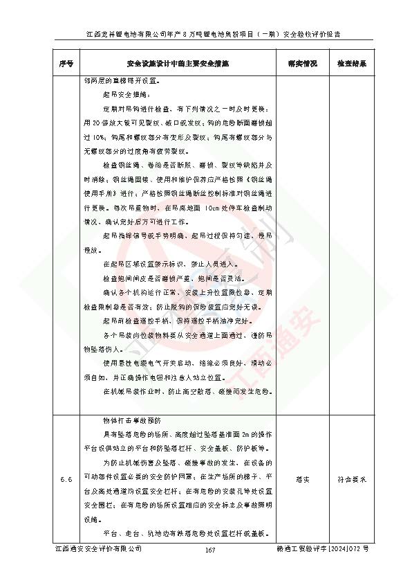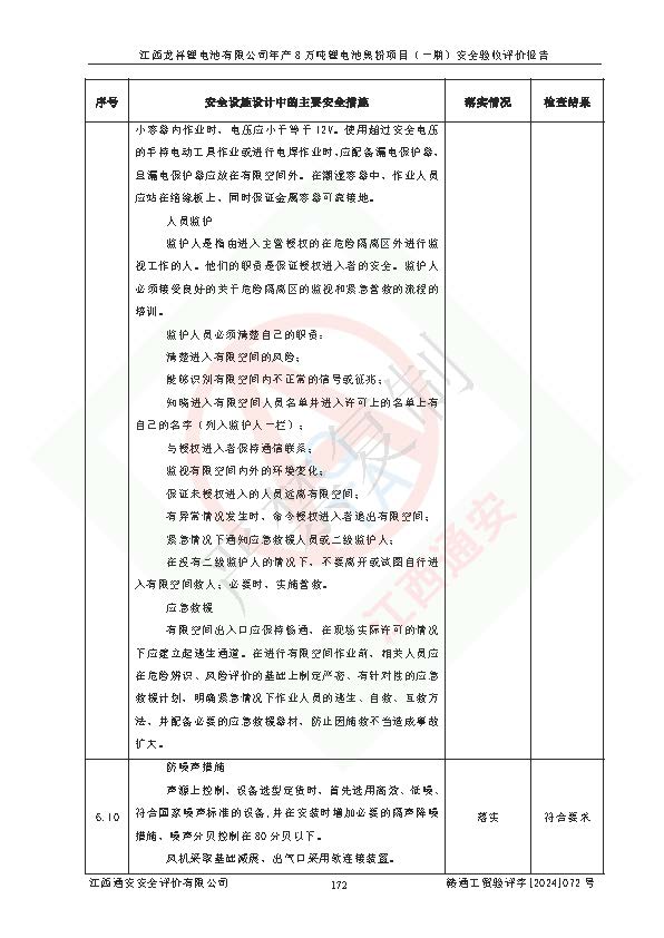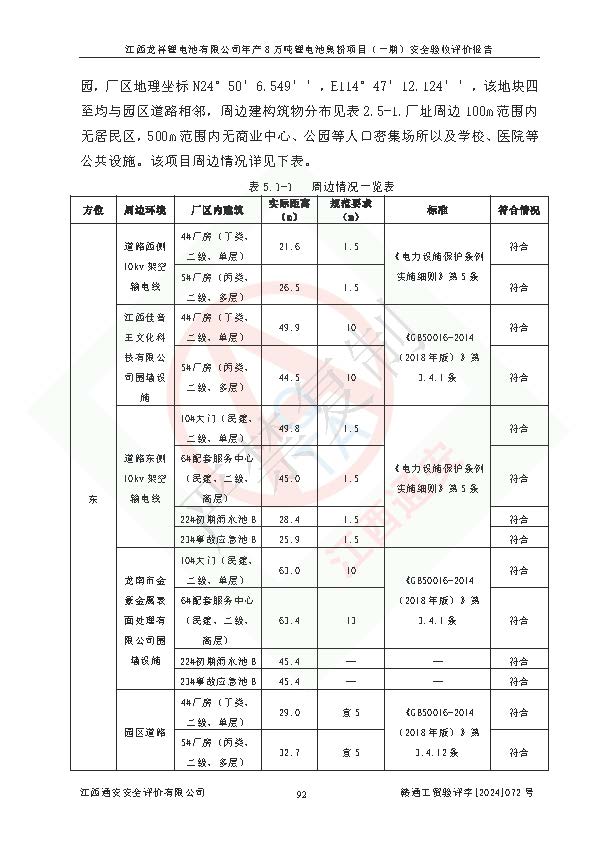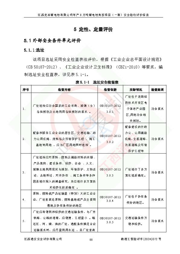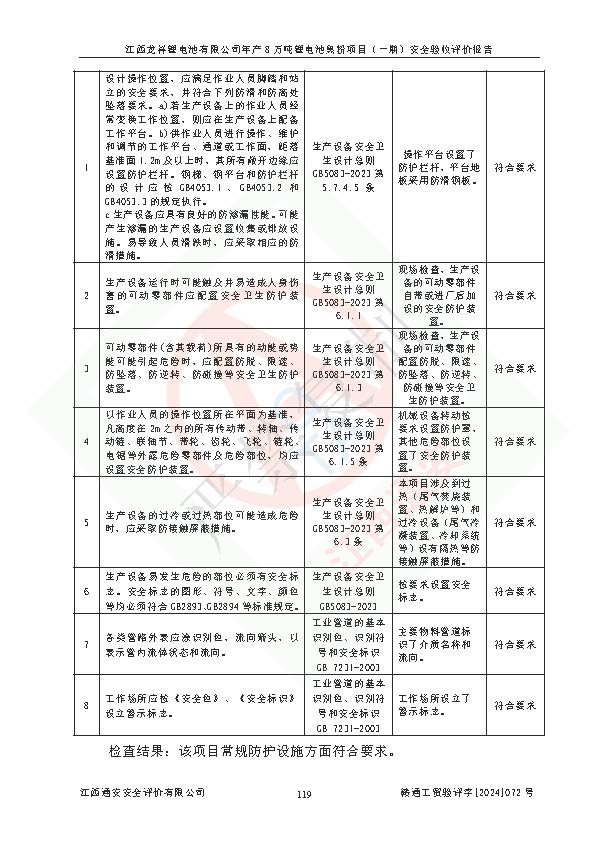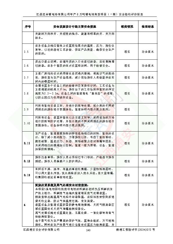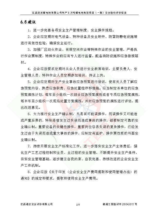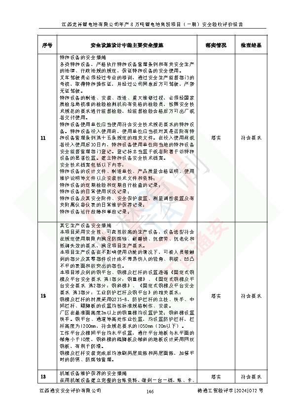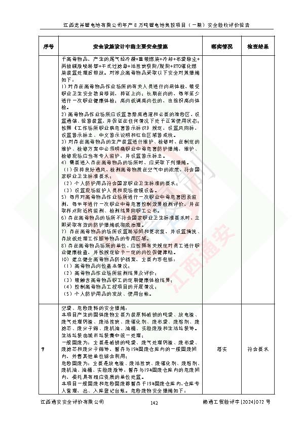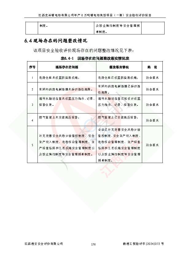 项目名称 | 江西龙祥锂电池有限公司年产8万吨锂电池黑粉项目(一期)安全验收评价报告 | ||||