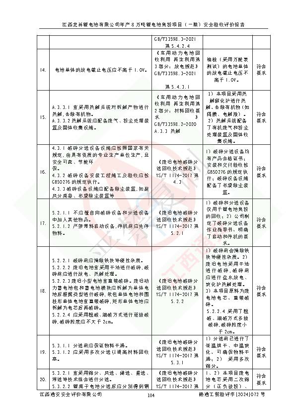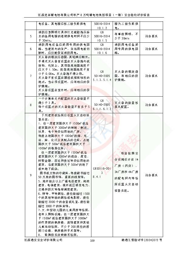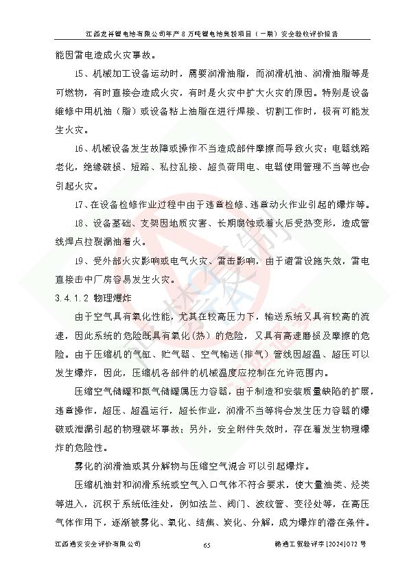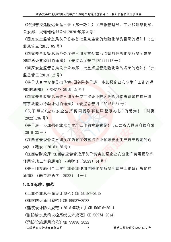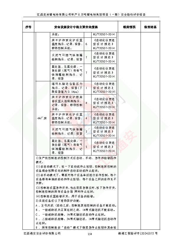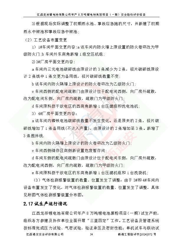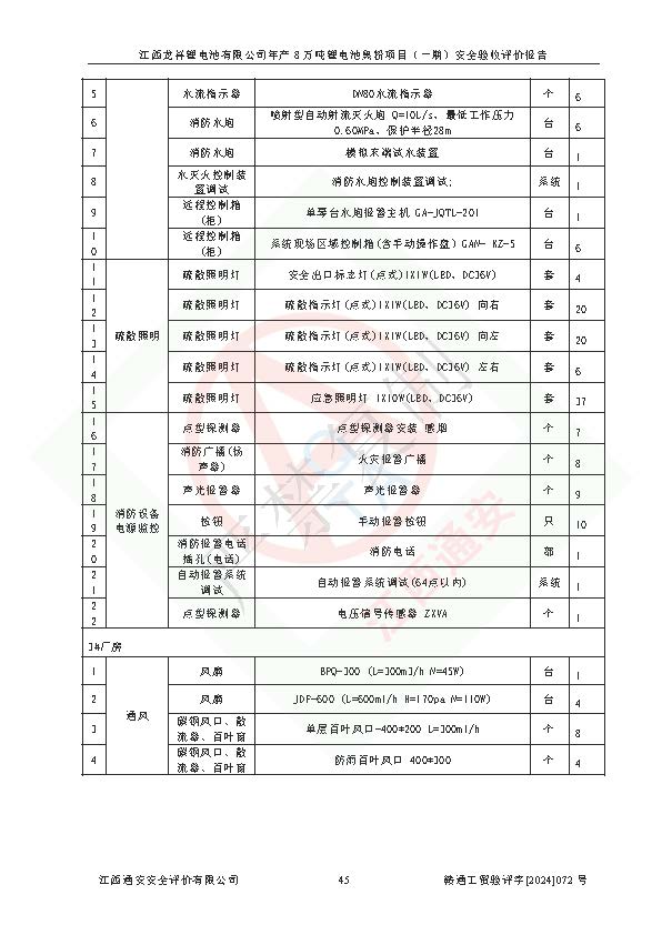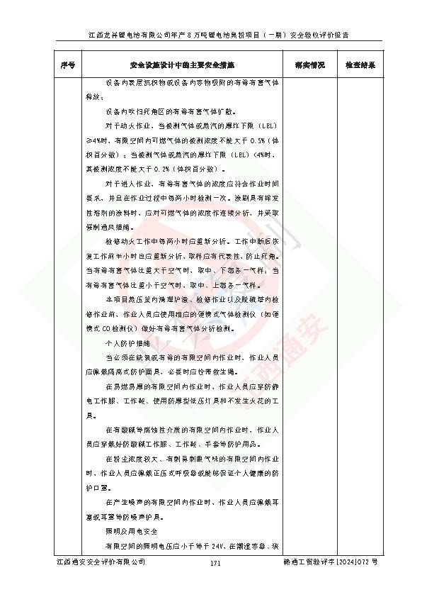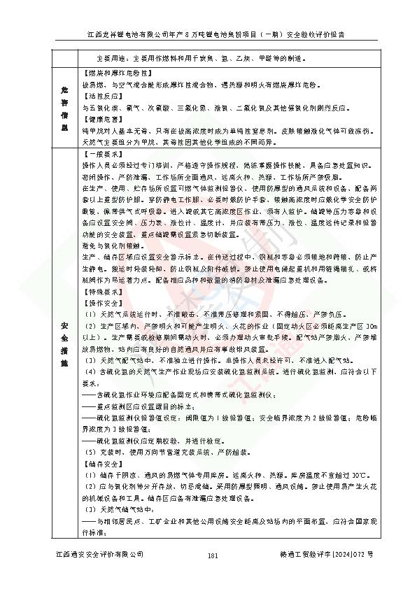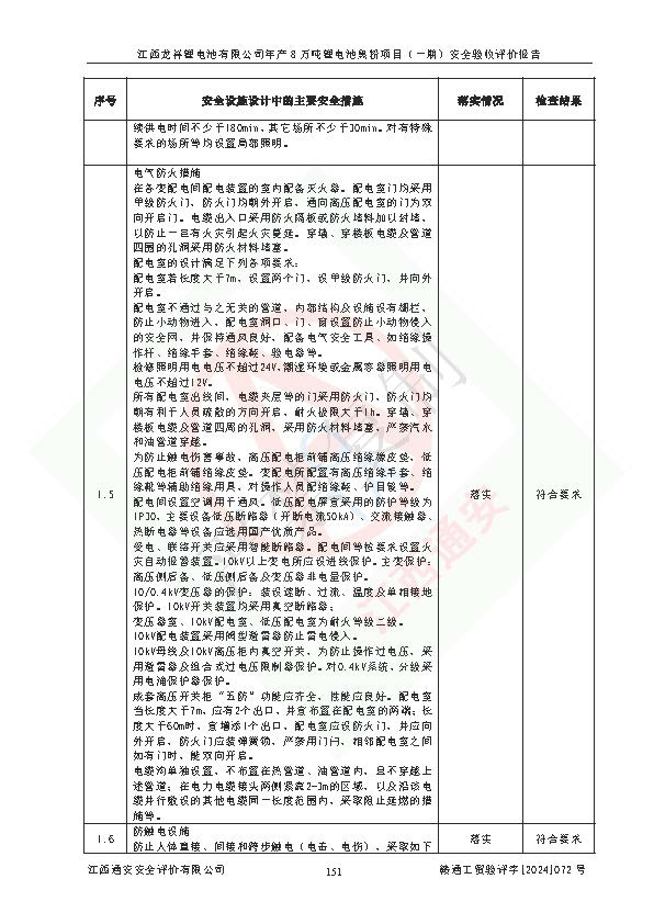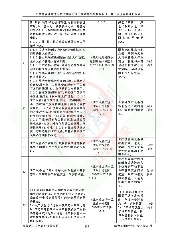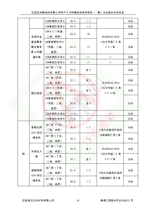 项目名称 | 江西龙祥锂电池有限公司年产8万吨锂电池黑粉项目(一期)安全验收评价报告 | ||||