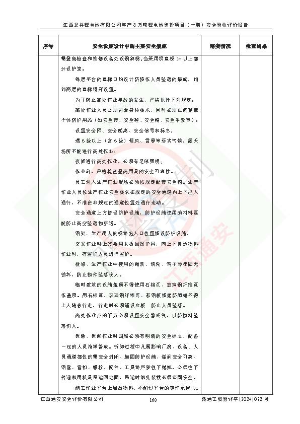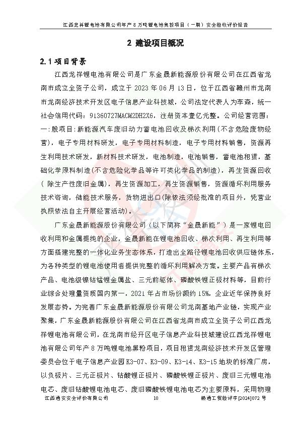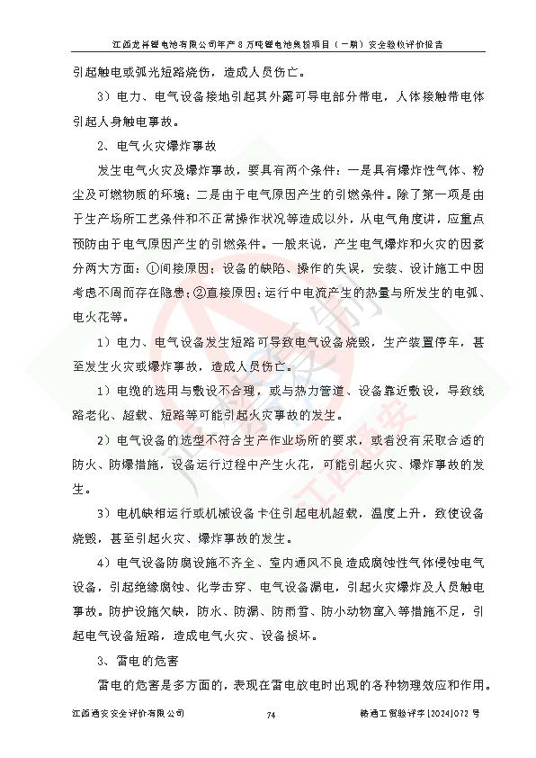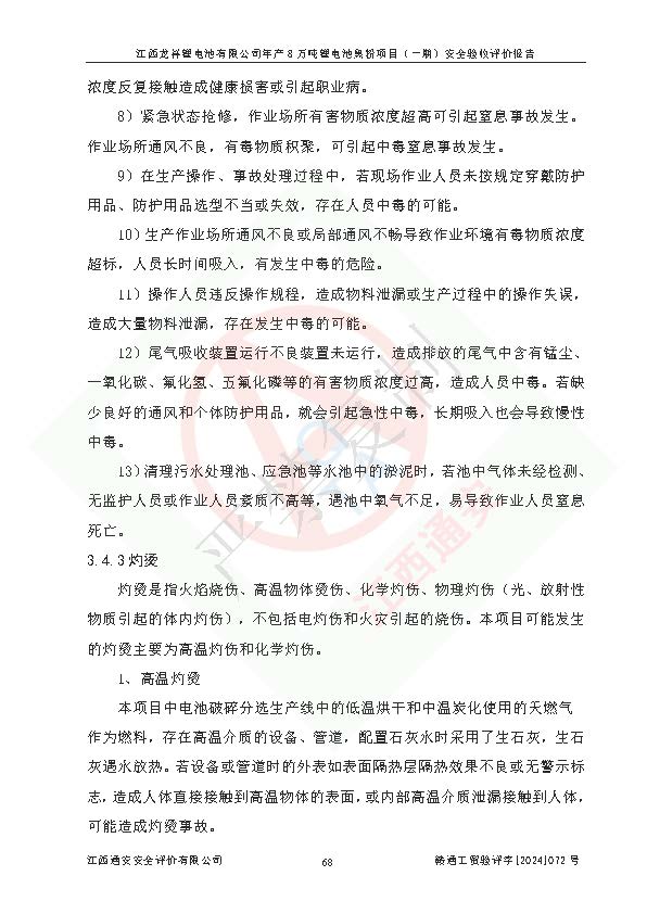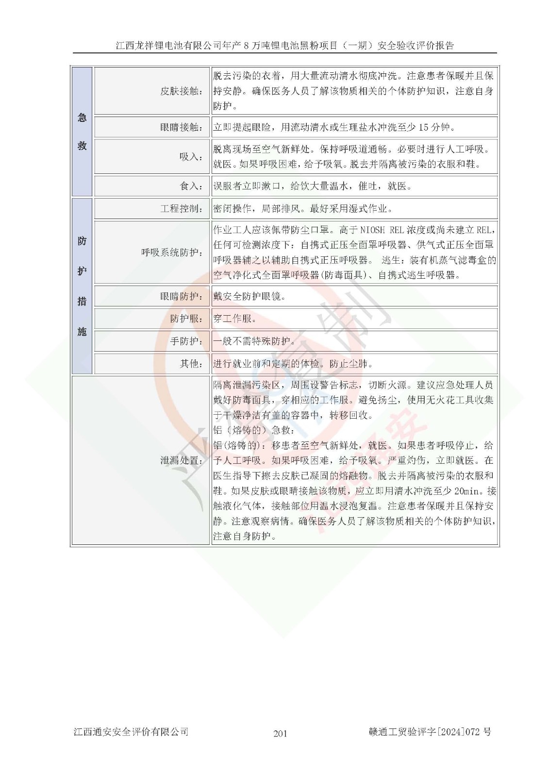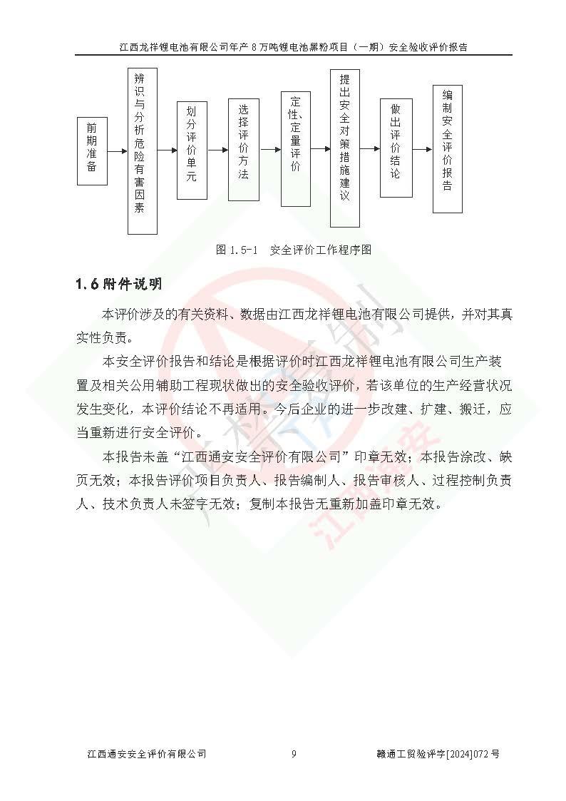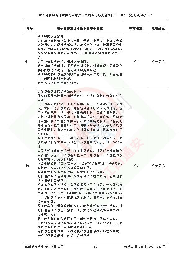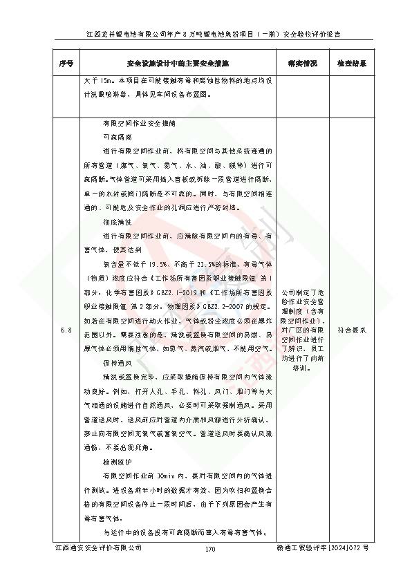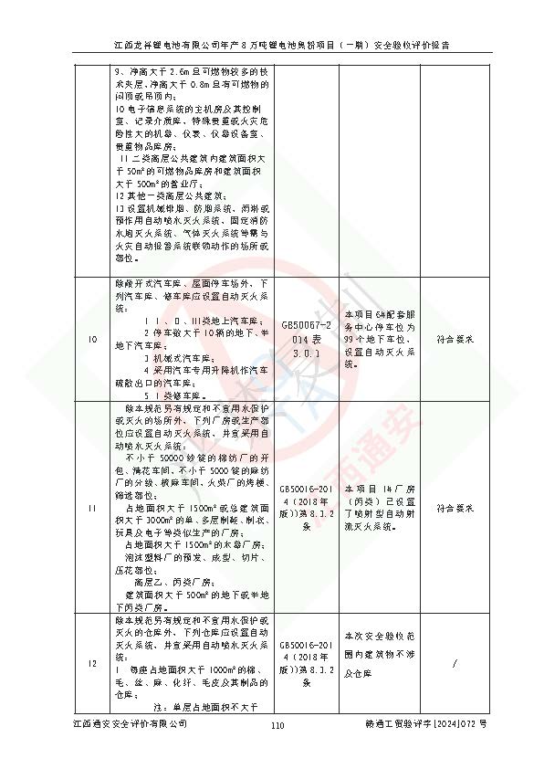项目名称 | 江西龙祥锂电池有限公司年产8万吨锂电池黑粉项目(一期)安全验收评价报告 | ||||