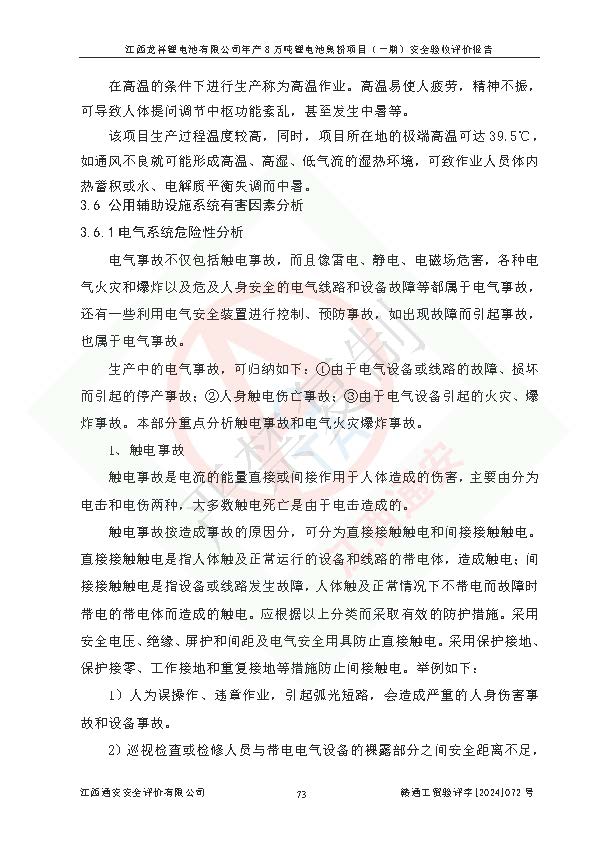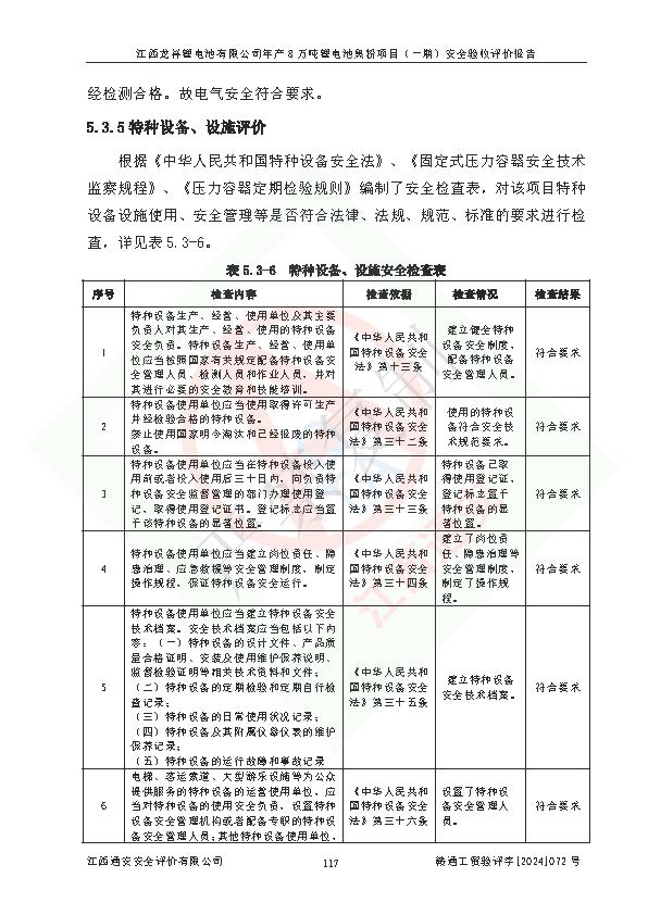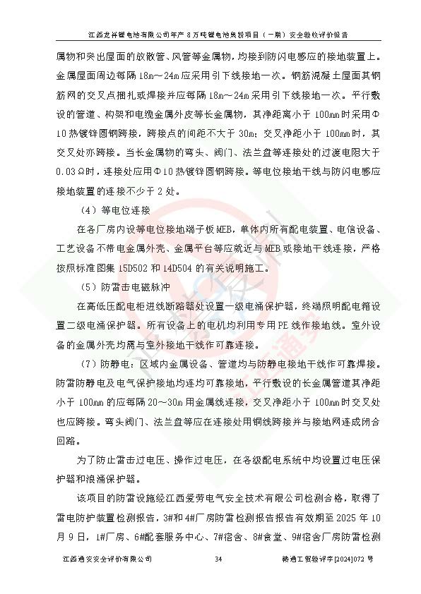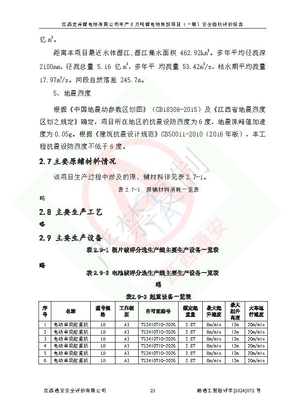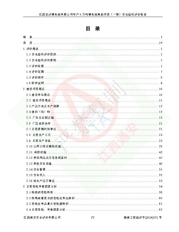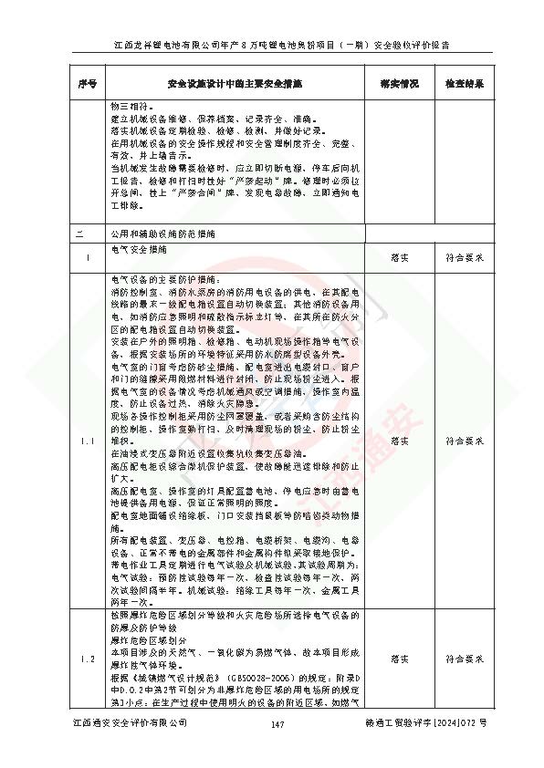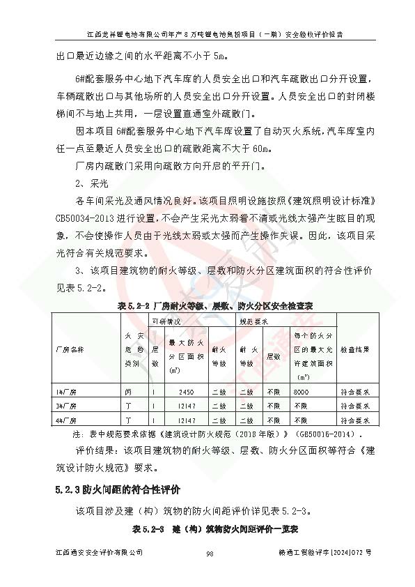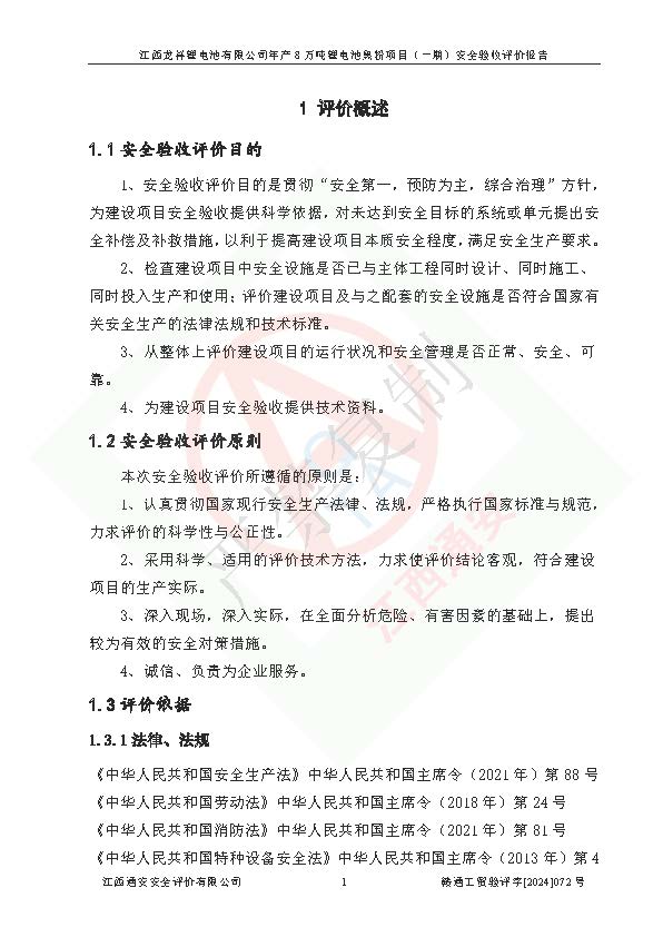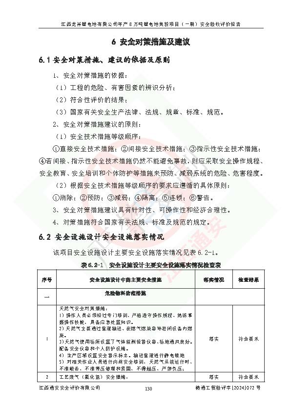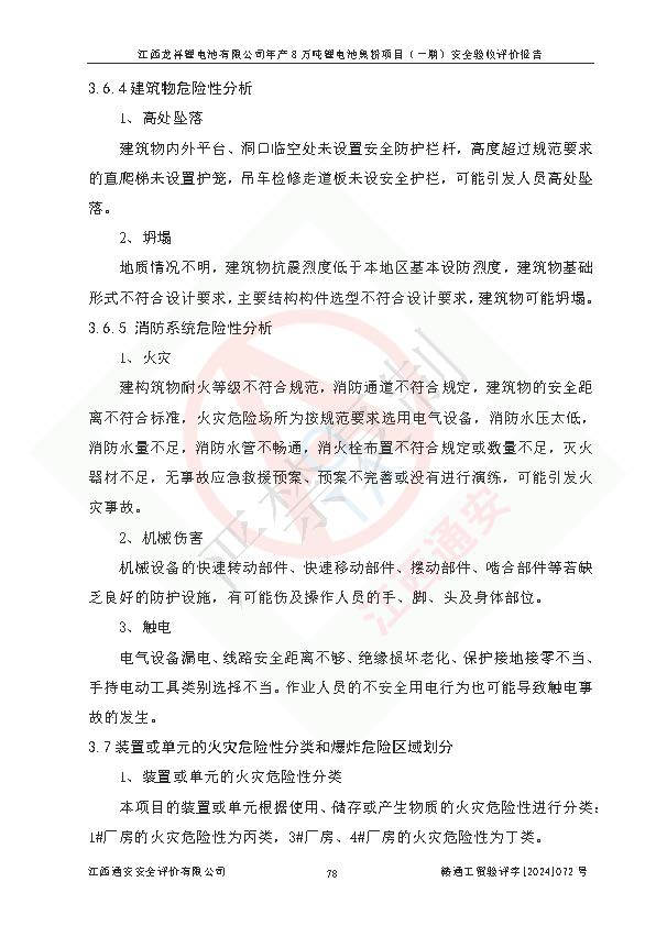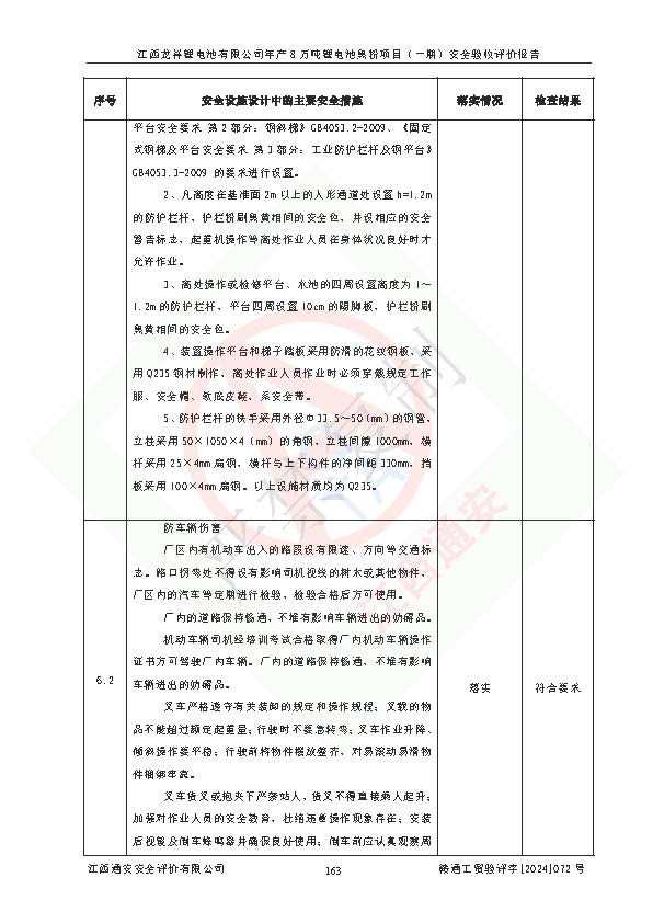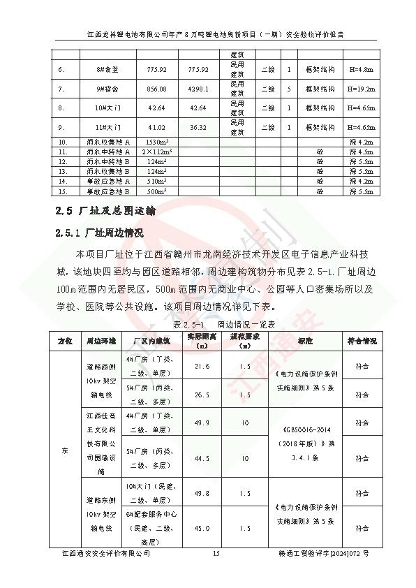 项目名称 | 江西龙祥锂电池有限公司年产8万吨锂电池黑粉项目(一期)安全验收评价报告 | ||||