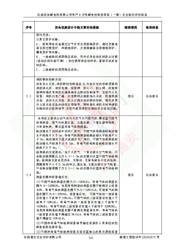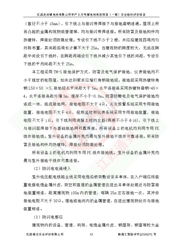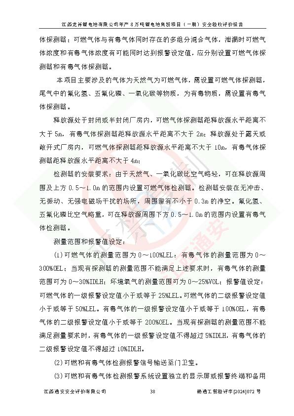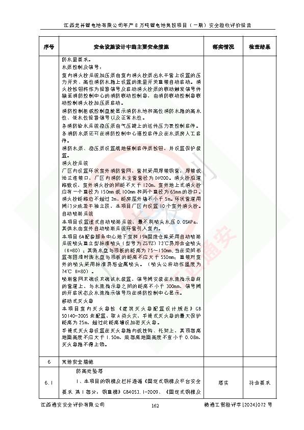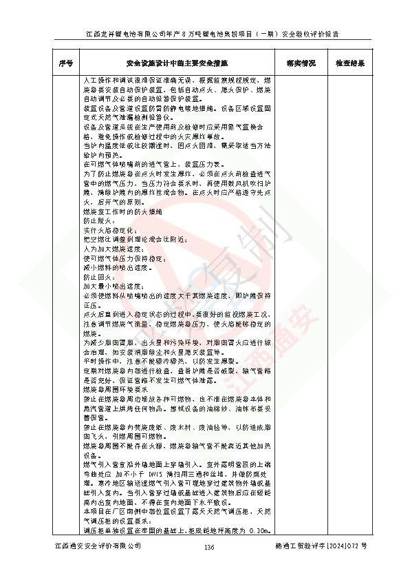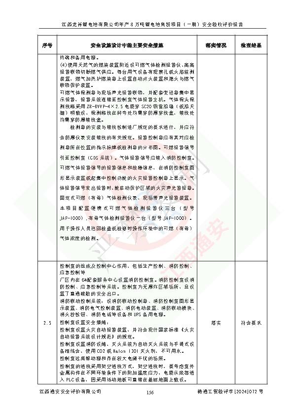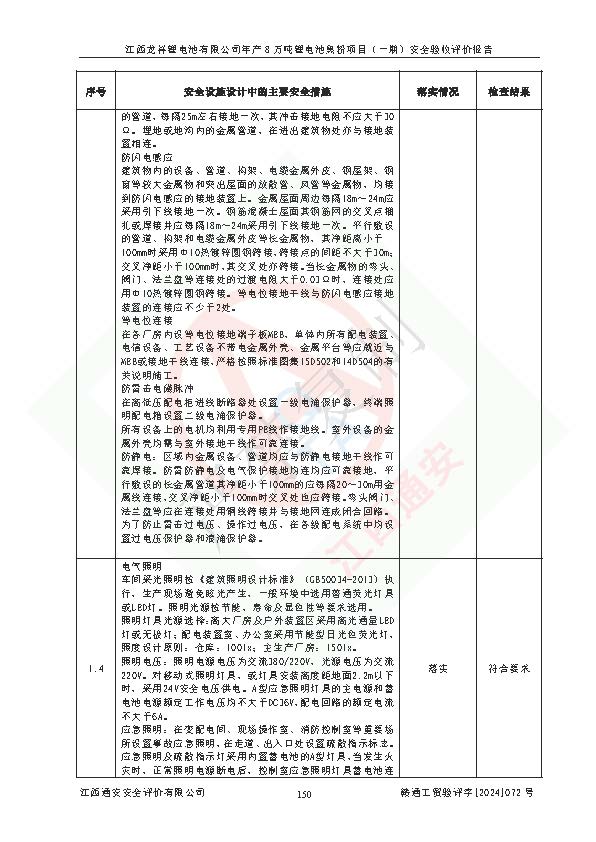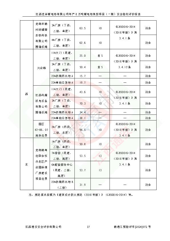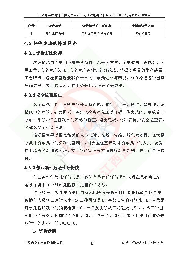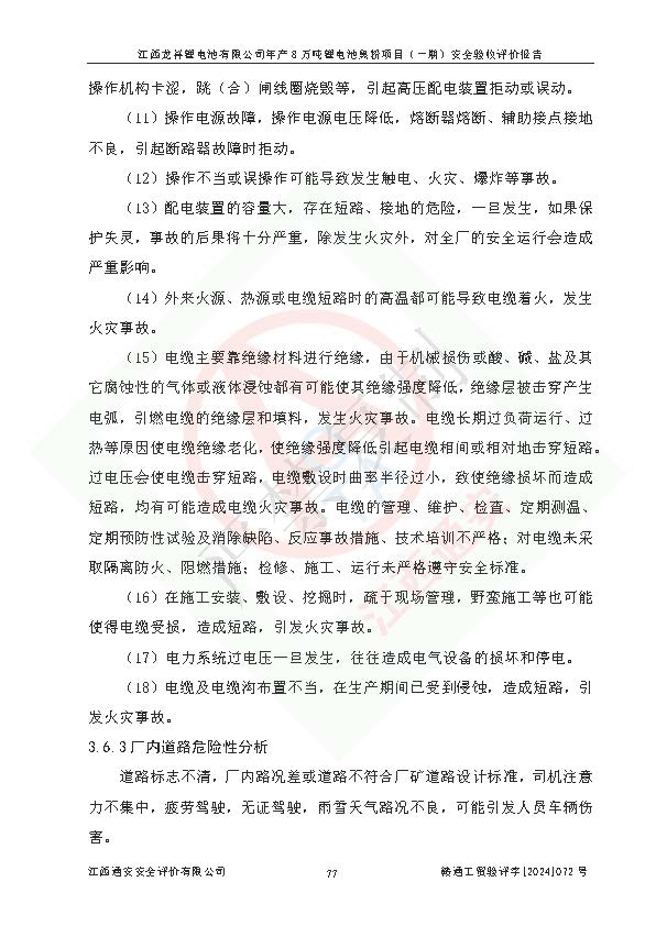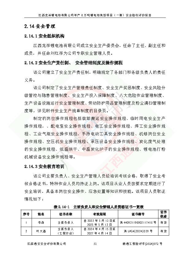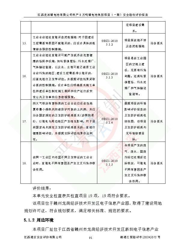 项目名称 | 江西龙祥锂电池有限公司年产8万吨锂电池黑粉项目(一期)安全验收评价报告 | ||||