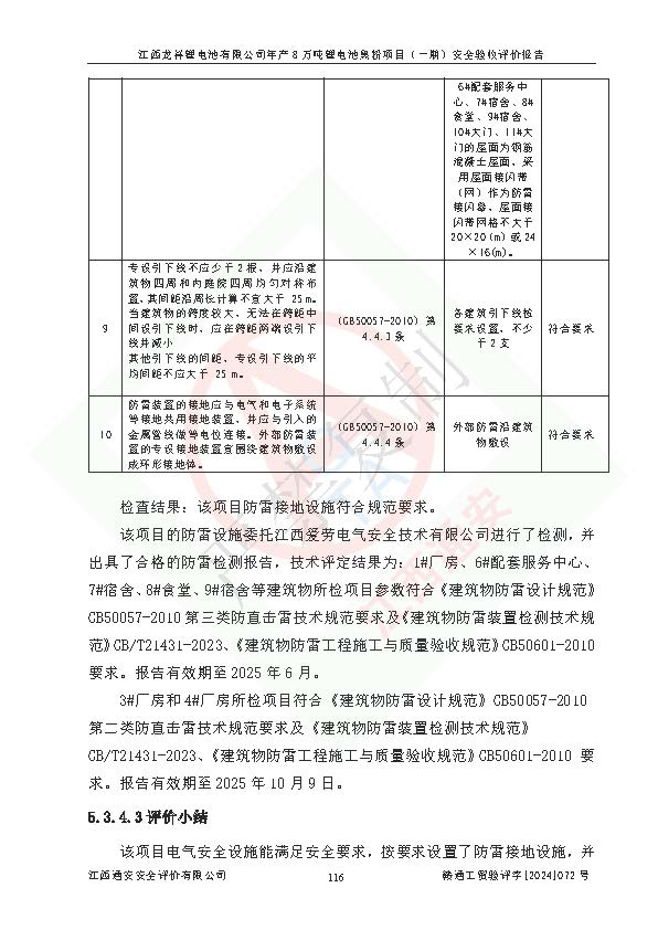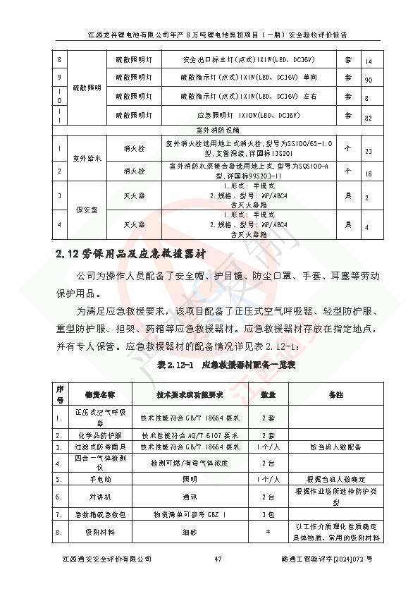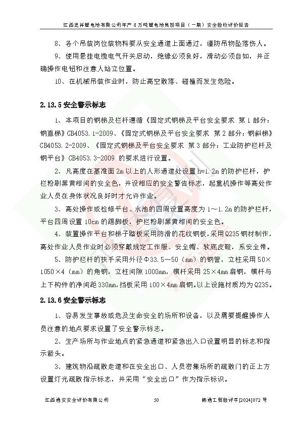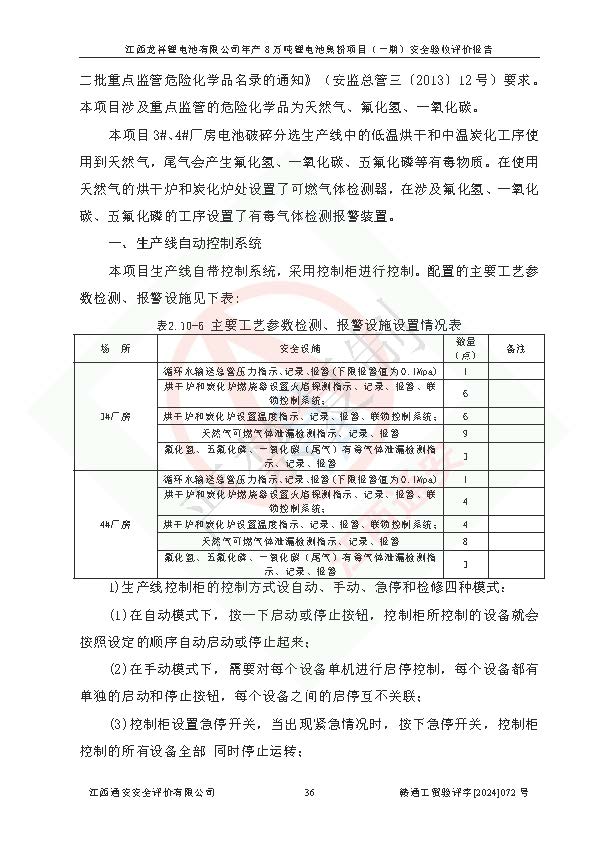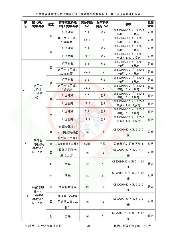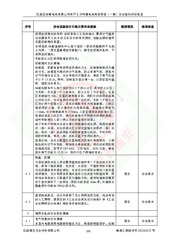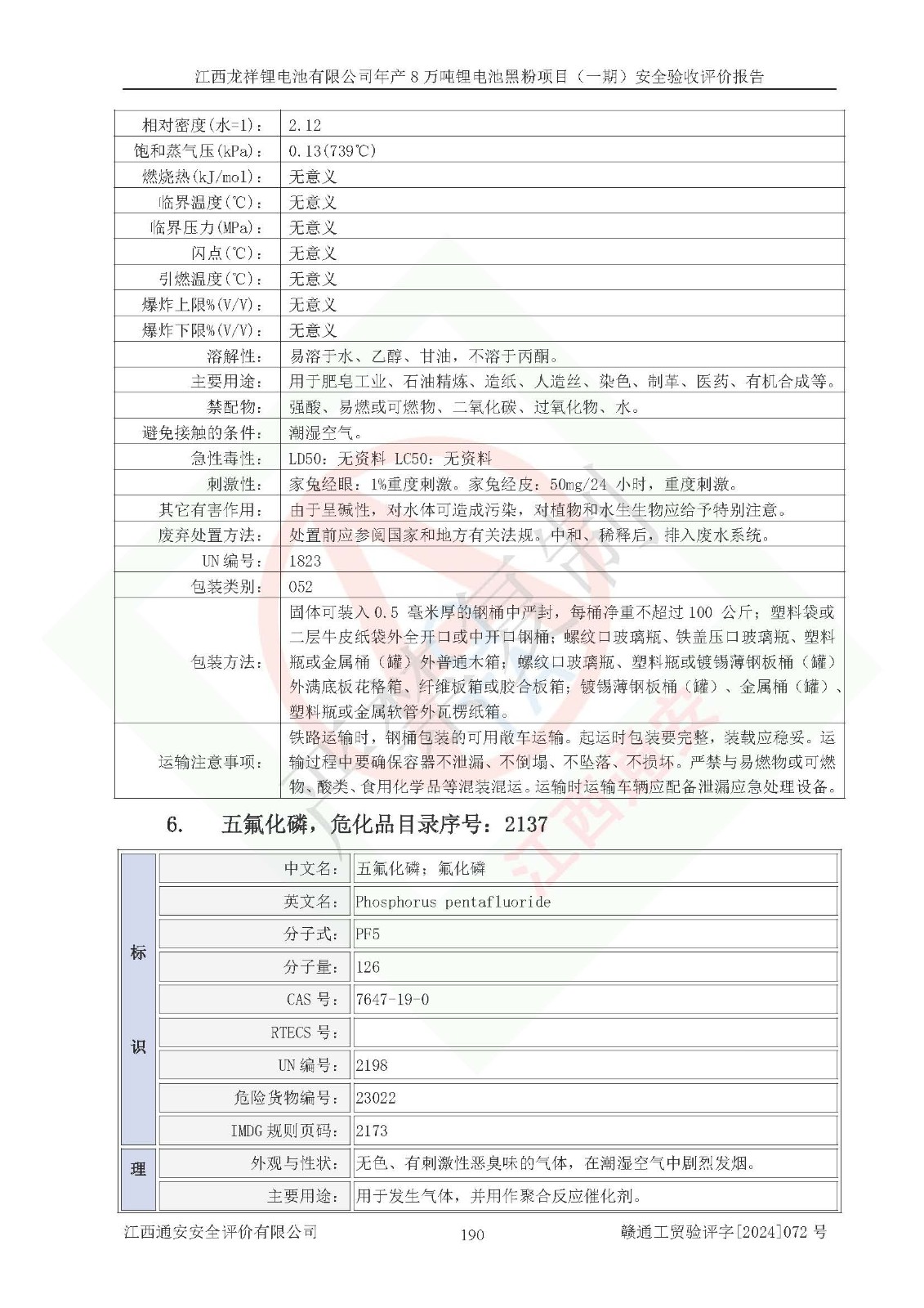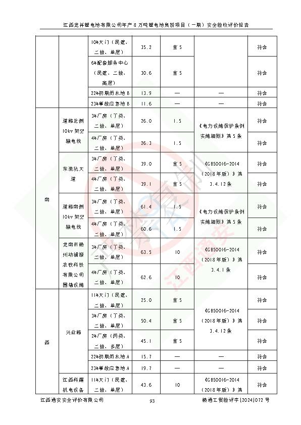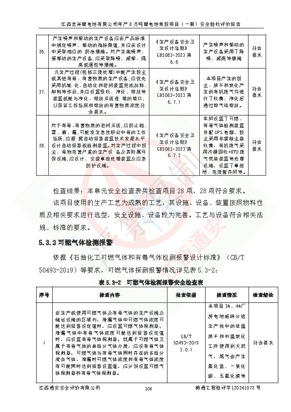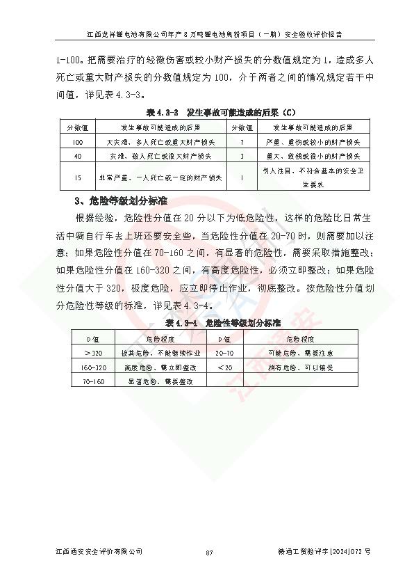 项目名称 | 江西龙祥锂电池有限公司年产8万吨锂电池黑粉项目(一期)安全验收评价报告 | ||||