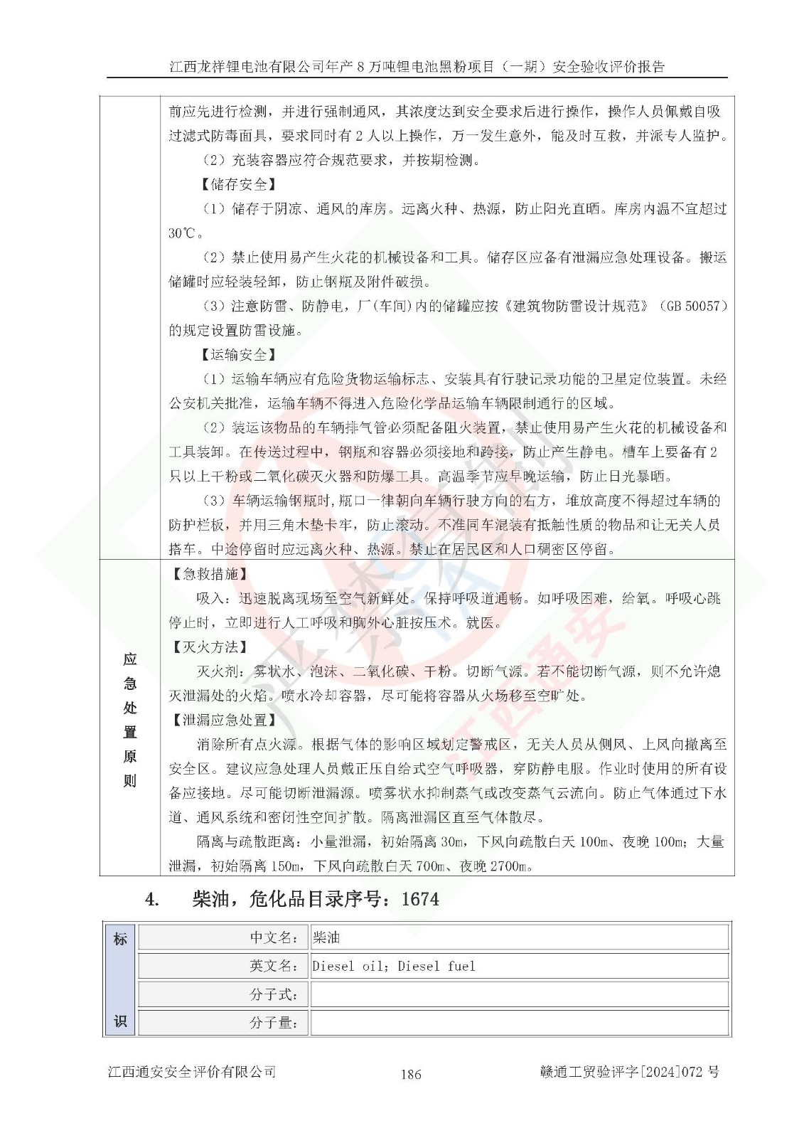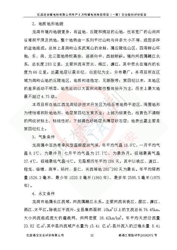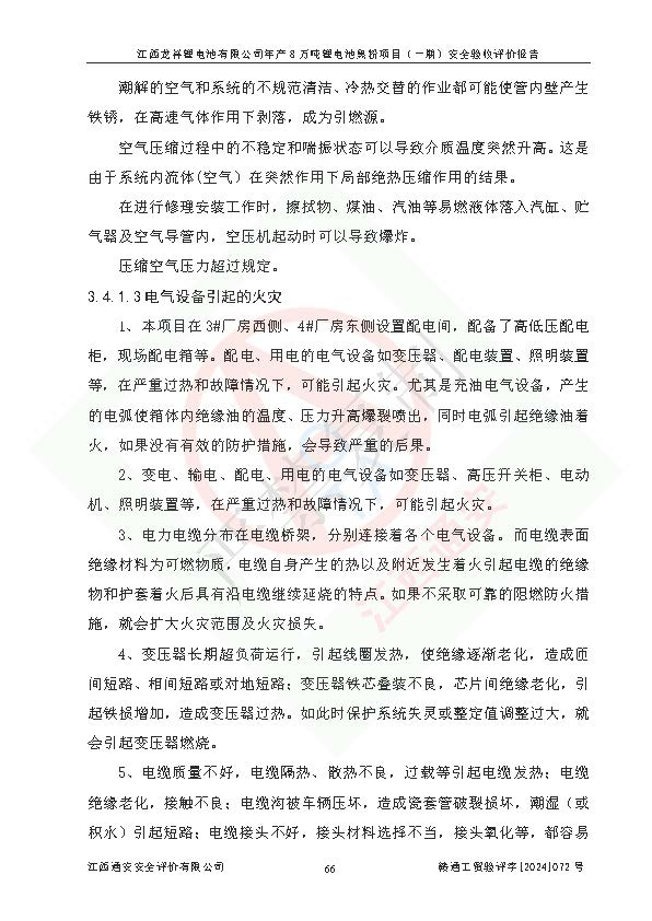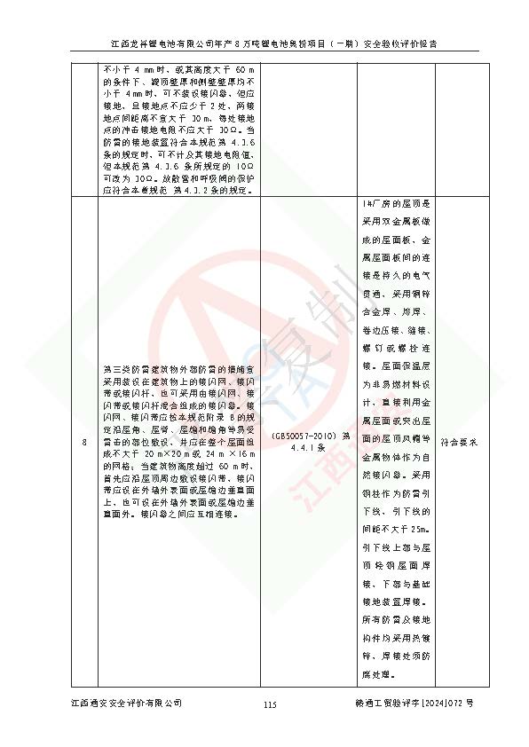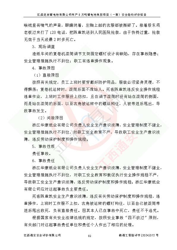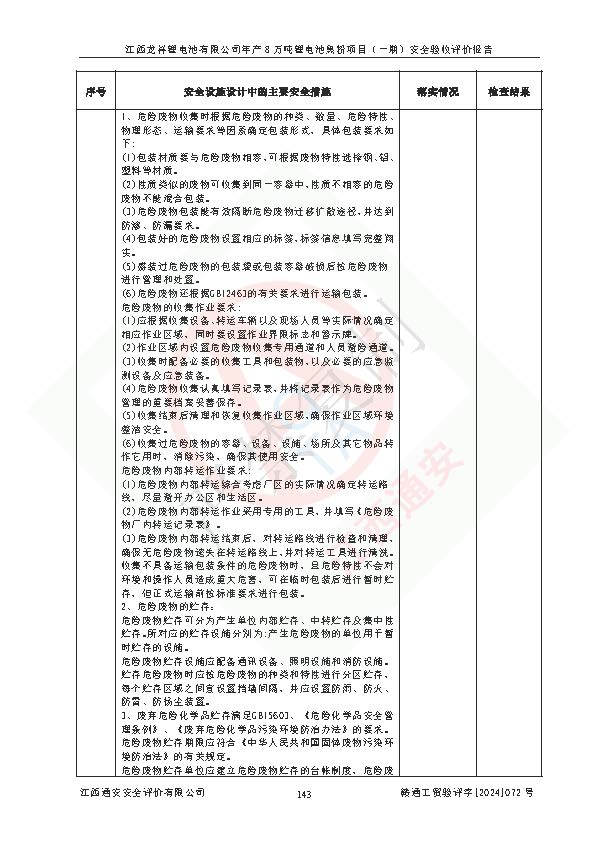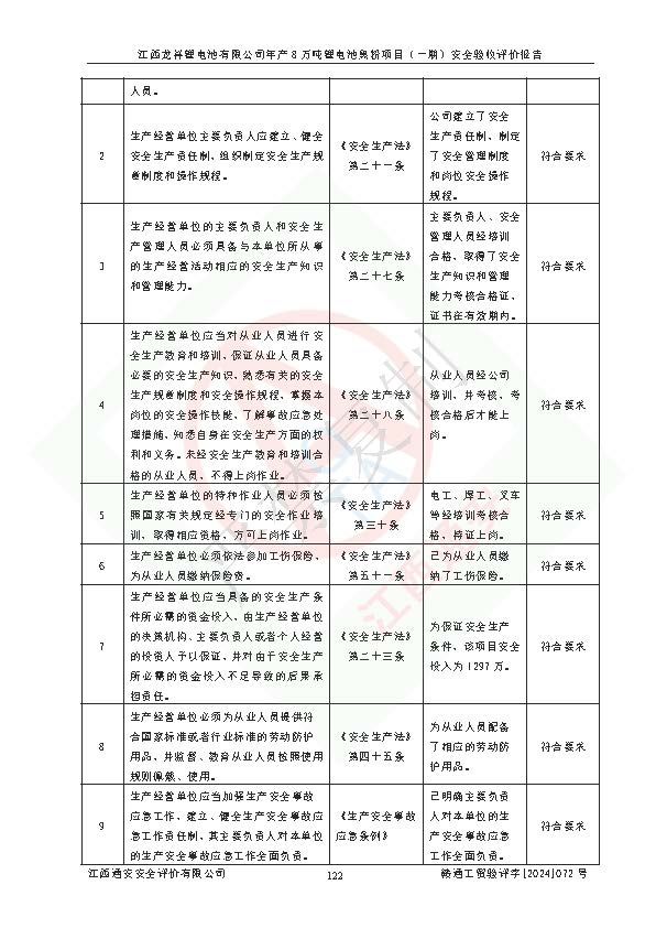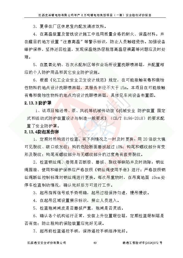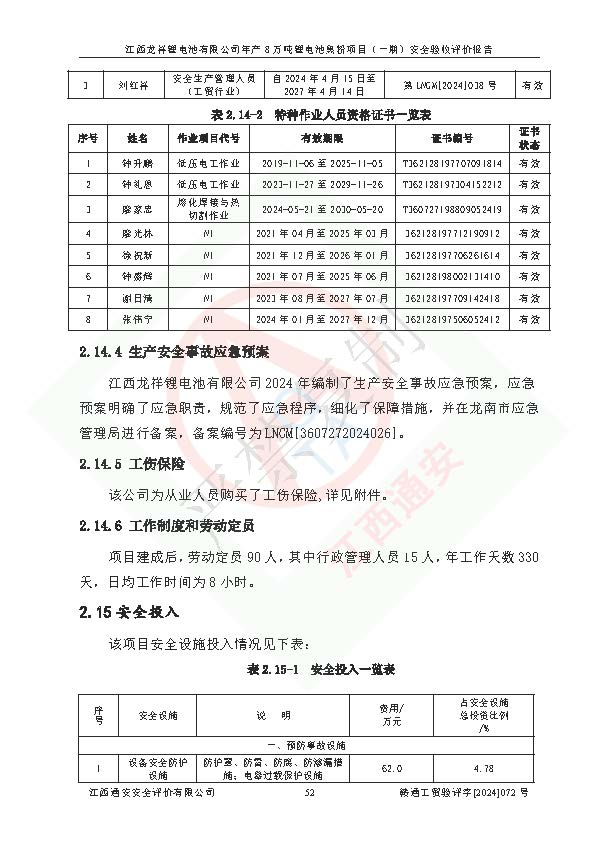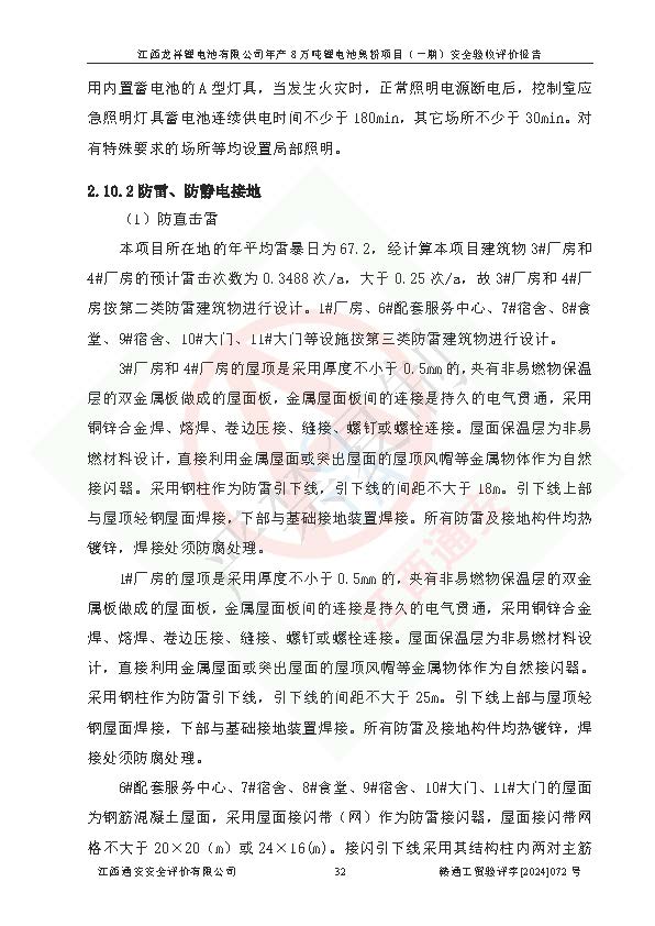 项目名称 | 江西龙祥锂电池有限公司年产8万吨锂电池黑粉项目(一期)安全验收评价报告 | ||||