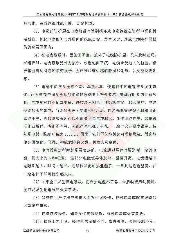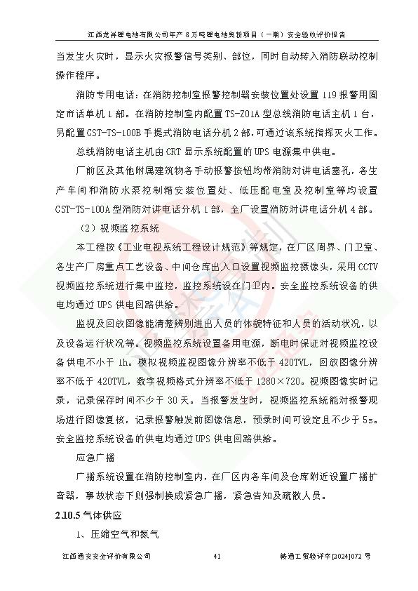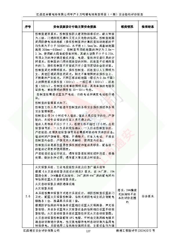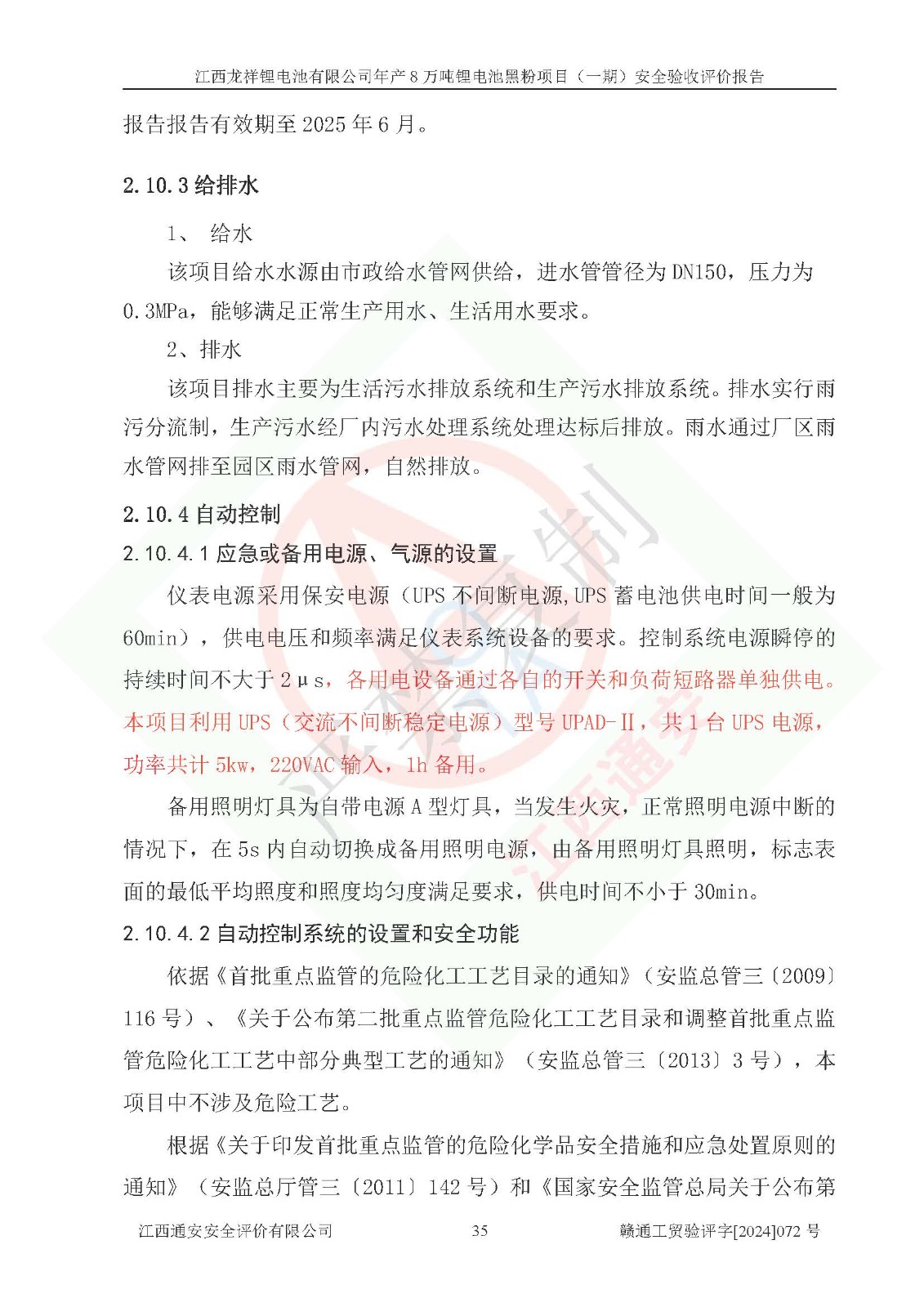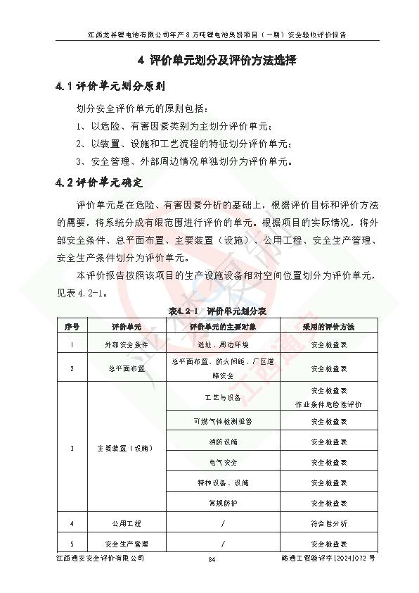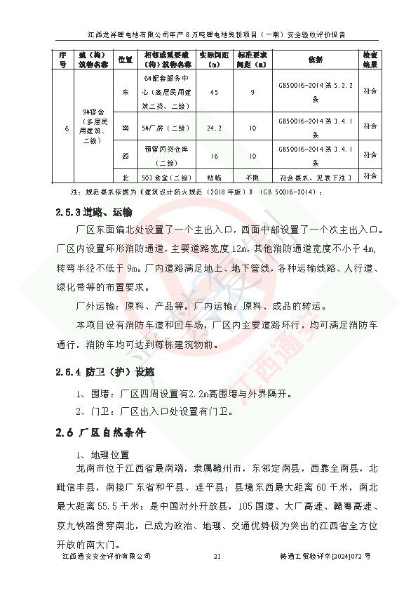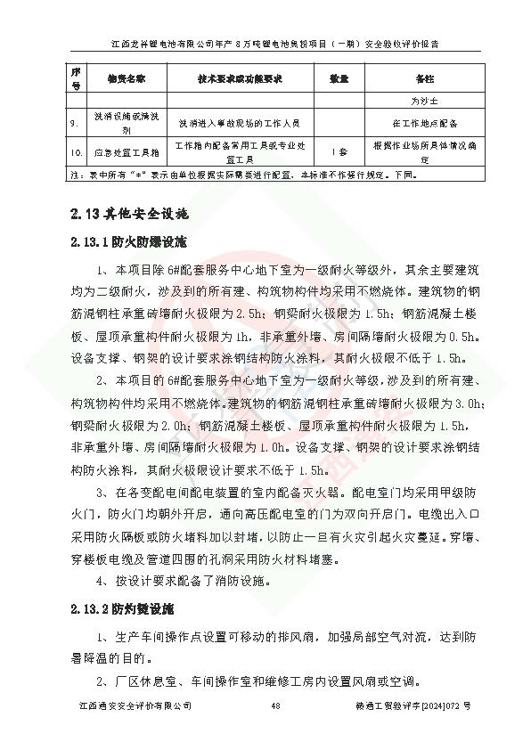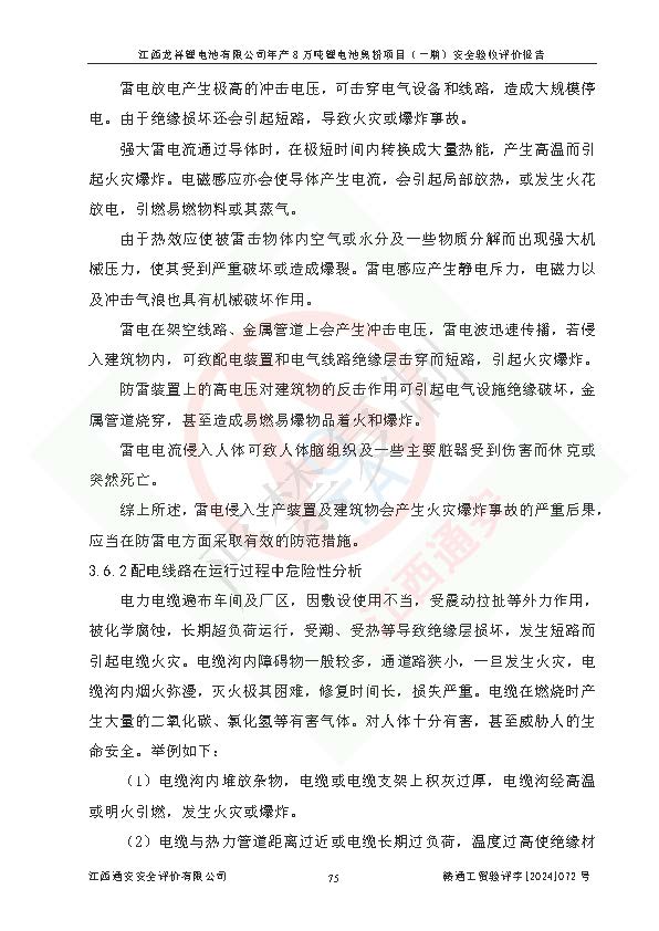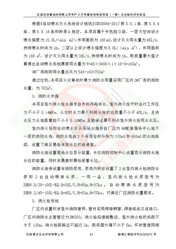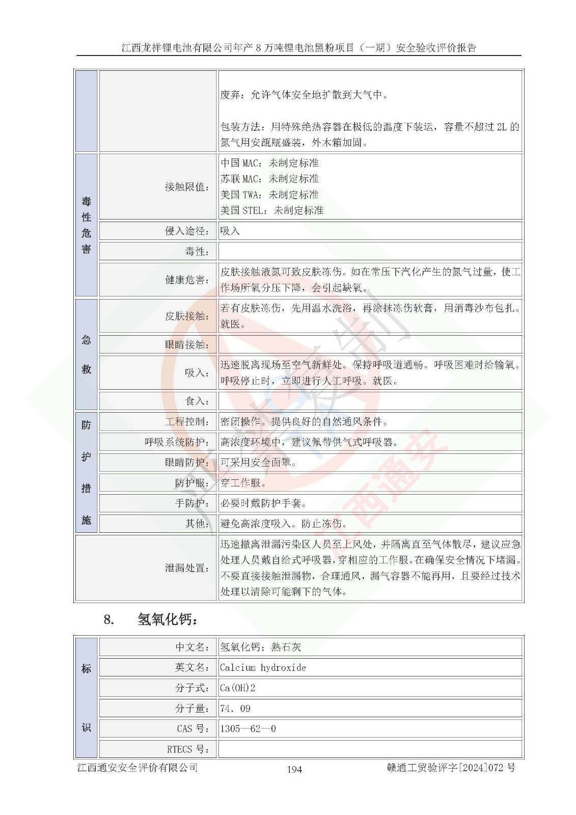 项目名称 | 江西龙祥锂电池有限公司年产8万吨锂电池黑粉项目(一期)安全验收评价报告 | ||||