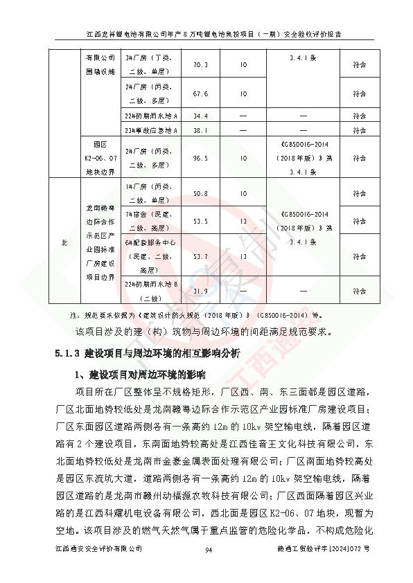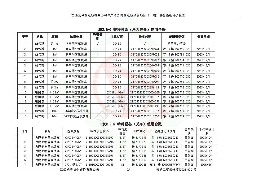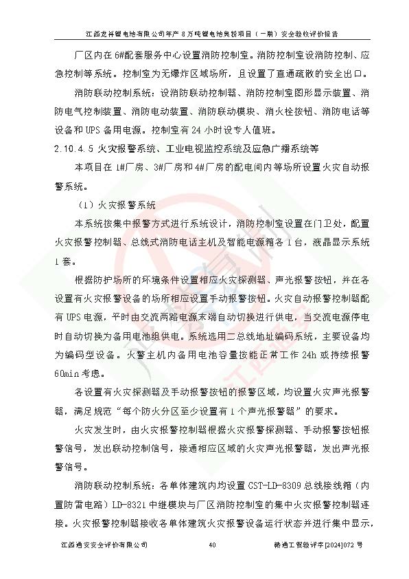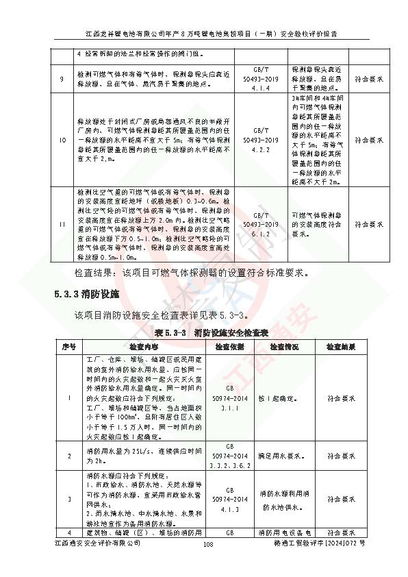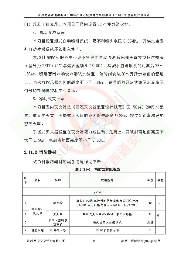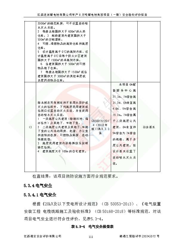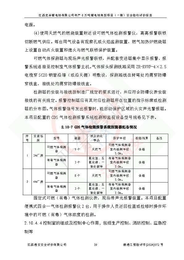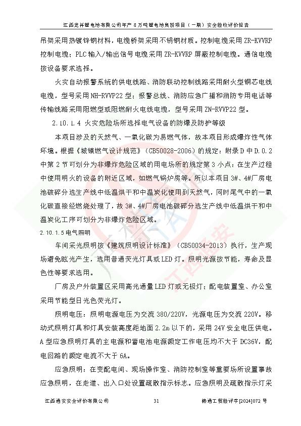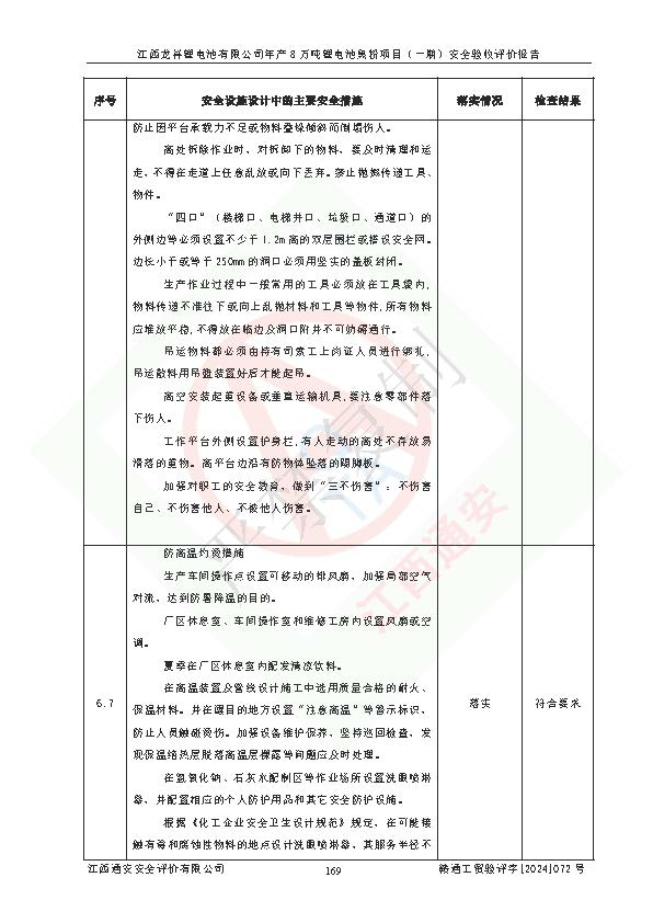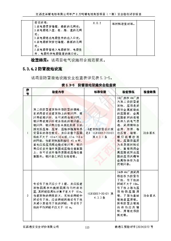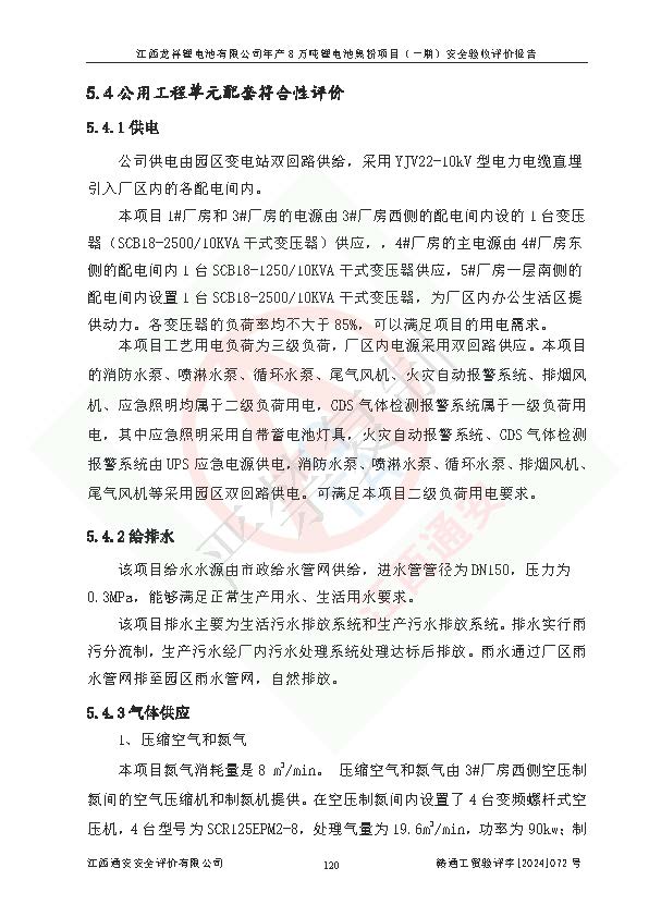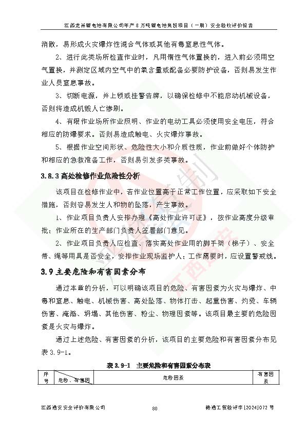 项目名称 | 江西龙祥锂电池有限公司年产8万吨锂电池黑粉项目(一期)安全验收评价报告 | ||||