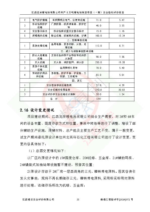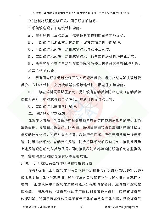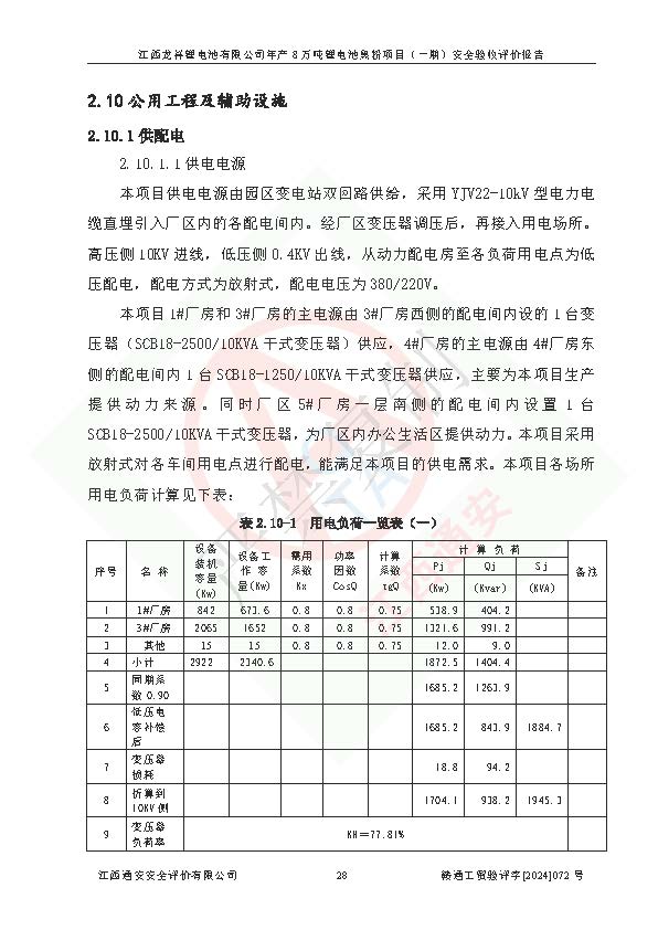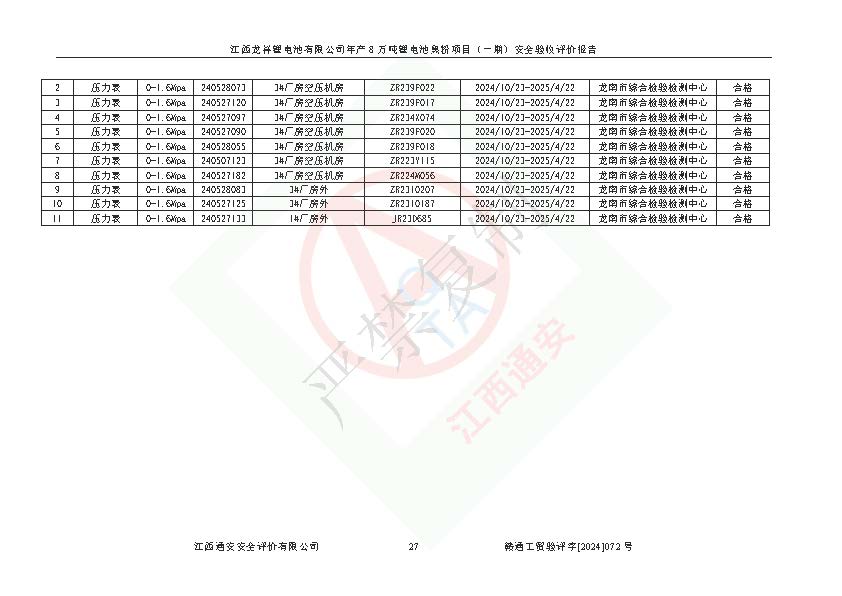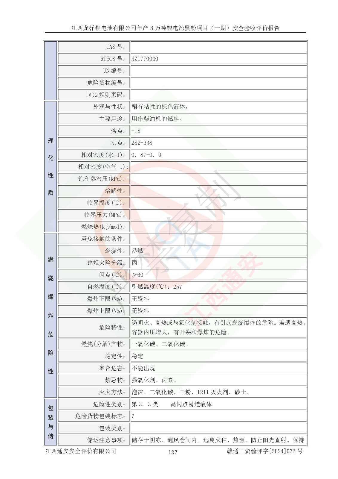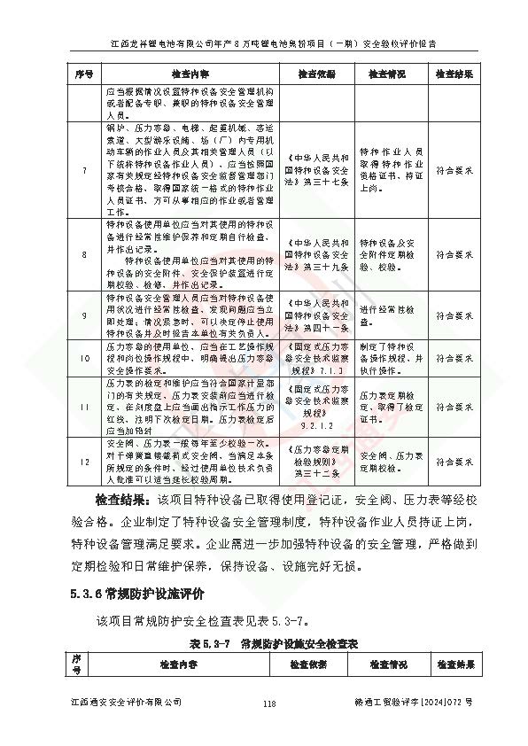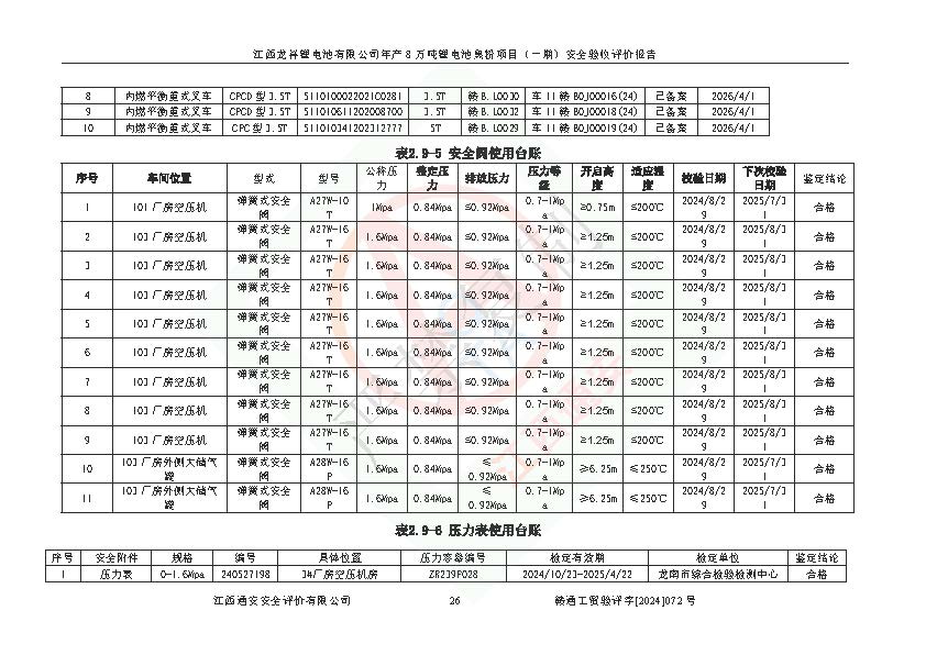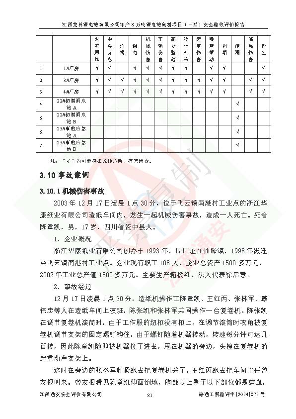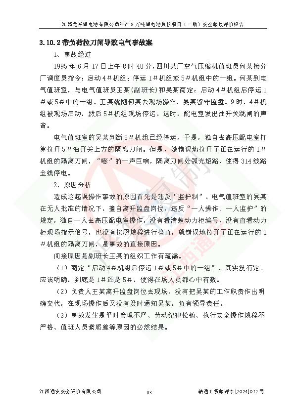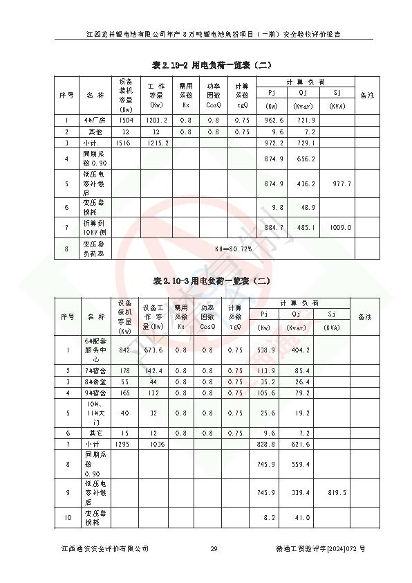 项目名称 | 江西龙祥锂电池有限公司年产8万吨锂电池黑粉项目(一期)安全验收评价报告 | ||||