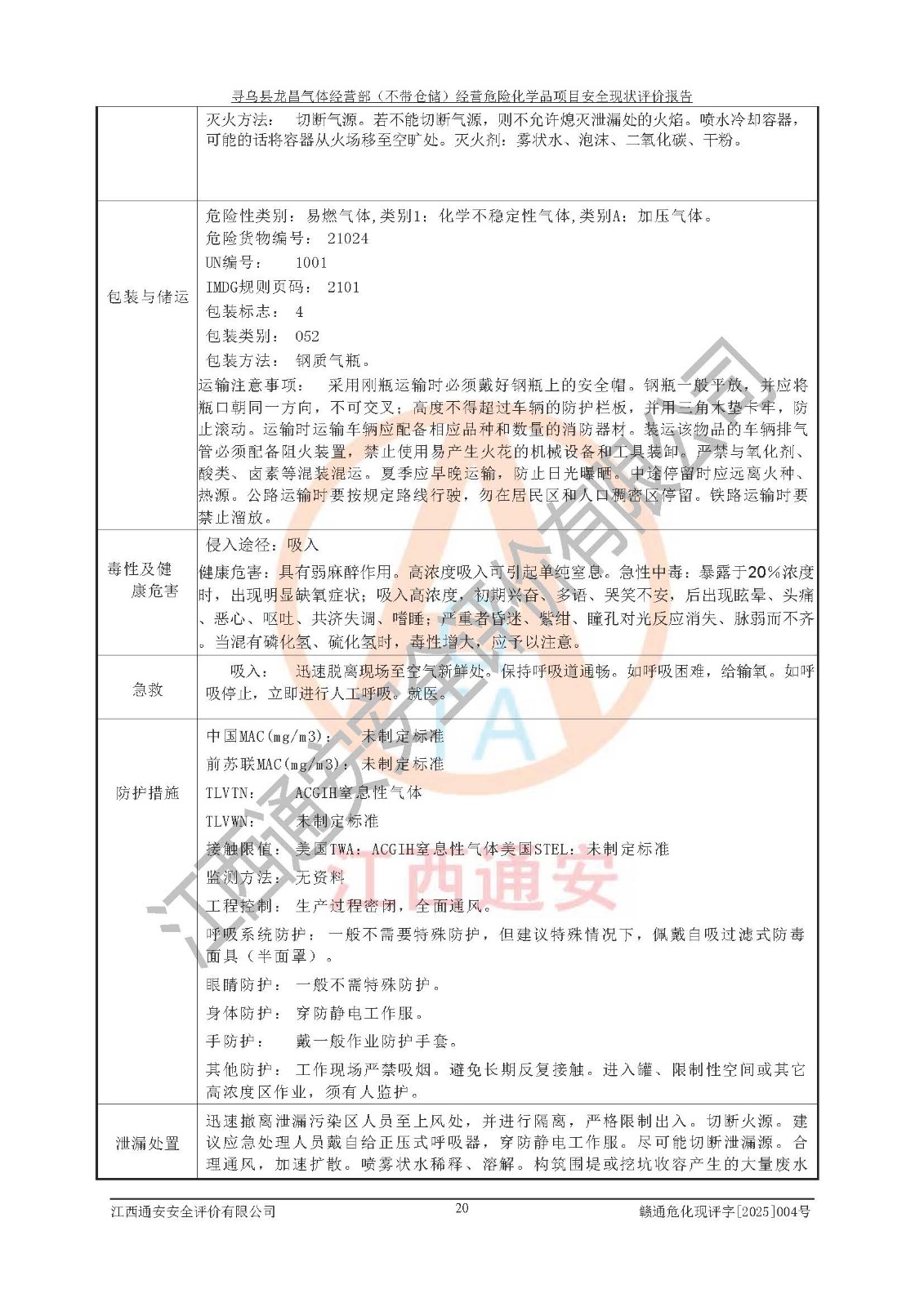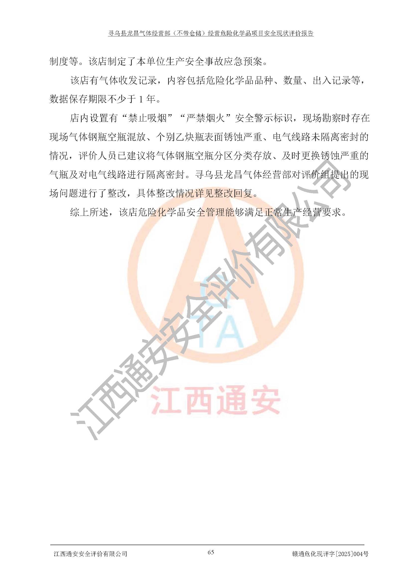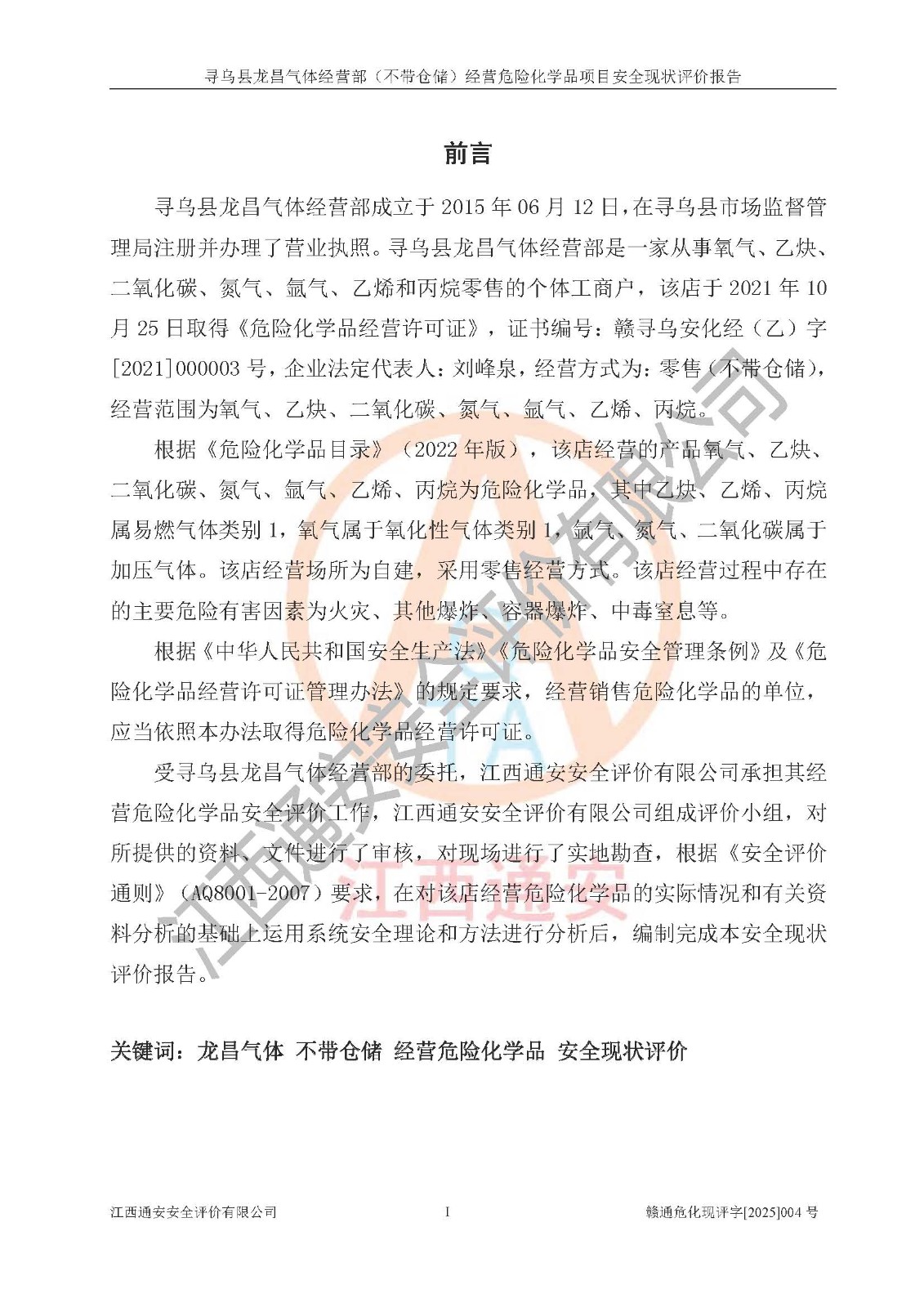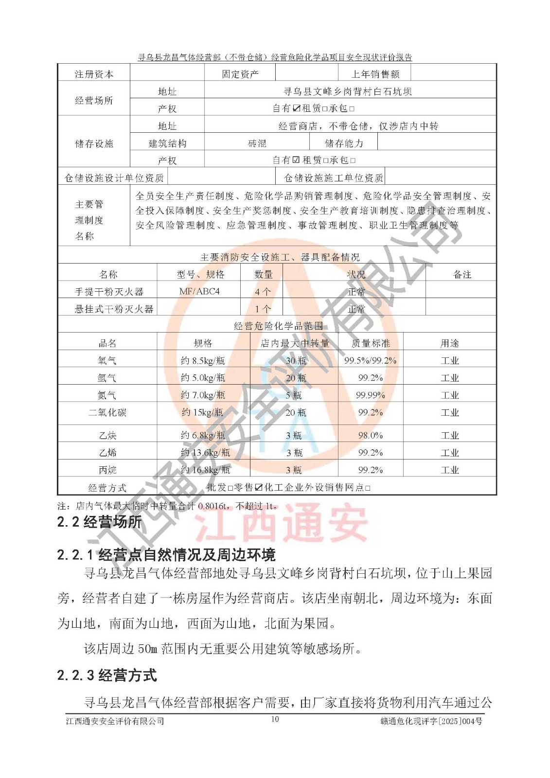 项目名称 | 寻乌县龙昌气体经营部(不带仓储)经营危险化学品项目安全现状评价报告 | ||||