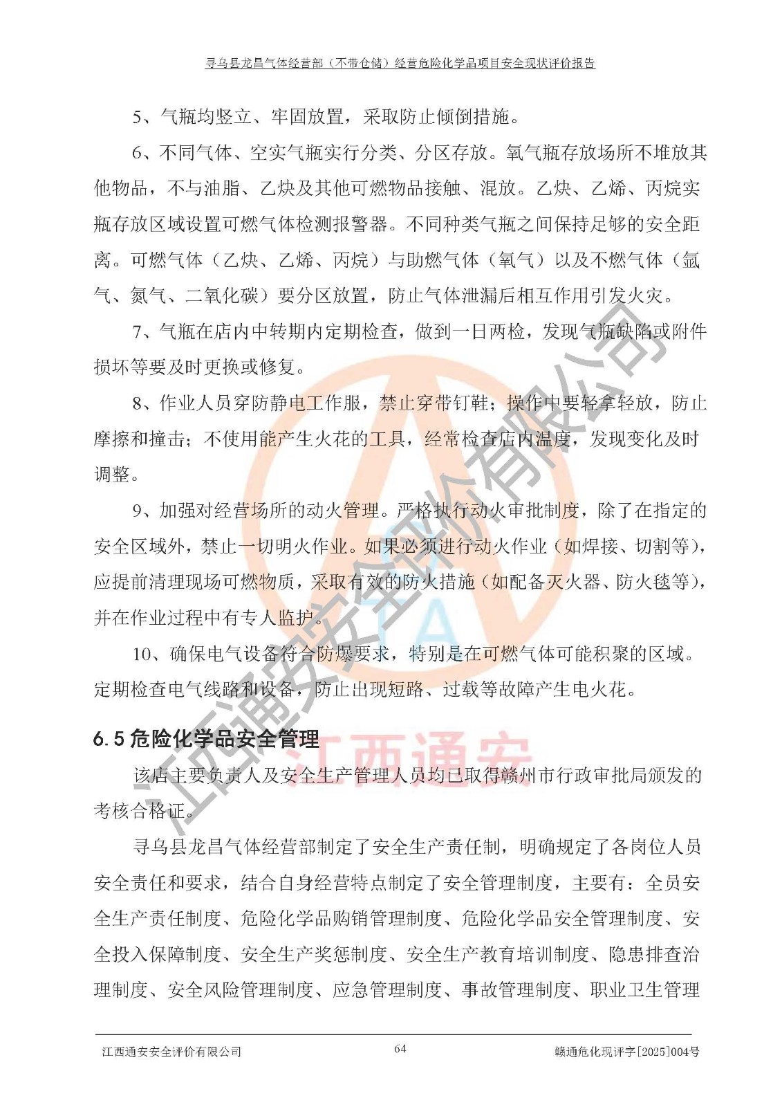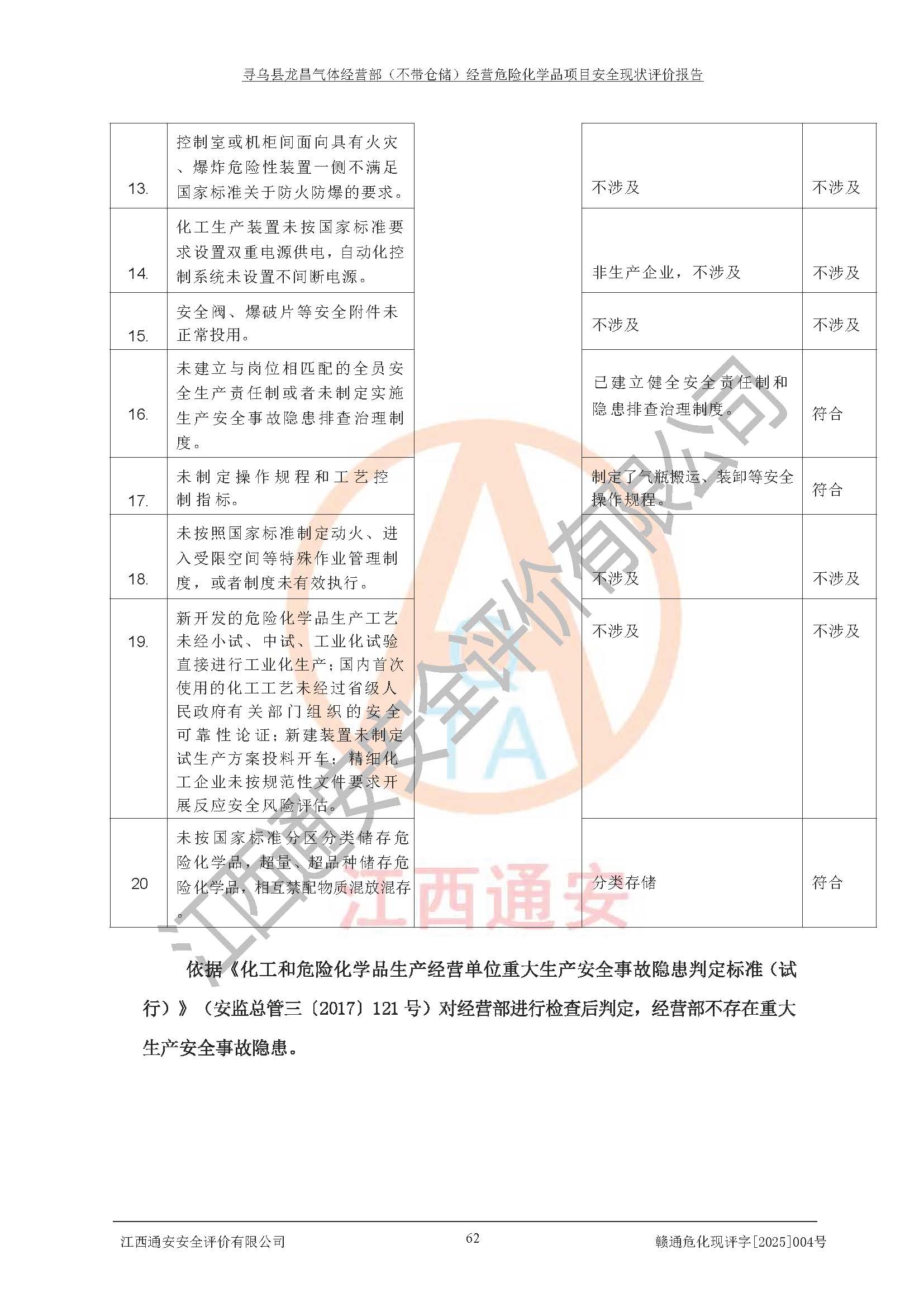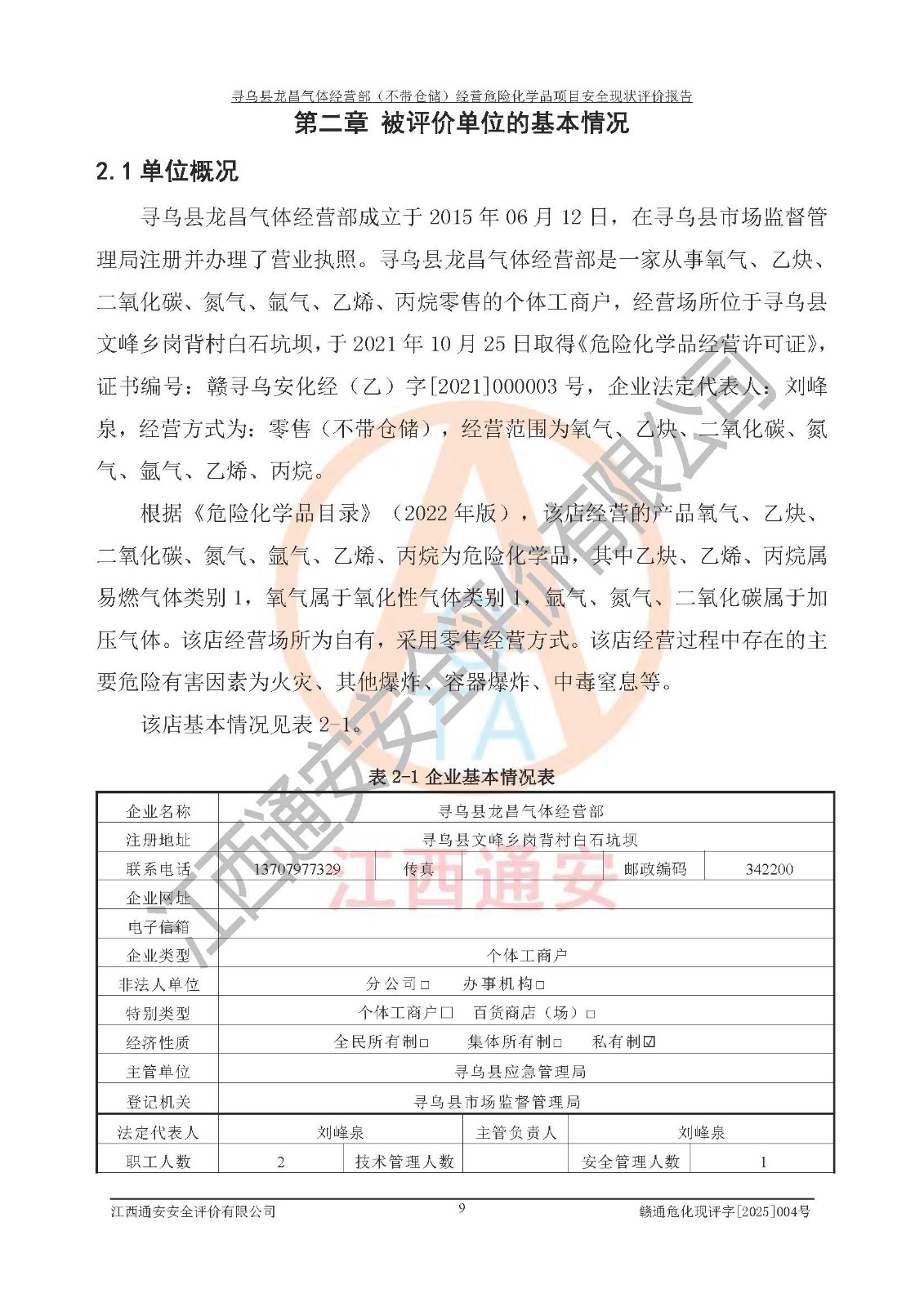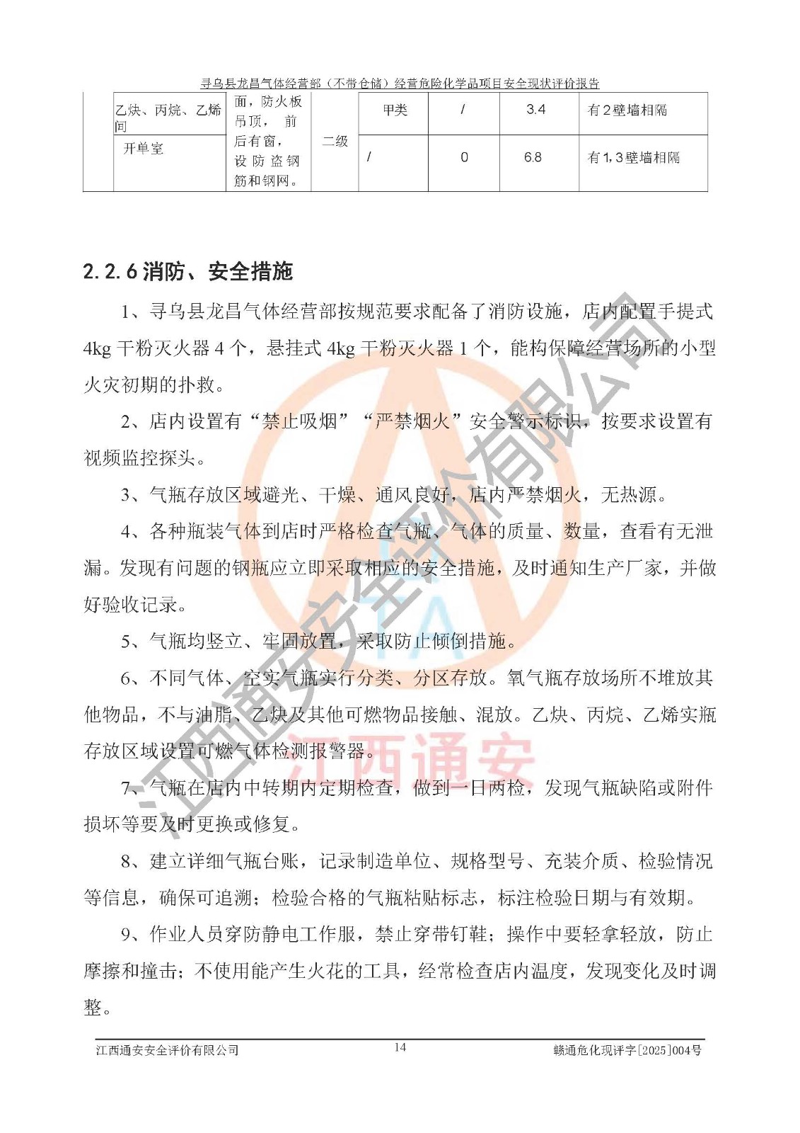项目名称 | 寻乌县龙昌气体经营部(不带仓储)经营危险化学品项目安全现状评价报告 | ||||