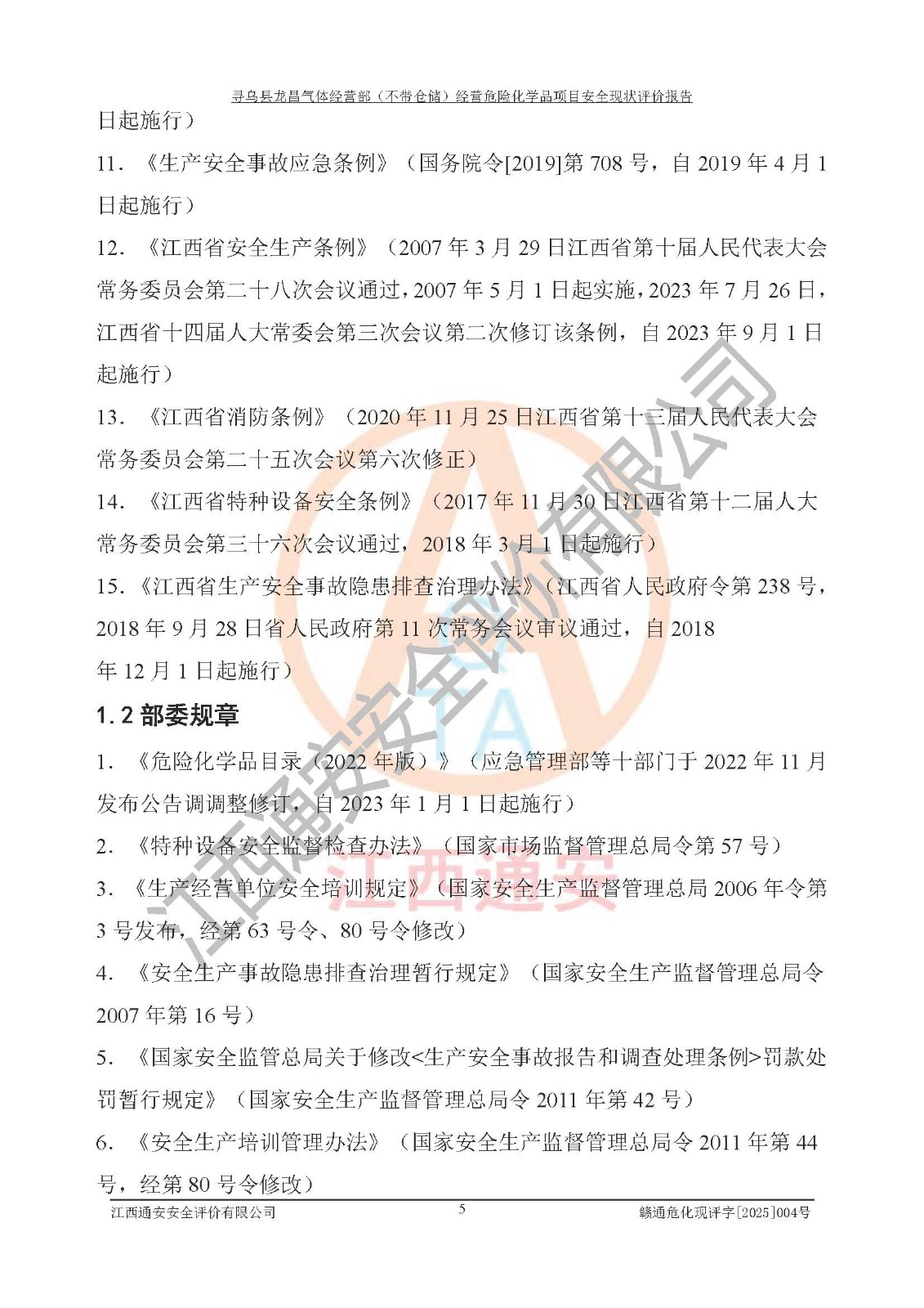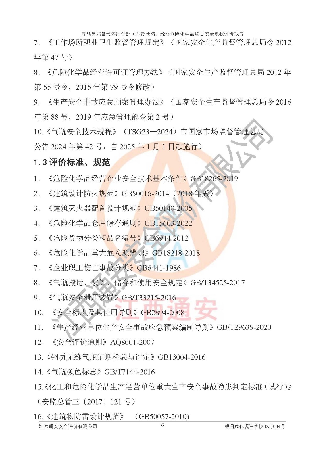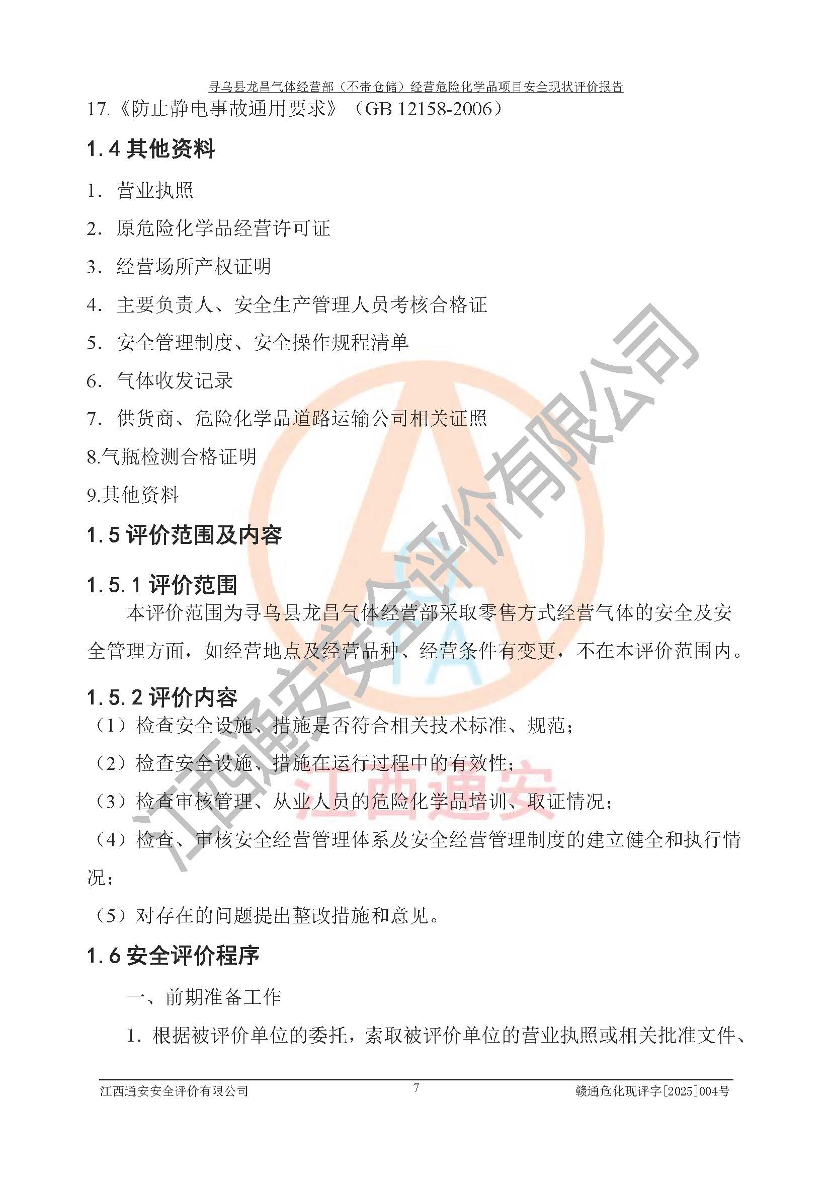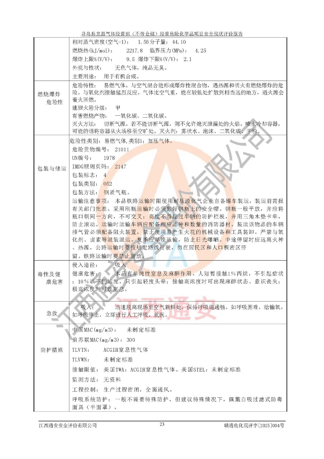 项目名称 | 寻乌县龙昌气体经营部(不带仓储)经营危险化学品项目安全现状评价报告 | ||||