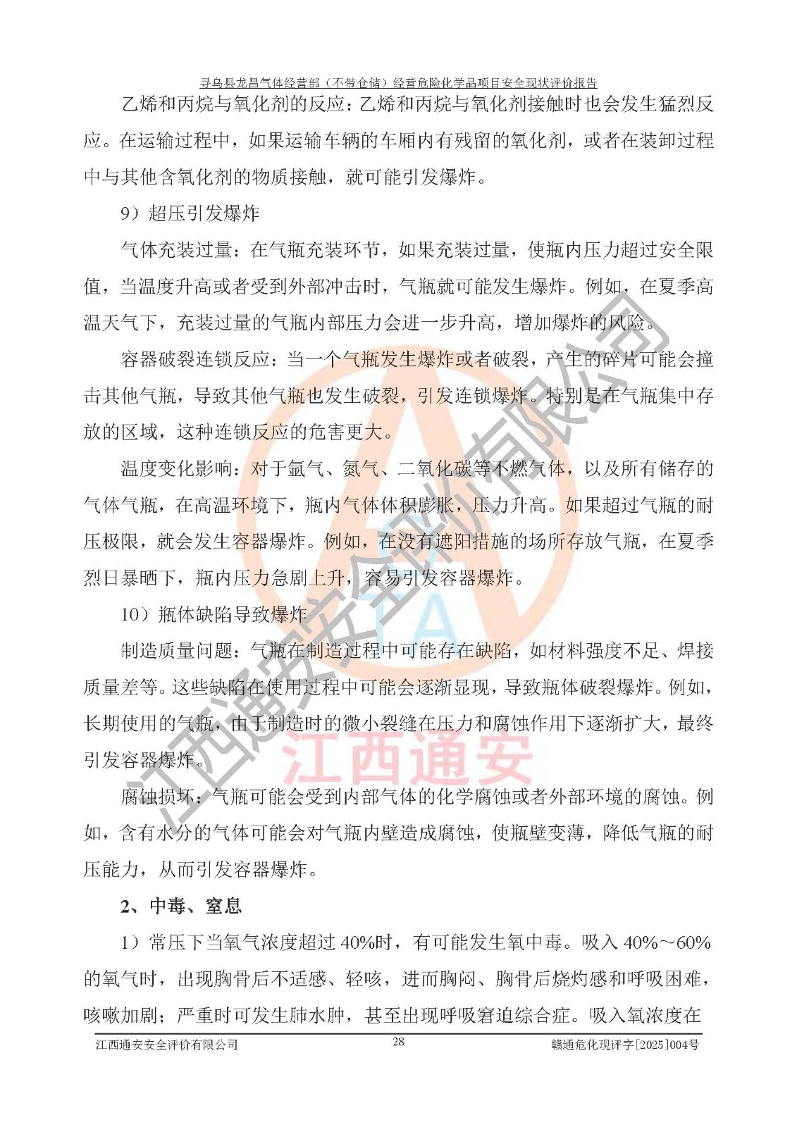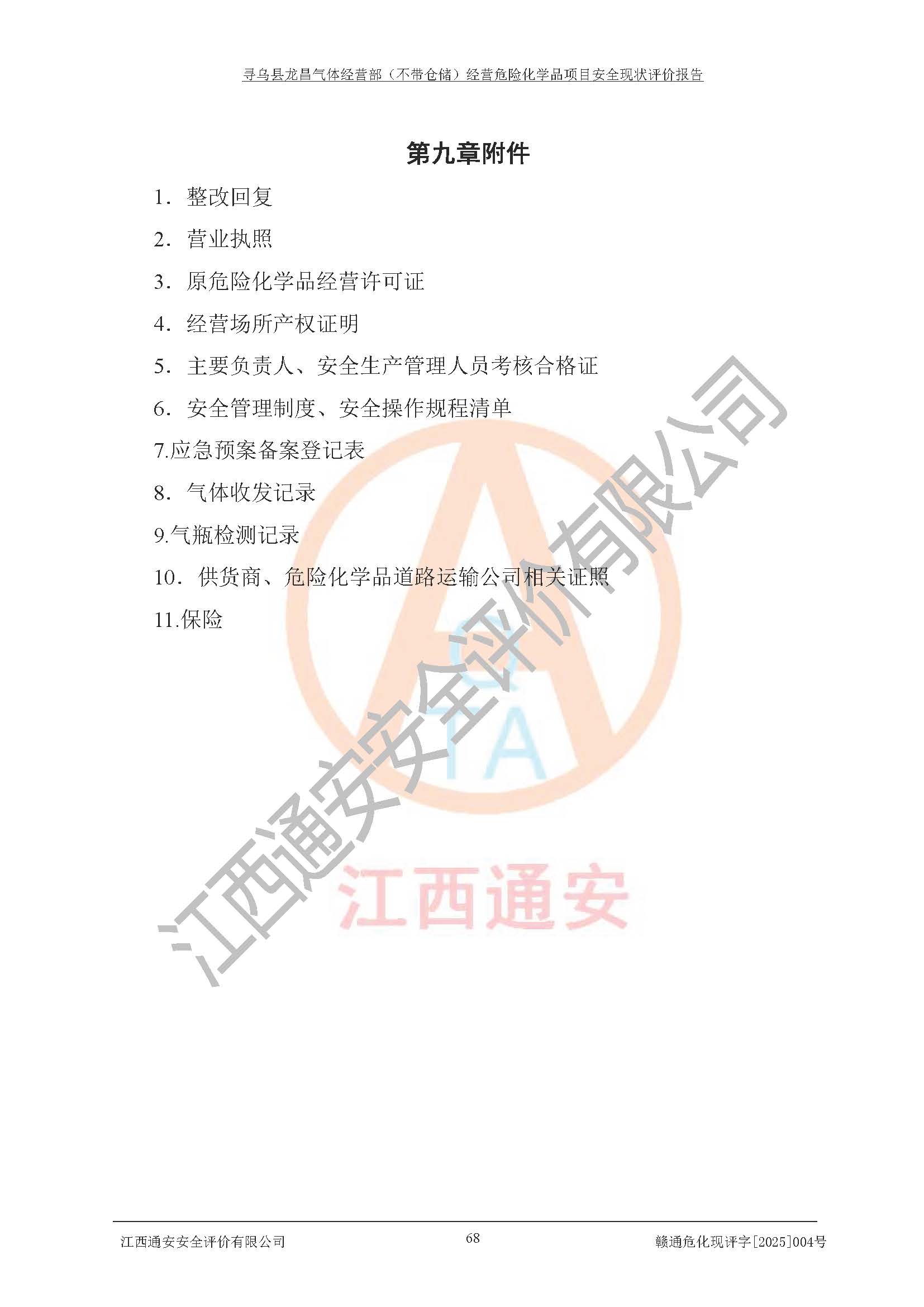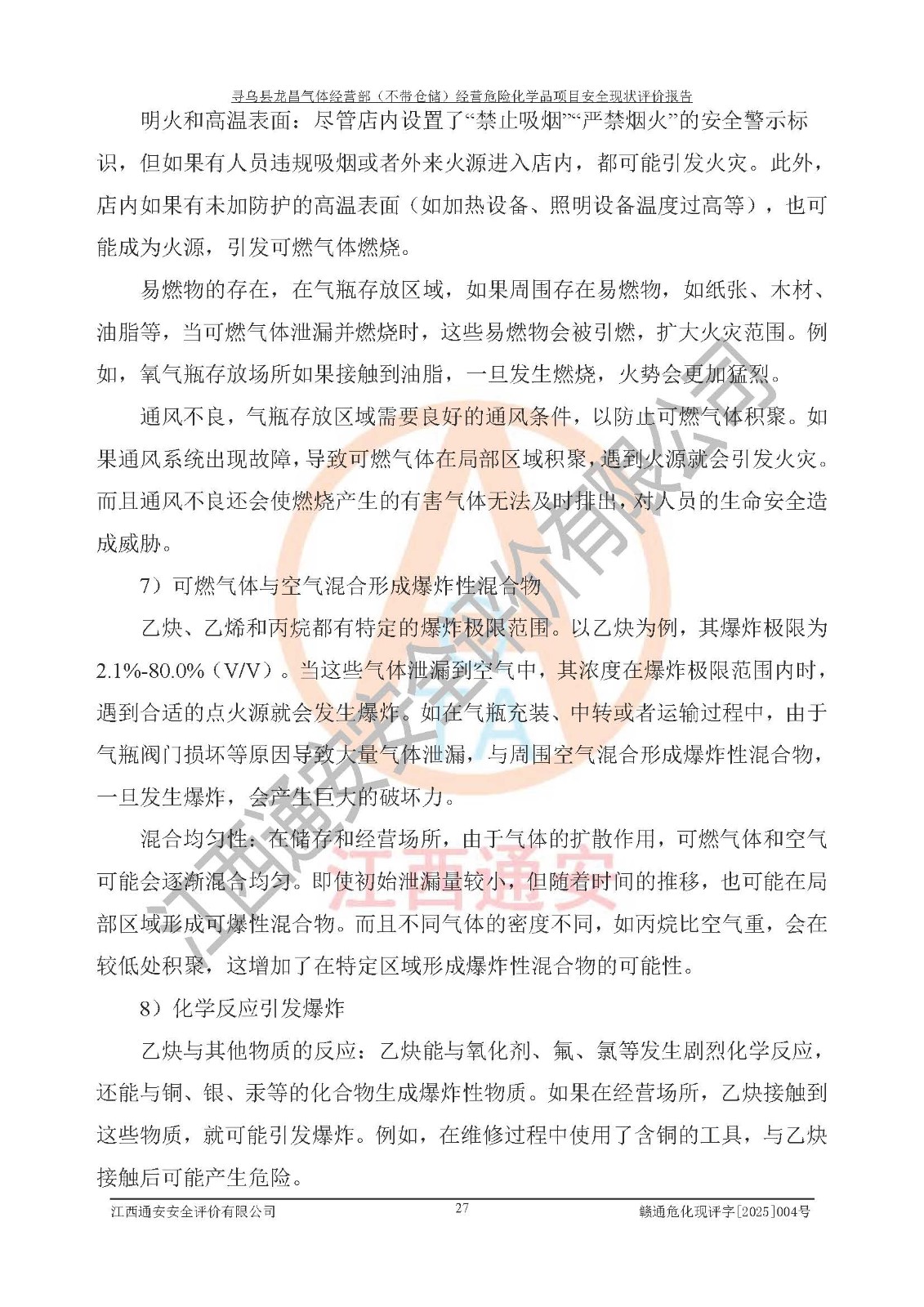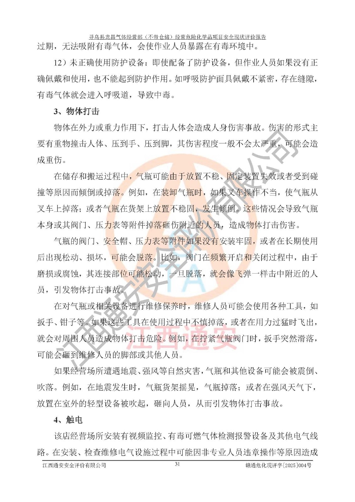 项目名称 | 寻乌县龙昌气体经营部(不带仓储)经营危险化学品项目安全现状评价报告 | ||||