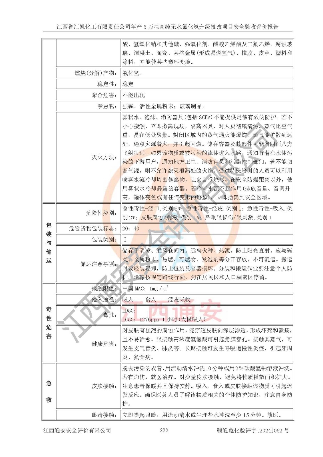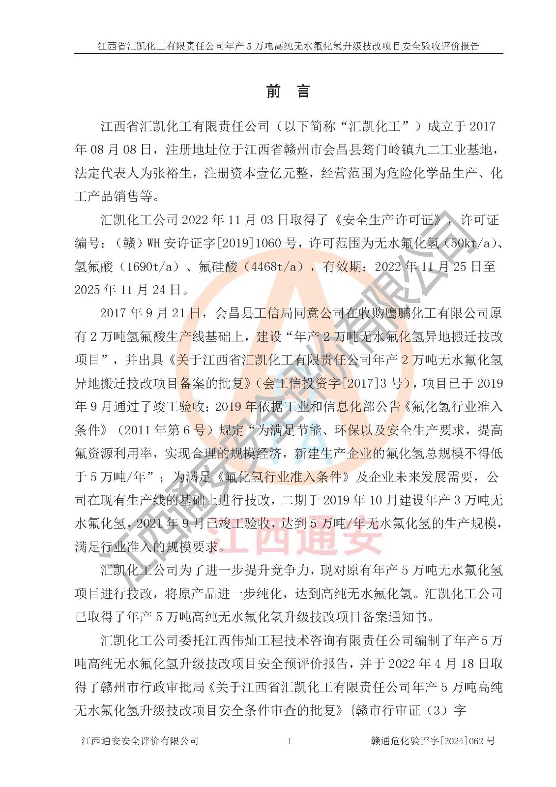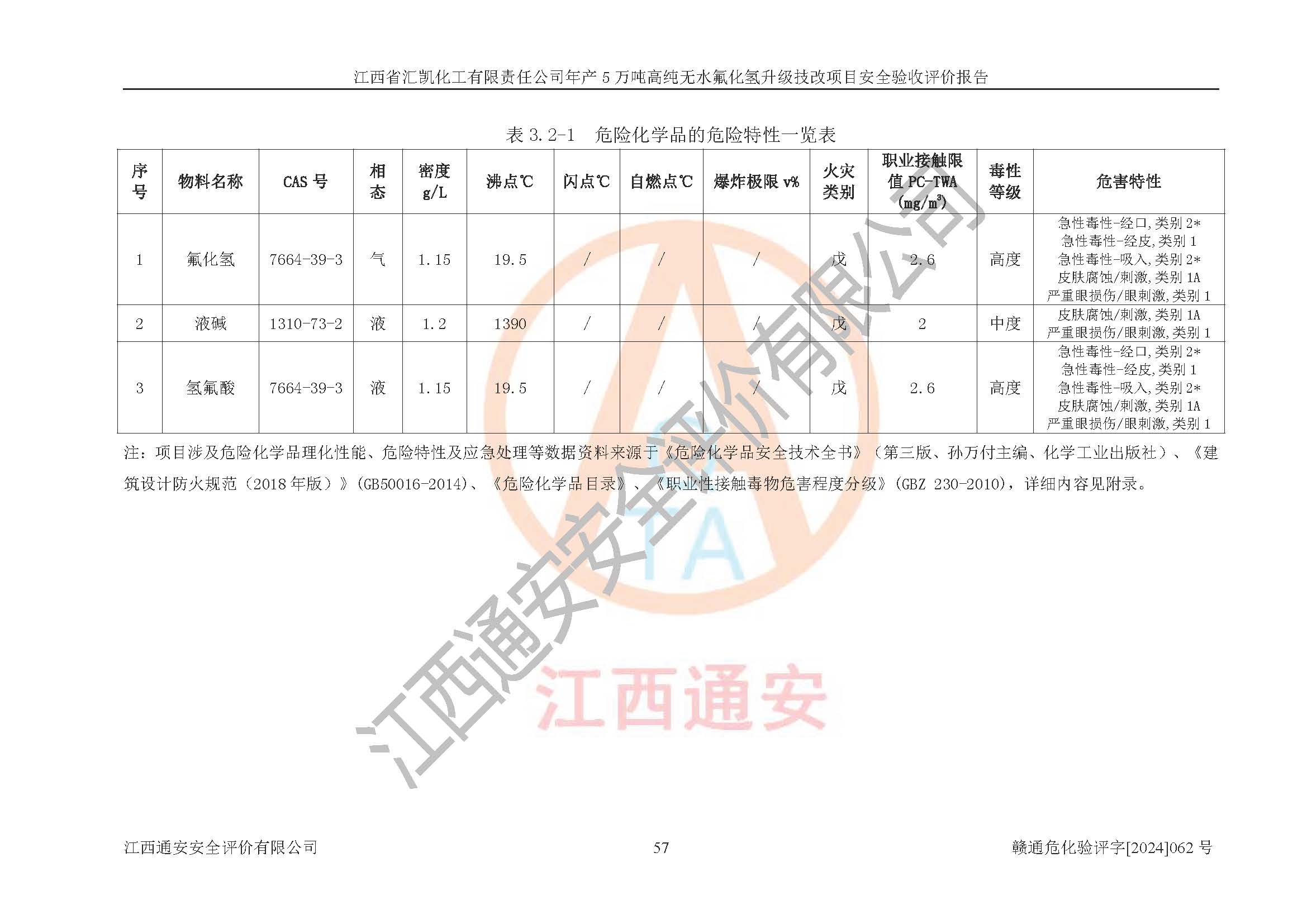 评价报告名称 | 江西省汇凯化工有限责任公司年产5万吨高纯无水氟化氢升级技改项目安全验收评价报告 | ||||||