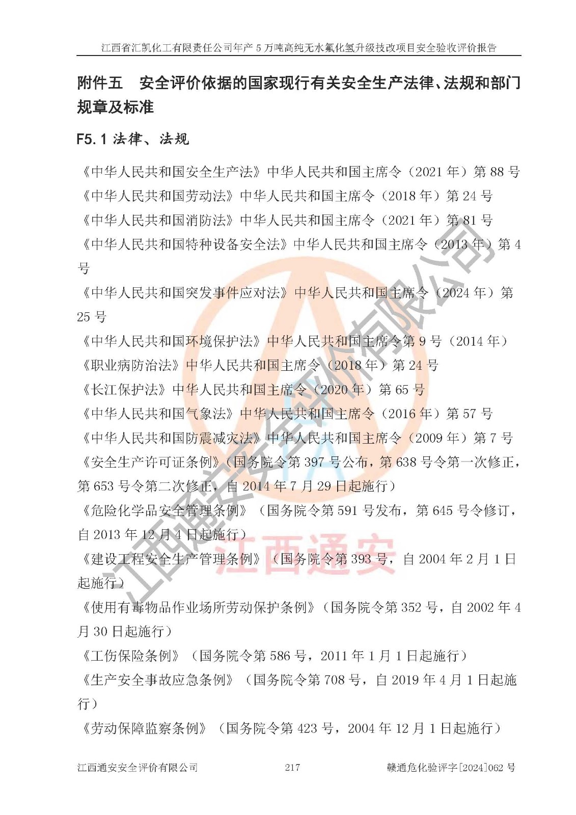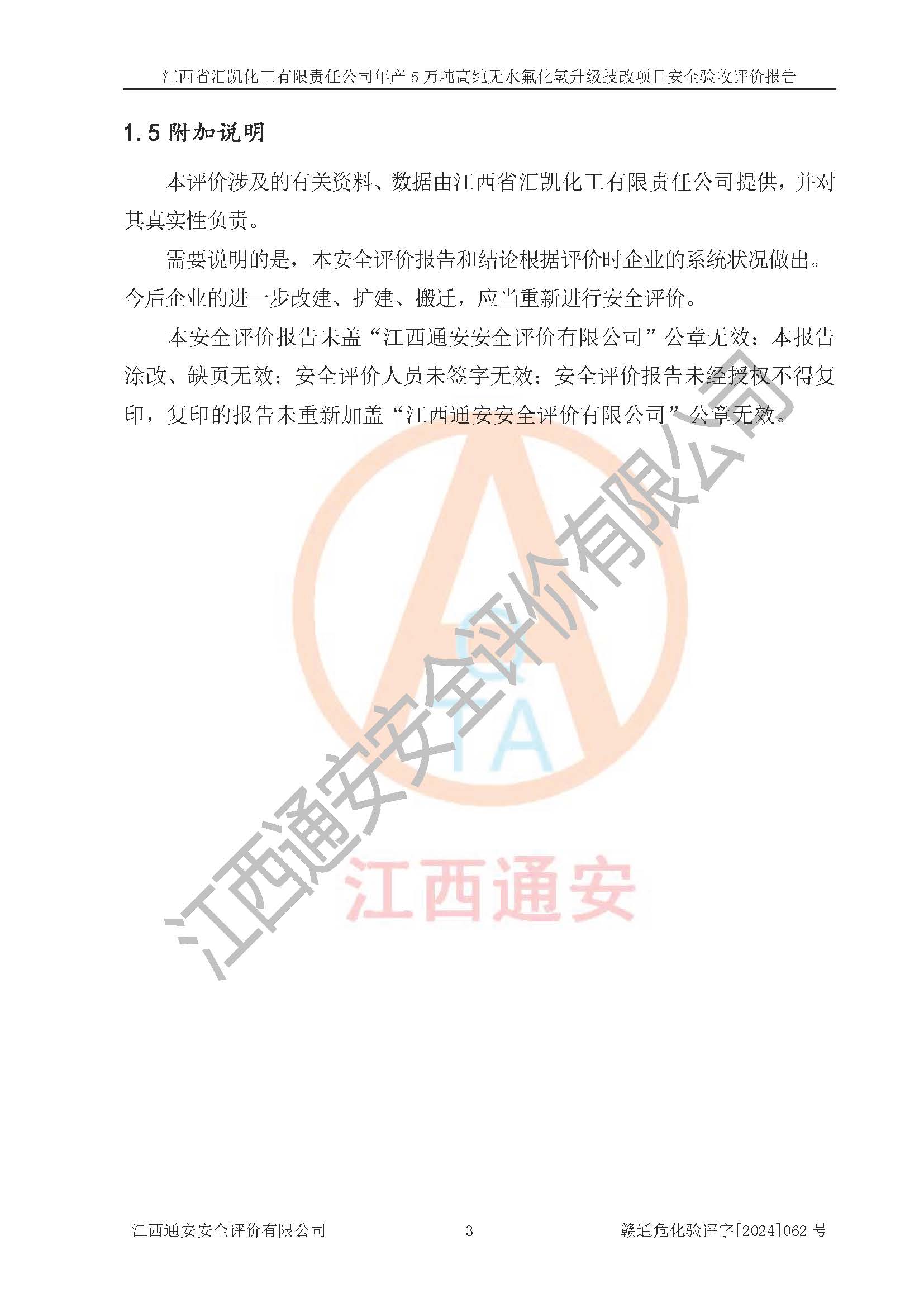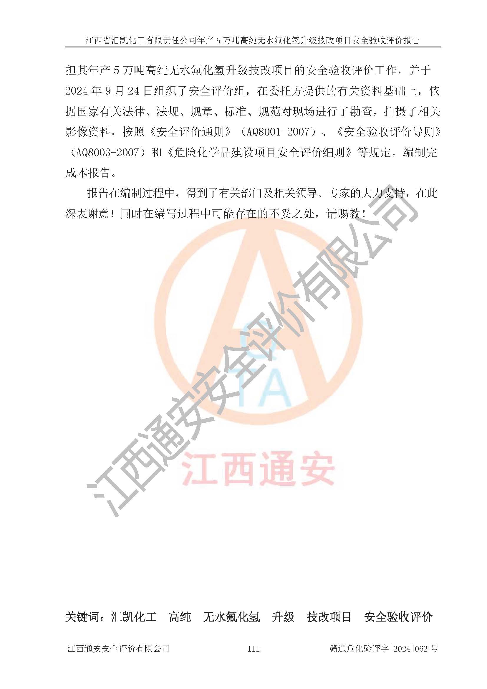 评价报告名称 | 江西省汇凯化工有限责任公司年产5万吨高纯无水氟化氢升级技改项目安全验收评价报告 | ||||||