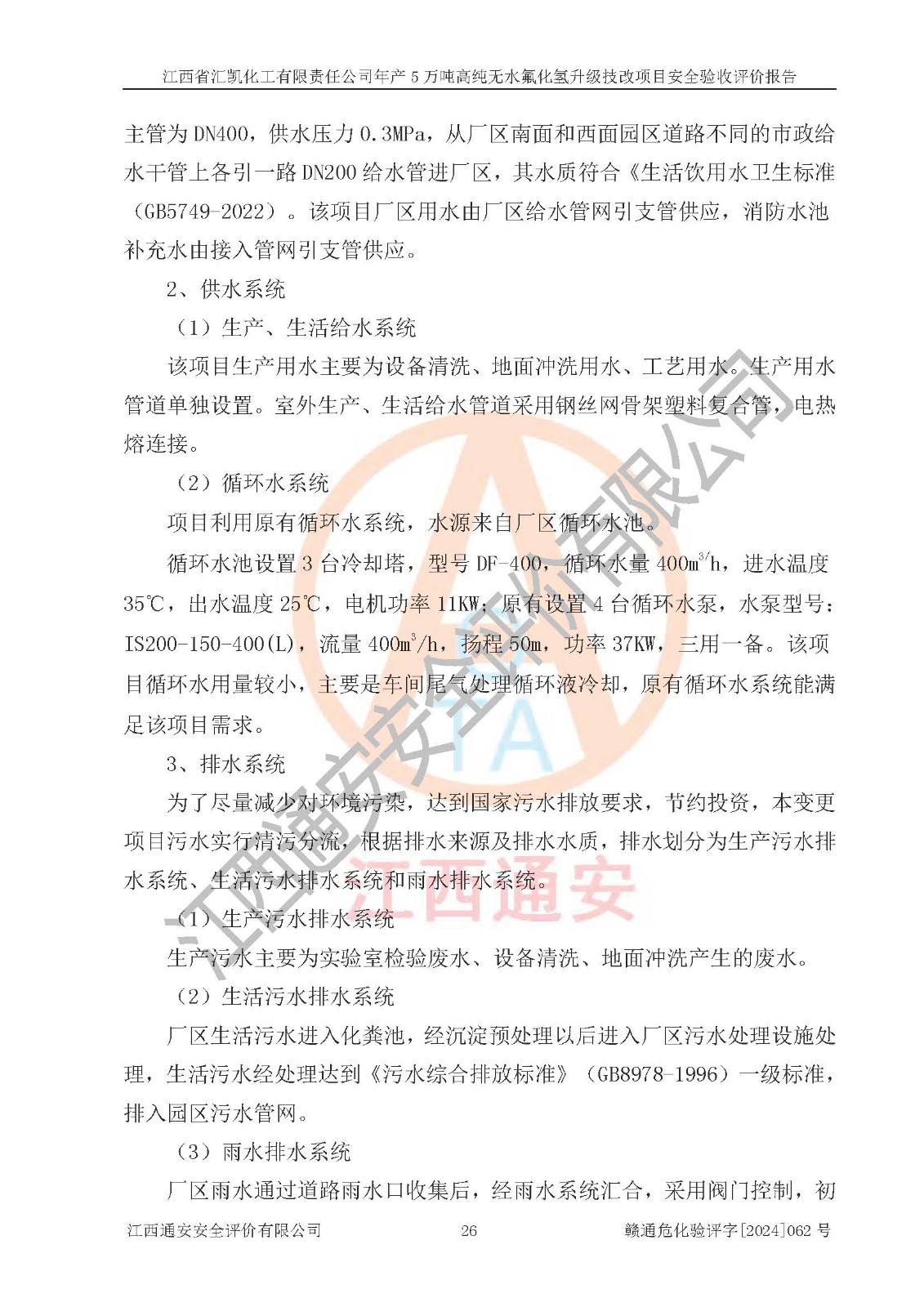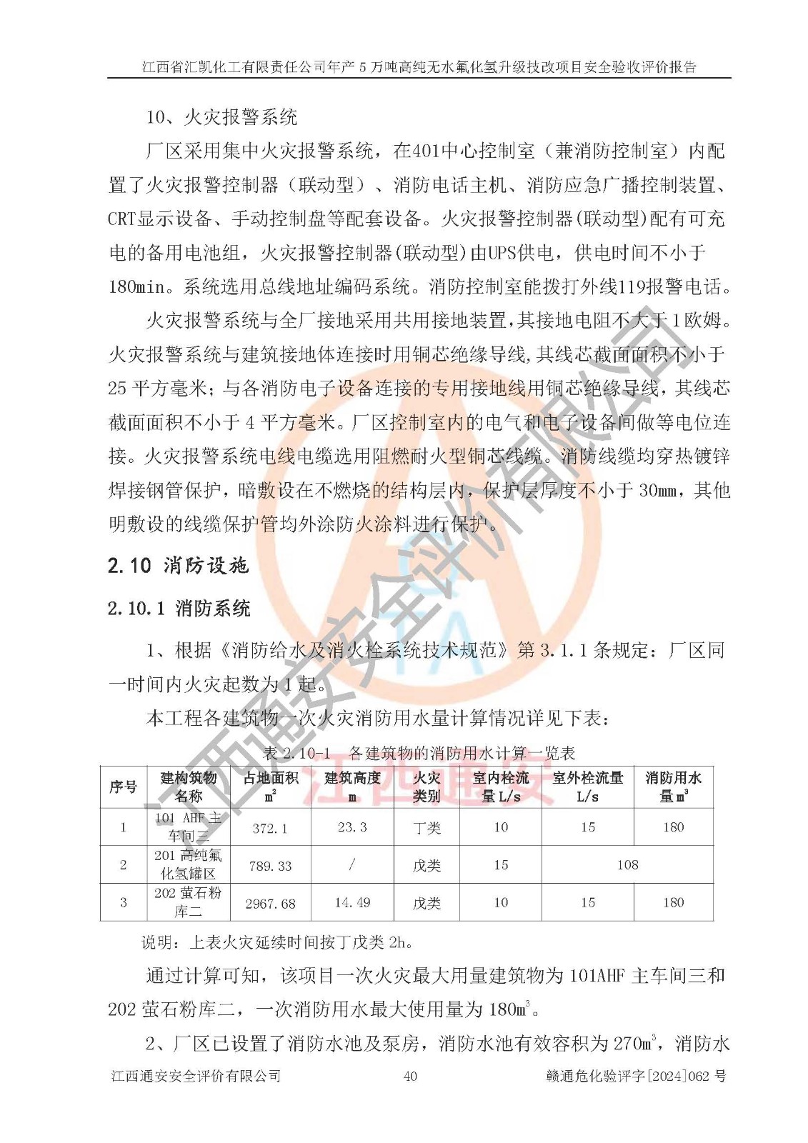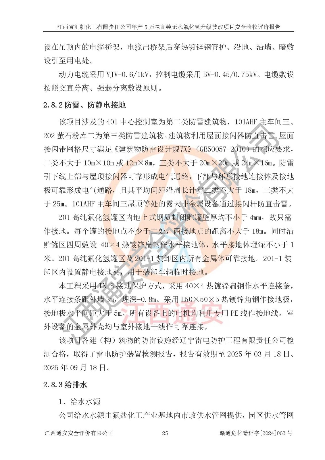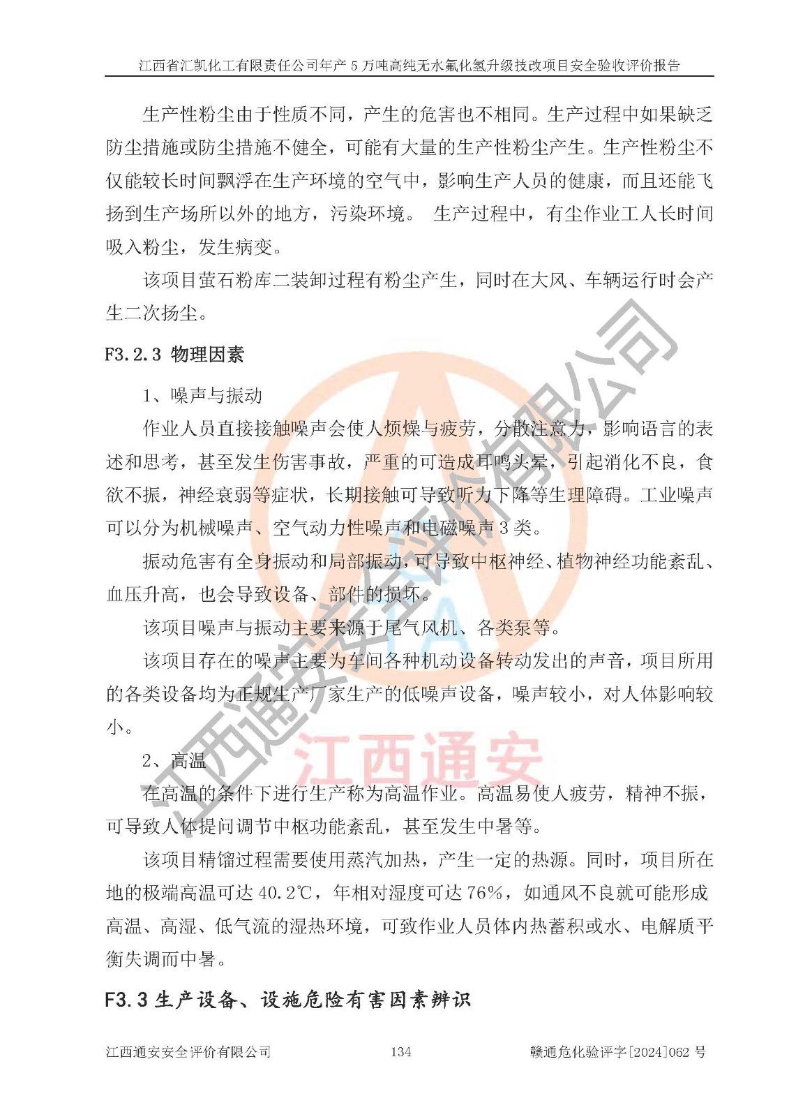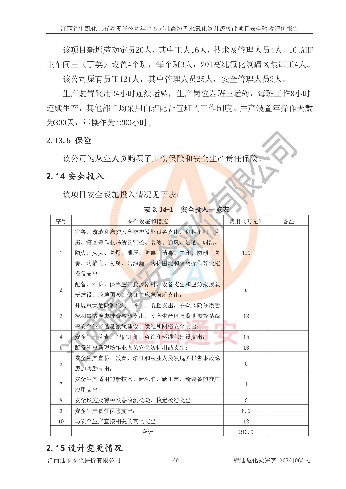 评价结论 | 江西省汇凯化工有限责任公司年产5万吨高纯无水氟化氢升级技改项目现场情况与设计图纸一致,DCS系统和SIS系统符合设计要求、运行正常,主要负责人、安全管理人员等有关从业人员资质符合《江西省危险化学品安全专项整治三年行动实施方案》要求,安全设施及安全管理符合**及有关部门关于安全生产法律、法规、标准的要求,该项目试生产以来,工艺设备运行正常,安全设施和采取的安全技术措施符合设计要求并达到预期结果,可以满足建设项目安全生产的要求,安全生产管理**,具备了安全设施竣工验收条件。 | ||||||