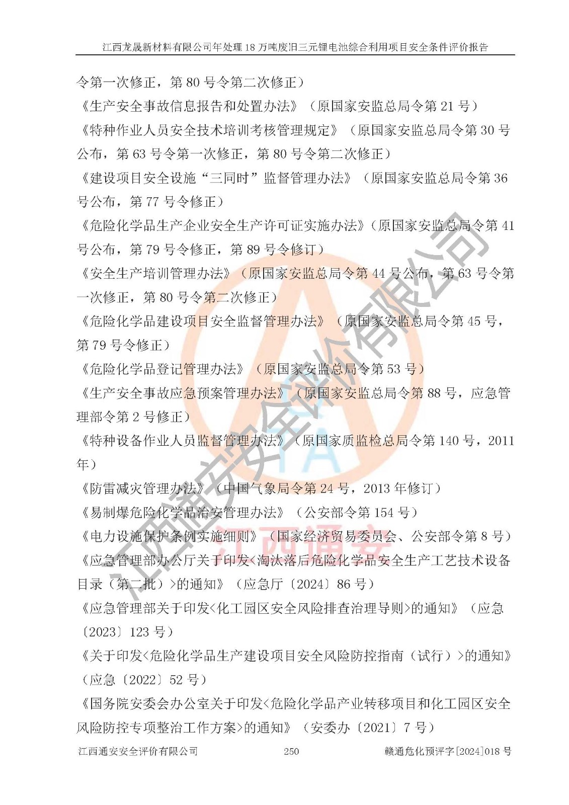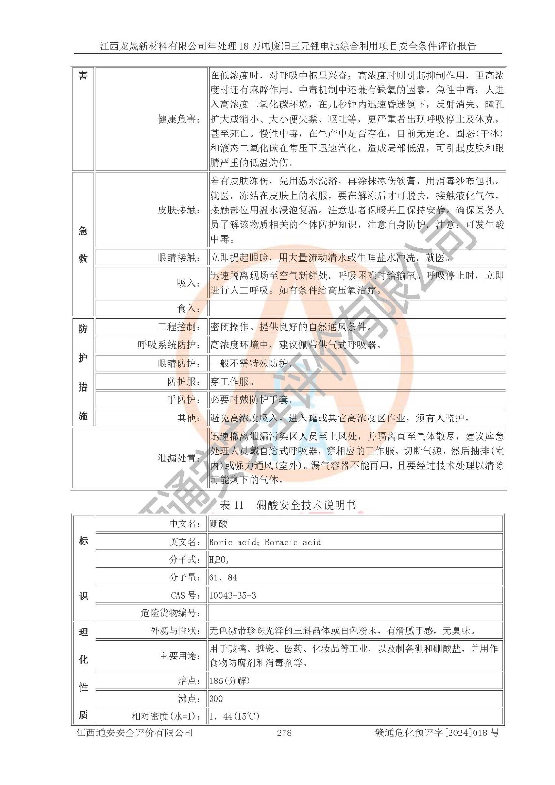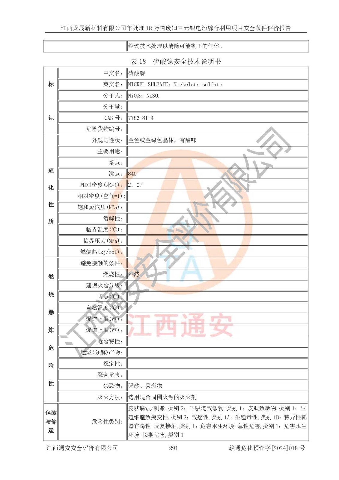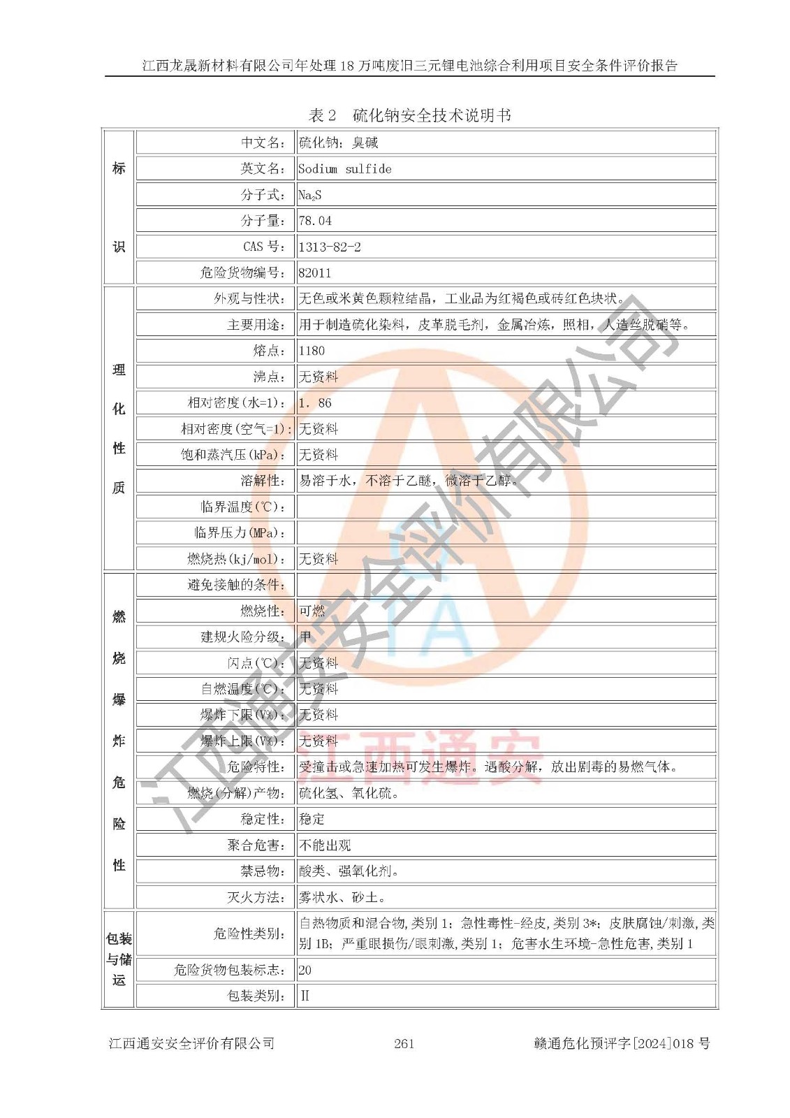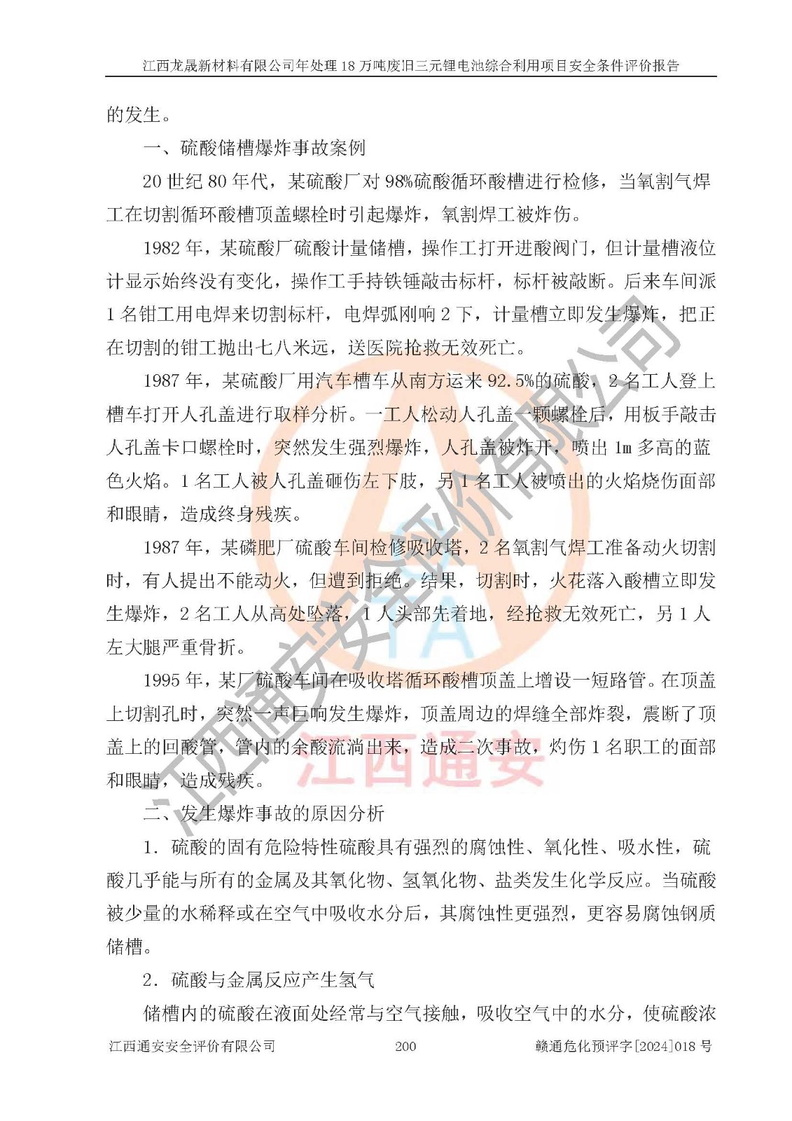 评价报告名称 | 江西龙晟新材料有限公司年处理18万吨废旧三元锂电池综合利用项目安全条件评价报告 | |||