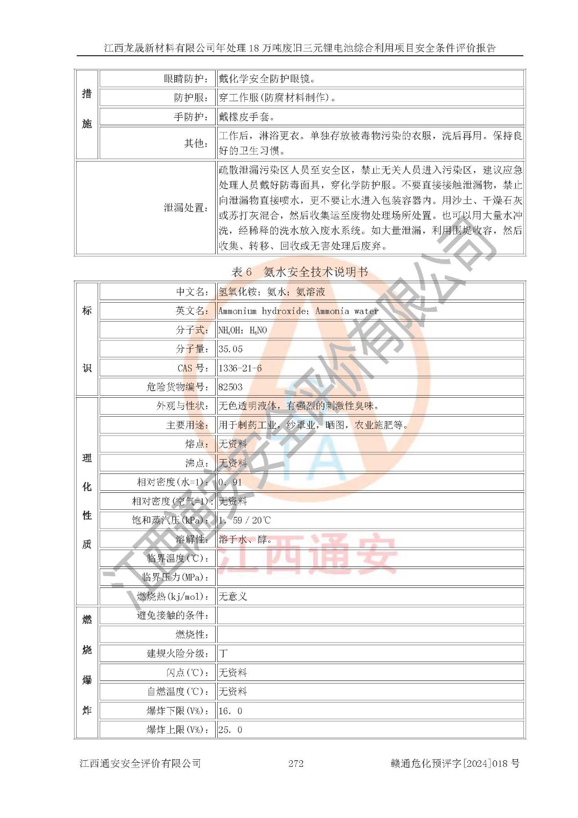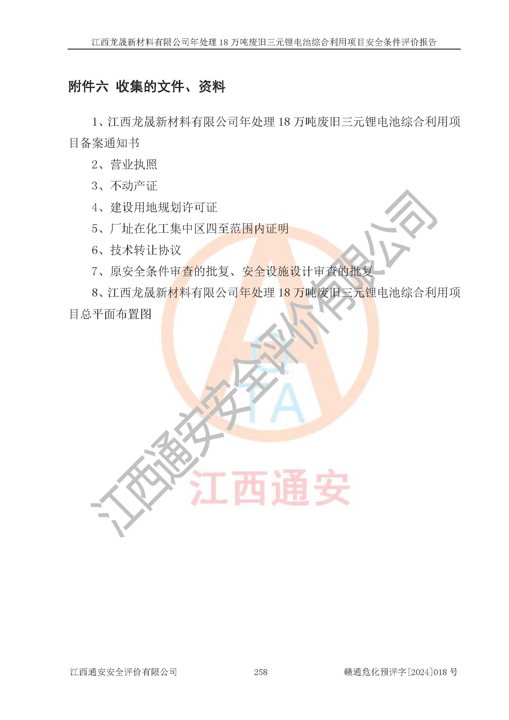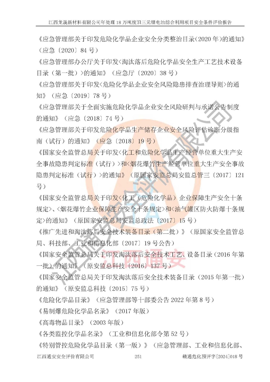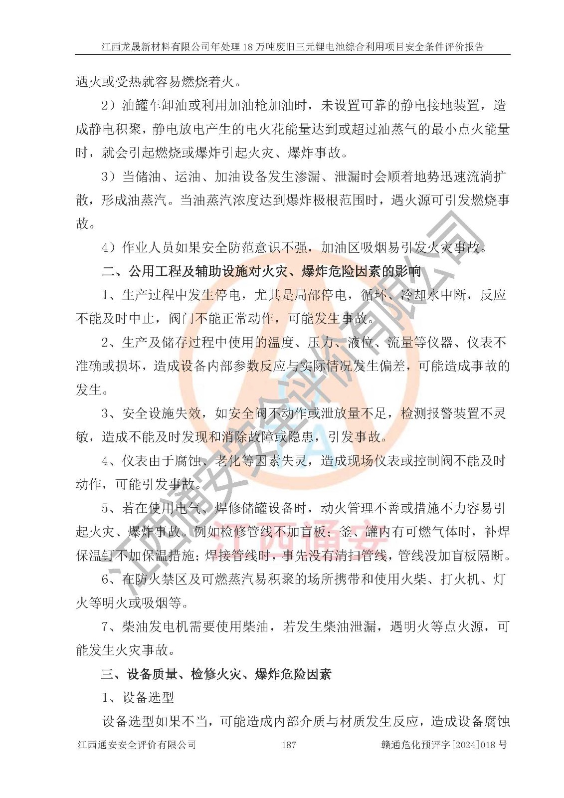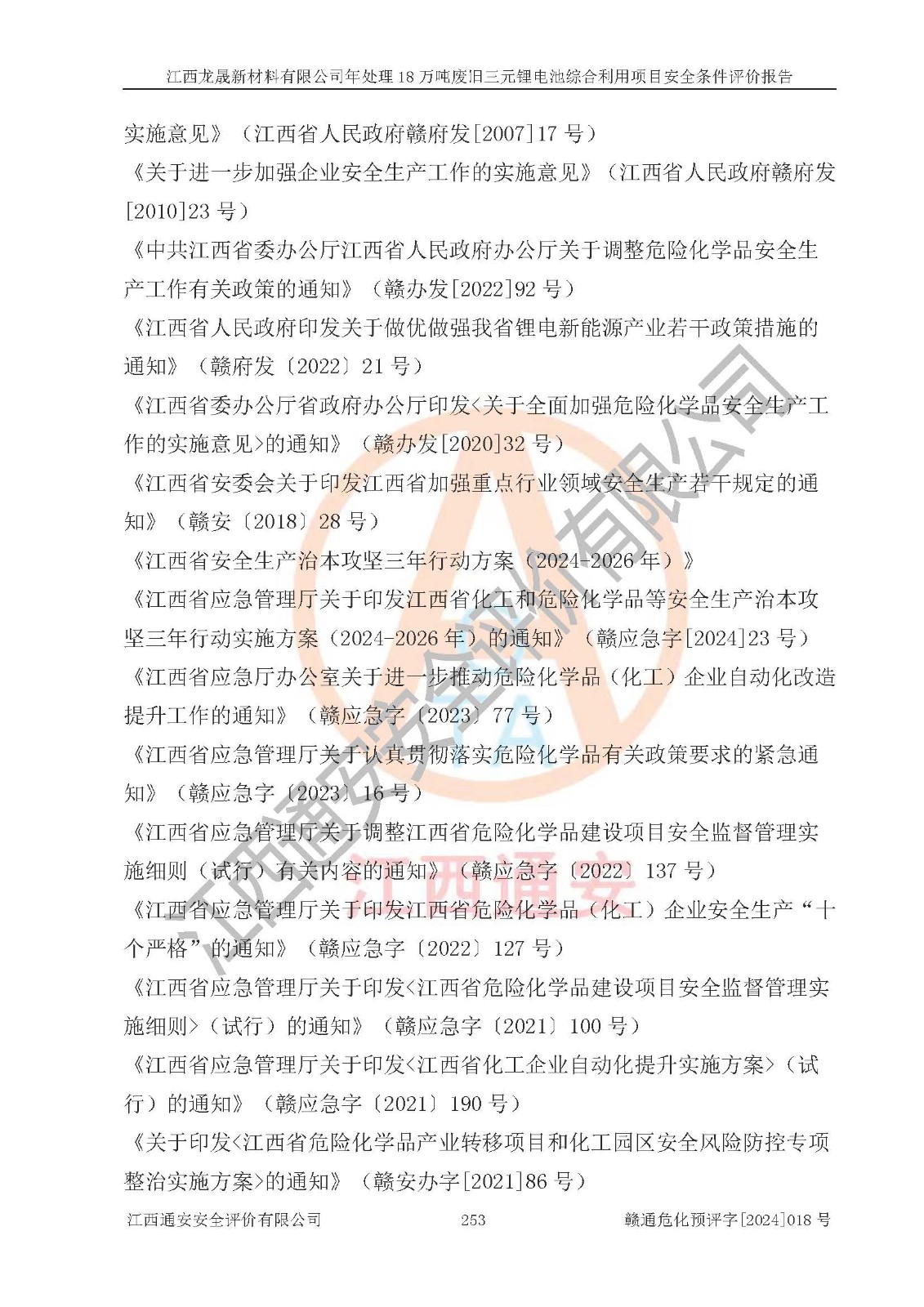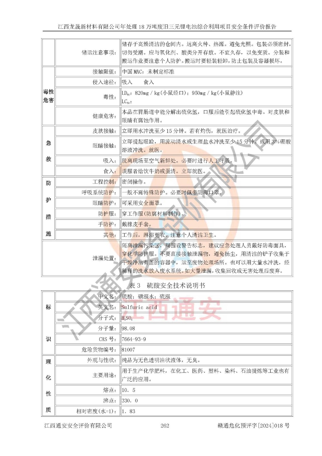 评价报告名称 | 江西龙晟新材料有限公司年处理18万吨废旧三元锂电池综合利用项目安全条件评价报告 | |||
