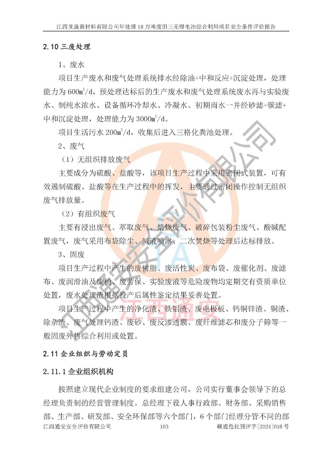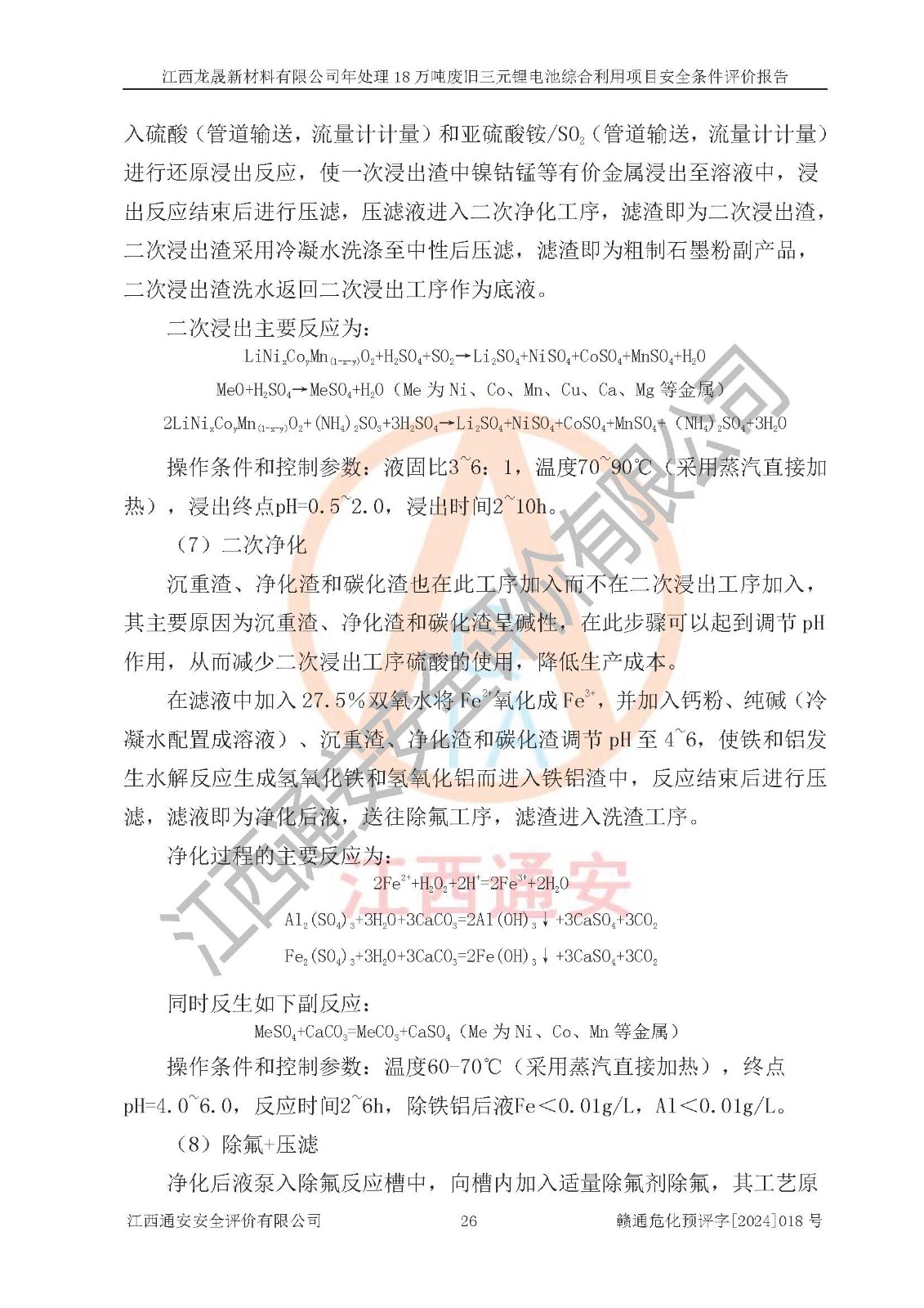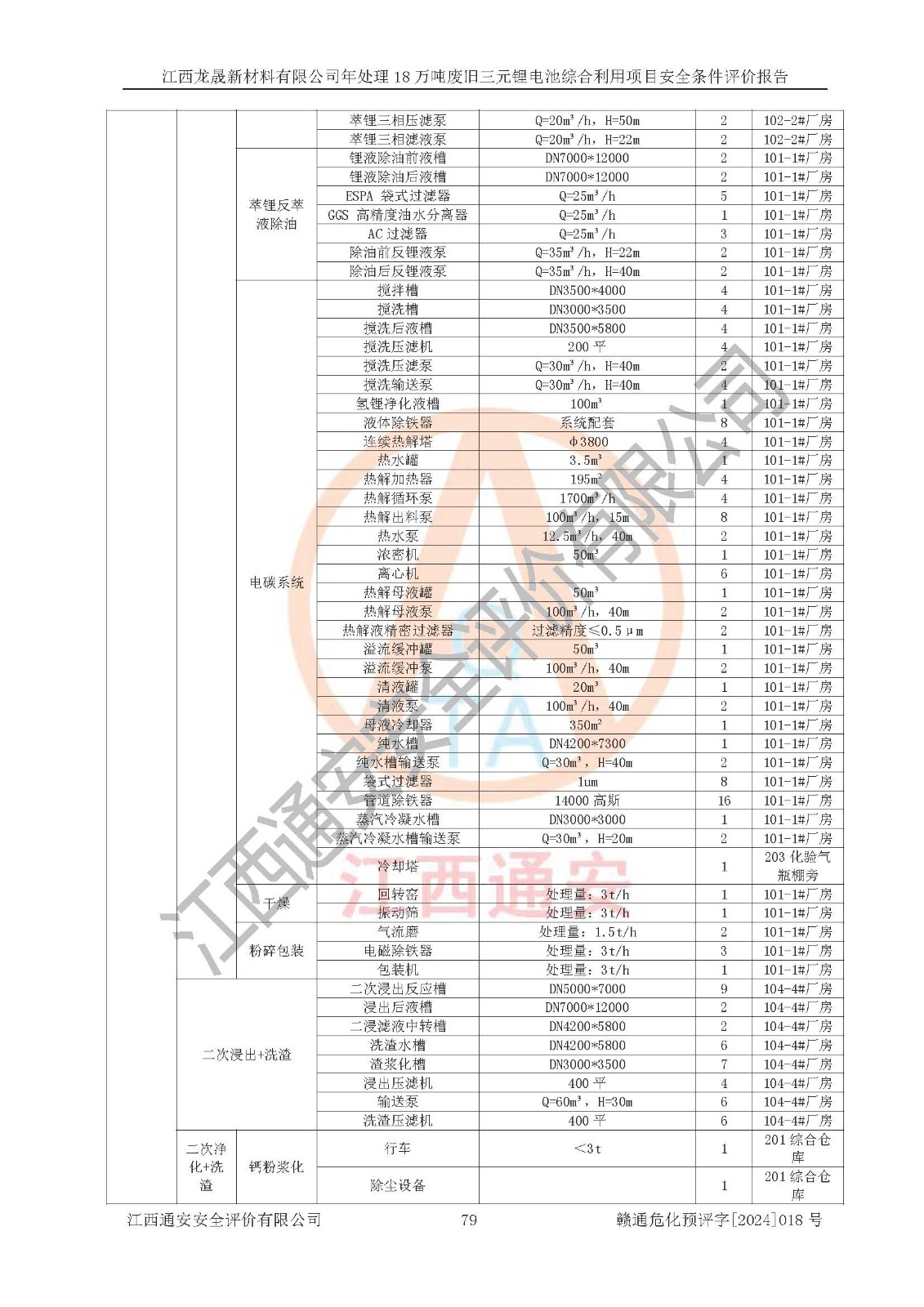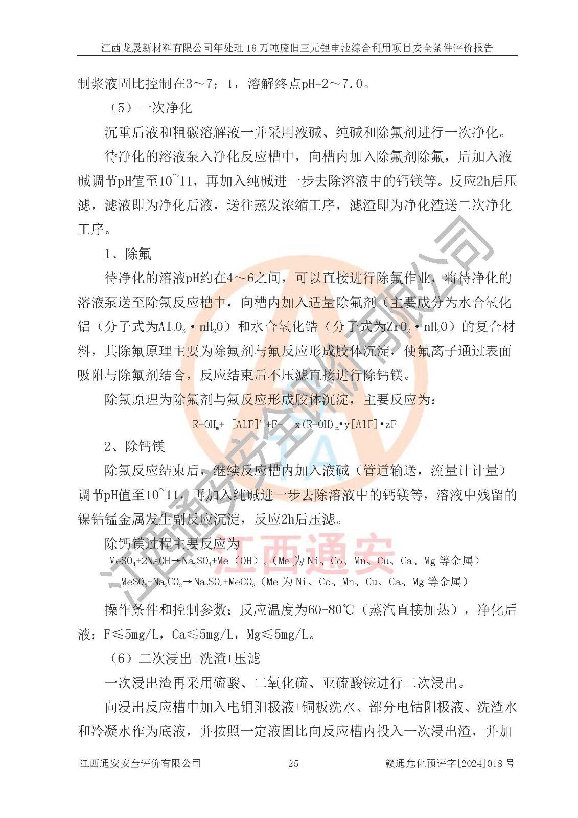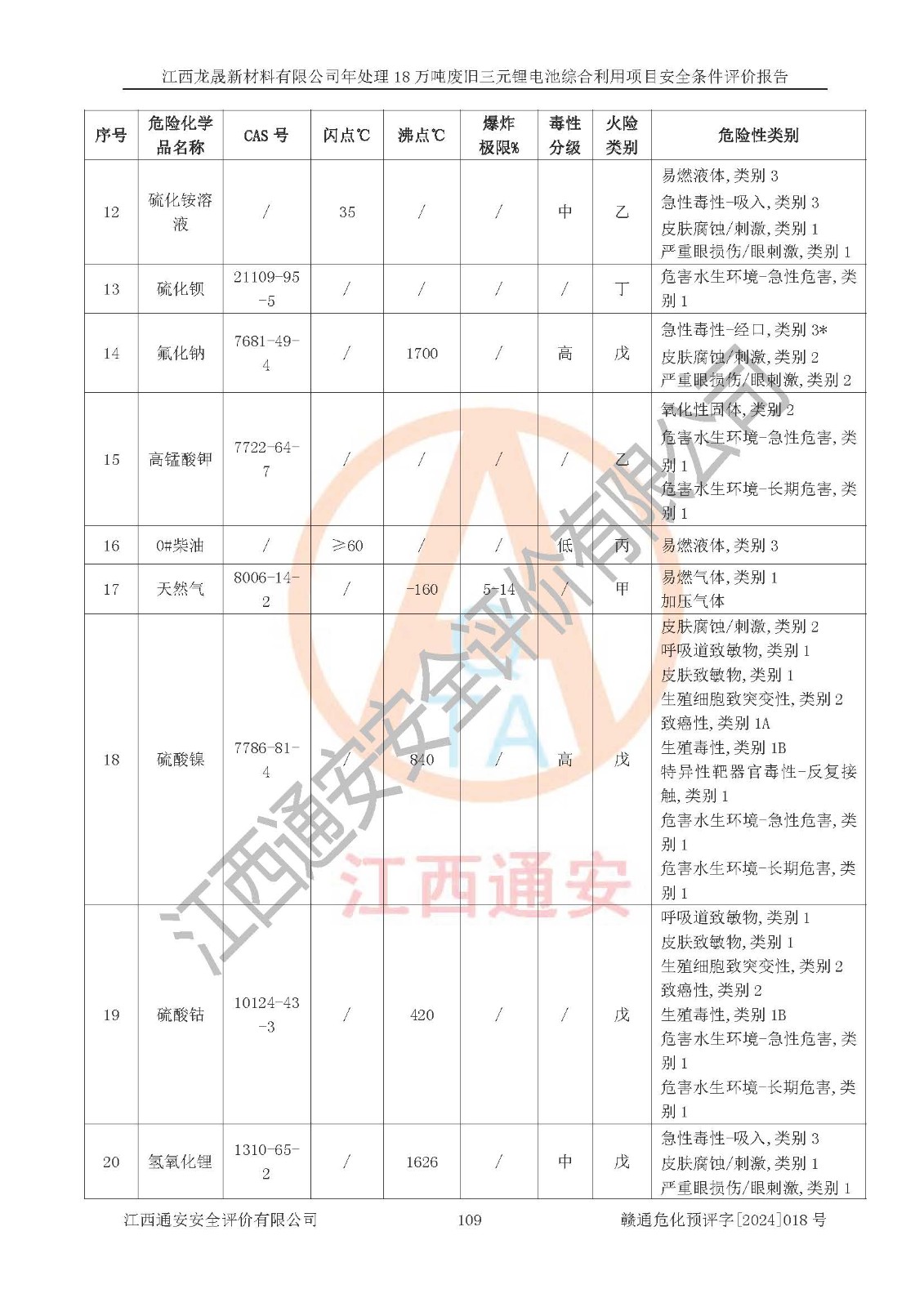 评价报告名称 | 江西龙晟新材料有限公司年处理18万吨废旧三元锂电池综合利用项目安全条件评价报告 | |||