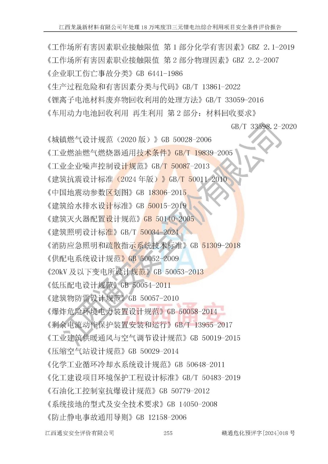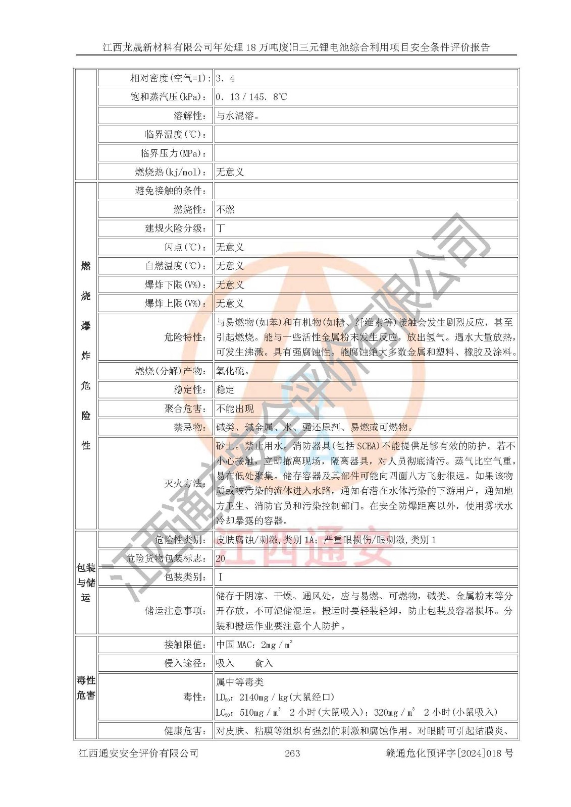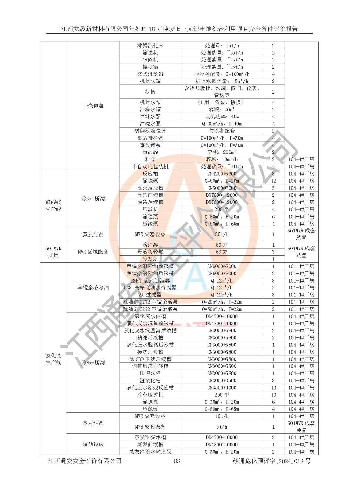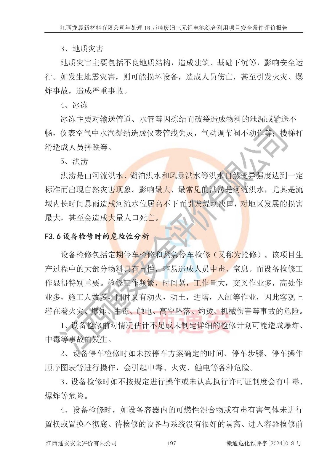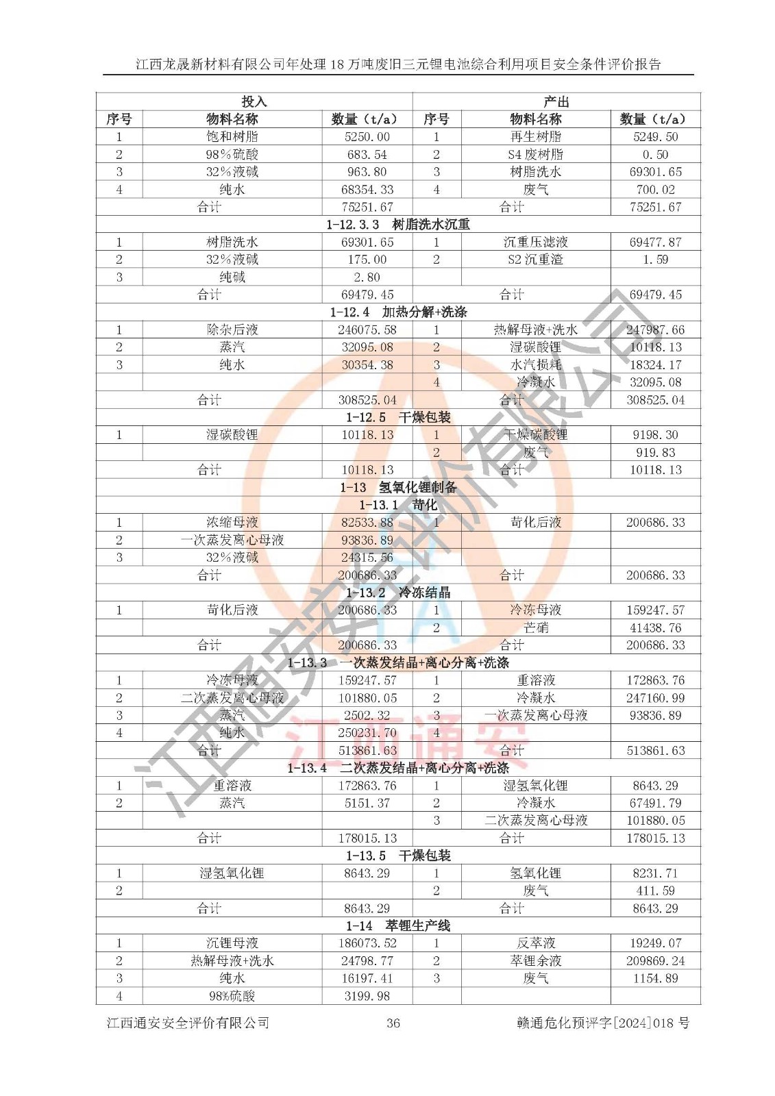 评价报告名称 | 江西龙晟新材料有限公司年处理18万吨废旧三元锂电池综合利用项目安全条件评价报告 | |||