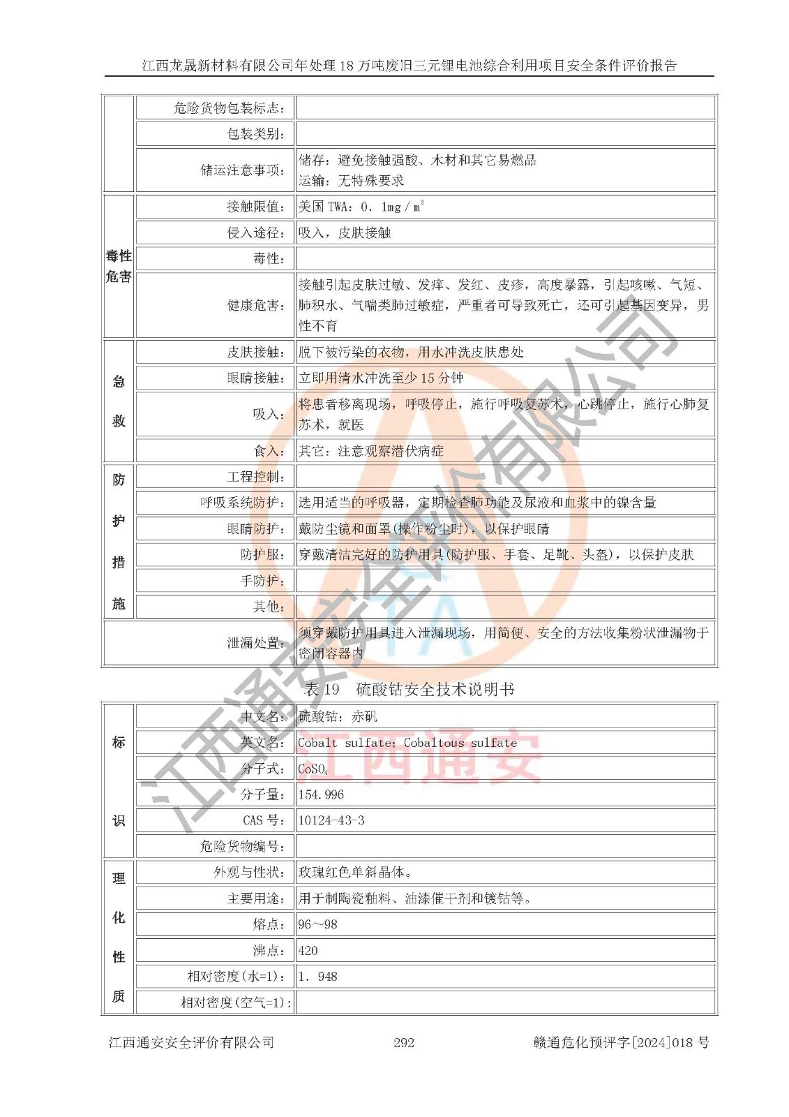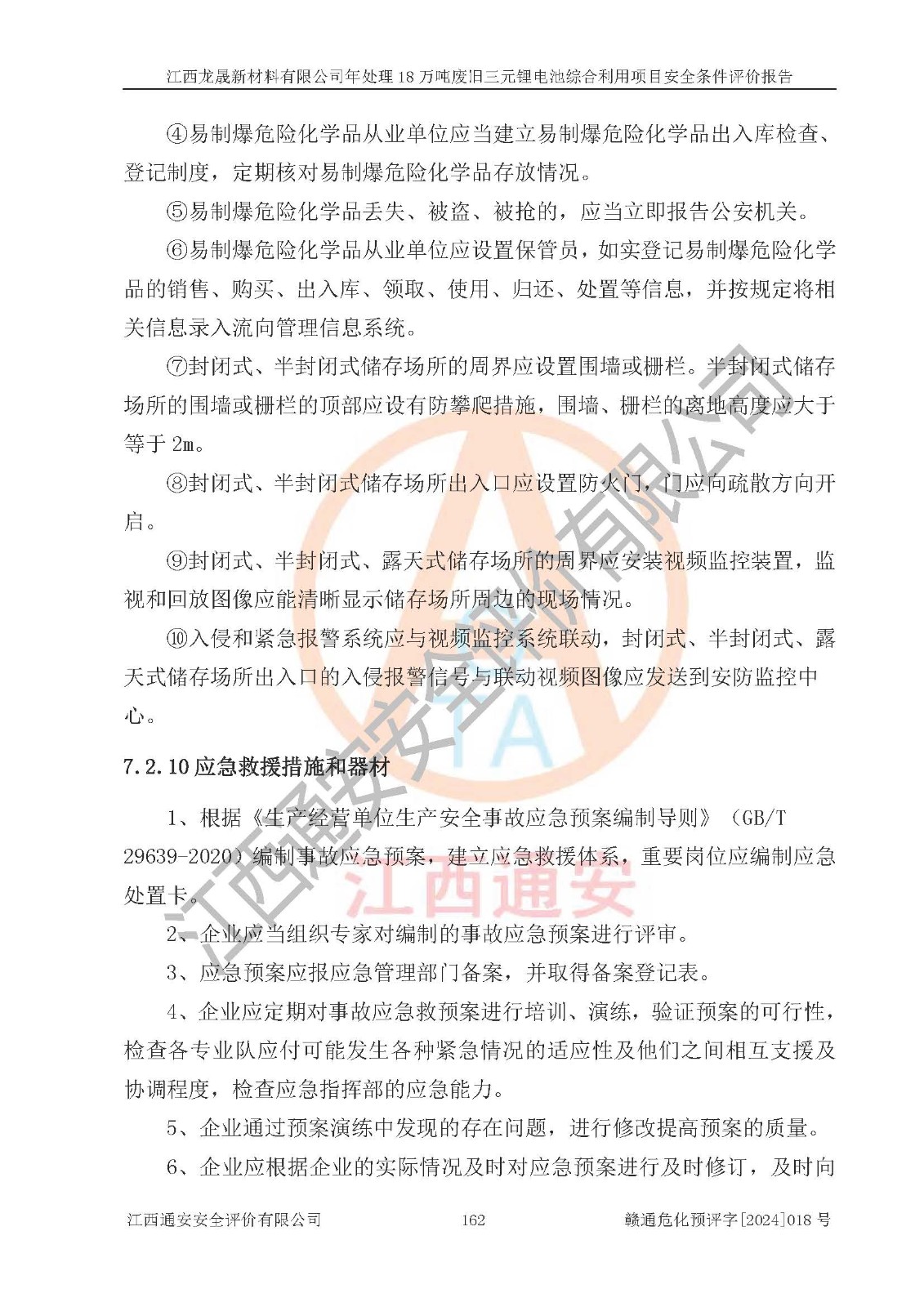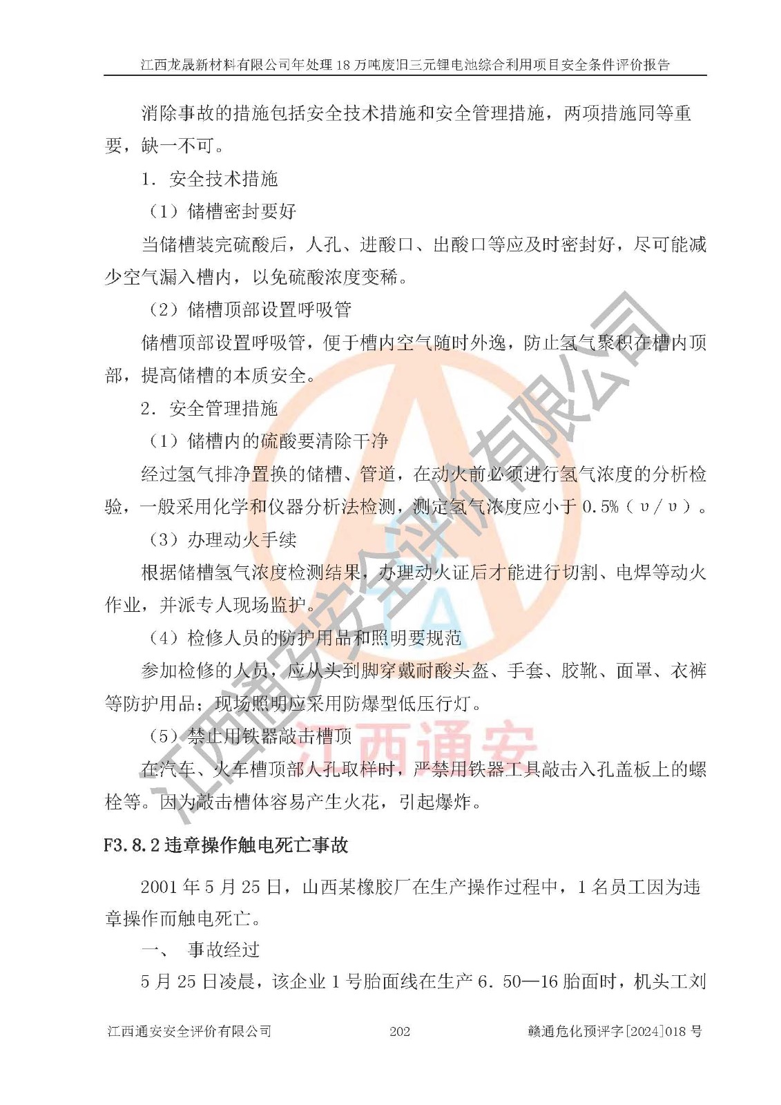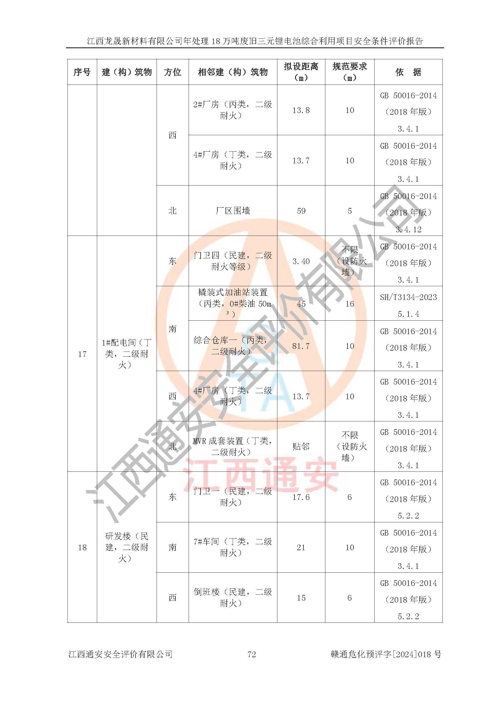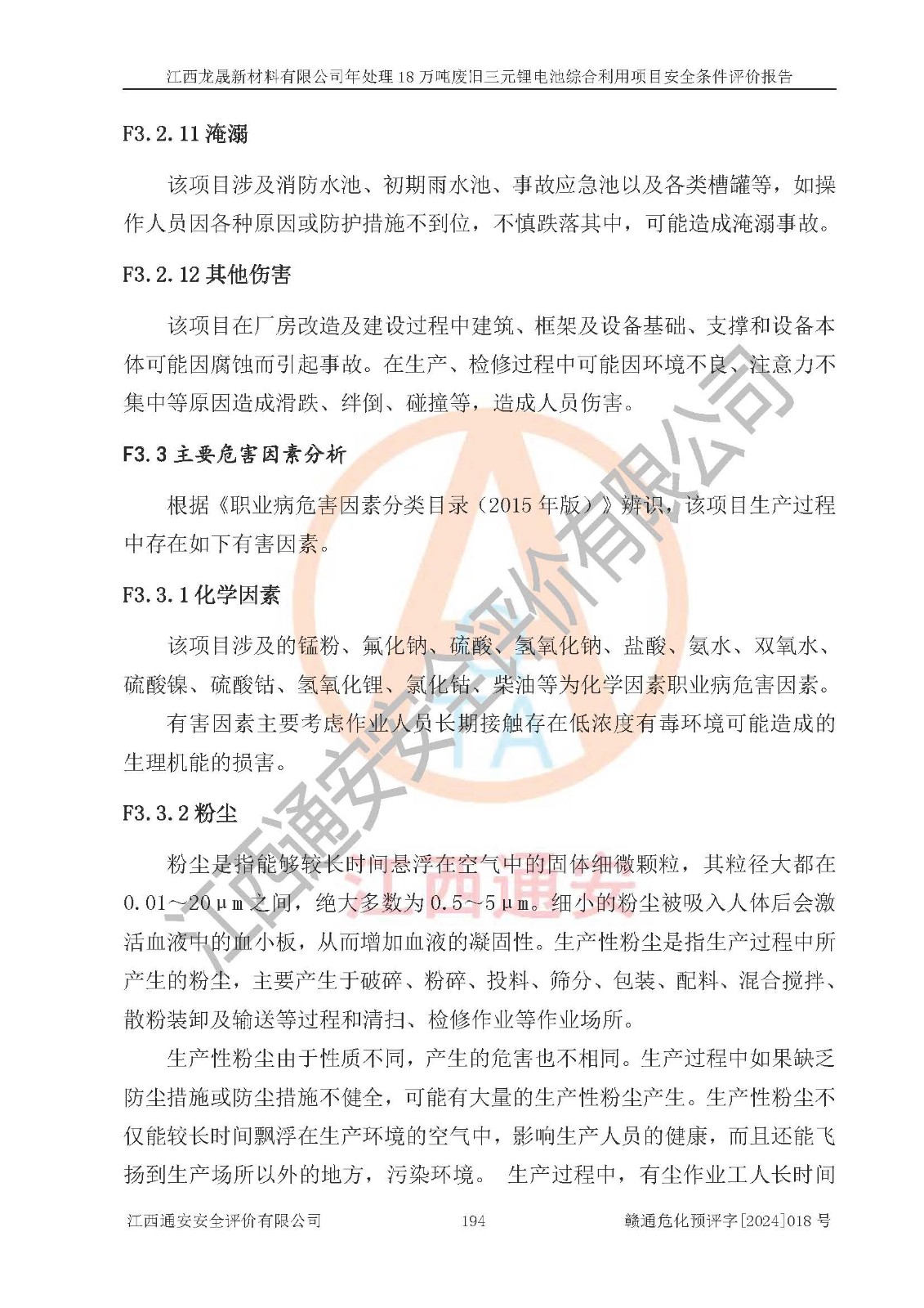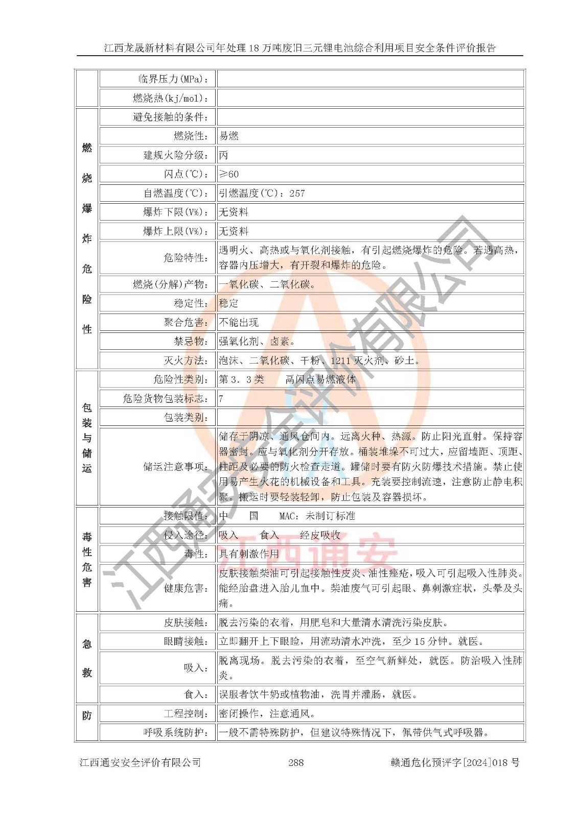 评价报告名称 | 江西龙晟新材料有限公司年处理18万吨废旧三元锂电池综合利用项目安全条件评价报告 | |||