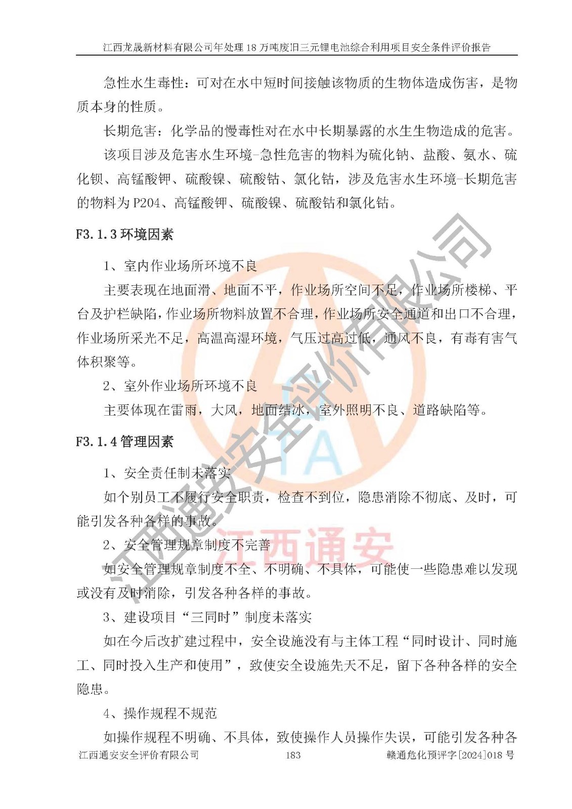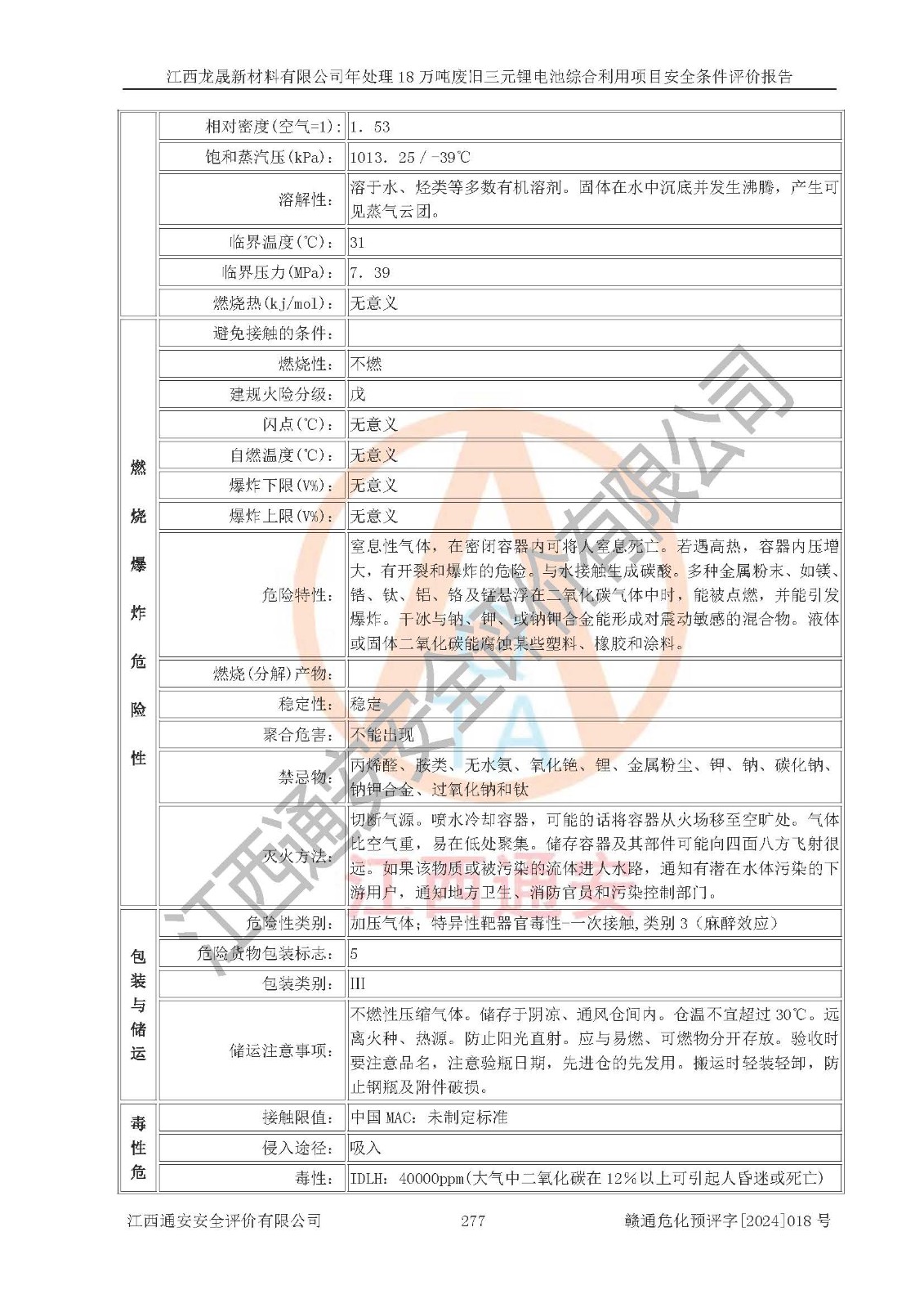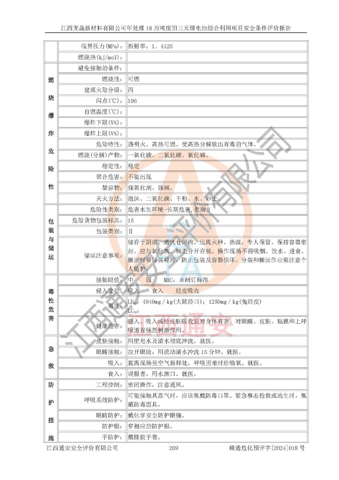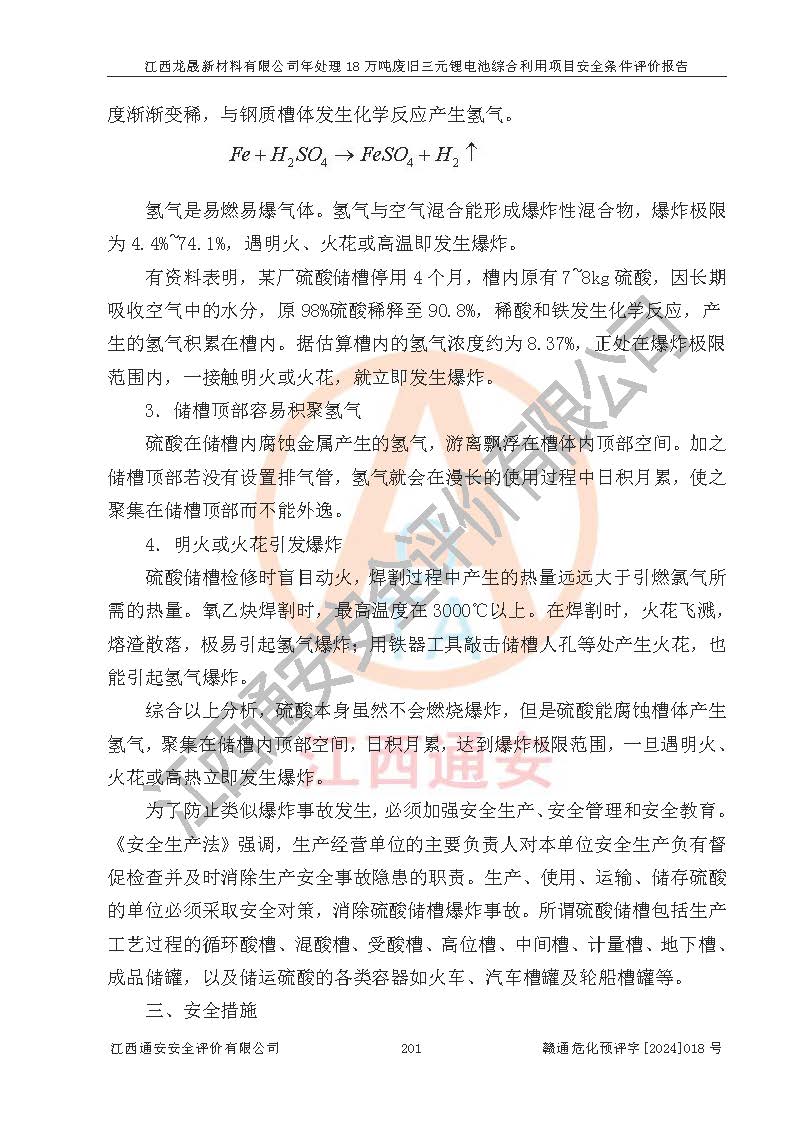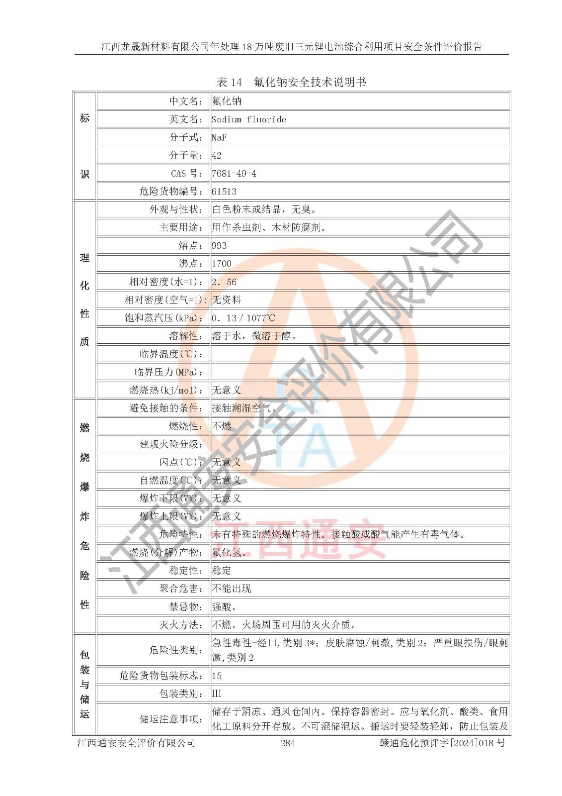评价报告名称 | 江西龙晟新材料有限公司年处理18万吨废旧三元锂电池综合利用项目安全条件评价报告 | |||