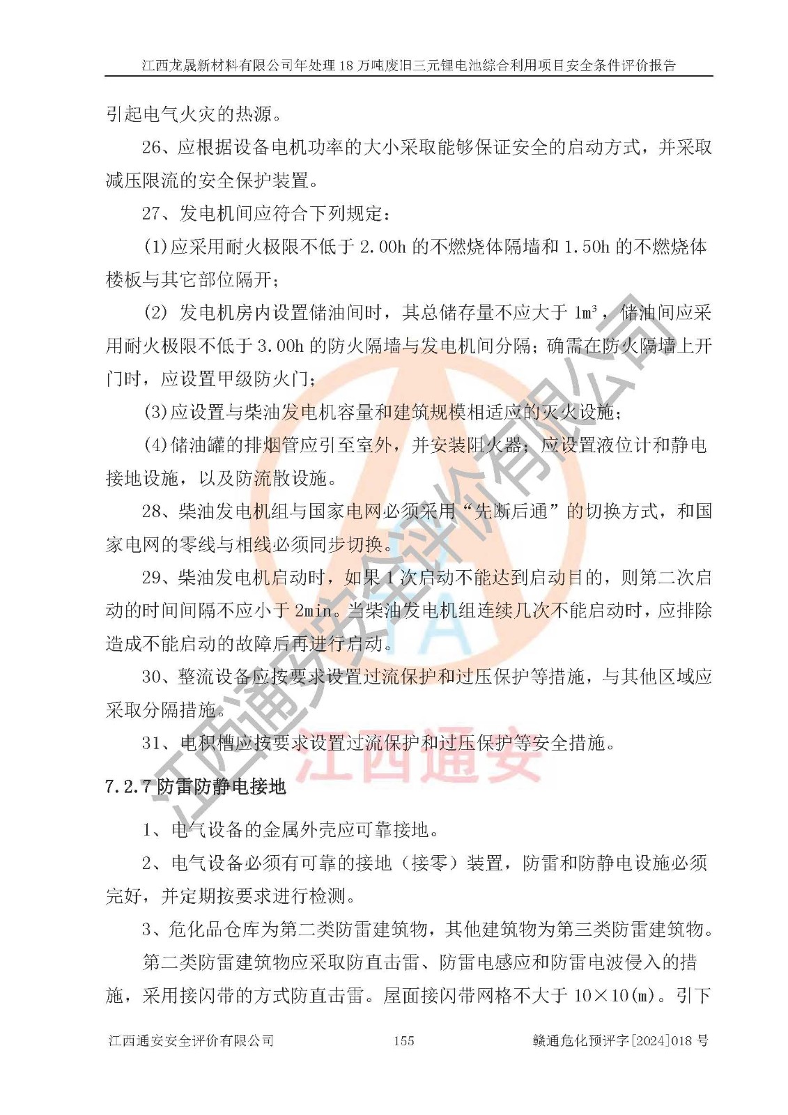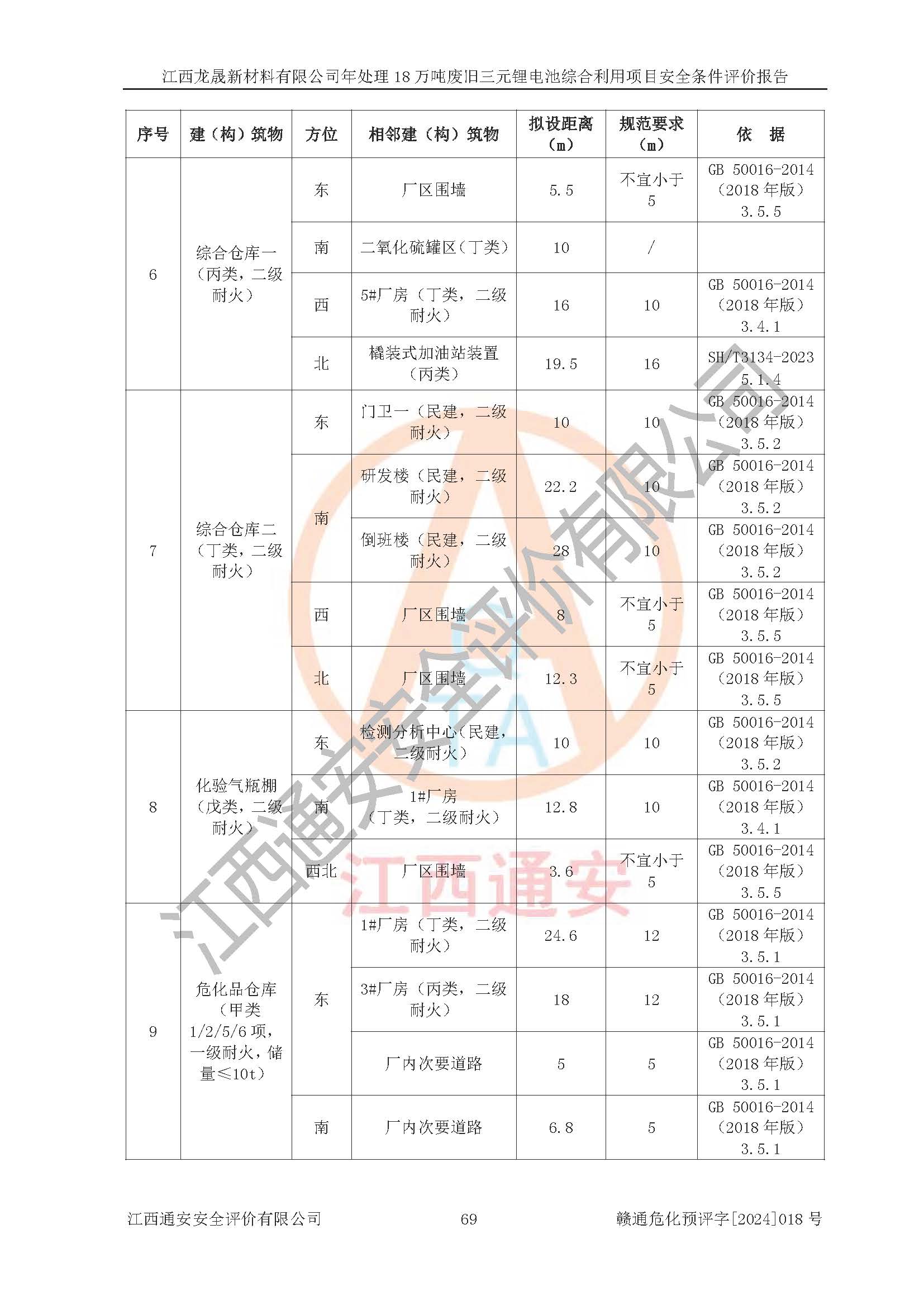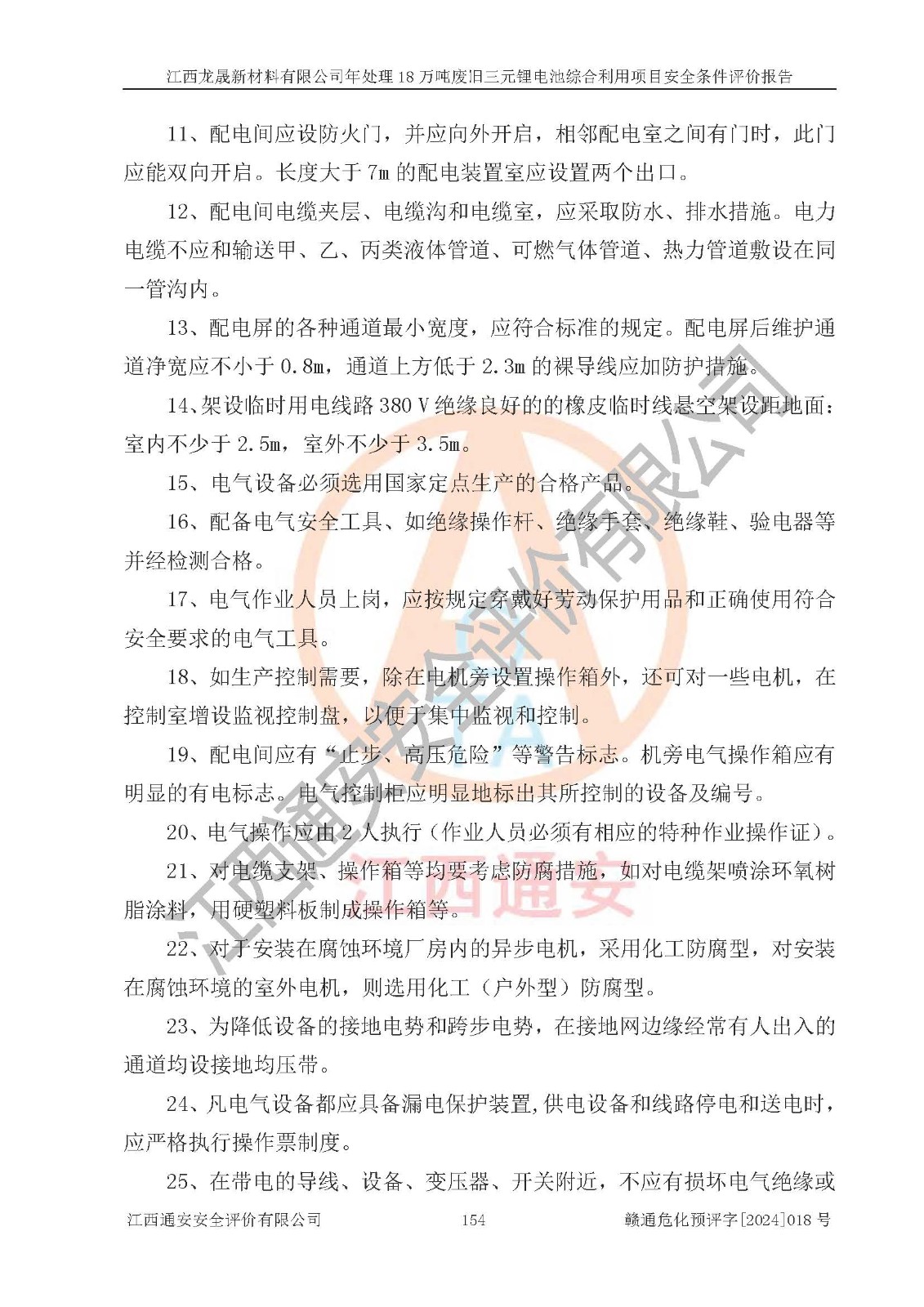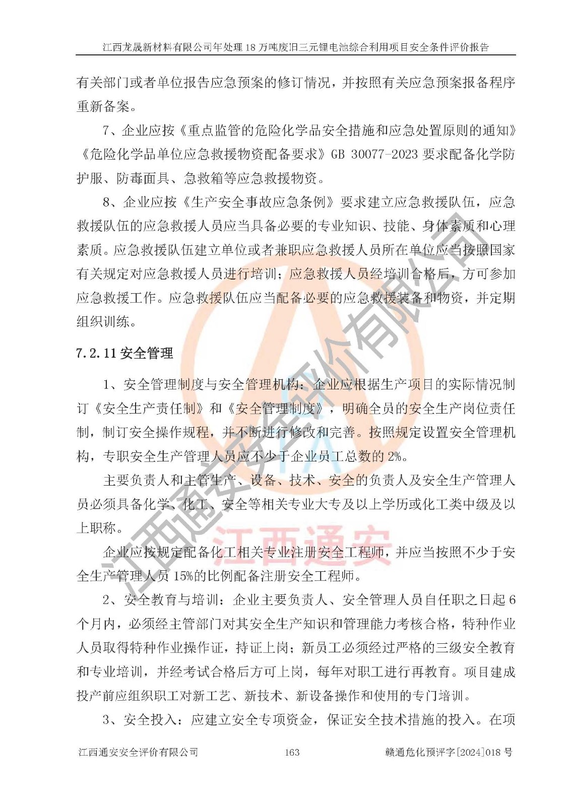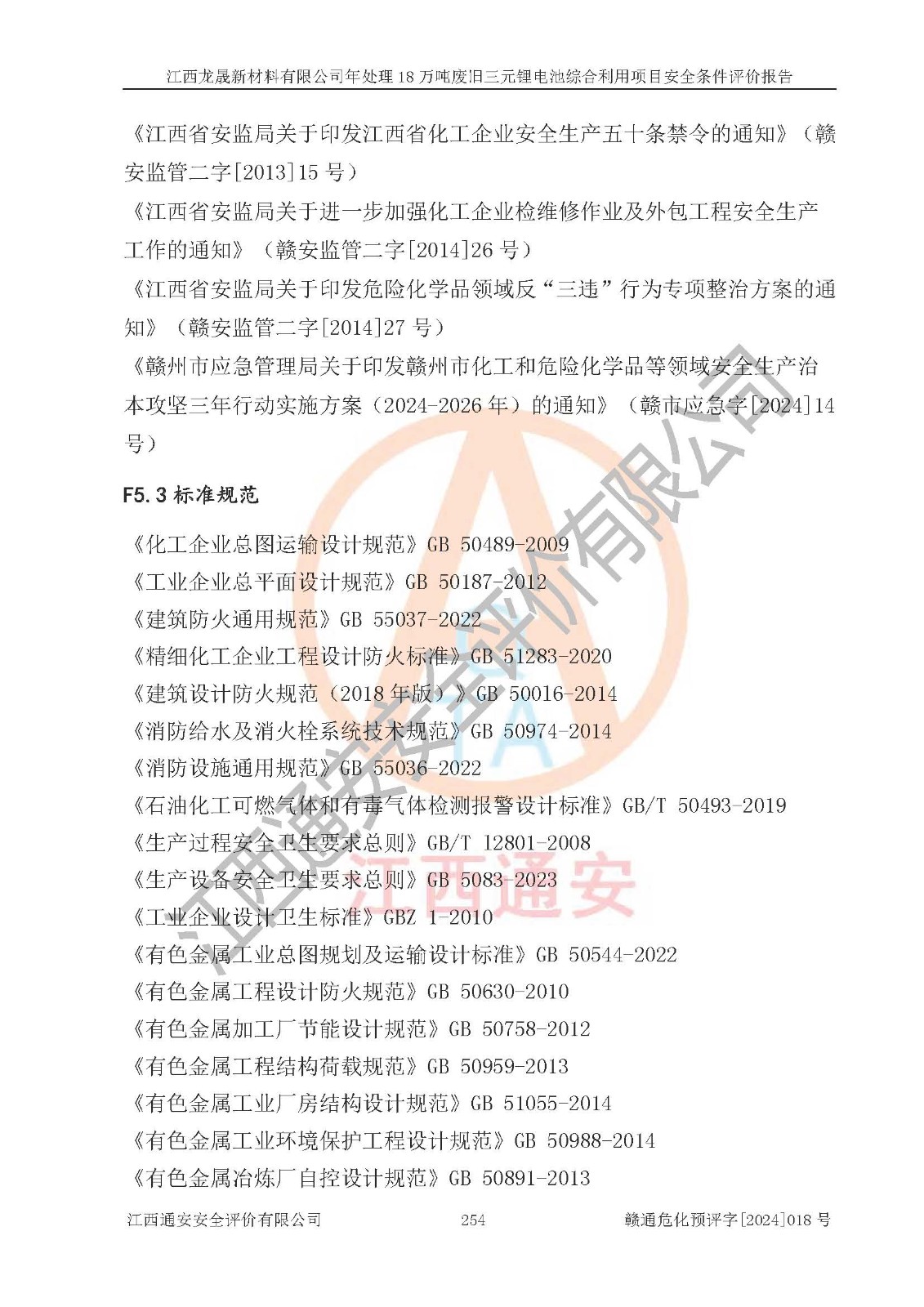 评价报告名称 | 江西龙晟新材料有限公司年处理18万吨废旧三元锂电池综合利用项目安全条件评价报告 | |||