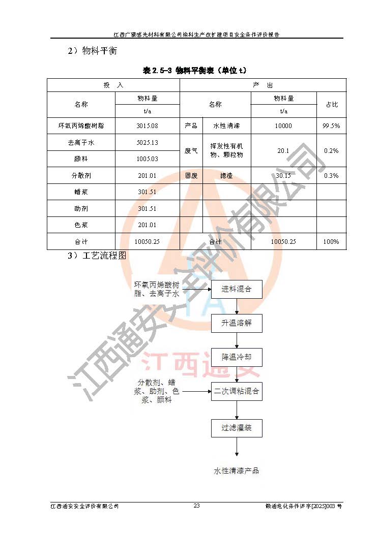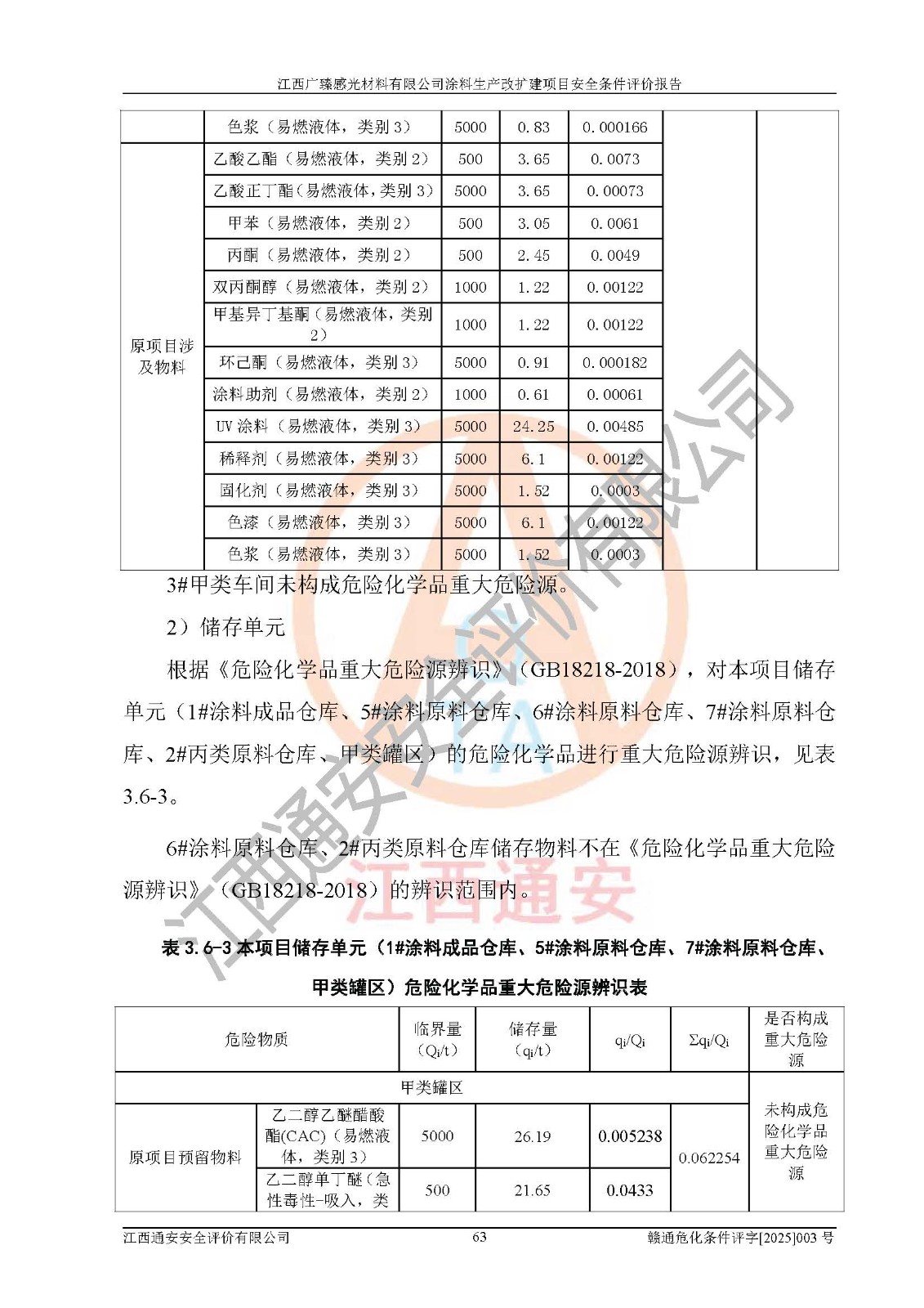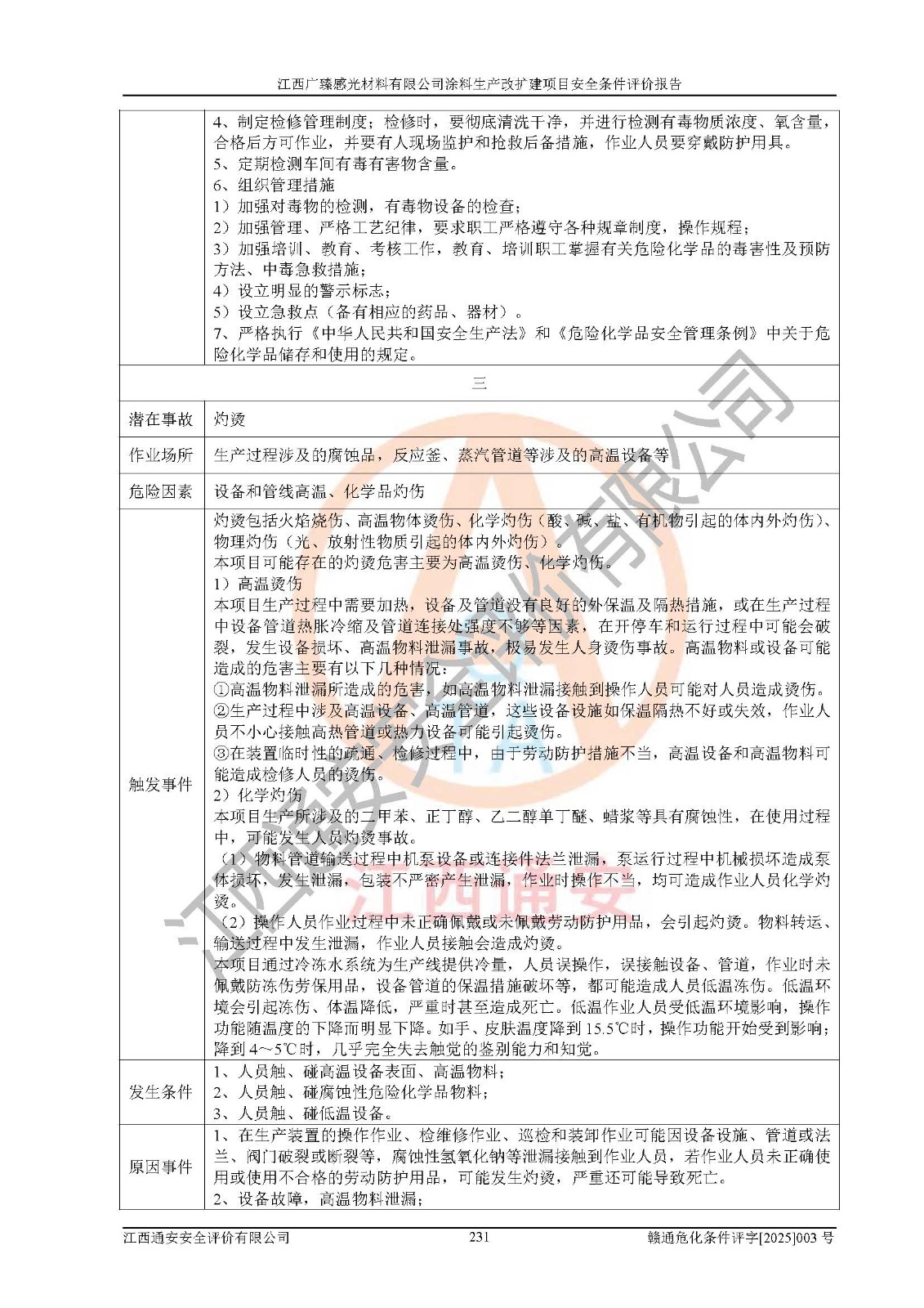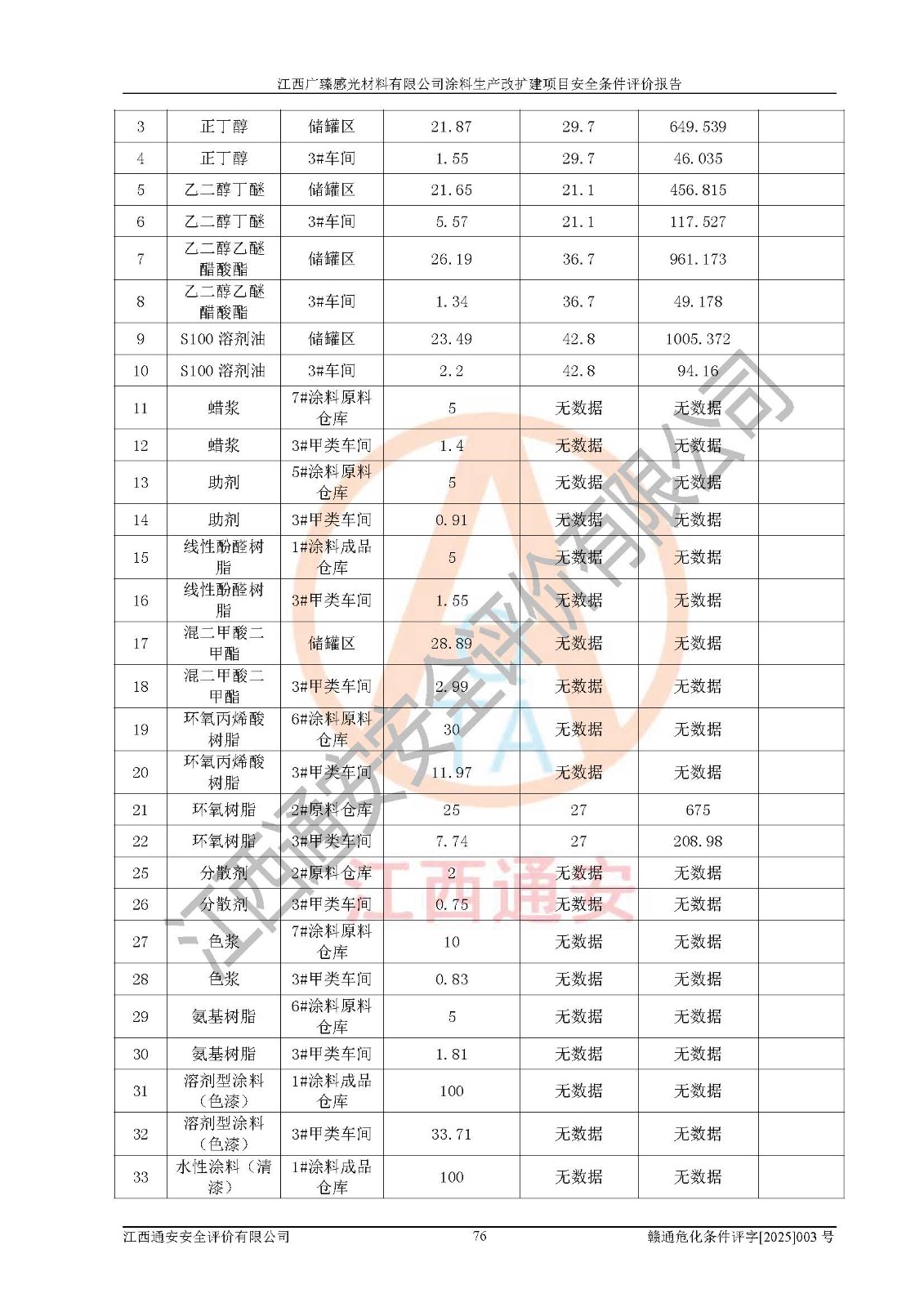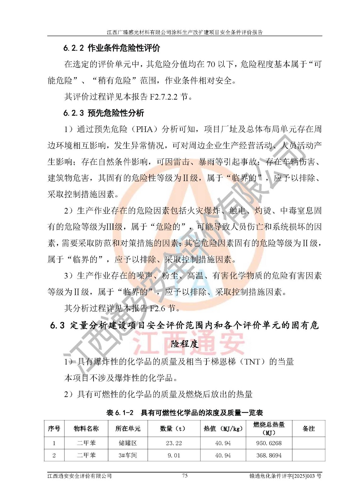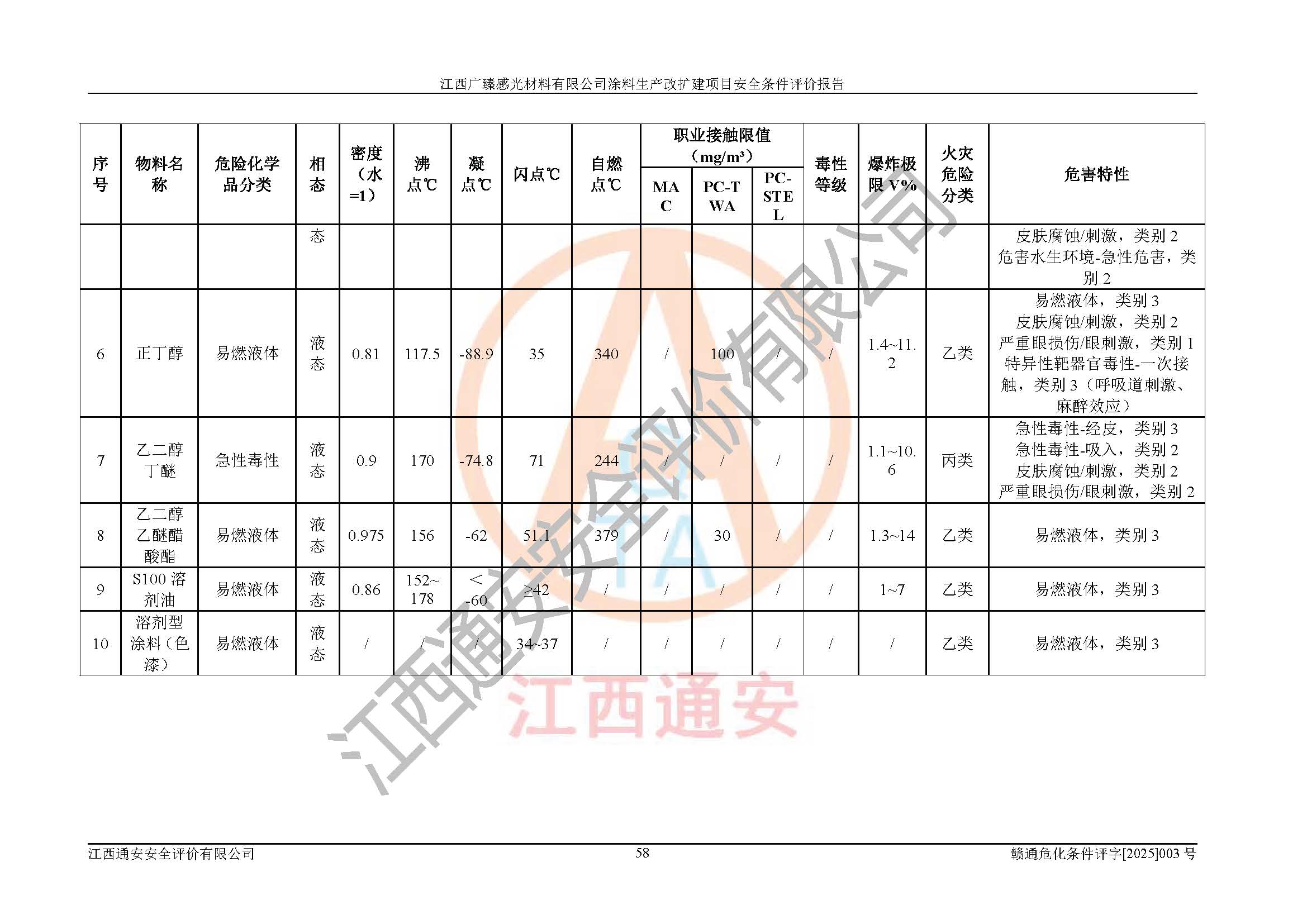 1)本项目取得了龙南市行政审批局下发的《江西省工业企业技术改造项目备案通知书》(项目统一代码为:2408-360727-07-02-3253323)、《建设用地规划许可证》、龙南市自然资源局出具对《关于为江西广臻年产2万吨涂料技改项目出具用地证明的函》的复函,符合地方产业发展规划的要求。 2)根据《危险化学品目录》(2015年版,十部委公告2022年第8号修订),本项目原辅料蜡浆、色浆、助剂、二甲苯、正丁醇、乙二醇丁醚、乙二醇乙醚醋酸酯、S100溶剂油、氮气[压缩的]及产品溶剂型涂料(色漆)属于危险化学品。本项目不涉及监控化学品、剧毒化学品、易制爆化学品、易制毒化学品、重点监管的危险化学品、特别管控危险化学品、高毒物品。本项目不涉及重点监管的危险化工工艺。 3)根据《危险化学品重大危险源辨识》(GB18218-2018),该项目未构成危险化学品重大危险源。 4)项目存在的主要危险因素有:火灾爆炸、容器爆炸、中毒窒息、灼烫、触电、**伤害、机械伤害、高处坠落、物体打击、淹溺等,存在的主要危害因素有:噪声与振动、高温、有害化学物质等;引起事故的原因有人的不安全行为、物的不安全状态、管理缺陷和环境不良。其中*主要的危险有害因素是火灾爆炸。 5)采用预先危险性分析法评价,结果为: (1)通过预先危险(PHA)分析可知,项目厂址及总体布局单元存在周边环境相互影响,发生异常情况,可对周边企业生产经营活动、人员活动产生影响;存在自然条件影响,可因雷击、暴雨等引起事故;存在**伤害、建筑物危害,其固有的危险性等级为Ⅱ级,属于“临界的”,应予以排除、采取控制措施因素。 (2)生产作业存在的危险因素包括火灾爆炸、触电、灼烫、中毒窒息固有的危险等级为Ⅲ级,属于“危险的”,可能导致人员伤亡和系统损坏的因素,需要采取防范和对策措施的因素;其它危险因素固有的危险等级为Ⅱ级,属于“临界的”,应予以排除、采取控制措施因素。 (3)生产作业存在的噪声、粉尘、高温、有害化学物质的危险有害因素等级为Ⅱ级,属于“临界的”,应予以排除、采取控制措施因素。 6)危险度评价分析,结果为: 生产装置危险度评价分析:3#甲类车间为中度危险(Ⅱ级)。 储存单元危险度评价分析:1#涂料成品仓库为**危险(Ⅰ级)、5#涂料原料仓库为**危险(Ⅰ级)、6#涂料原料仓库为中度危险(Ⅱ级)、7#涂料原料仓库为中度危险(Ⅱ级)、9#危废仓库为中度危险(Ⅱ级)、2#丙类原料仓库为中度危险(Ⅱ级)、甲类罐区为**危险(Ⅰ级)。 7)作业条件危险性评价结果:在选定的评价单元中,其危险分值均在70以下,危险程度基本属于“可能危险”、“稍有危险”范围,作业条件相对安全。企业经营过程中首先应重点加强对甲类生产车间、甲类仓库、储罐区的危险因素的严格控制,注重日常安全管理;其次要建立健全完善的安全生产责任制、安全管理制度、安全技术操作规程并**其贯彻落实;第三要认真抓好操作人员、管理人员的安全知识和操作技能的培训,**人员具有与工程技术水平相适应的技术素质和安全素质,**安全作业。 8)项目建设场地符合当地规划要求,建设场地通过合理规划,其选址、周边环境、总平面布置、交通运输等能符合《中华人民共和国安全生产法》《危险化学品安全管理条例》《建筑设计防火规范》《精细化工企业工程设计防火标准》等法规、标准、规范要求。 厂址地区地震活动相对较弱,灾害性天气出现频率稍高,自然灾害对项目建设具有**影响,通过采取相应的防护措施,自然条件适宜建设。 9)建设项目符合**产业政策的要求;选择工艺为现行成熟工艺,其安全可靠性可得到**。 10)本报告已根据有关安全生产法律、法规、规章和**标准、行业标准,并严格执行省委办公厅省**办公厅《关于全面加强危险化学品安全生产工作的实施意见》(赣办发[2020]32号)及鄱阳湖生态经济区、长江经济带、“五河一湖”相关政策规定,客观、公正、科学地进行安全评价,项目符合《江西省应急管理厅关于印发《江西省危险化学品建设项目安全监督管理实施细则》(试行)的通知》(赣应急字[2021]100号)的要求。 11)本报告结合工艺特征,提出应采取的对应的自动化控制系统及自动化实施方案,满足《江西省应急管理厅关于印发《江西省化工企业自动化提升实施方案》(试行)的通知》(赣应急字[2021]190号)的要求。 综上所述:江西广臻感光材料有限公司涂料生产改扩建项目的产业政策、安全条件、厂址、总体布局、主要技术和工艺、装置、设施、配套和辅助工程、安全管理等均满足安全生产相关法律法规、标准规范的要求,该建设项目的危险、有害因素可得到**控制,风险在可接受范围内,具有**的本质安全水平。企业应认真落实本报告提出的安全对策与建议,在下一步设计、建设施工过程中严把质量关、严格施工安全管理和检查,使各项安全措施落实到实处,且严格执行建设项目安全设施“三同时”的规定,建立**的事故应急体系和措施。 |