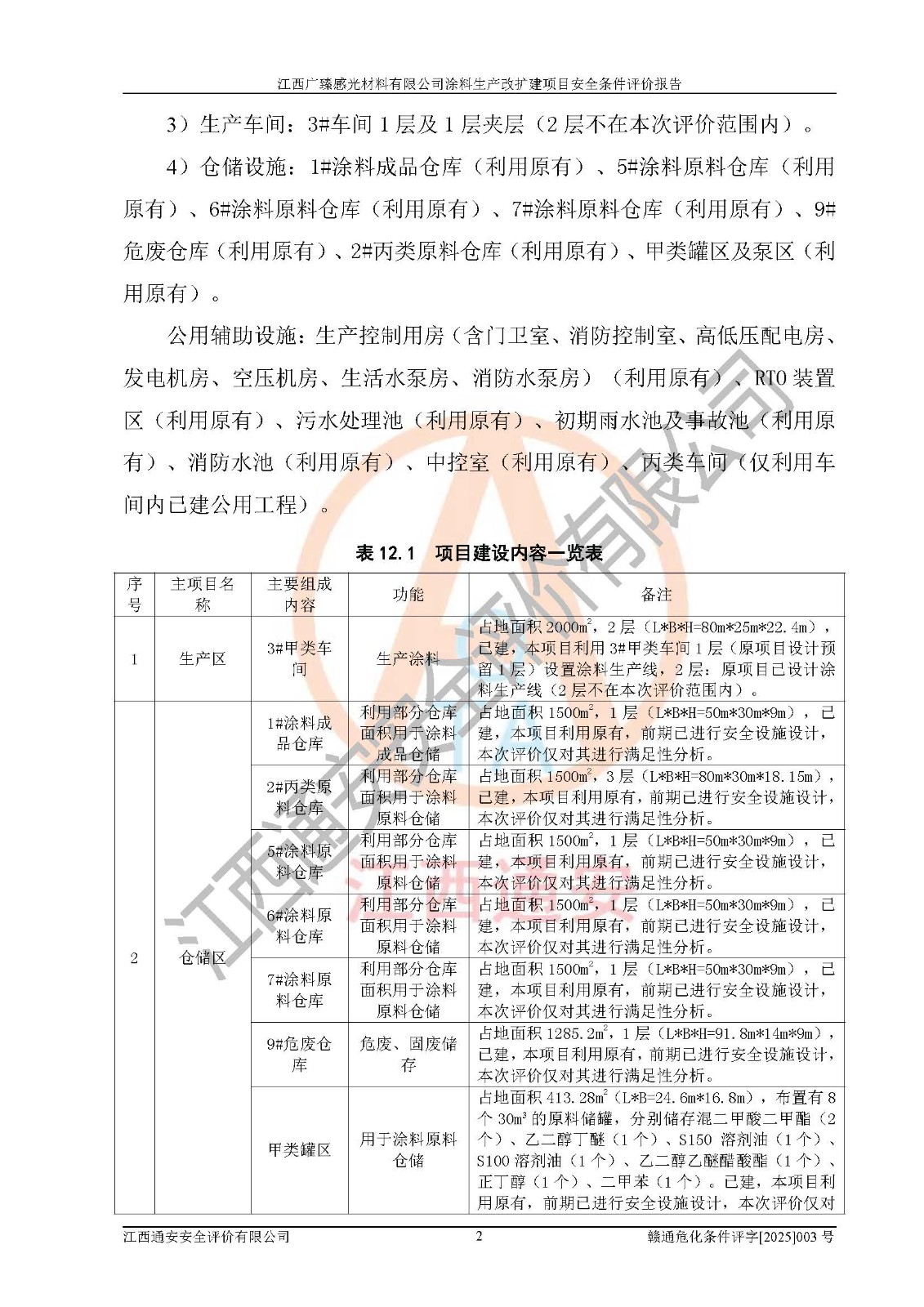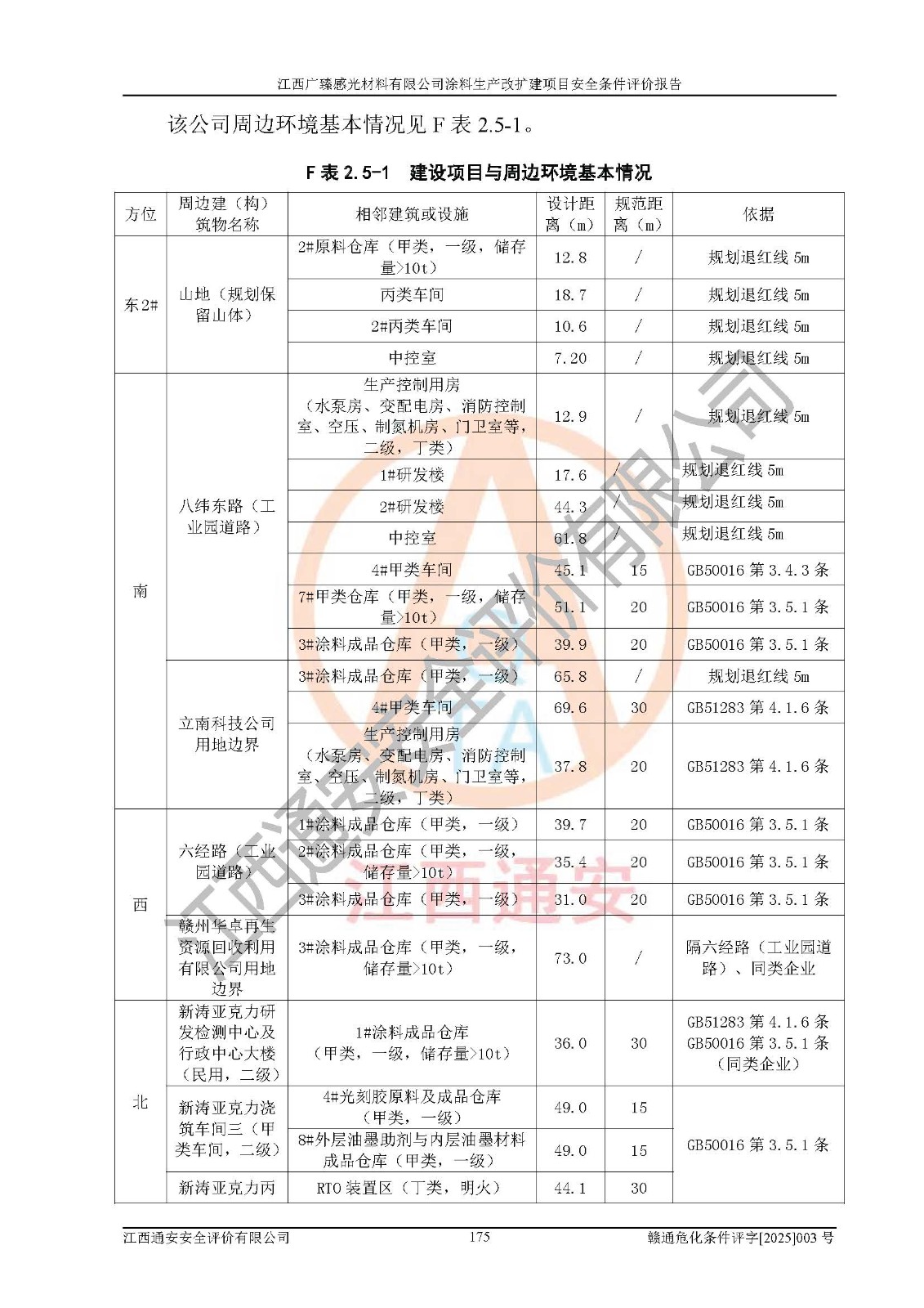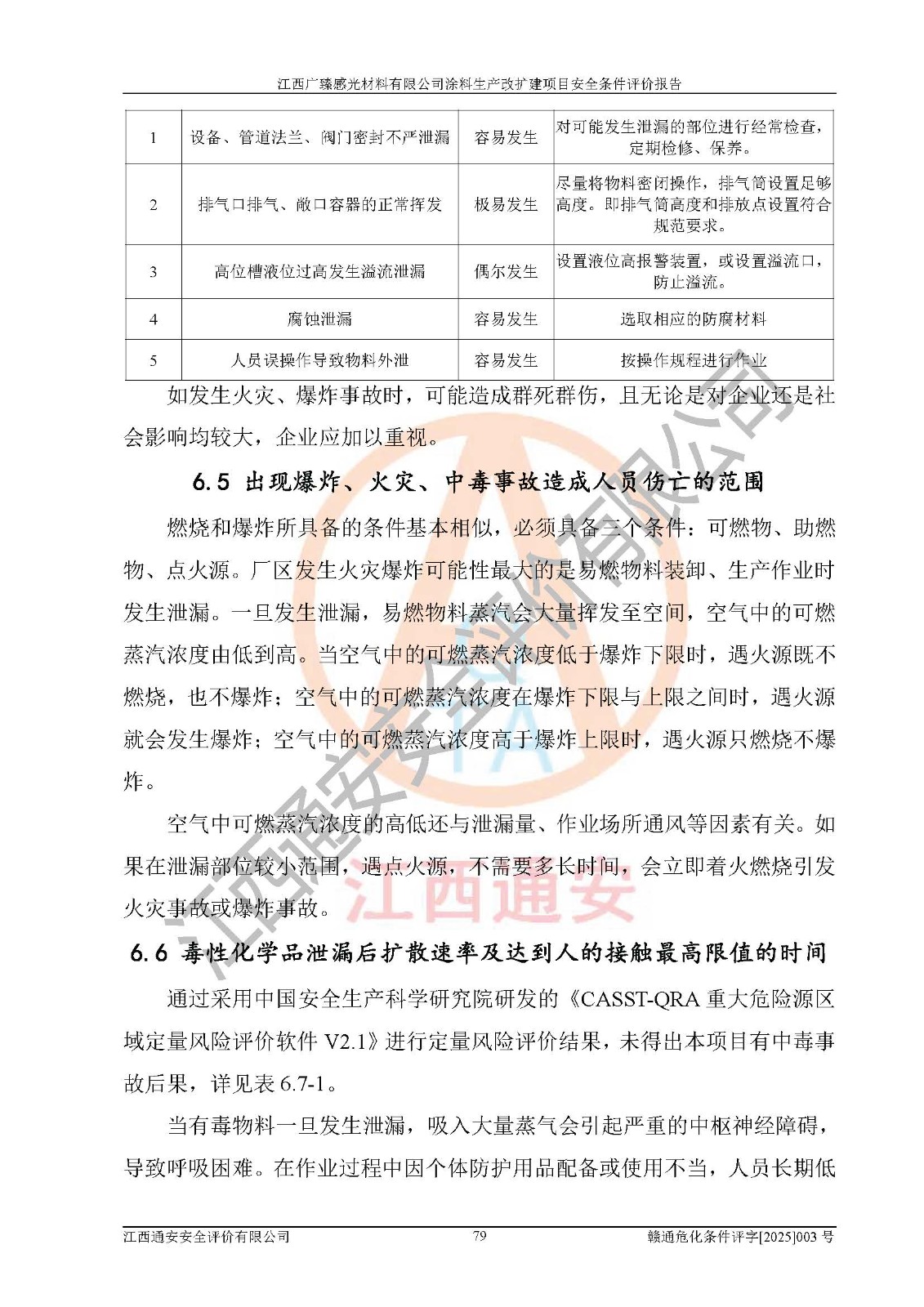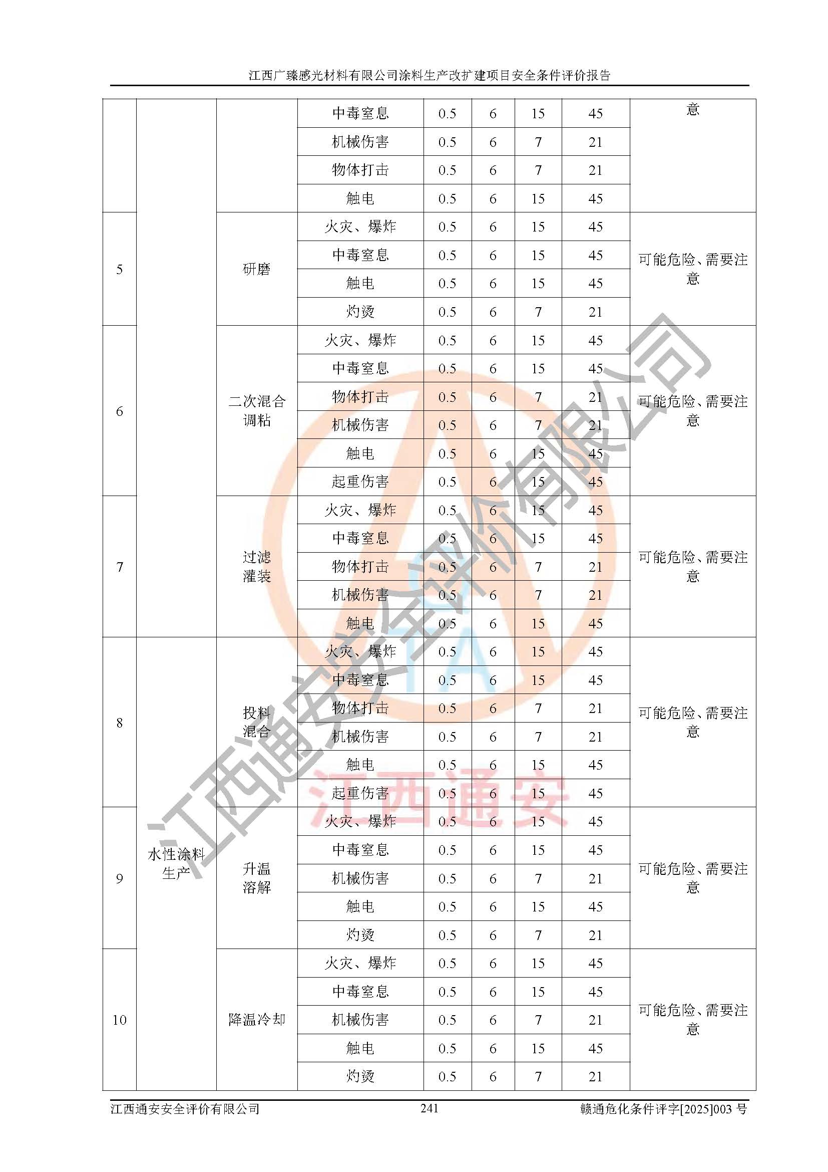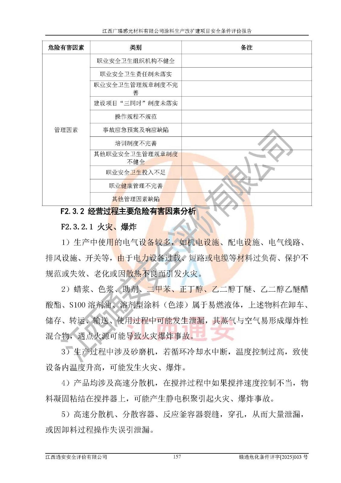 1)本项目取得了龙南市行政审批局下发的《江西省工业企业技术改造项目备案通知书》(项目统一代码为:2408-360727-07-02-3253323)、《建设用地规划许可证》、龙南市自然资源局出具对《关于为江西广臻年产2万吨涂料技改项目出具用地证明的函》的复函,符合地方产业发展规划的要求。 2)根据《危险化学品目录》(2015年版,十部委公告2022年第8号修订),本项目原辅料蜡浆、色浆、助剂、二甲苯、正丁醇、乙二醇丁醚、乙二醇乙醚醋酸酯、S100溶剂油、氮气[压缩的]及产品溶剂型涂料(色漆)属于危险化学品。本项目不涉及监控化学品、剧毒化学品、易制爆化学品、易制毒化学品、重点监管的危险化学品、特别管控危险化学品、高毒物品。本项目不涉及重点监管的危险化工工艺。 3)根据《危险化学品重大危险源辨识》(GB18218-2018),该项目未构成危险化学品重大危险源。 4)项目存在的主要危险因素有:火灾爆炸、容器爆炸、中毒窒息、灼烫、触电、**伤害、机械伤害、高处坠落、物体打击、淹溺等,存在的主要危害因素有:噪声与振动、高温、有害化学物质等;引起事故的原因有人的不安全行为、物的不安全状态、管理缺陷和环境不良。其中*主要的危险有害因素是火灾爆炸。 5)采用预先危险性分析法评价,结果为: (1)通过预先危险(PHA)分析可知,项目厂址及总体布局单元存在周边环境相互影响,发生异常情况,可对周边企业生产经营活动、人员活动产生影响;存在自然条件影响,可因雷击、暴雨等引起事故;存在**伤害、建筑物危害,其固有的危险性等级为Ⅱ级,属于“临界的”,应予以排除、采取控制措施因素。 (2)生产作业存在的危险因素包括火灾爆炸、触电、灼烫、中毒窒息固有的危险等级为Ⅲ级,属于“危险的”,可能导致人员伤亡和系统损坏的因素,需要采取防范和对策措施的因素;其它危险因素固有的危险等级为Ⅱ级,属于“临界的”,应予以排除、采取控制措施因素。 (3)生产作业存在的噪声、粉尘、高温、有害化学物质的危险有害因素等级为Ⅱ级,属于“临界的”,应予以排除、采取控制措施因素。 6)危险度评价分析,结果为: 生产装置危险度评价分析:3#甲类车间为中度危险(Ⅱ级)。 储存单元危险度评价分析:1#涂料成品仓库为**危险(Ⅰ级)、5#涂料原料仓库为**危险(Ⅰ级)、6#涂料原料仓库为中度危险(Ⅱ级)、7#涂料原料仓库为中度危险(Ⅱ级)、9#危废仓库为中度危险(Ⅱ级)、2#丙类原料仓库为中度危险(Ⅱ级)、甲类罐区为**危险(Ⅰ级)。 7)作业条件危险性评价结果:在选定的评价单元中,其危险分值均在70以下,危险程度基本属于“可能危险”、“稍有危险”范围,作业条件相对安全。企业经营过程中首先应重点加强对甲类生产车间、甲类仓库、储罐区的危险因素的严格控制,注重日常安全管理;其次要建立健全完善的安全生产责任制、安全管理制度、安全技术操作规程并**其贯彻落实;第三要认真抓好操作人员、管理人员的安全知识和操作技能的培训,**人员具有与工程技术水平相适应的技术素质和安全素质,**安全作业。 8)项目建设场地符合当地规划要求,建设场地通过合理规划,其选址、周边环境、总平面布置、交通运输等能符合《中华人民共和国安全生产法》《危险化学品安全管理条例》《建筑设计防火规范》《精细化工企业工程设计防火标准》等法规、标准、规范要求。 厂址地区地震活动相对较弱,灾害性天气出现频率稍高,自然灾害对项目建设具有**影响,通过采取相应的防护措施,自然条件适宜建设。 9)建设项目符合**产业政策的要求;选择工艺为现行成熟工艺,其安全可靠性可得到**。 10)本报告已根据有关安全生产法律、法规、规章和**标准、行业标准,并严格执行省委办公厅省**办公厅《关于全面加强危险化学品安全生产工作的实施意见》(赣办发[2020]32号)及鄱阳湖生态经济区、长江经济带、“五河一湖”相关政策规定,客观、公正、科学地进行安全评价,项目符合《江西省应急管理厅关于印发《江西省危险化学品建设项目安全监督管理实施细则》(试行)的通知》(赣应急字[2021]100号)的要求。 11)本报告结合工艺特征,提出应采取的对应的自动化控制系统及自动化实施方案,满足《江西省应急管理厅关于印发《江西省化工企业自动化提升实施方案》(试行)的通知》(赣应急字[2021]190号)的要求。 综上所述:江西广臻感光材料有限公司涂料生产改扩建项目的产业政策、安全条件、厂址、总体布局、主要技术和工艺、装置、设施、配套和辅助工程、安全管理等均满足安全生产相关法律法规、标准规范的要求,该建设项目的危险、有害因素可得到**控制,风险在可接受范围内,具有**的本质安全水平。企业应认真落实本报告提出的安全对策与建议,在下一步设计、建设施工过程中严把质量关、严格施工安全管理和检查,使各项安全措施落实到实处,且严格执行建设项目安全设施“三同时”的规定,建立**的事故应急体系和措施。 |
