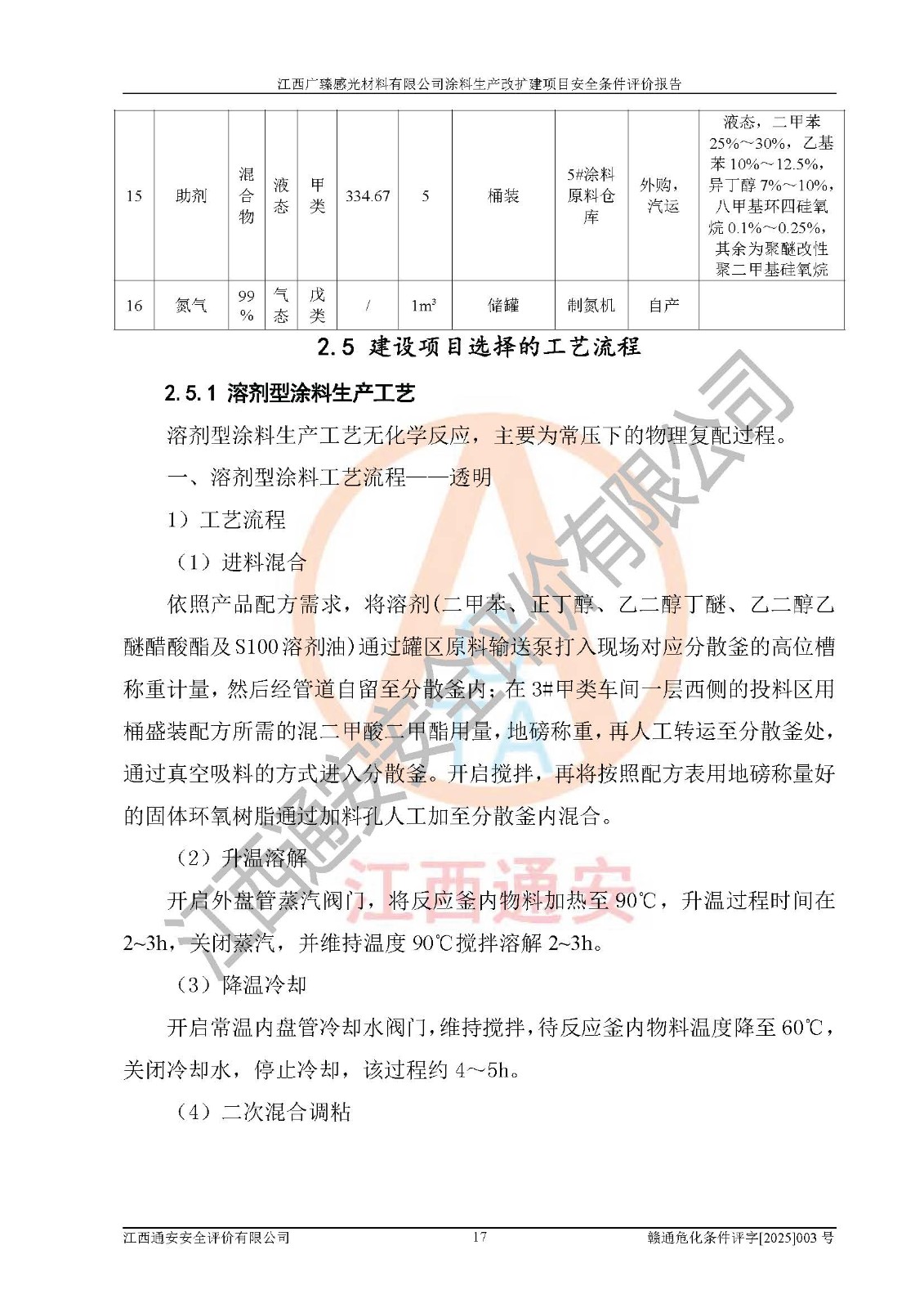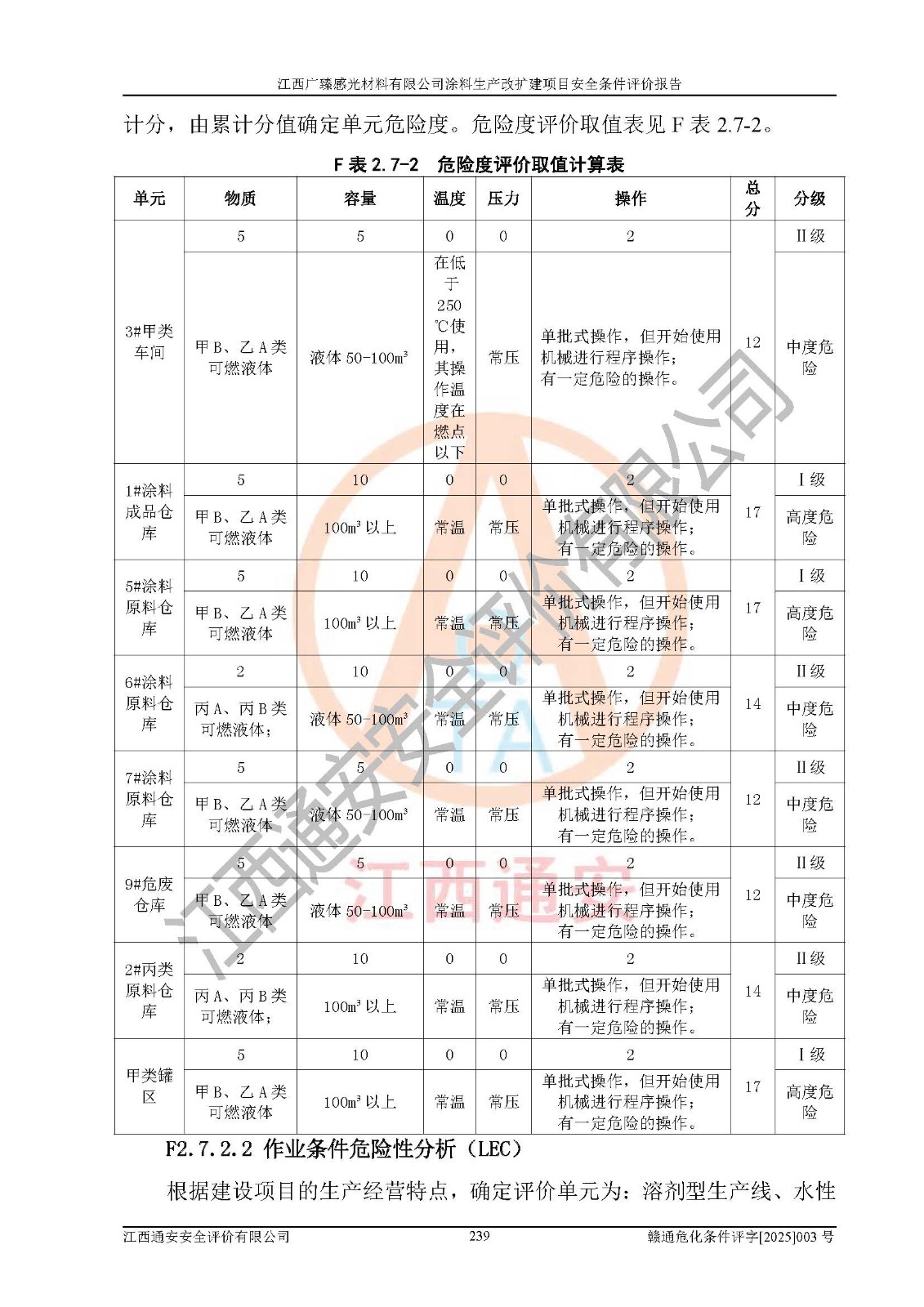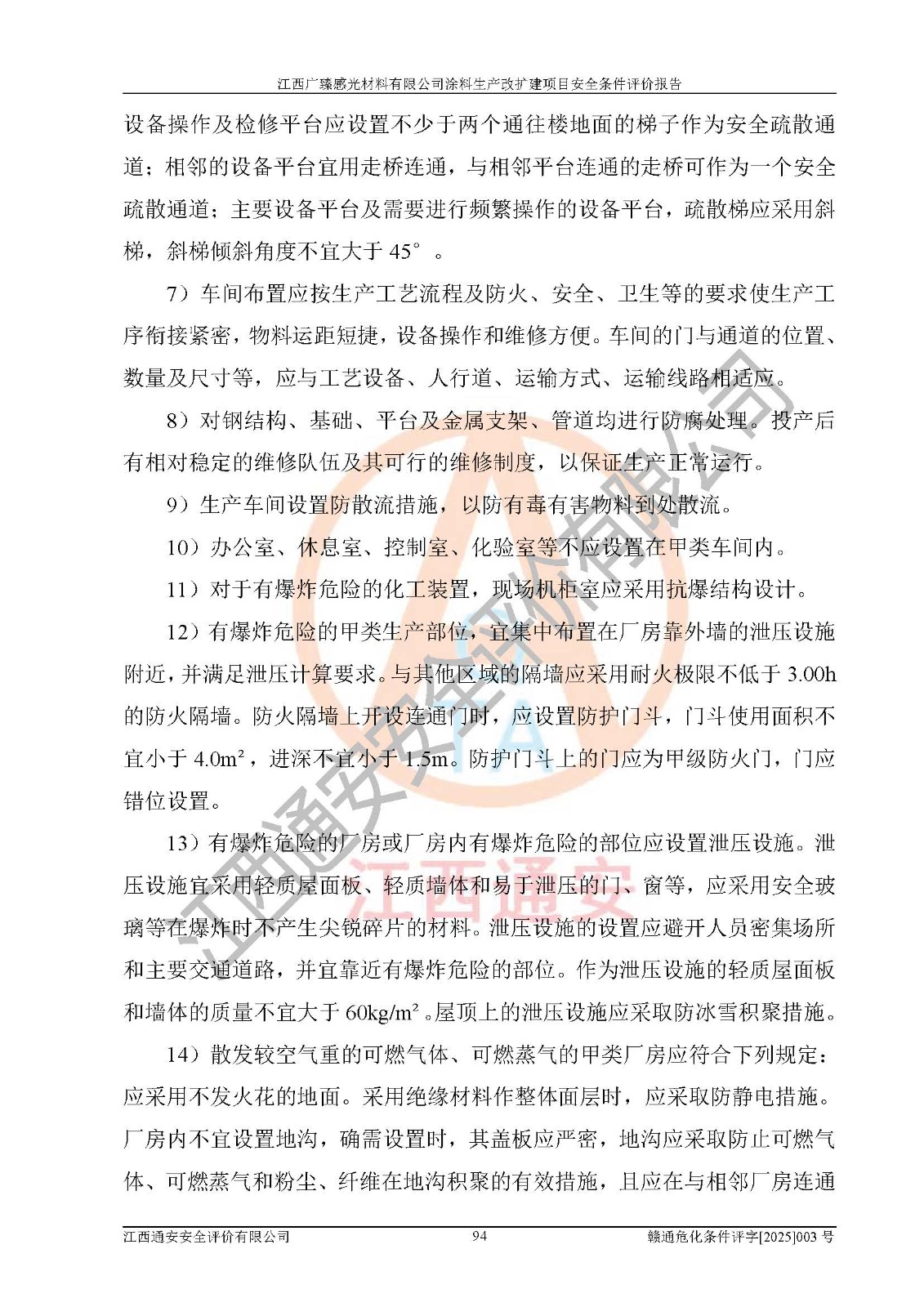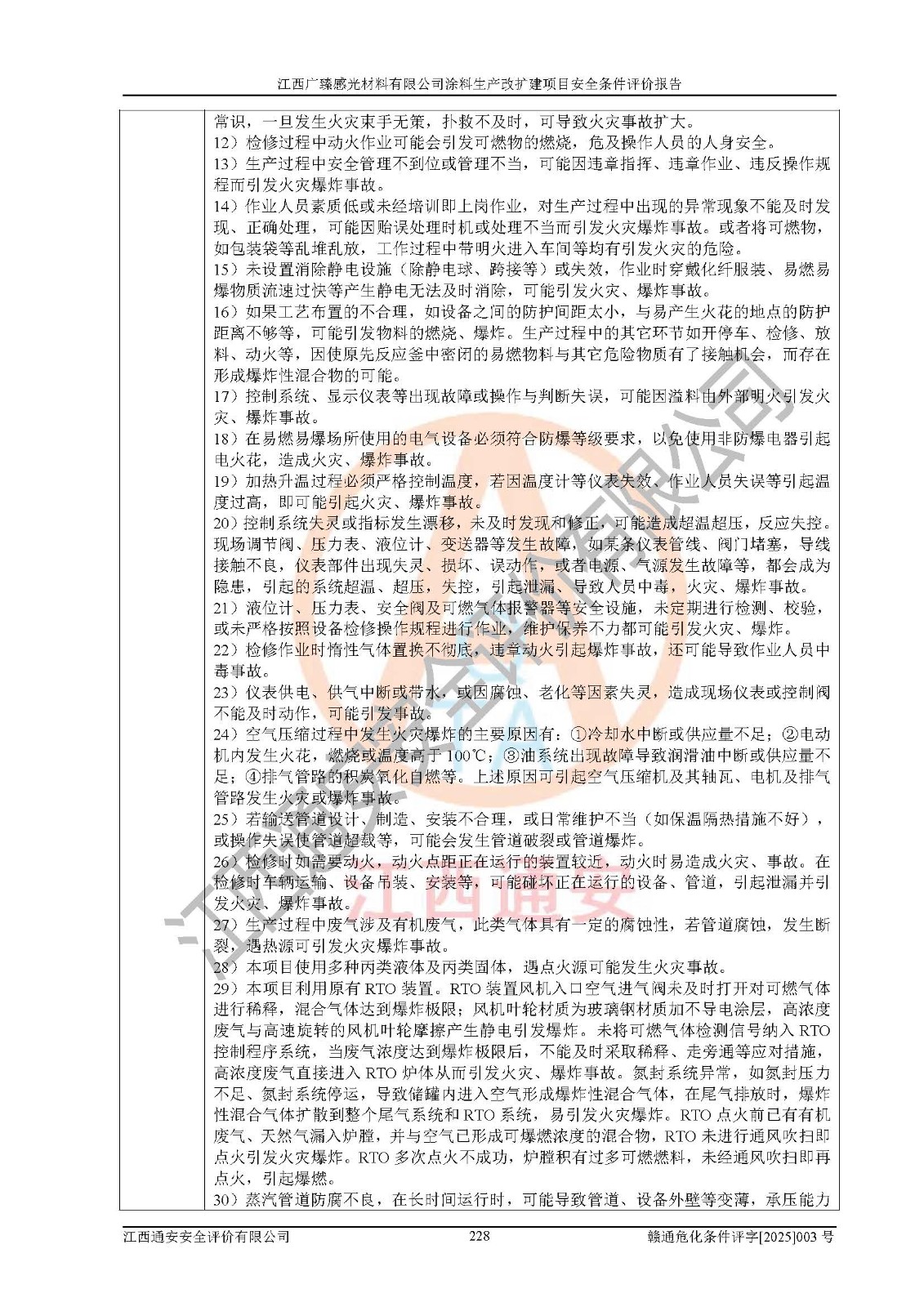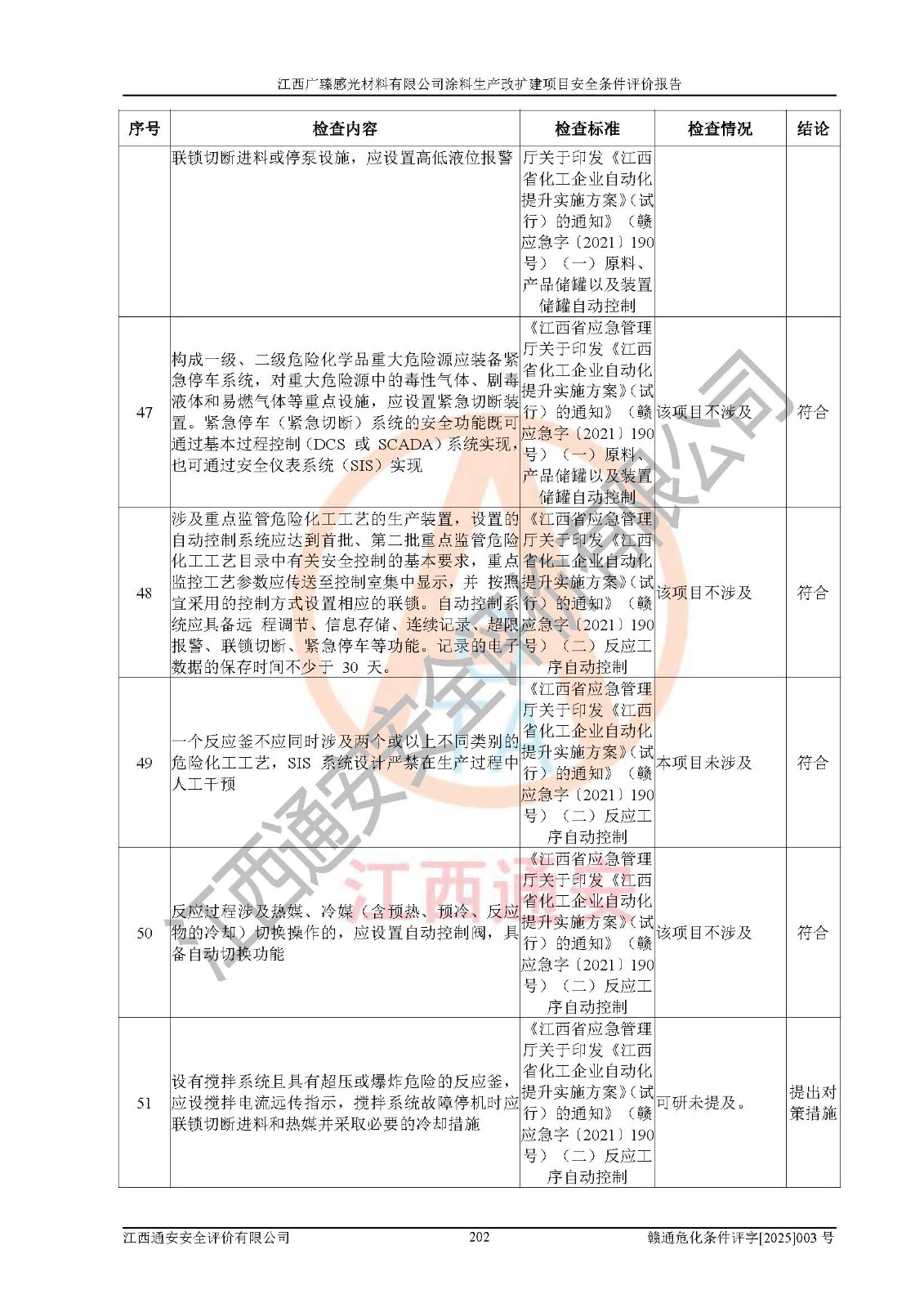 1)本项目取得了龙南市行政审批局下发的《江西省工业企业技术改造项目备案通知书》(项目统一代码为:2408-360727-07-02-3253323)、《建设用地规划许可证》、龙南市自然资源局出具对《关于为江西广臻年产2万吨涂料技改项目出具用地证明的函》的复函,符合地方产业发展规划的要求。 2)根据《危险化学品目录》(2015年版,十部委公告2022年第8号修订),本项目原辅料蜡浆、色浆、助剂、二甲苯、正丁醇、乙二醇丁醚、乙二醇乙醚醋酸酯、S100溶剂油、氮气[压缩的]及产品溶剂型涂料(色漆)属于危险化学品。本项目不涉及监控化学品、剧毒化学品、易制爆化学品、易制毒化学品、重点监管的危险化学品、特别管控危险化学品、高毒物品。本项目不涉及重点监管的危险化工工艺。 3)根据《危险化学品重大危险源辨识》(GB18218-2018),该项目未构成危险化学品重大危险源。 4)项目存在的主要危险因素有:火灾爆炸、容器爆炸、中毒窒息、灼烫、触电、**伤害、机械伤害、高处坠落、物体打击、淹溺等,存在的主要危害因素有:噪声与振动、高温、有害化学物质等;引起事故的原因有人的不安全行为、物的不安全状态、管理缺陷和环境不良。其中*主要的危险有害因素是火灾爆炸。 5)采用预先危险性分析法评价,结果为: (1)通过预先危险(PHA)分析可知,项目厂址及总体布局单元存在周边环境相互影响,发生异常情况,可对周边企业生产经营活动、人员活动产生影响;存在自然条件影响,可因雷击、暴雨等引起事故;存在**伤害、建筑物危害,其固有的危险性等级为Ⅱ级,属于“临界的”,应予以排除、采取控制措施因素。 (2)生产作业存在的危险因素包括火灾爆炸、触电、灼烫、中毒窒息固有的危险等级为Ⅲ级,属于“危险的”,可能导致人员伤亡和系统损坏的因素,需要采取防范和对策措施的因素;其它危险因素固有的危险等级为Ⅱ级,属于“临界的”,应予以排除、采取控制措施因素。 (3)生产作业存在的噪声、粉尘、高温、有害化学物质的危险有害因素等级为Ⅱ级,属于“临界的”,应予以排除、采取控制措施因素。 6)危险度评价分析,结果为: 生产装置危险度评价分析:3#甲类车间为中度危险(Ⅱ级)。 储存单元危险度评价分析:1#涂料成品仓库为**危险(Ⅰ级)、5#涂料原料仓库为**危险(Ⅰ级)、6#涂料原料仓库为中度危险(Ⅱ级)、7#涂料原料仓库为中度危险(Ⅱ级)、9#危废仓库为中度危险(Ⅱ级)、2#丙类原料仓库为中度危险(Ⅱ级)、甲类罐区为**危险(Ⅰ级)。 7)作业条件危险性评价结果:在选定的评价单元中,其危险分值均在70以下,危险程度基本属于“可能危险”、“稍有危险”范围,作业条件相对安全。企业经营过程中首先应重点加强对甲类生产车间、甲类仓库、储罐区的危险因素的严格控制,注重日常安全管理;其次要建立健全完善的安全生产责任制、安全管理制度、安全技术操作规程并**其贯彻落实;第三要认真抓好操作人员、管理人员的安全知识和操作技能的培训,**人员具有与工程技术水平相适应的技术素质和安全素质,**安全作业。 8)项目建设场地符合当地规划要求,建设场地通过合理规划,其选址、周边环境、总平面布置、交通运输等能符合《中华人民共和国安全生产法》《危险化学品安全管理条例》《建筑设计防火规范》《精细化工企业工程设计防火标准》等法规、标准、规范要求。 厂址地区地震活动相对较弱,灾害性天气出现频率稍高,自然灾害对项目建设具有**影响,通过采取相应的防护措施,自然条件适宜建设。 9)建设项目符合**产业政策的要求;选择工艺为现行成熟工艺,其安全可靠性可得到**。 10)本报告已根据有关安全生产法律、法规、规章和**标准、行业标准,并严格执行省委办公厅省**办公厅《关于全面加强危险化学品安全生产工作的实施意见》(赣办发[2020]32号)及鄱阳湖生态经济区、长江经济带、“五河一湖”相关政策规定,客观、公正、科学地进行安全评价,项目符合《江西省应急管理厅关于印发《江西省危险化学品建设项目安全监督管理实施细则》(试行)的通知》(赣应急字[2021]100号)的要求。 11)本报告结合工艺特征,提出应采取的对应的自动化控制系统及自动化实施方案,满足《江西省应急管理厅关于印发《江西省化工企业自动化提升实施方案》(试行)的通知》(赣应急字[2021]190号)的要求。 综上所述:江西广臻感光材料有限公司涂料生产改扩建项目的产业政策、安全条件、厂址、总体布局、主要技术和工艺、装置、设施、配套和辅助工程、安全管理等均满足安全生产相关法律法规、标准规范的要求,该建设项目的危险、有害因素可得到**控制,风险在可接受范围内,具有**的本质安全水平。企业应认真落实本报告提出的安全对策与建议,在下一步设计、建设施工过程中严把质量关、严格施工安全管理和检查,使各项安全措施落实到实处,且严格执行建设项目安全设施“三同时”的规定,建立**的事故应急体系和措施。 |